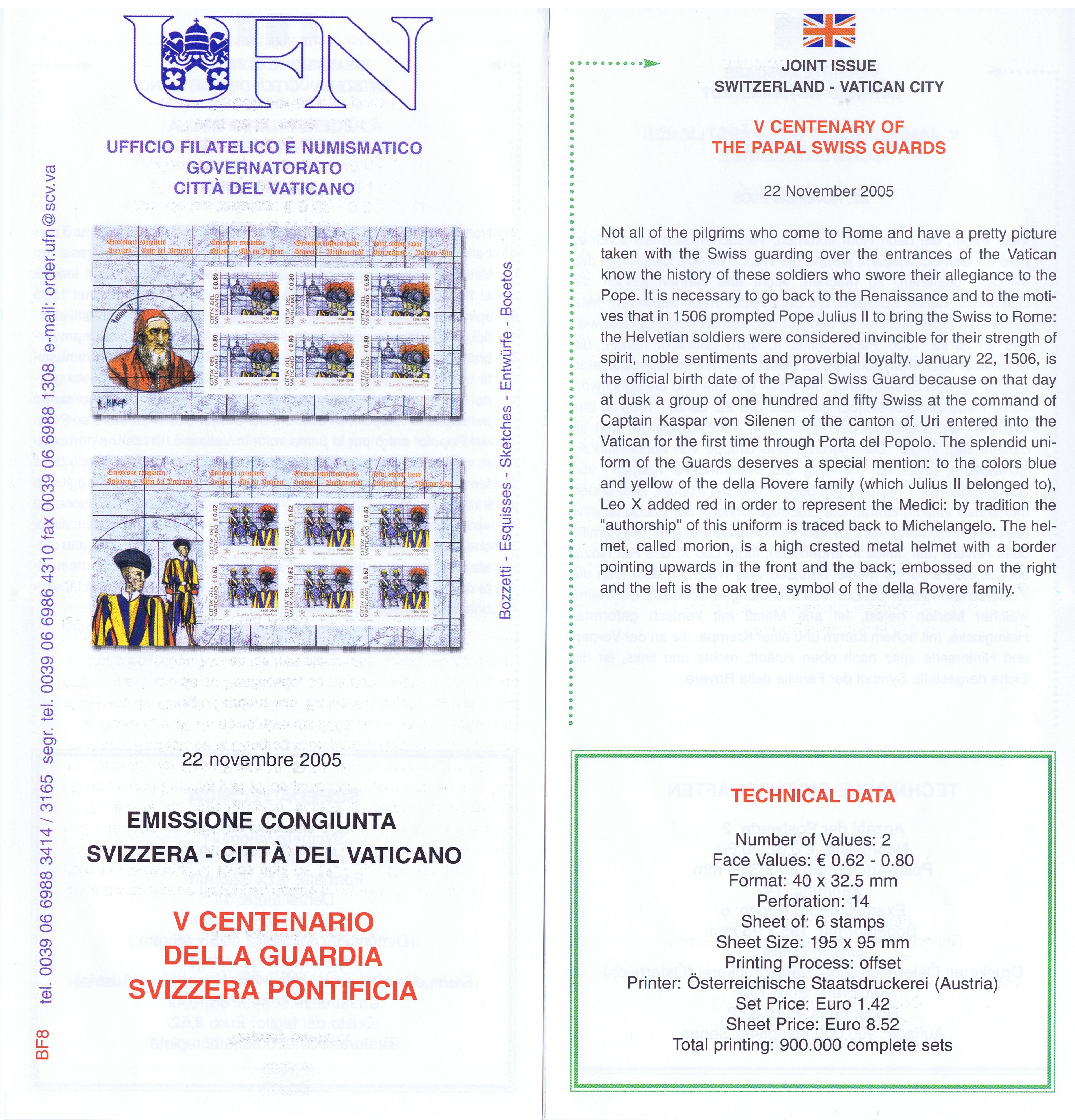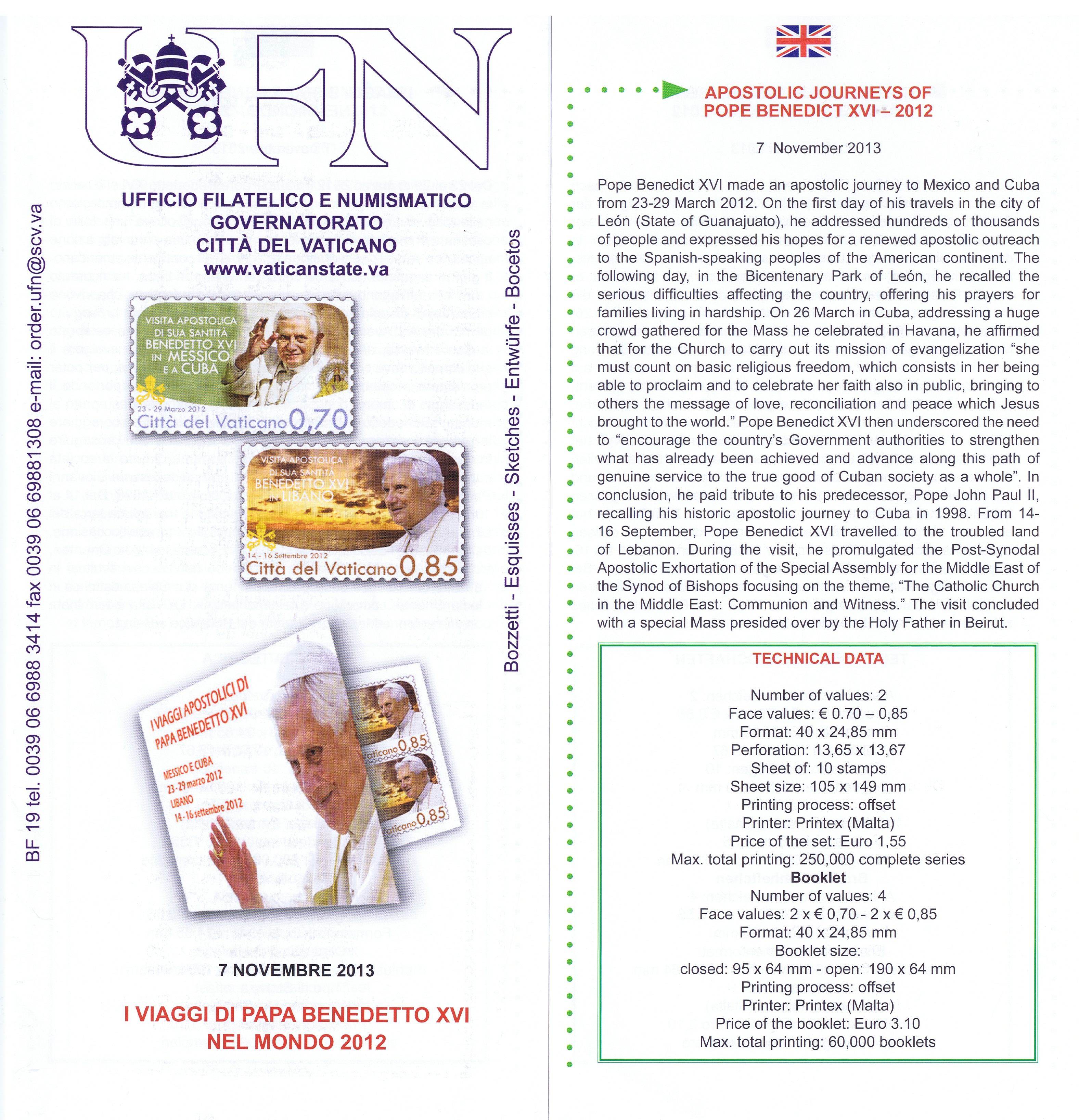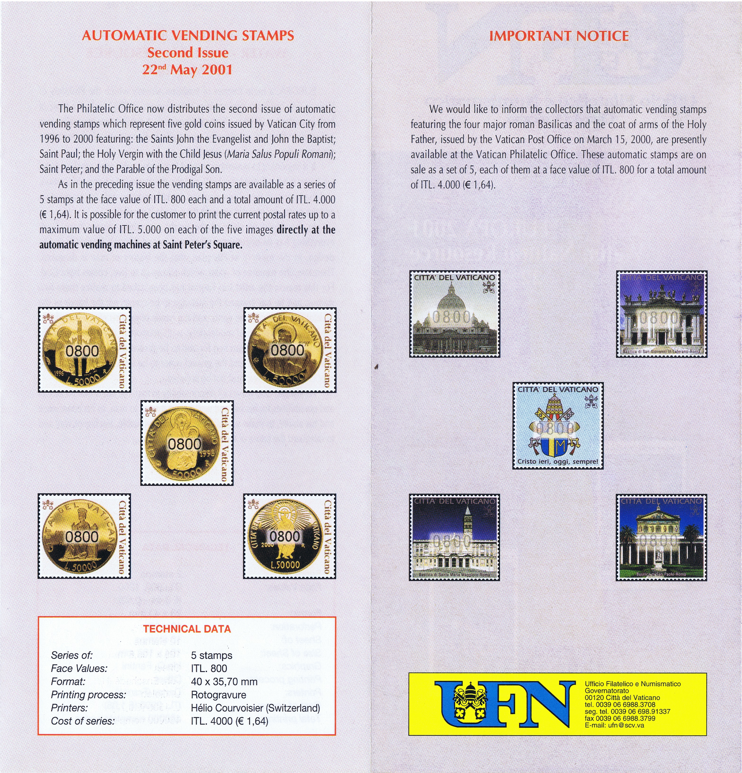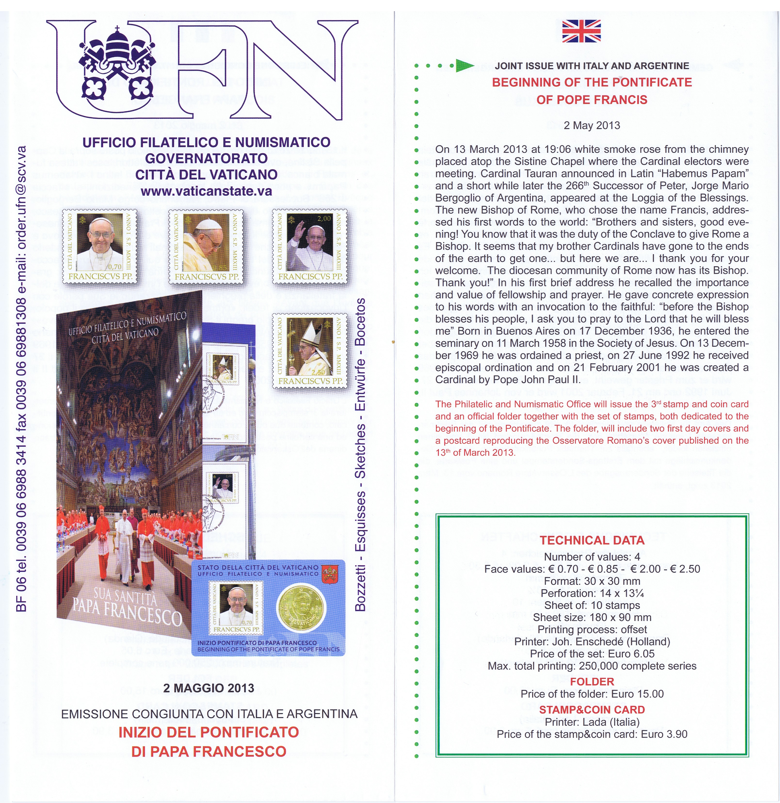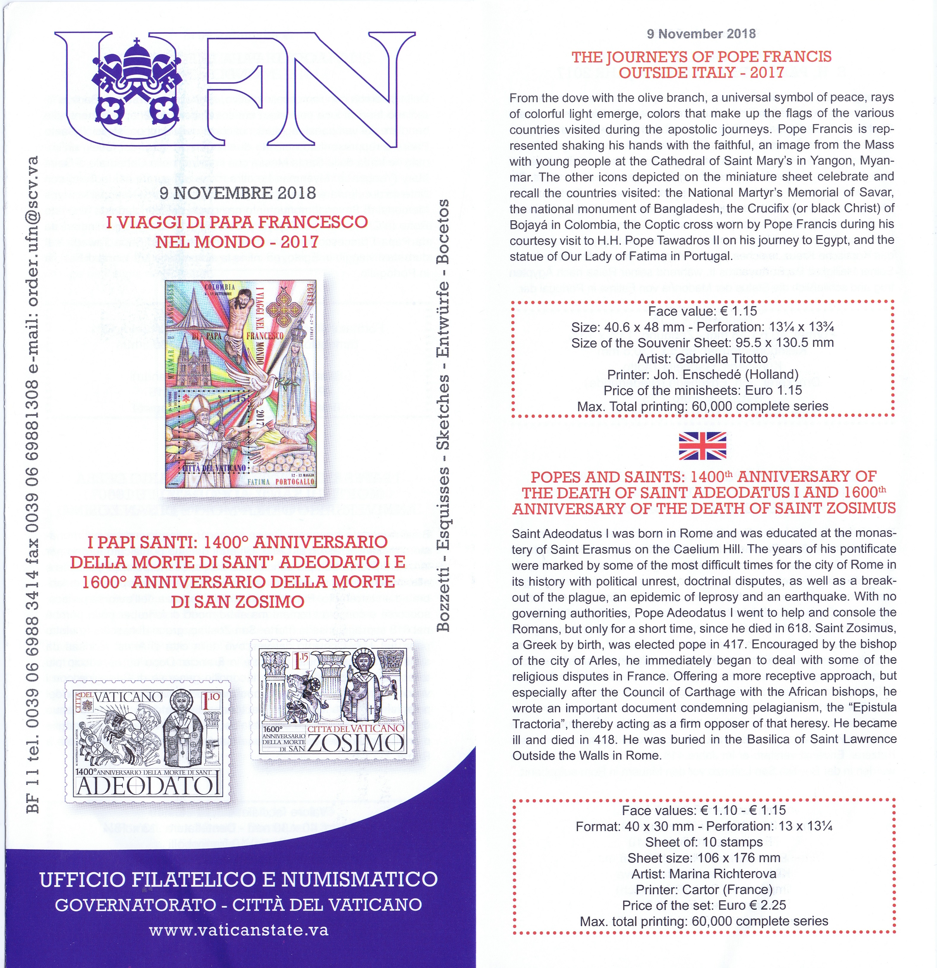 UFN New Issue Brouchures The Vatican discontiued publishing printed new issue information in 2021.