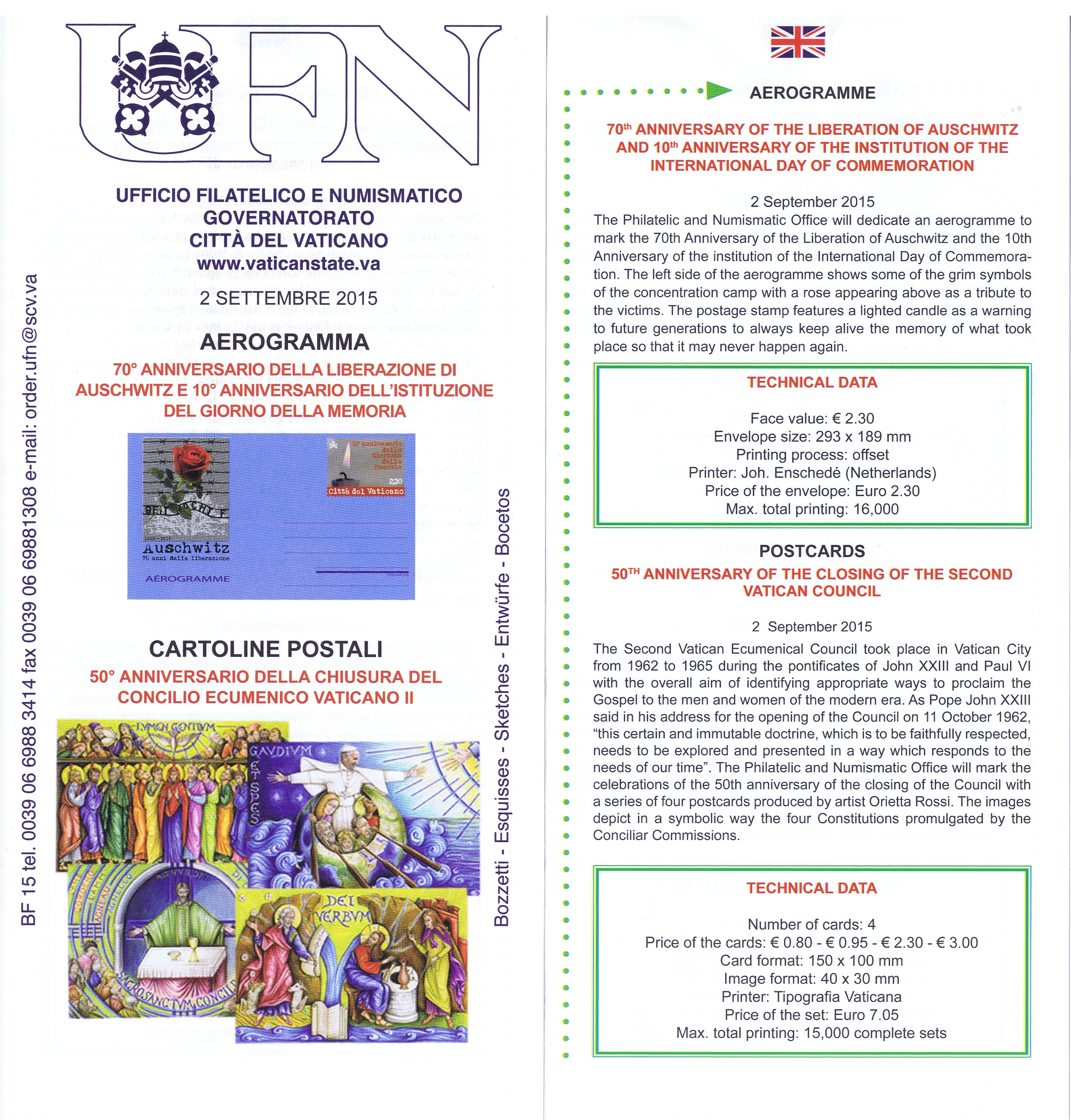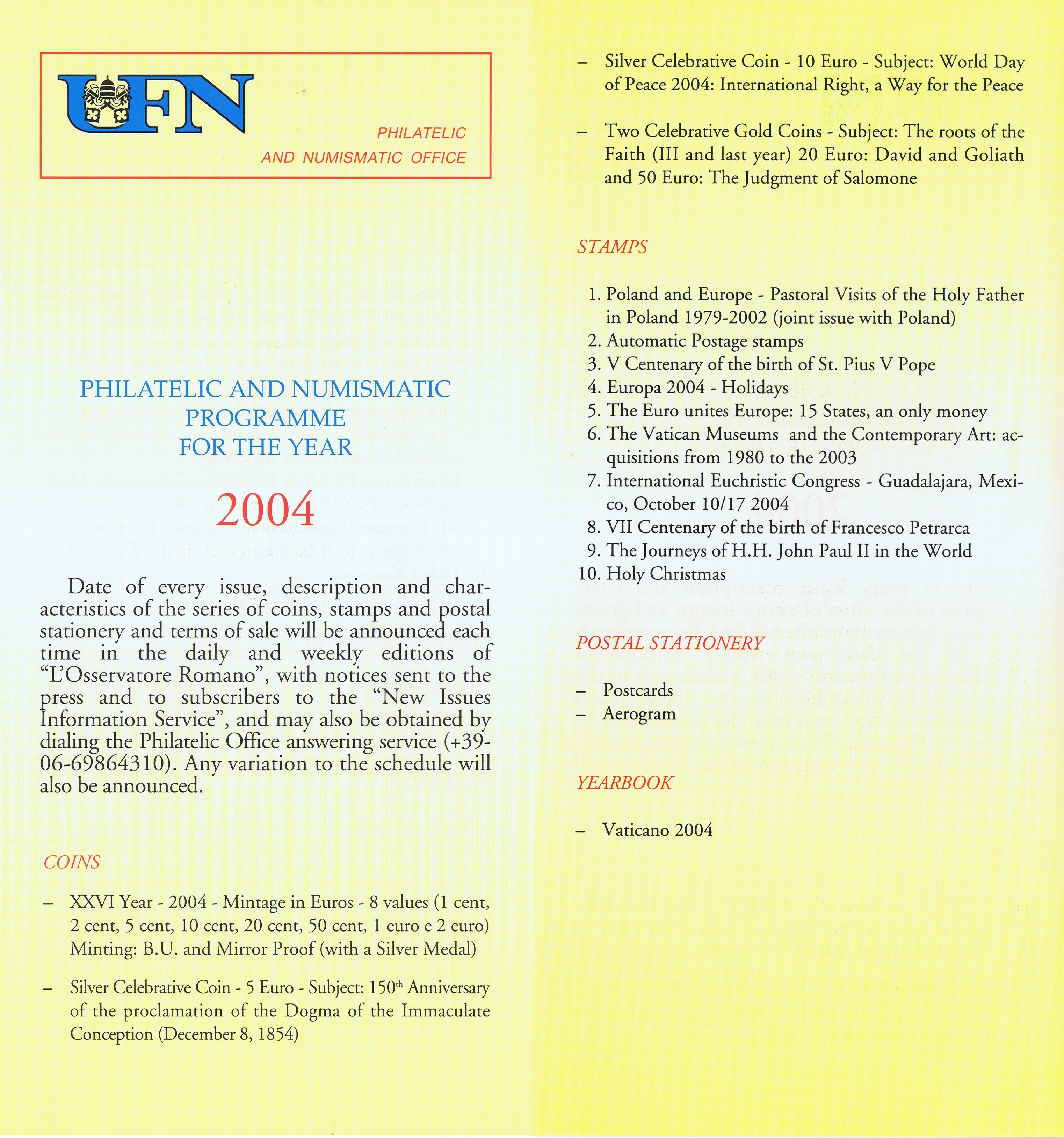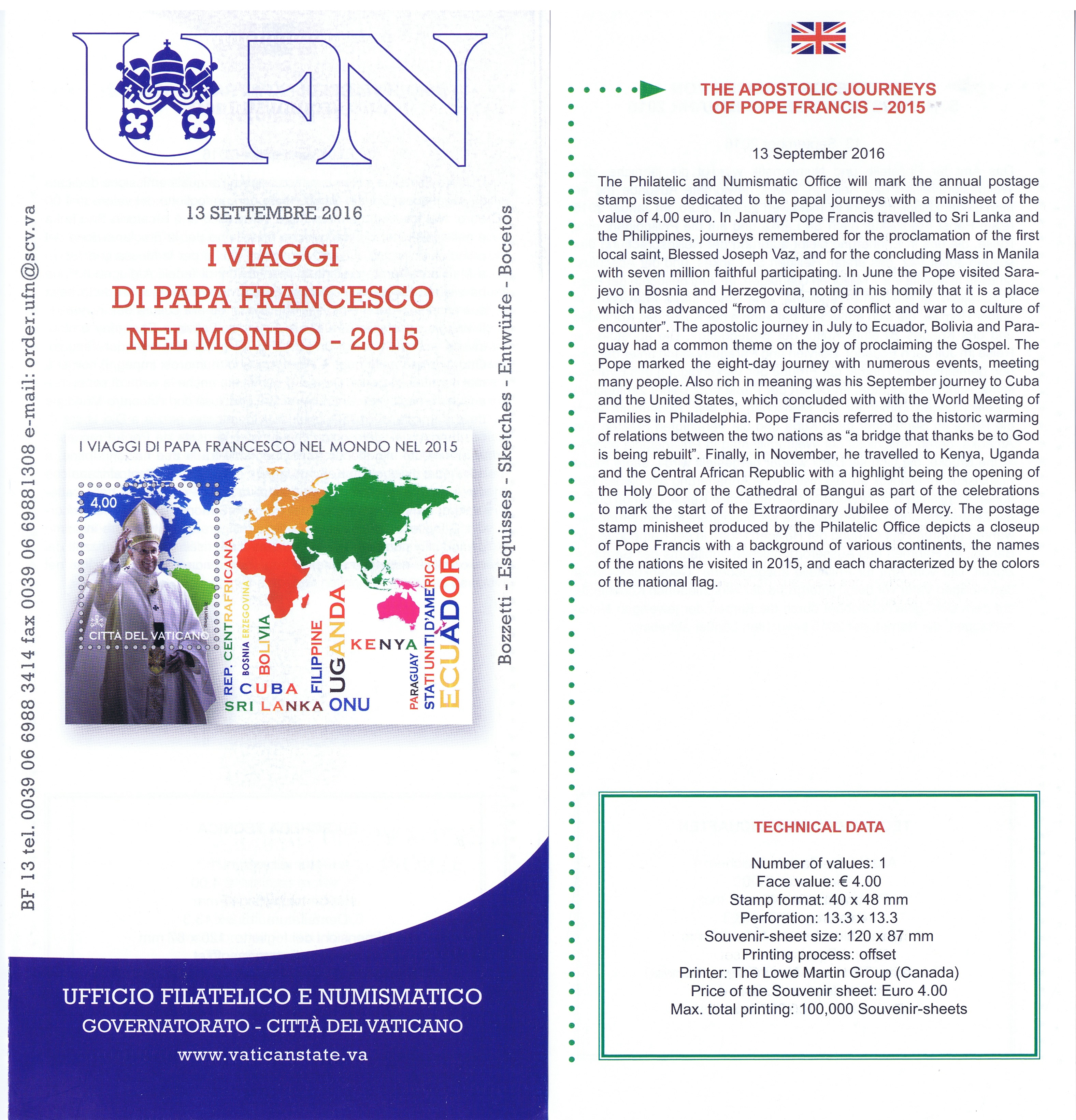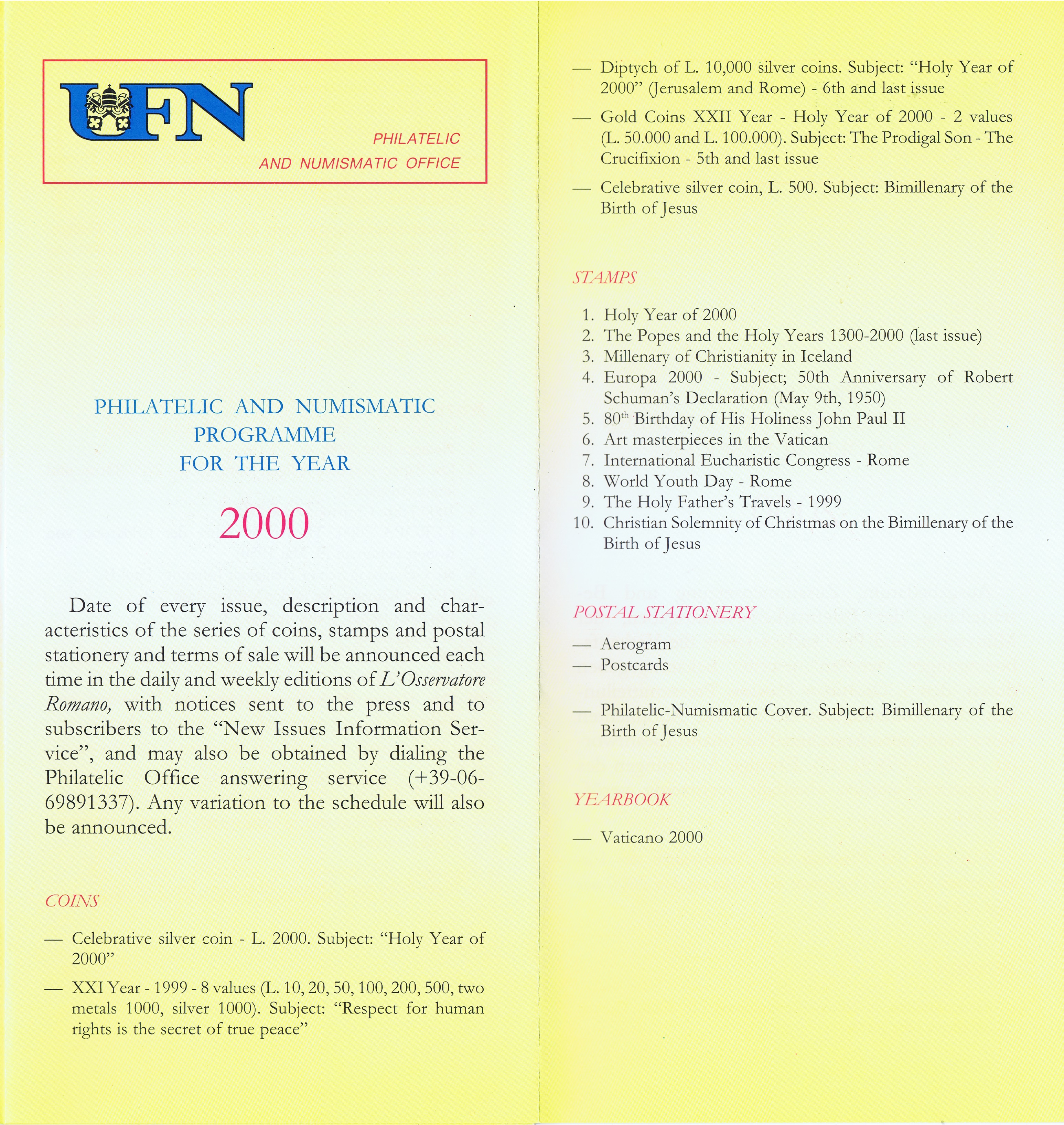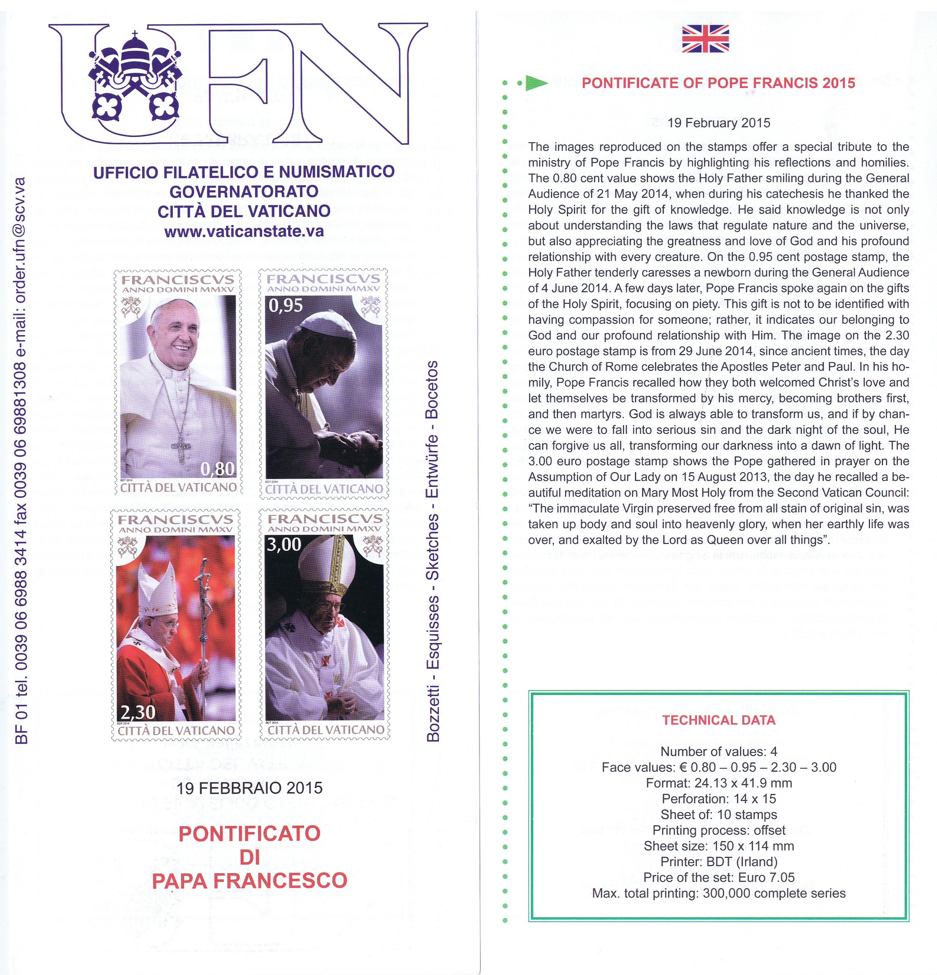 UFN New Issue Brouchures The Vatican discontiued publishing printed new issue information in 2021.