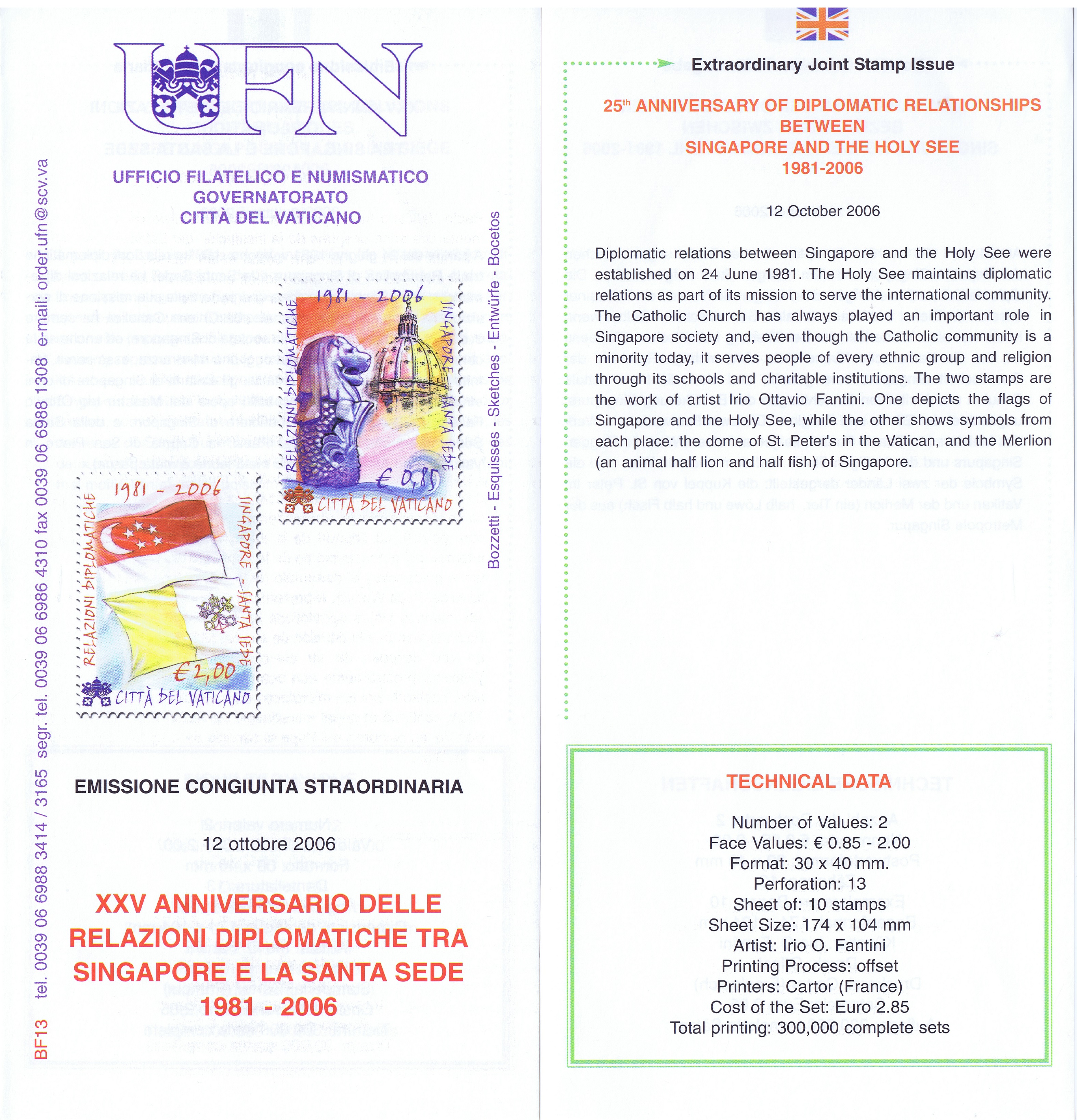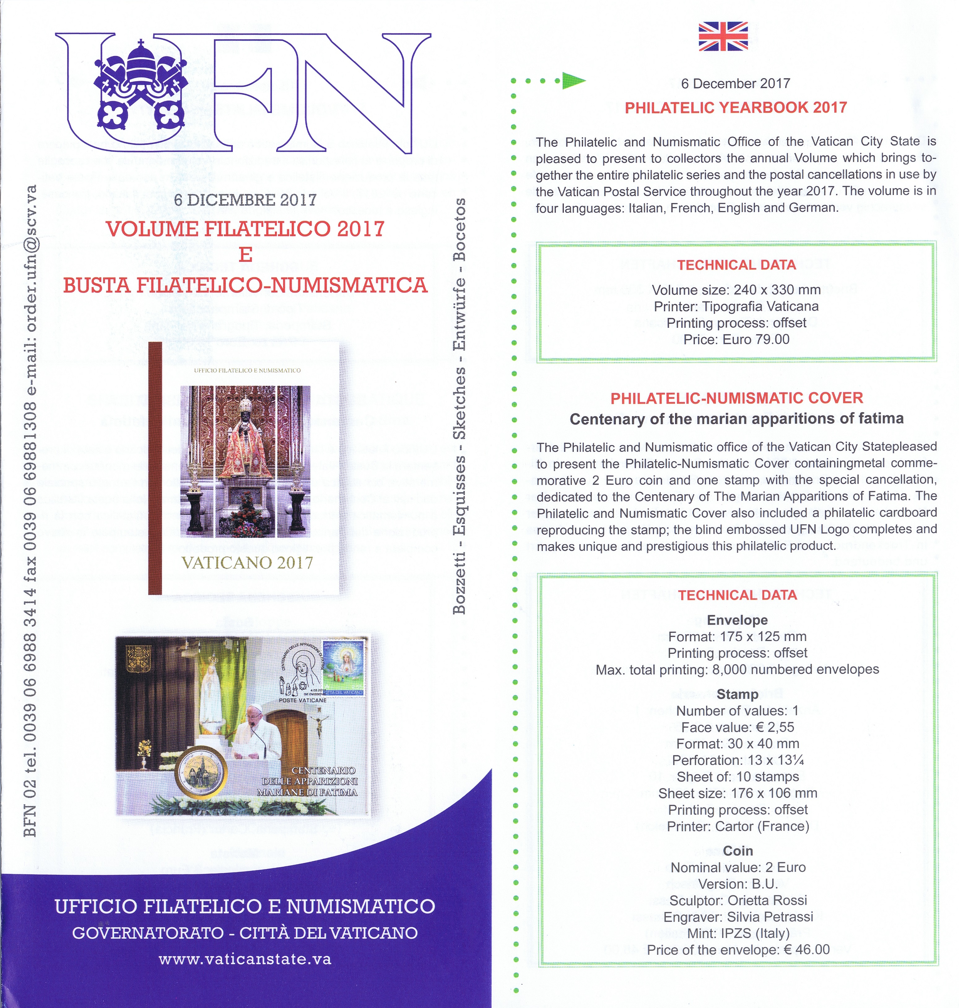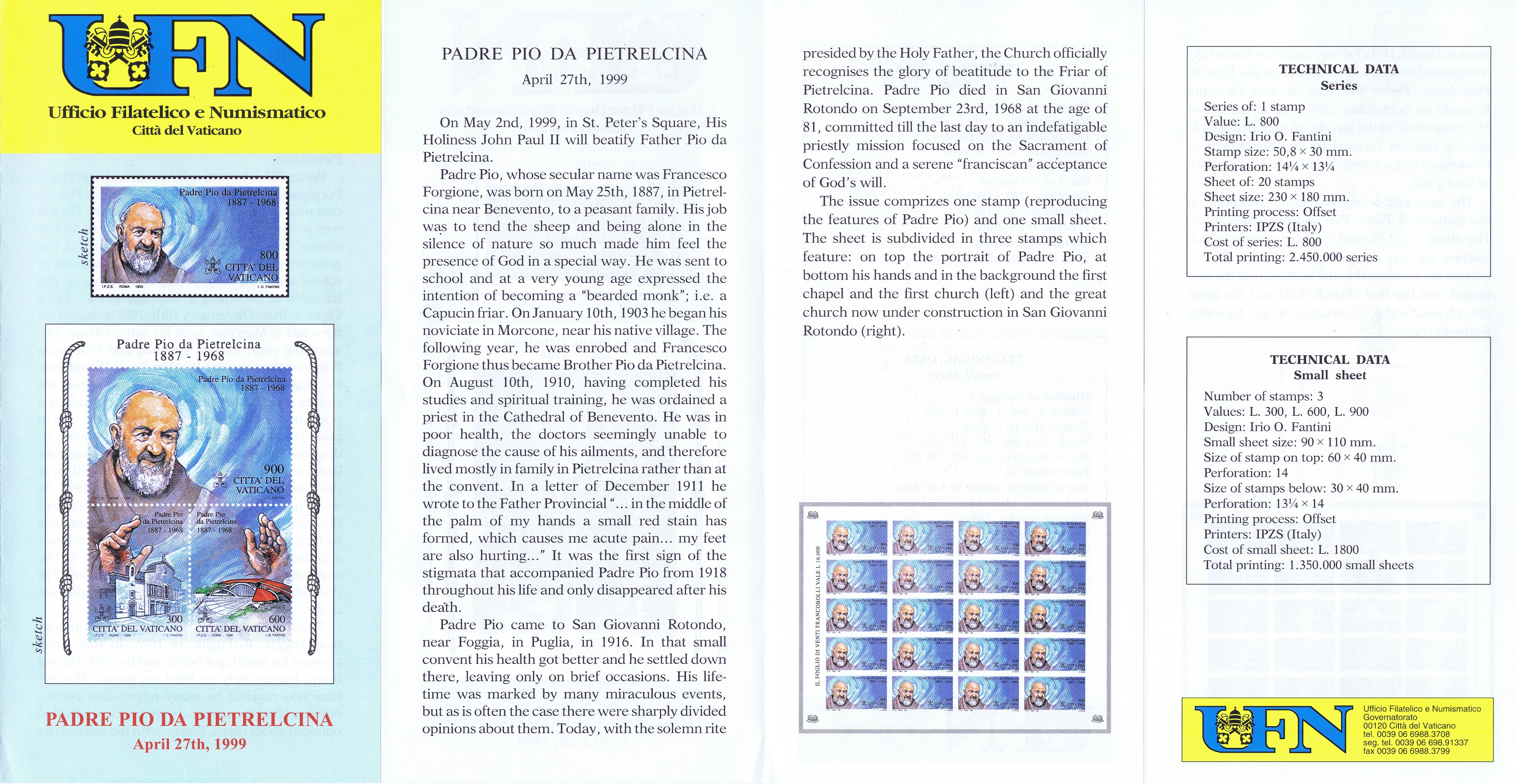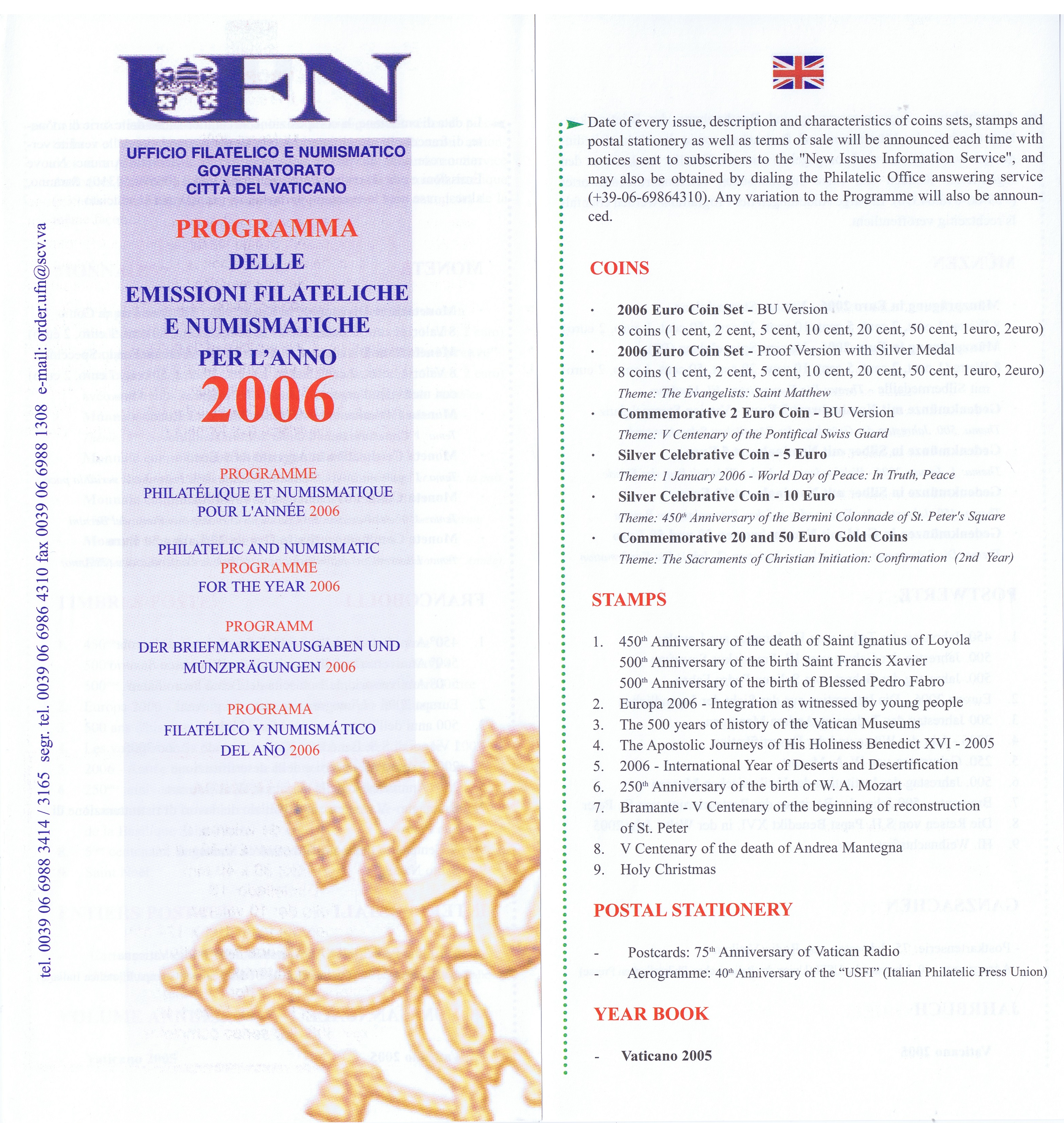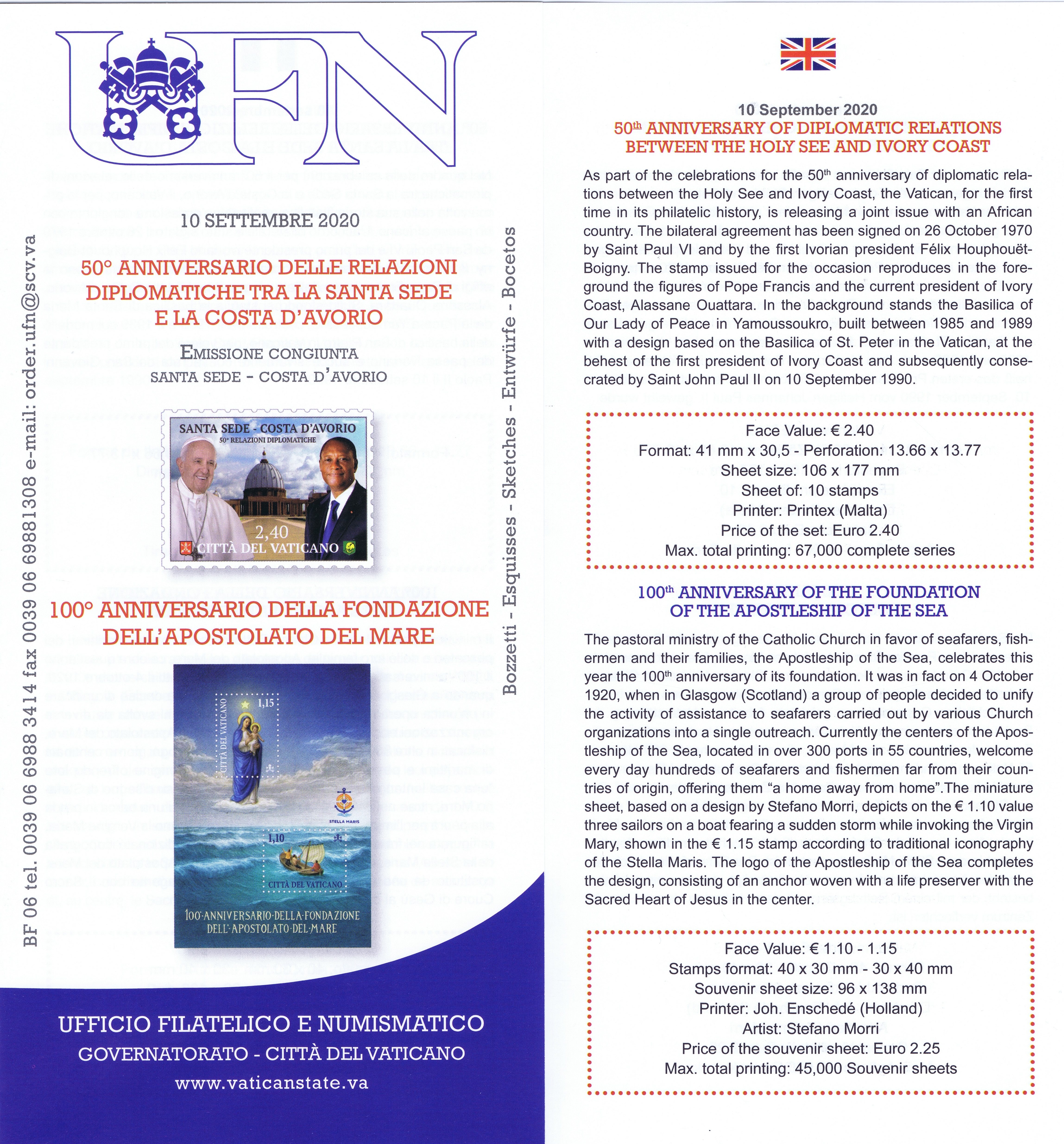 UFN New Issue Brouchures The Vatican discontiued publishing printed new issue information in 2021.