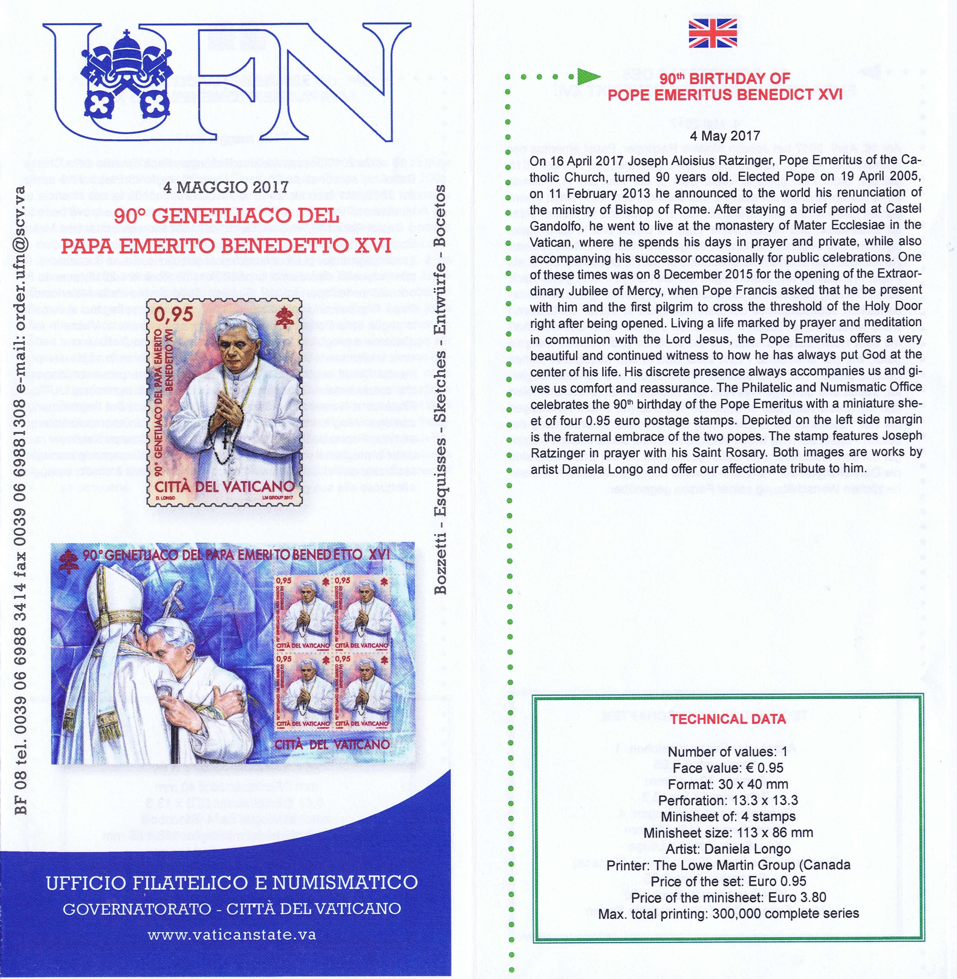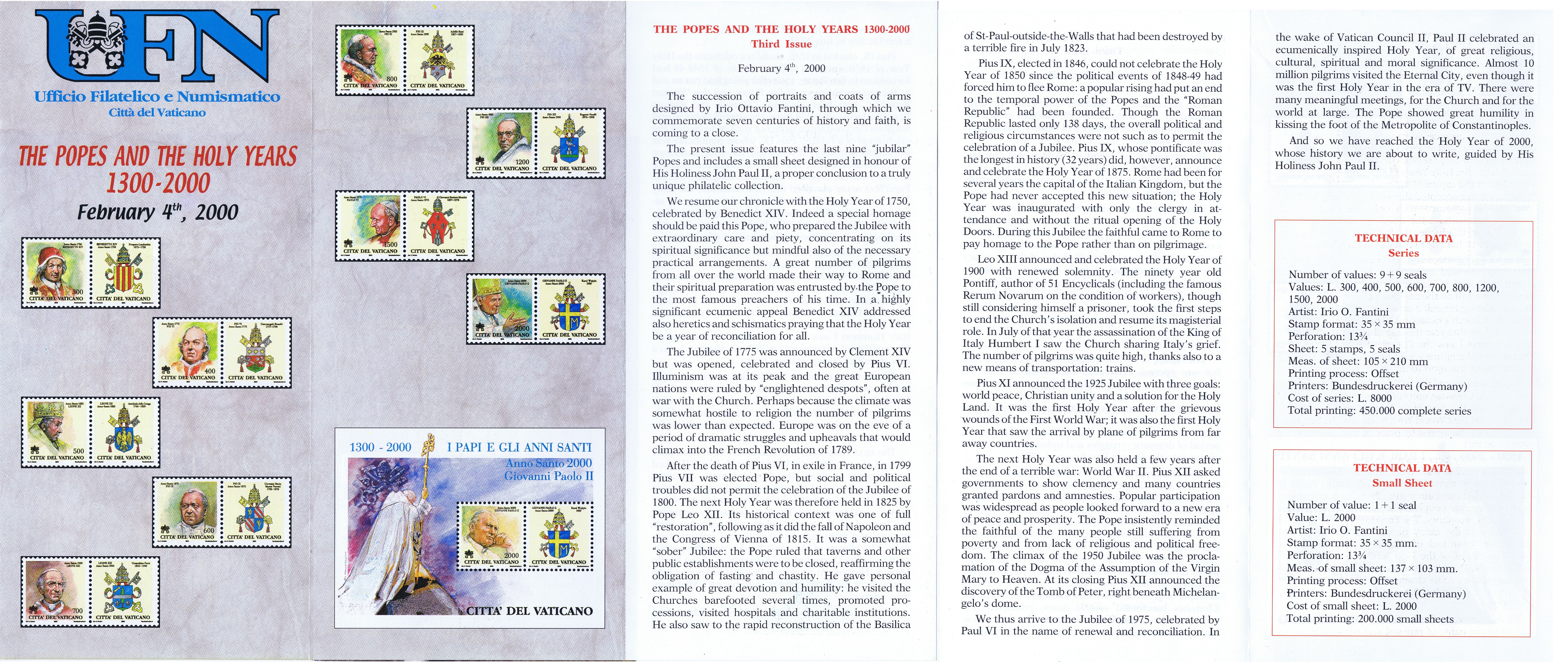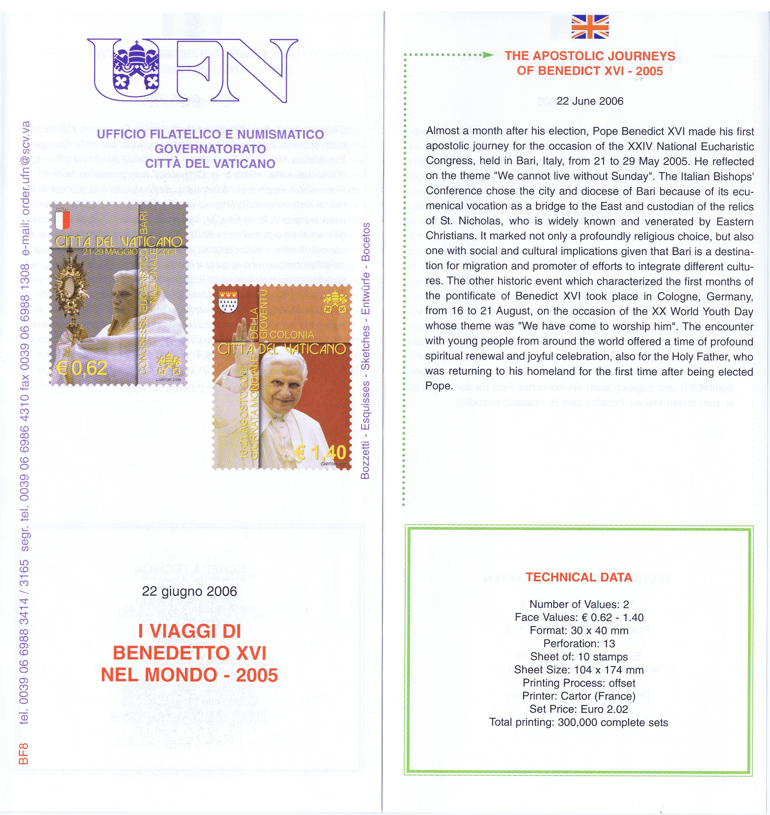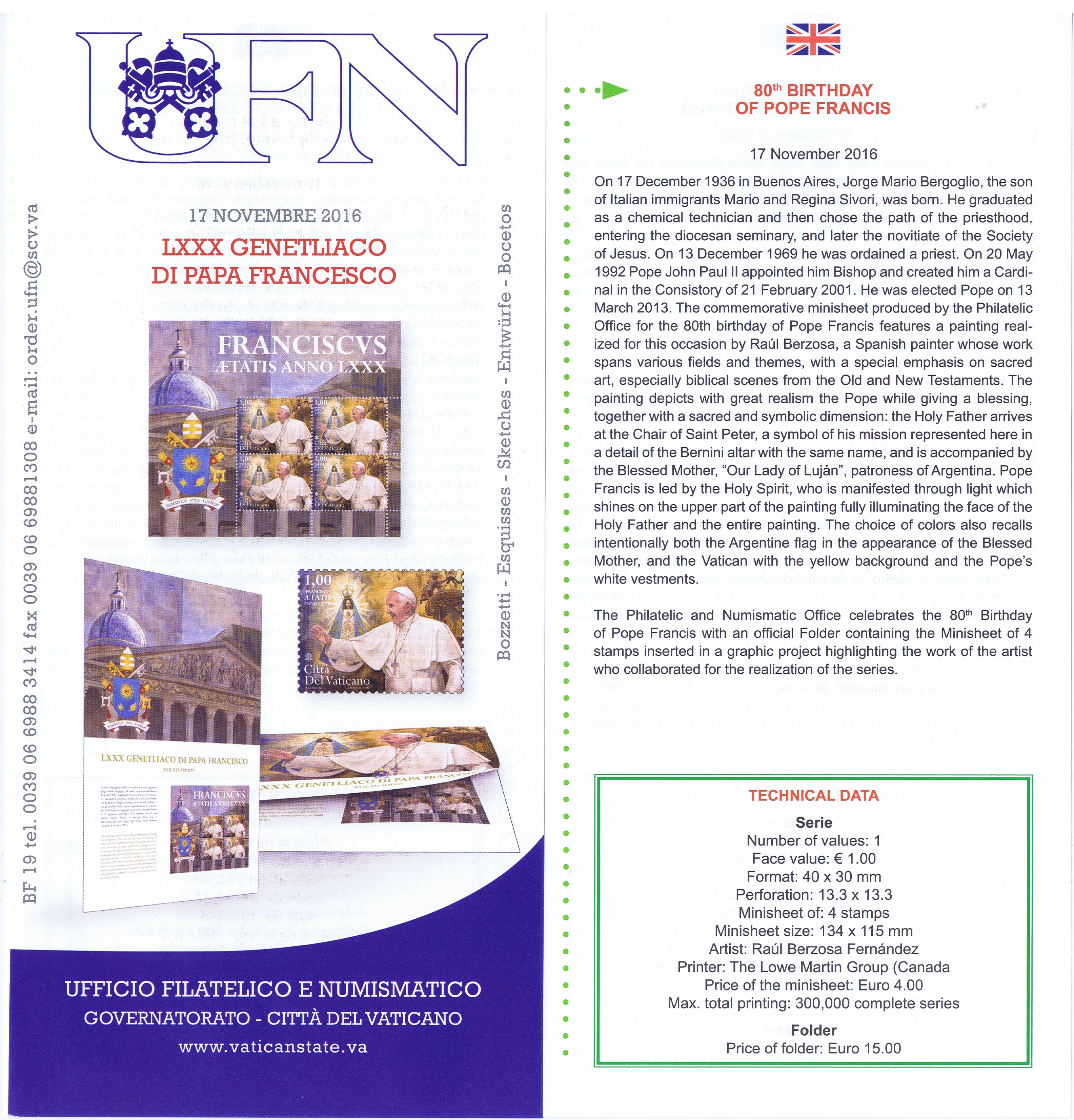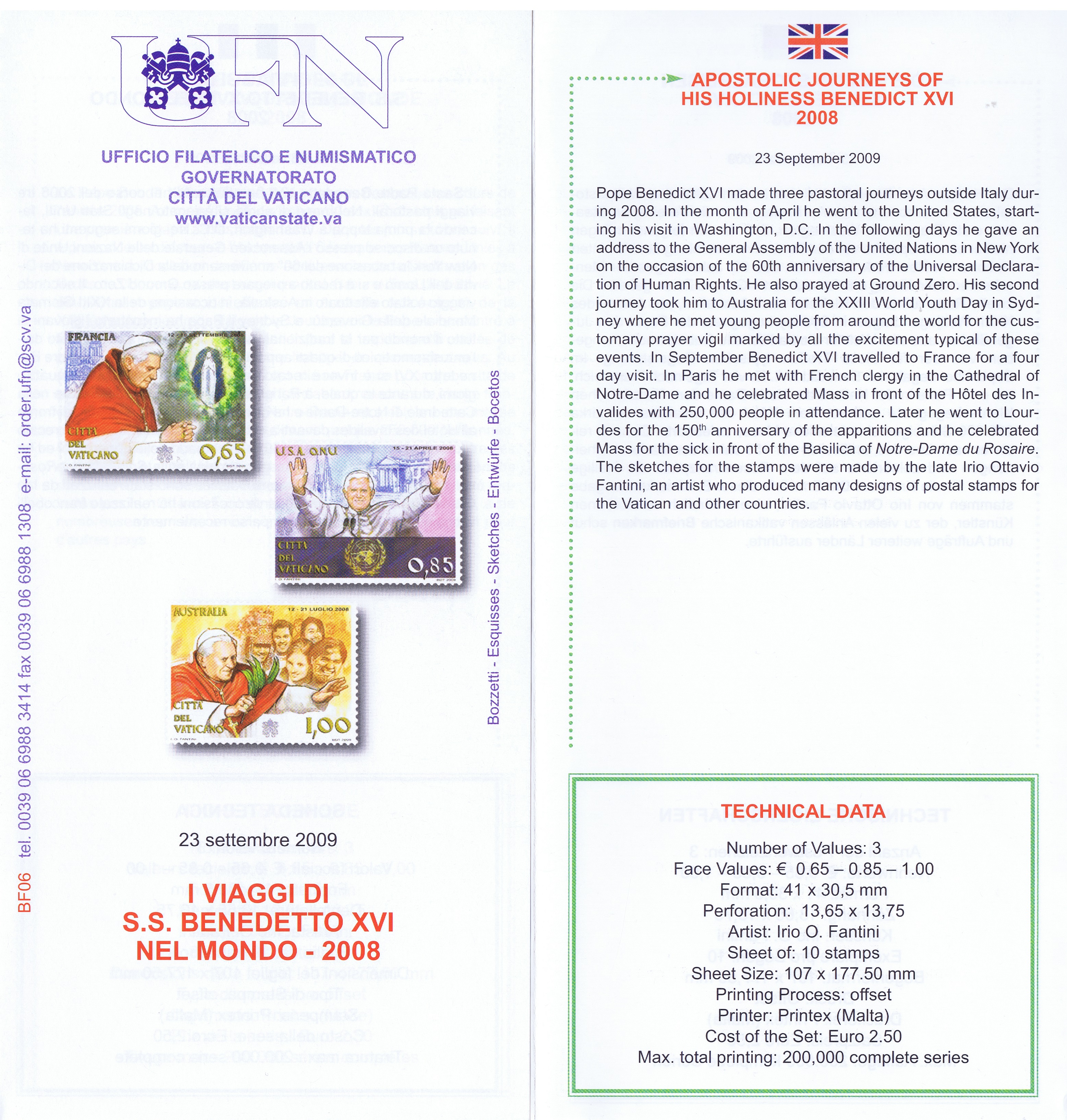 UFN New Issue Brouchures The Vatican discontiued publishing printed new issue information in 2021.