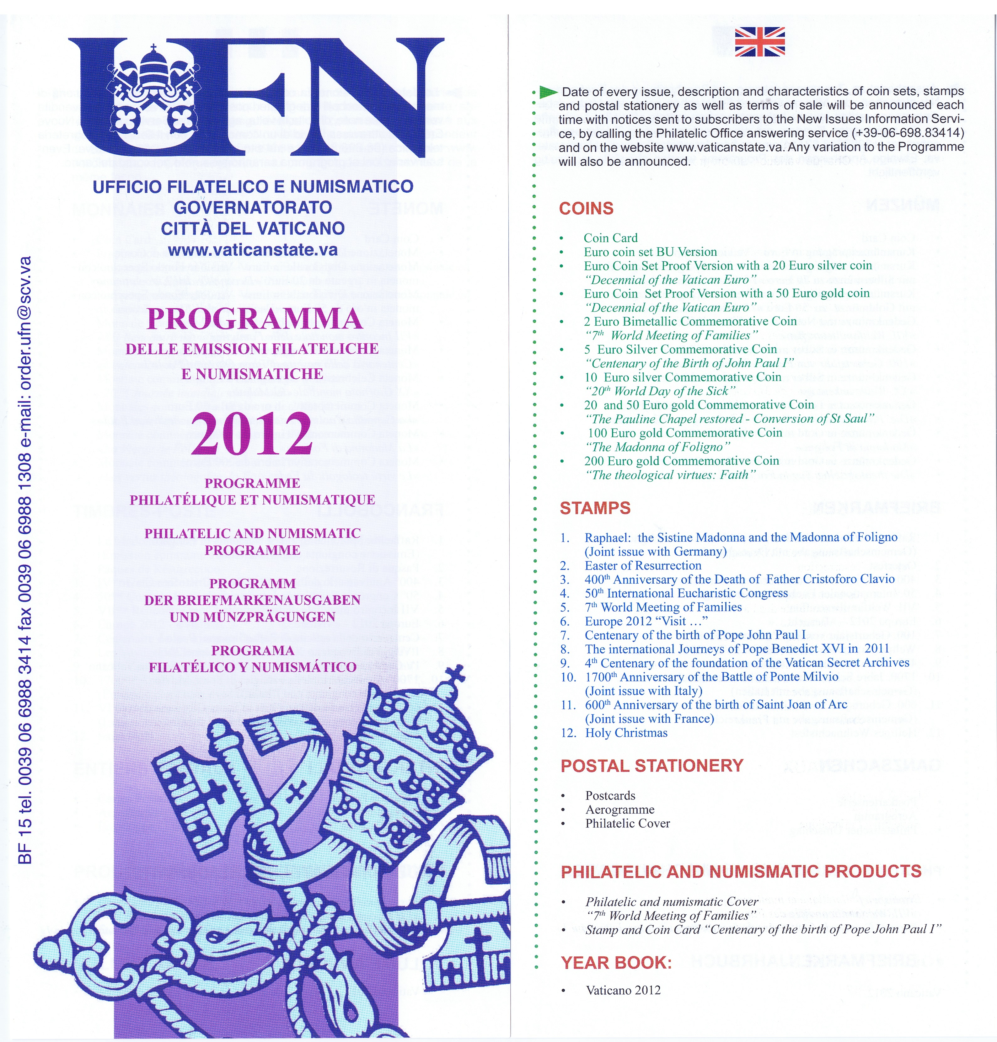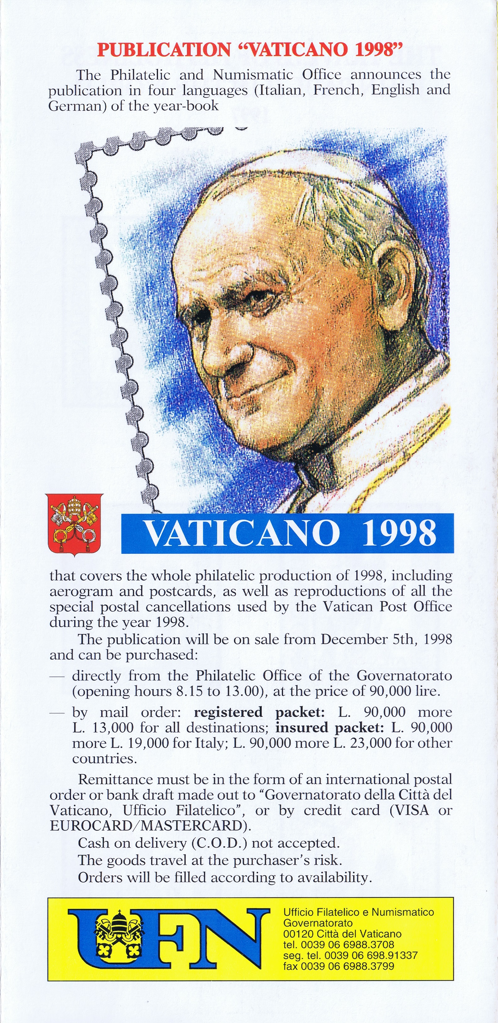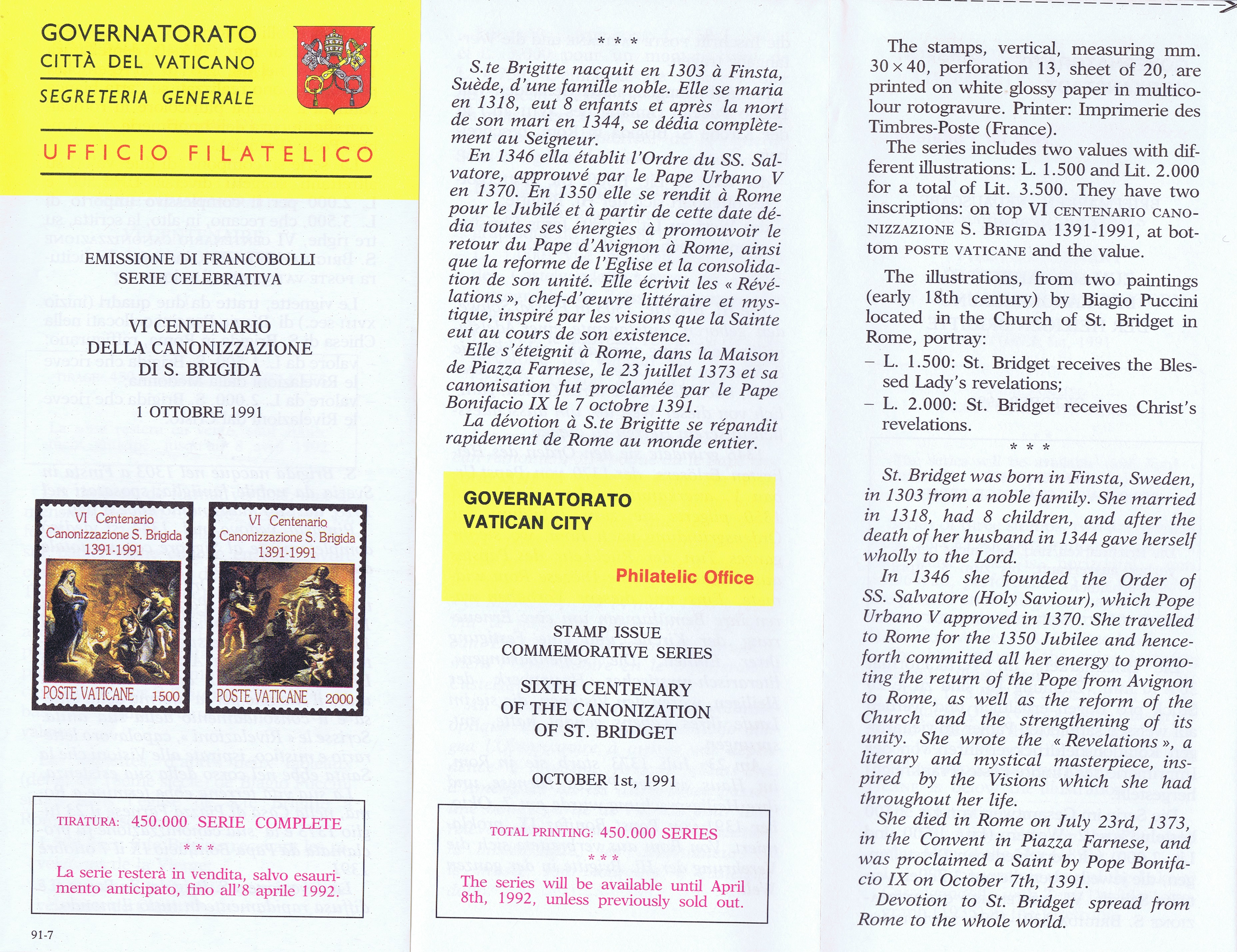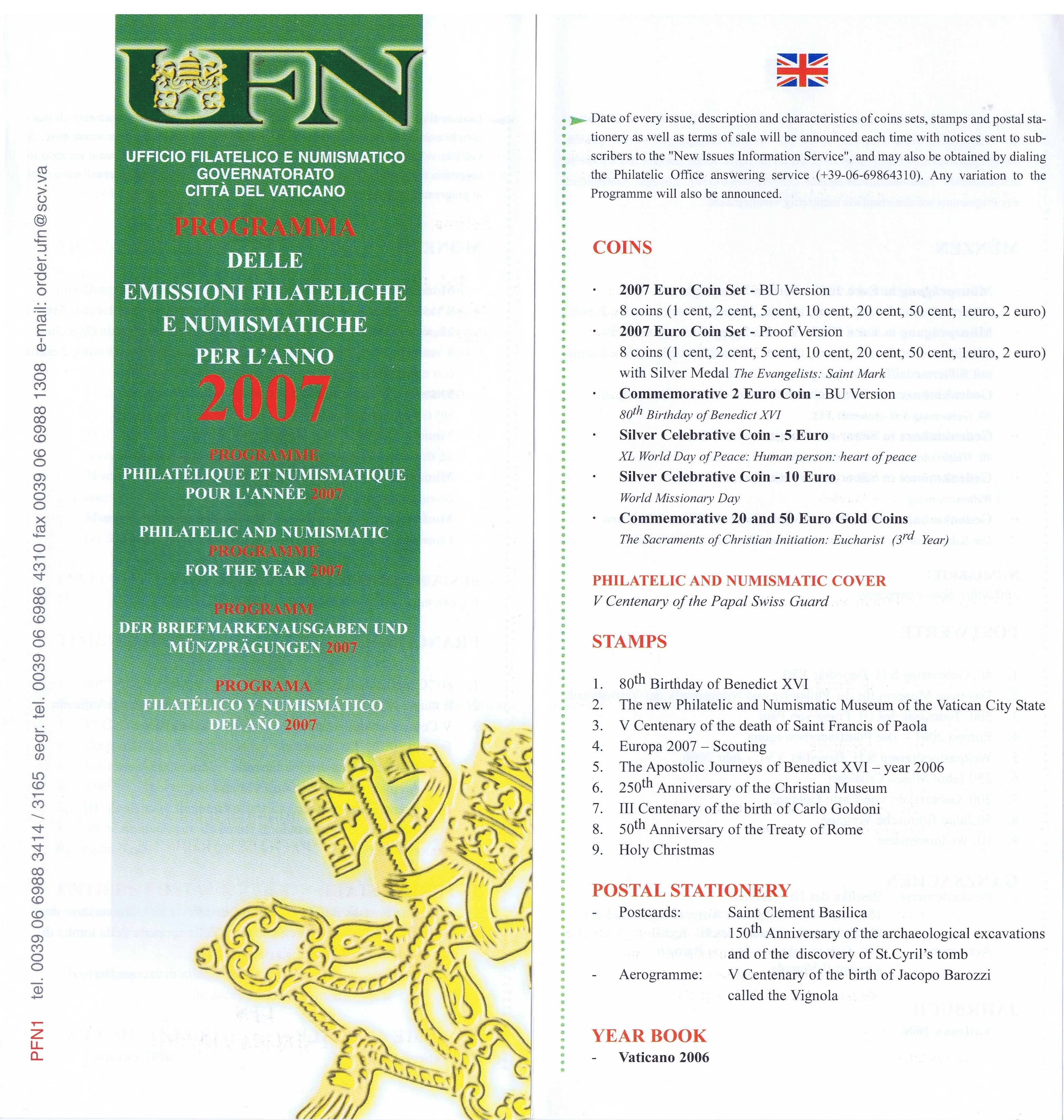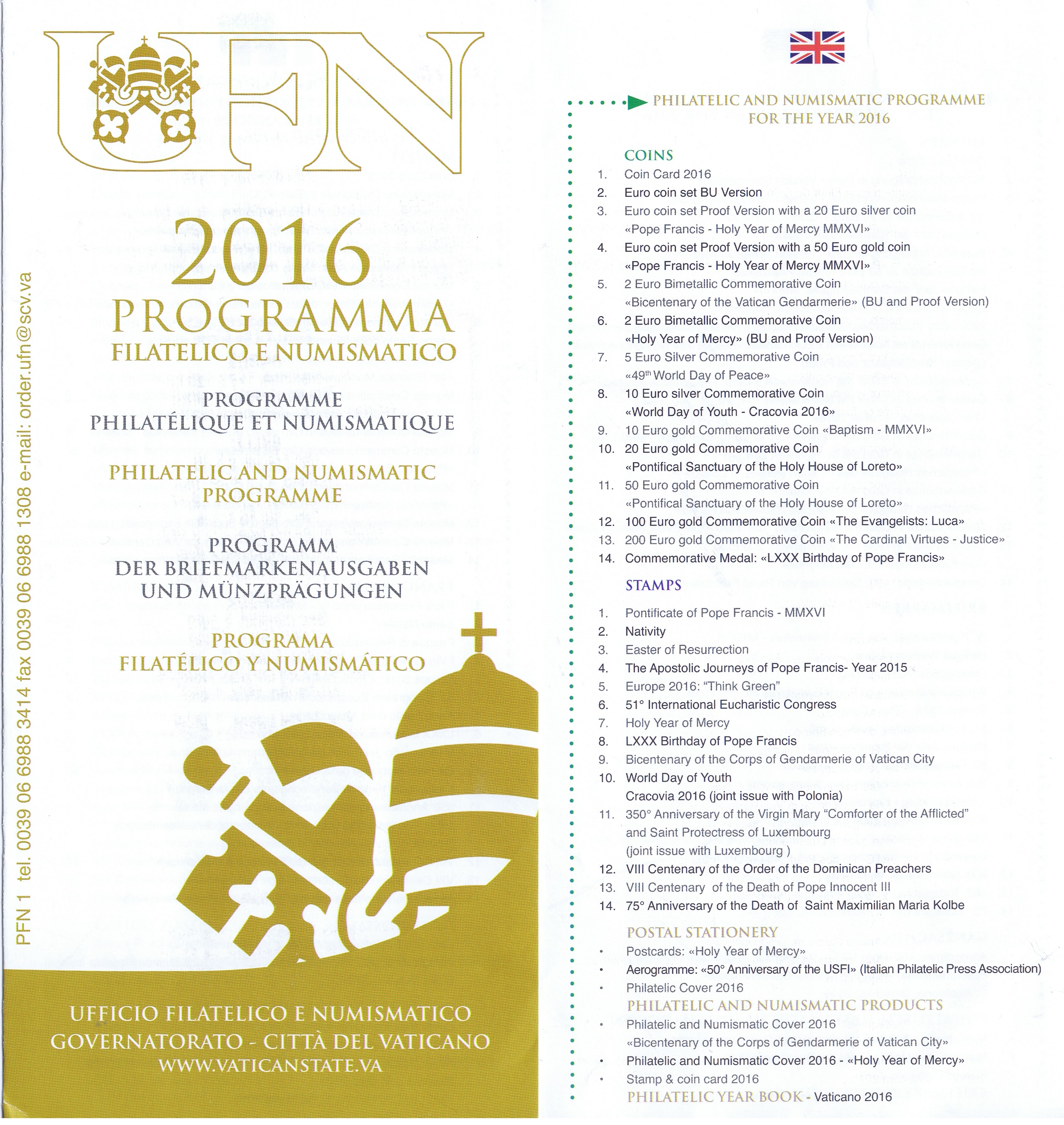 UFN New Issue Brouchures The Vatican discontiued publishing printed new issue information in 2021.