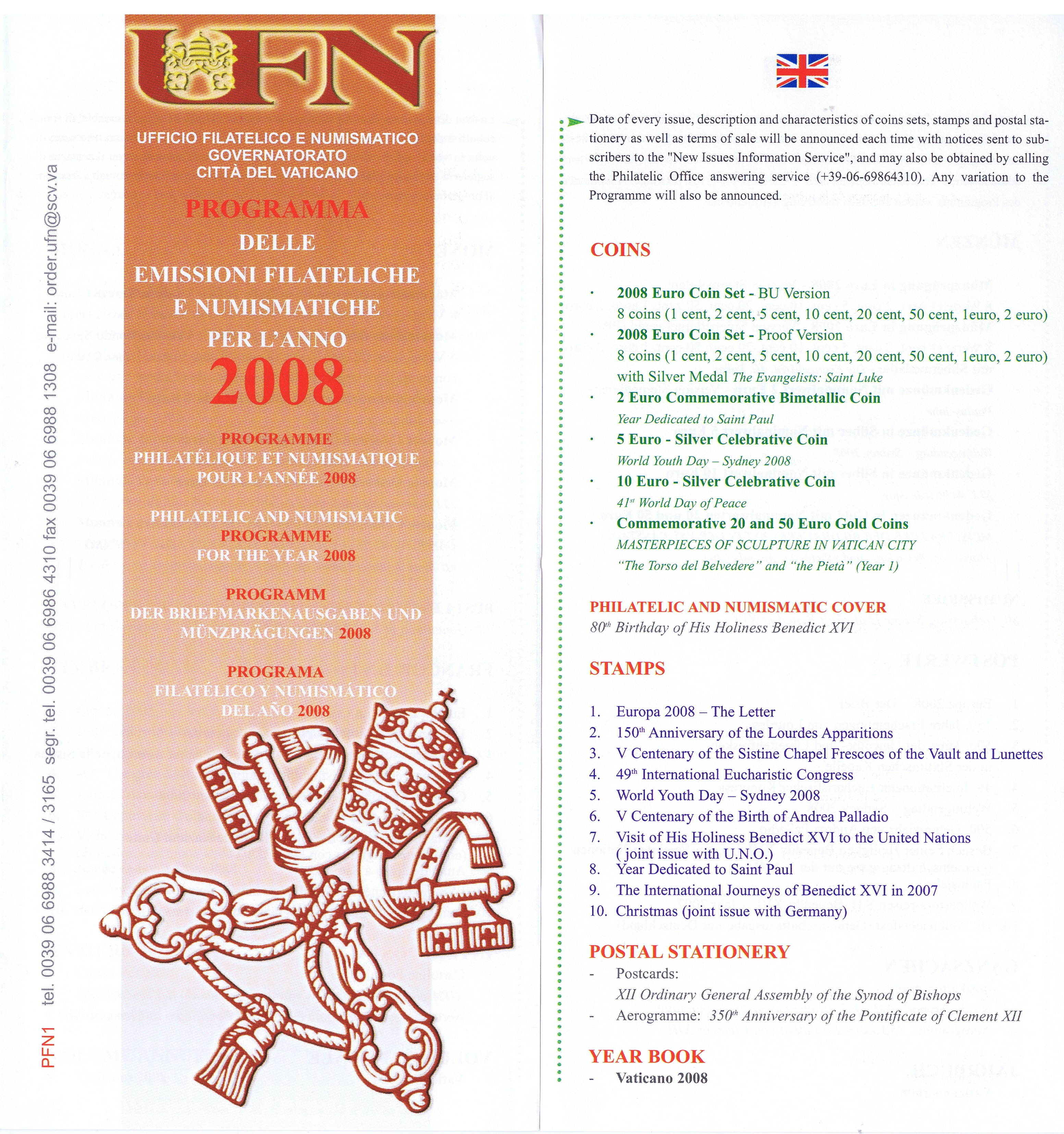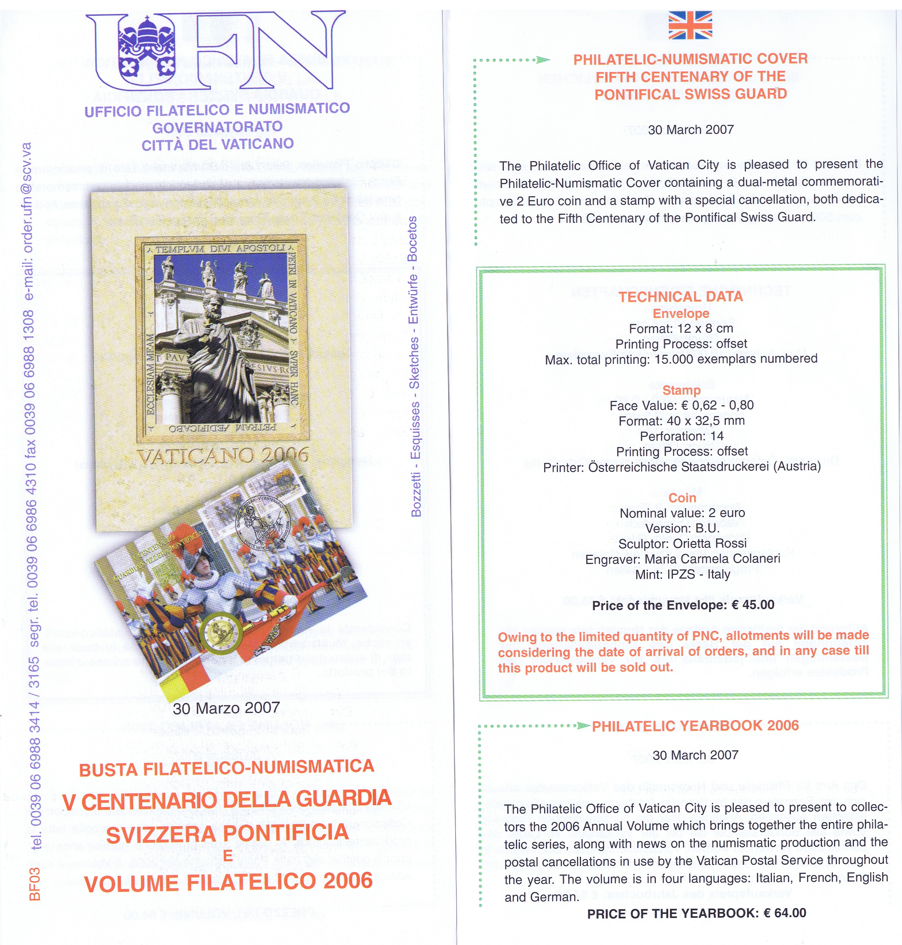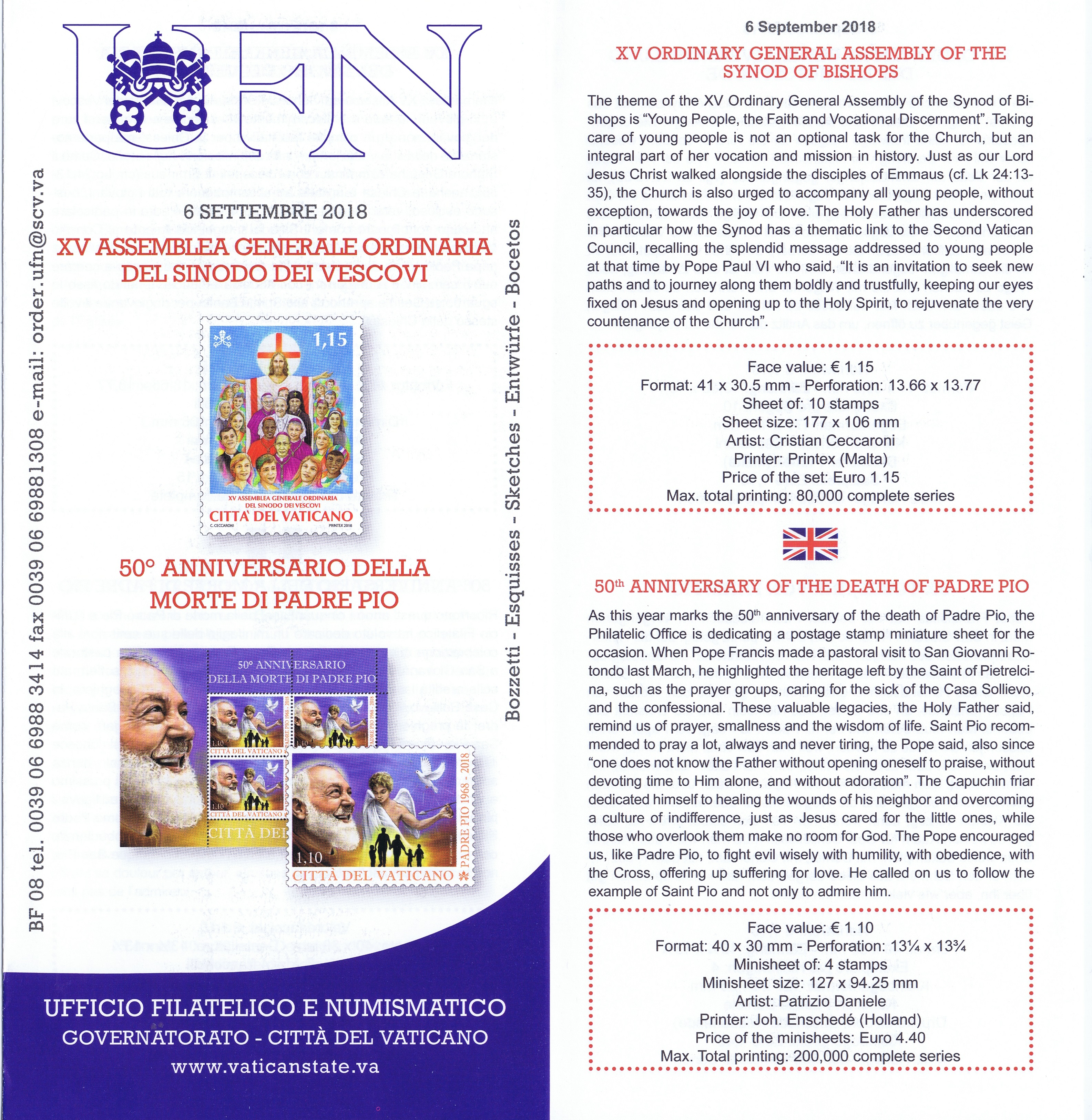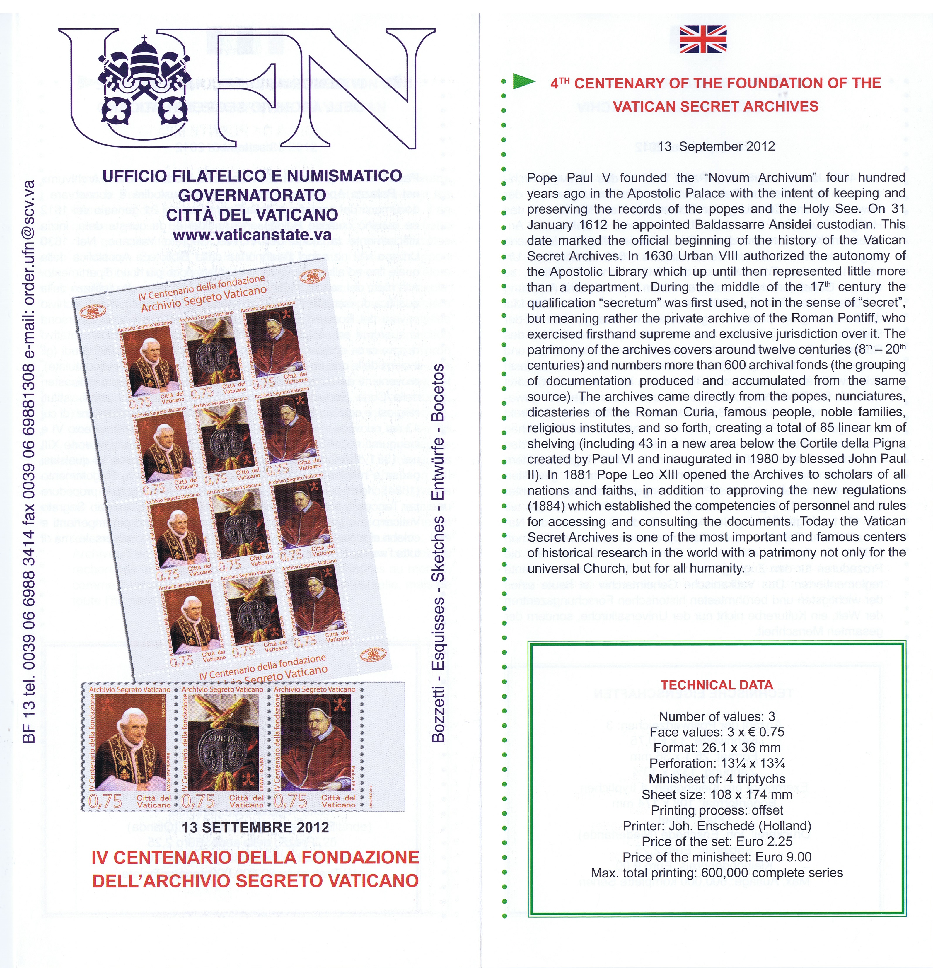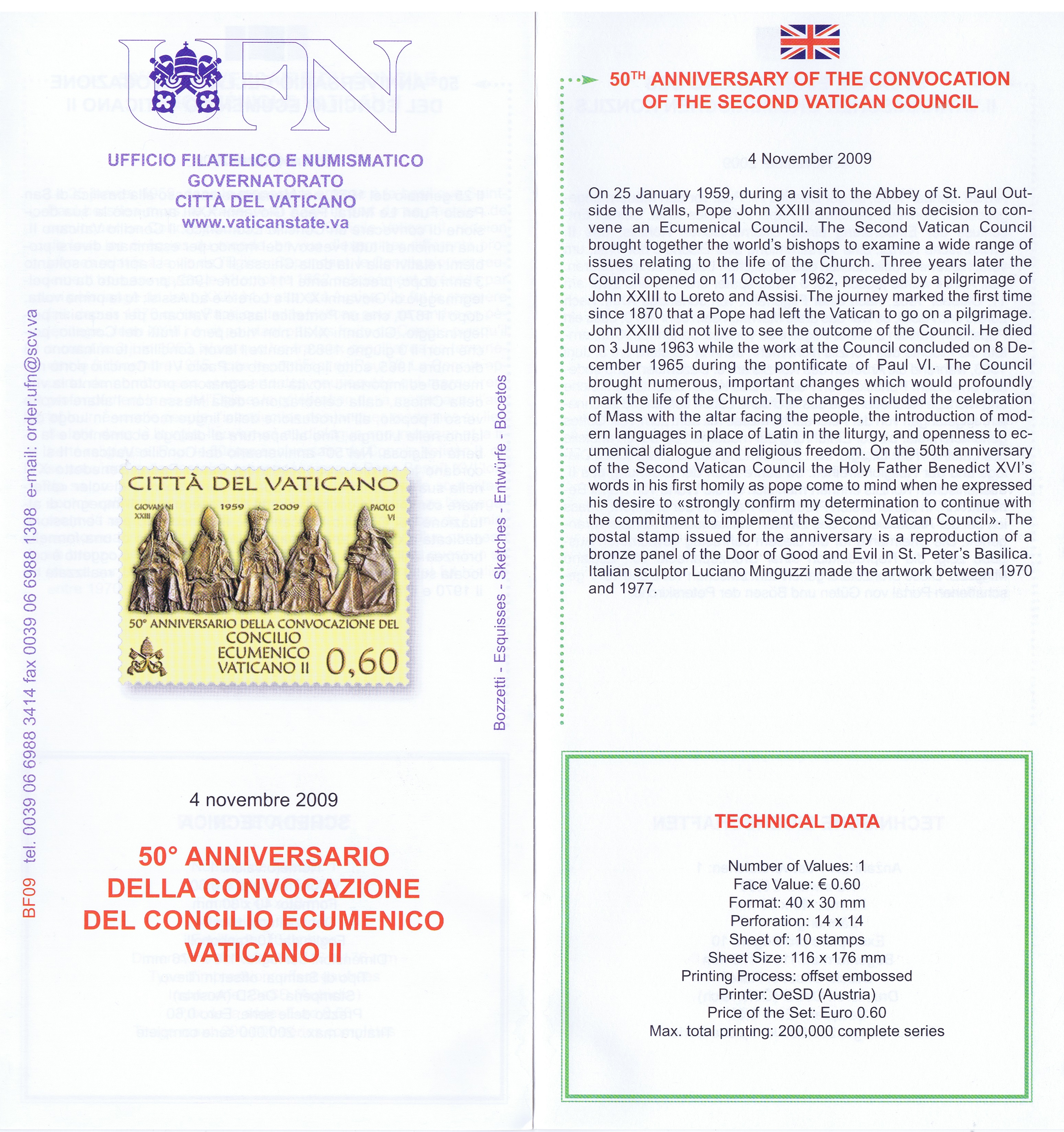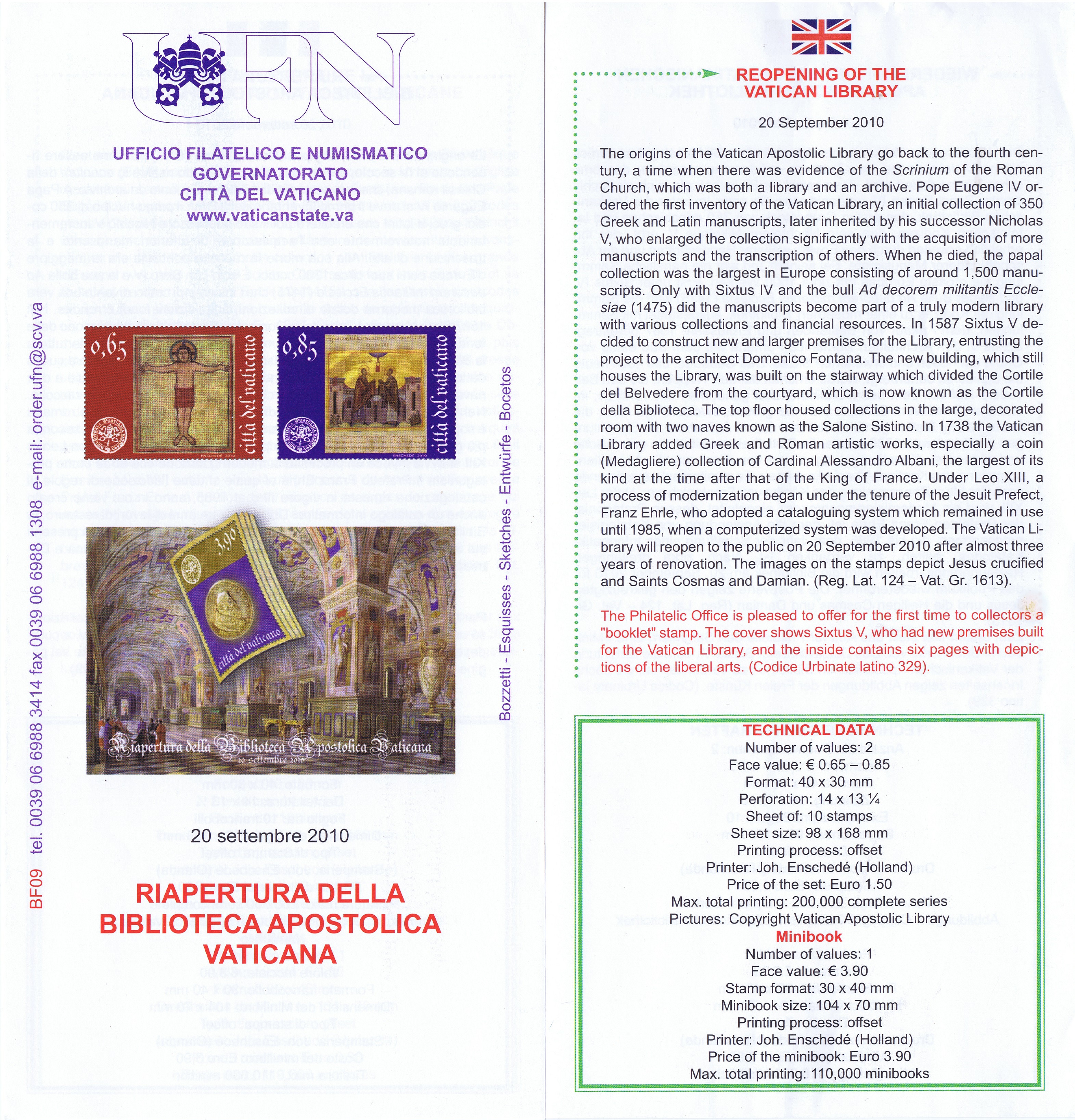 UFN New Issue Brouchures The Vatican discontiued publishing printed new issue information in 2021.