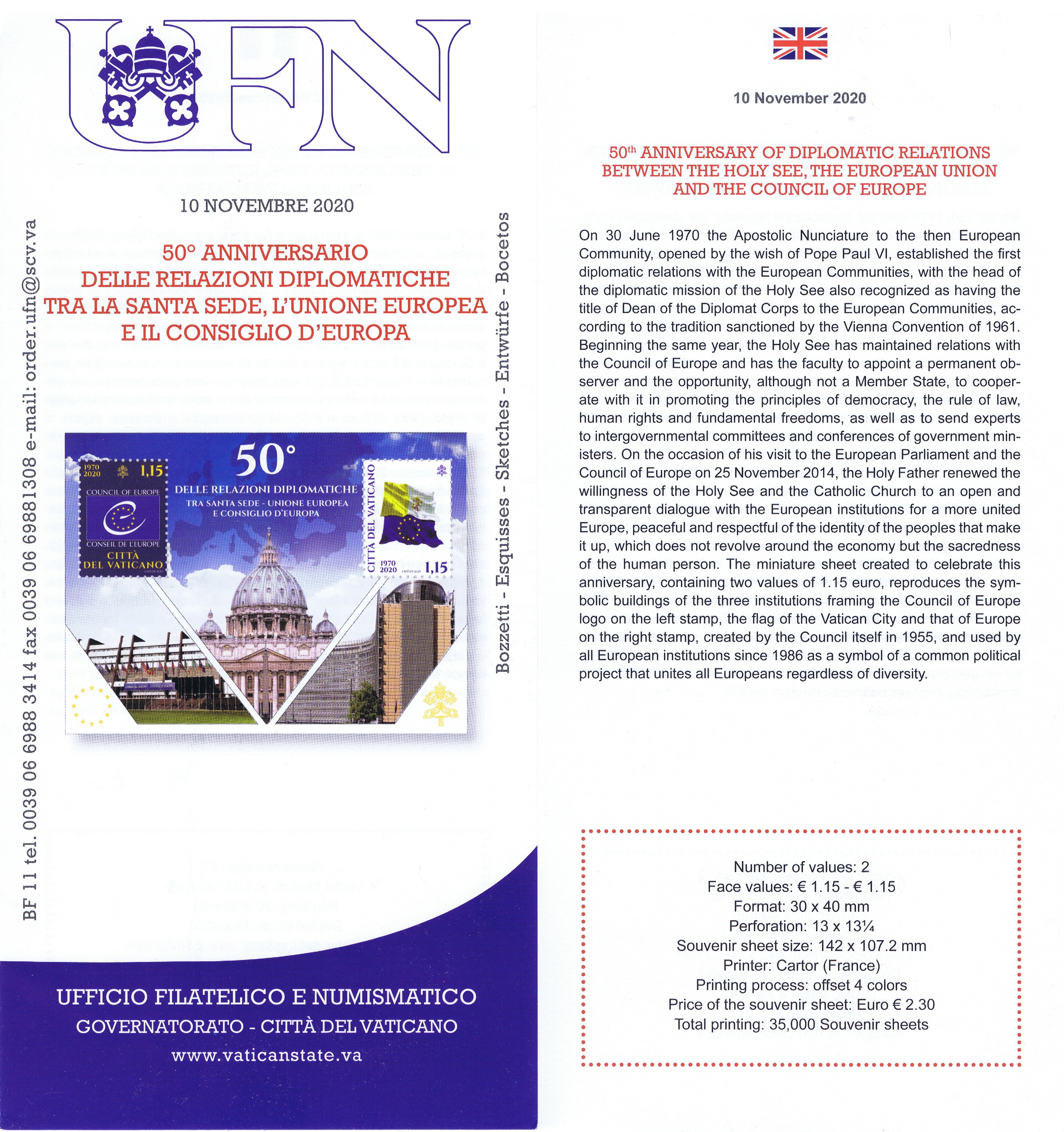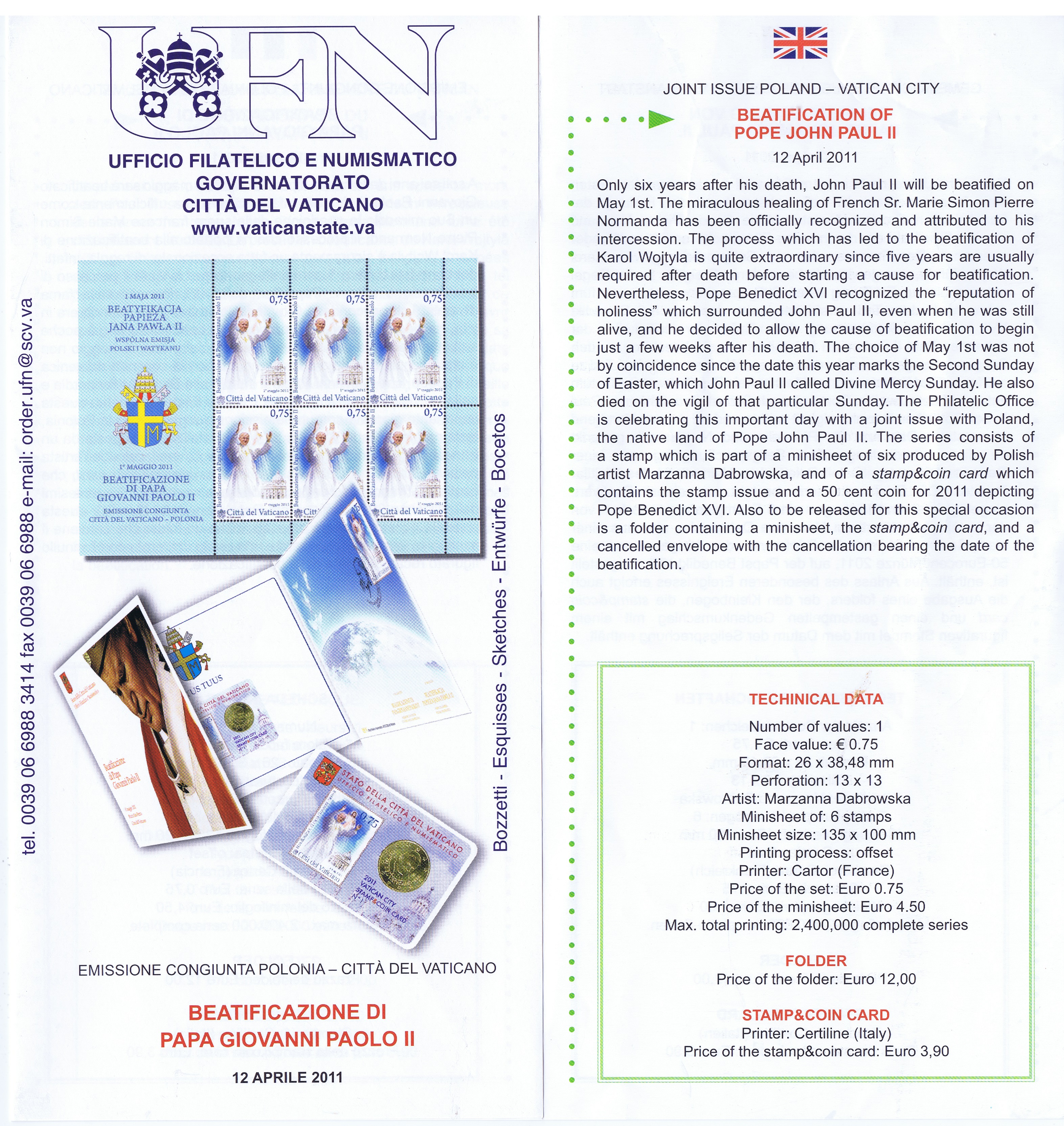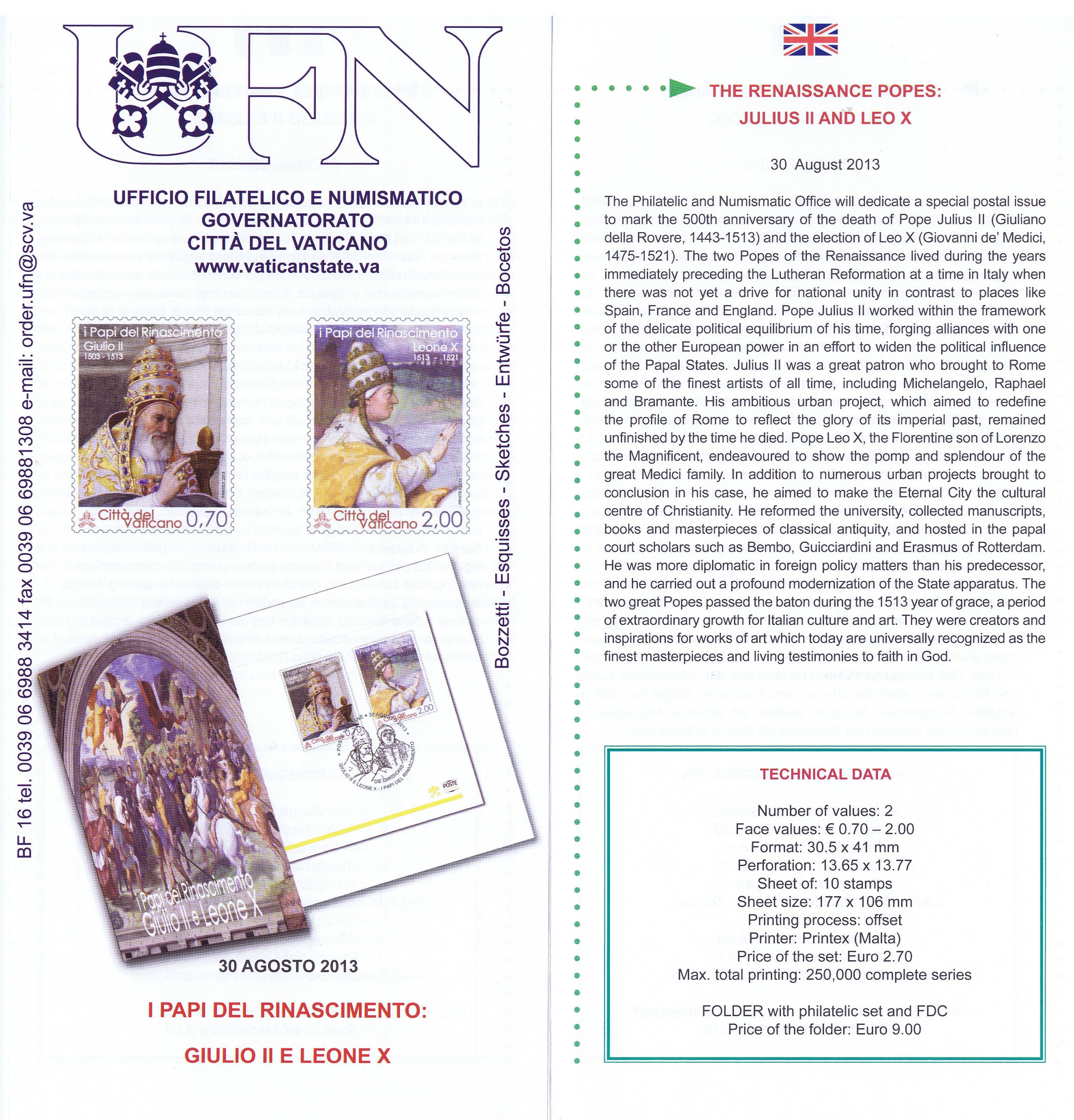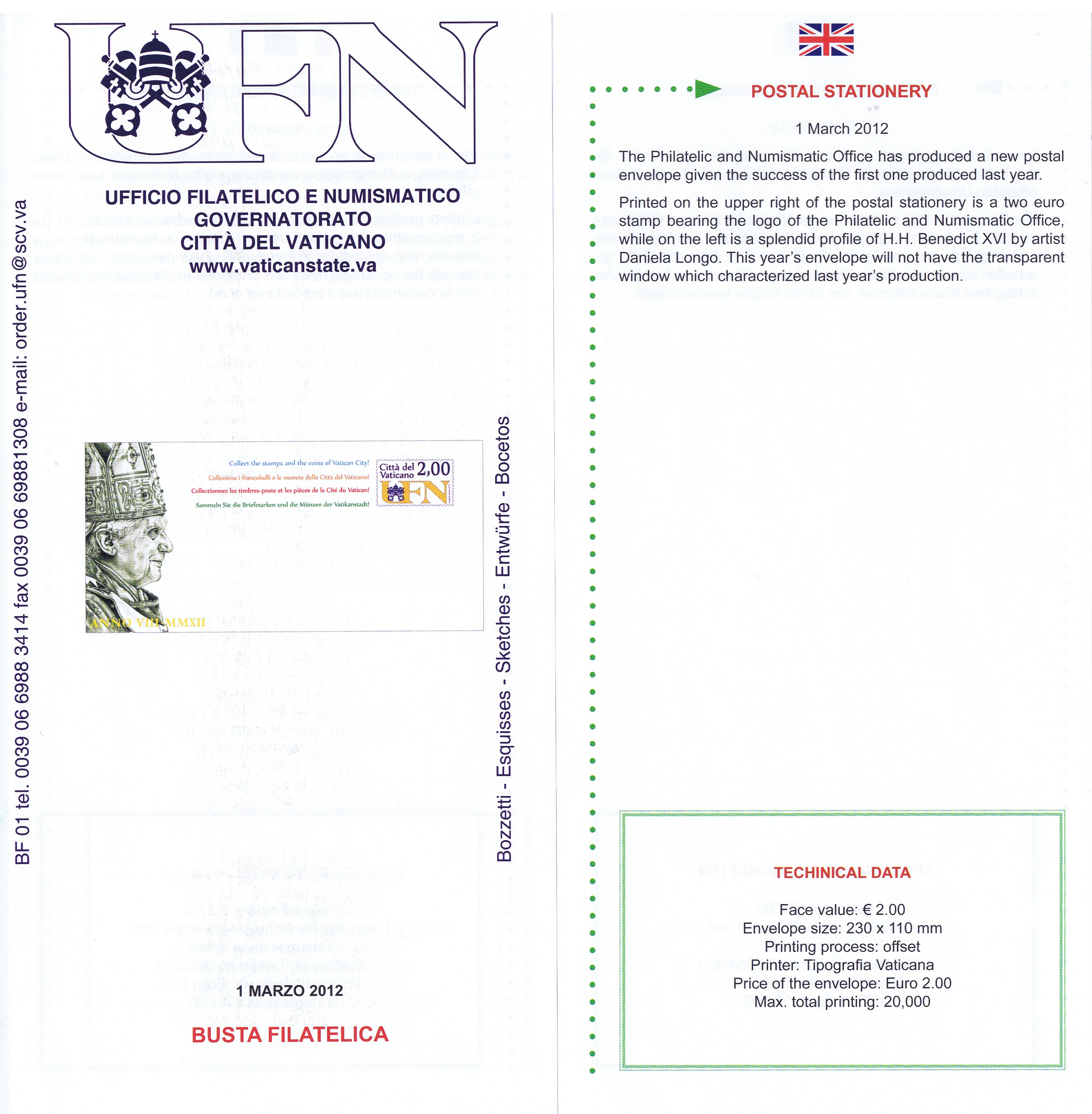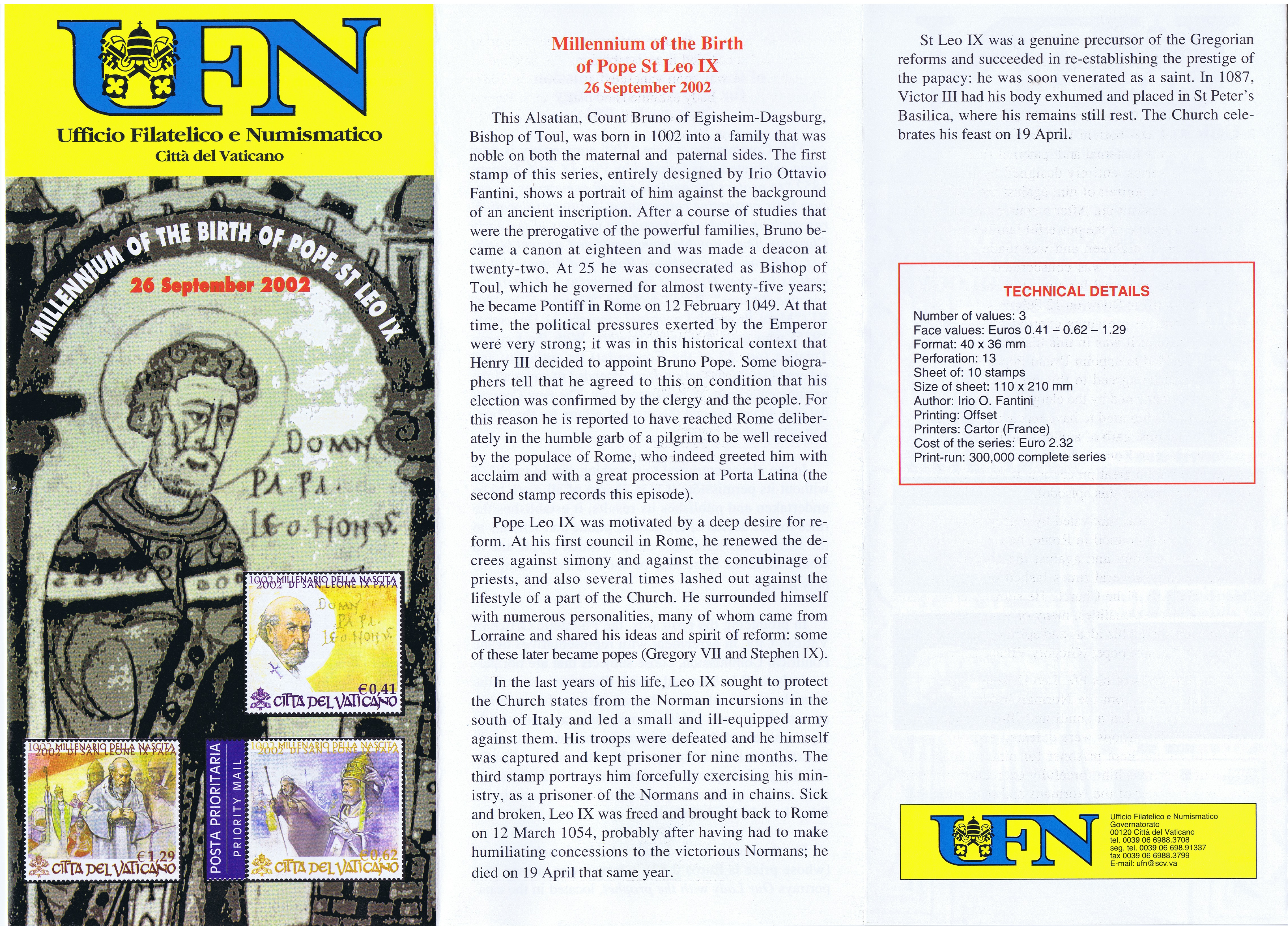 UFN New Issue Brouchures The Vatican discontiued publishing printed new issue information in 2021.