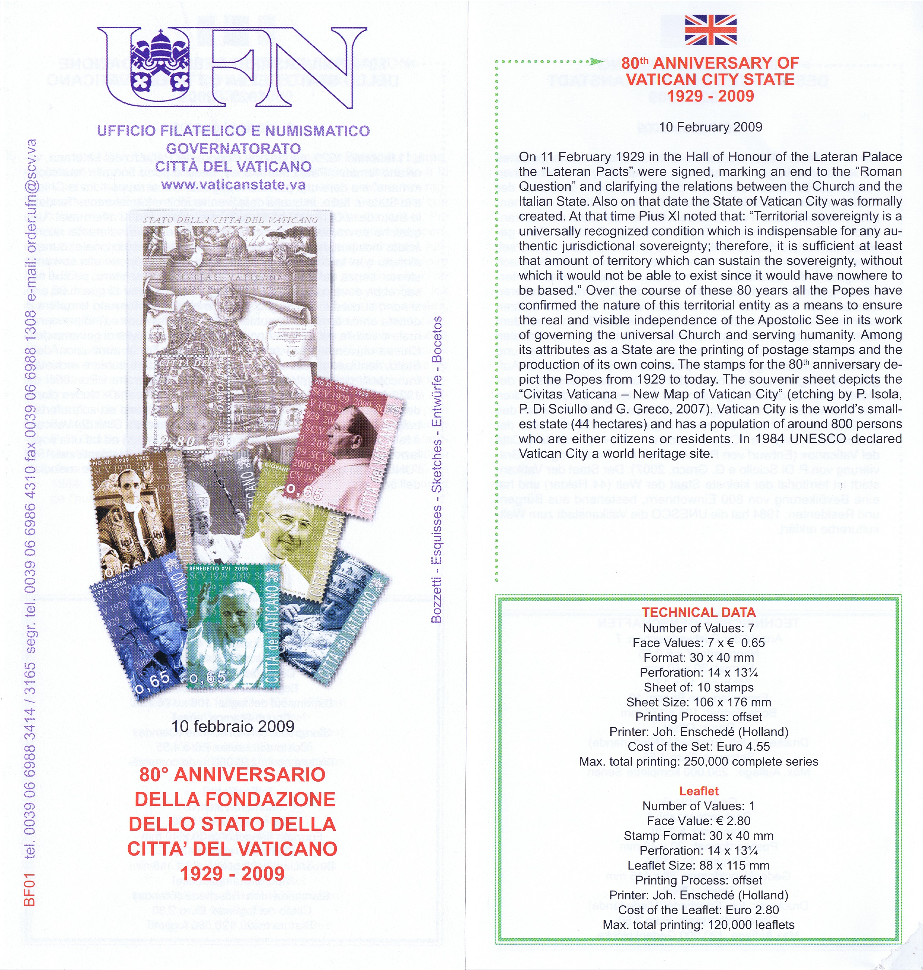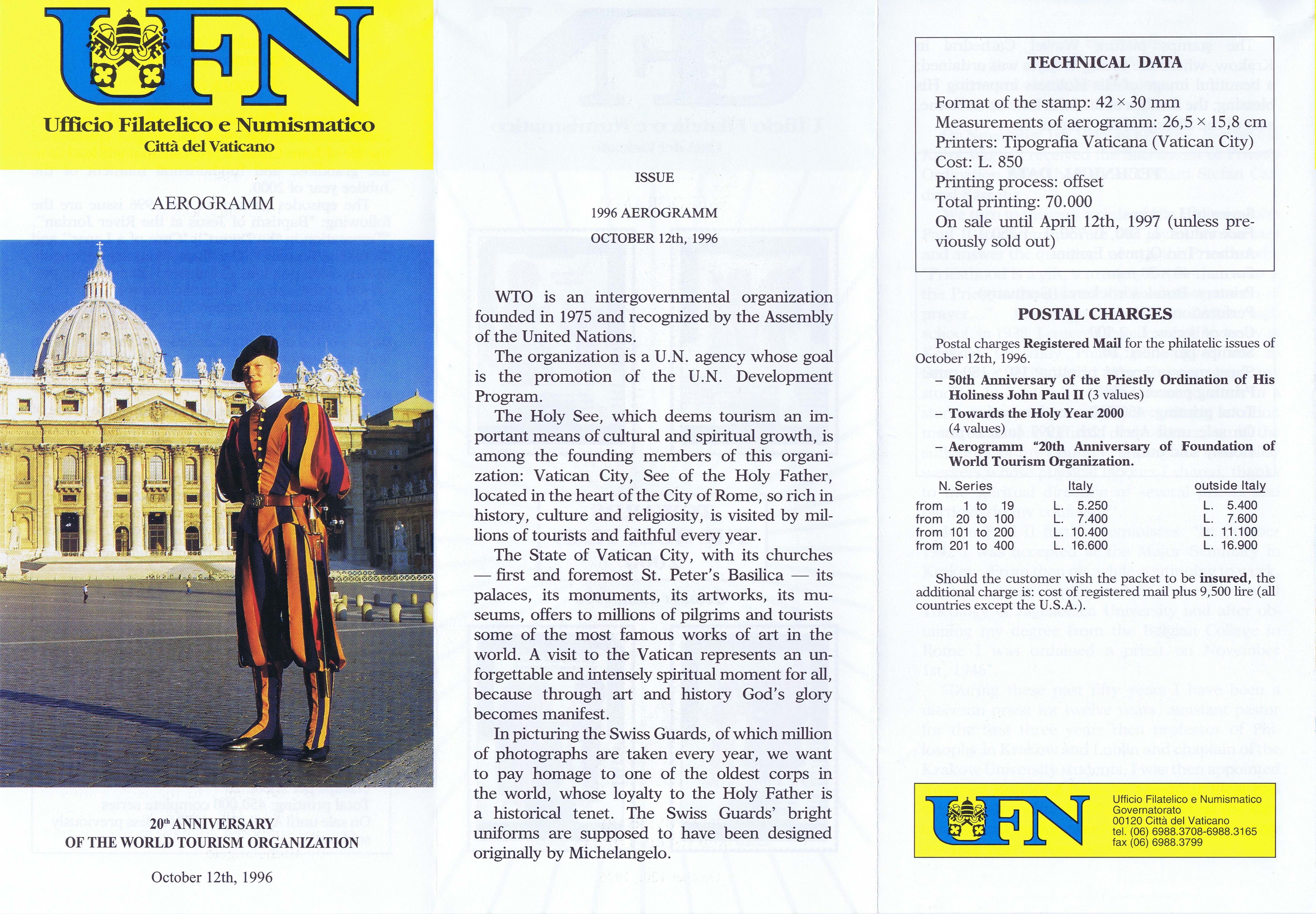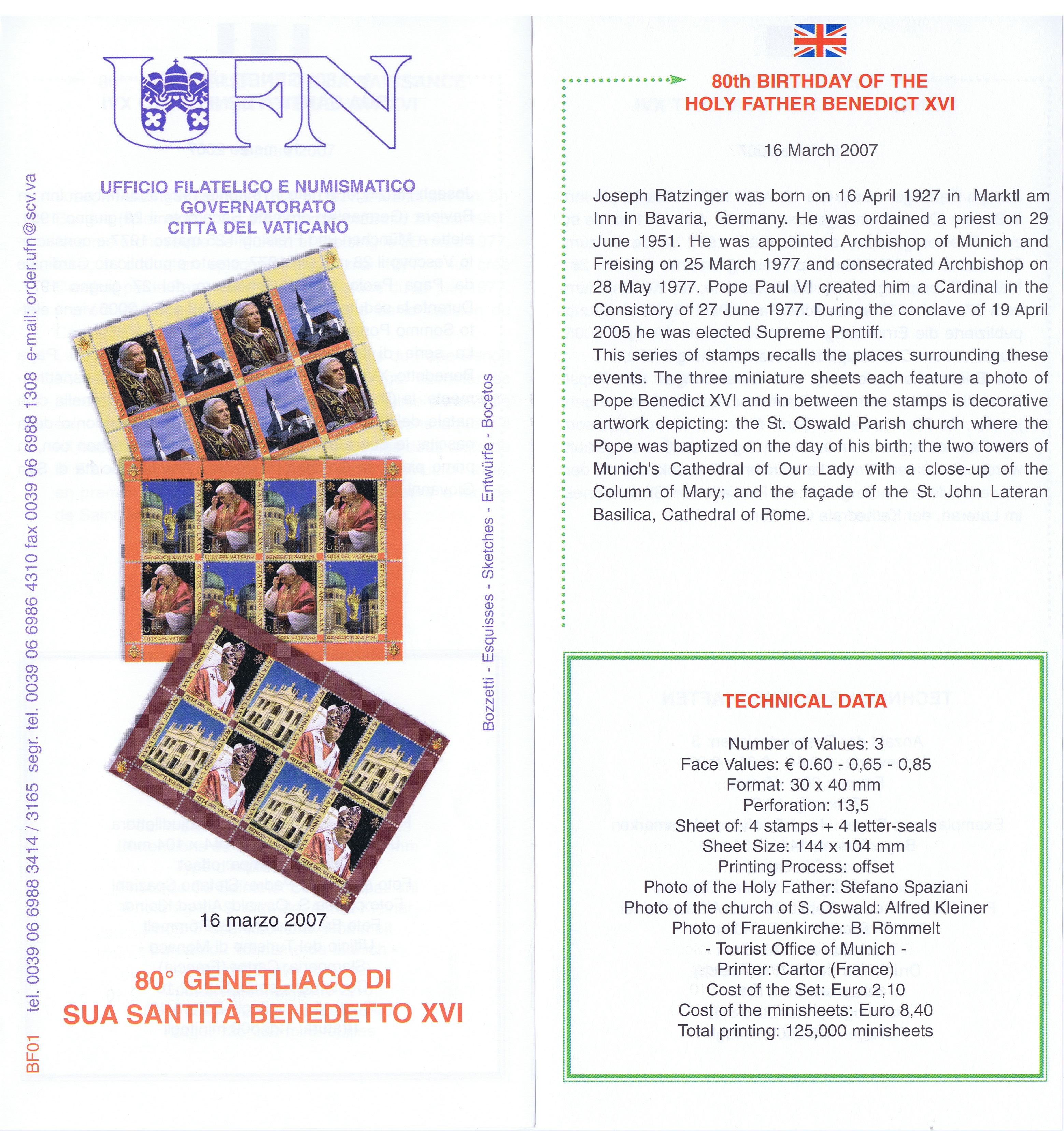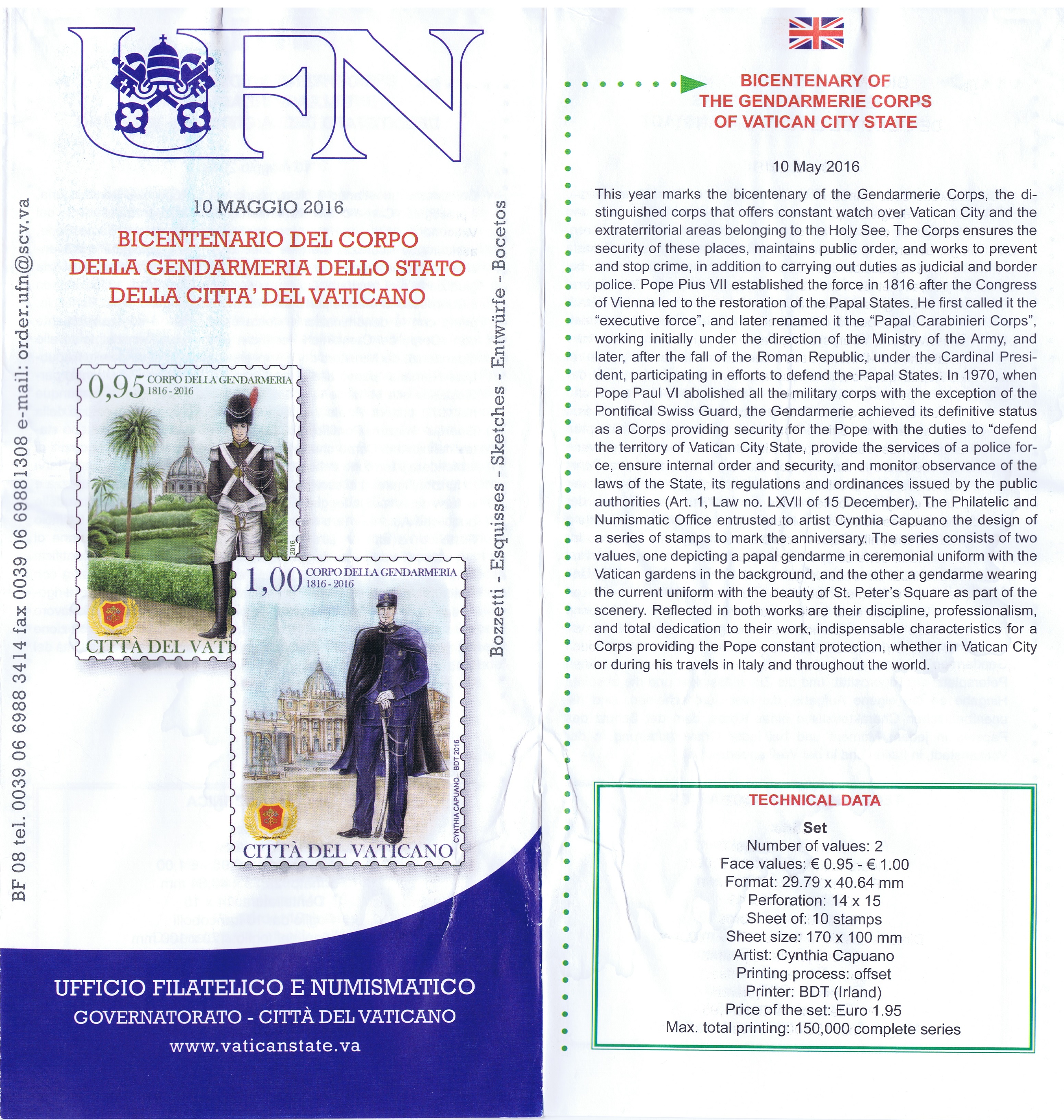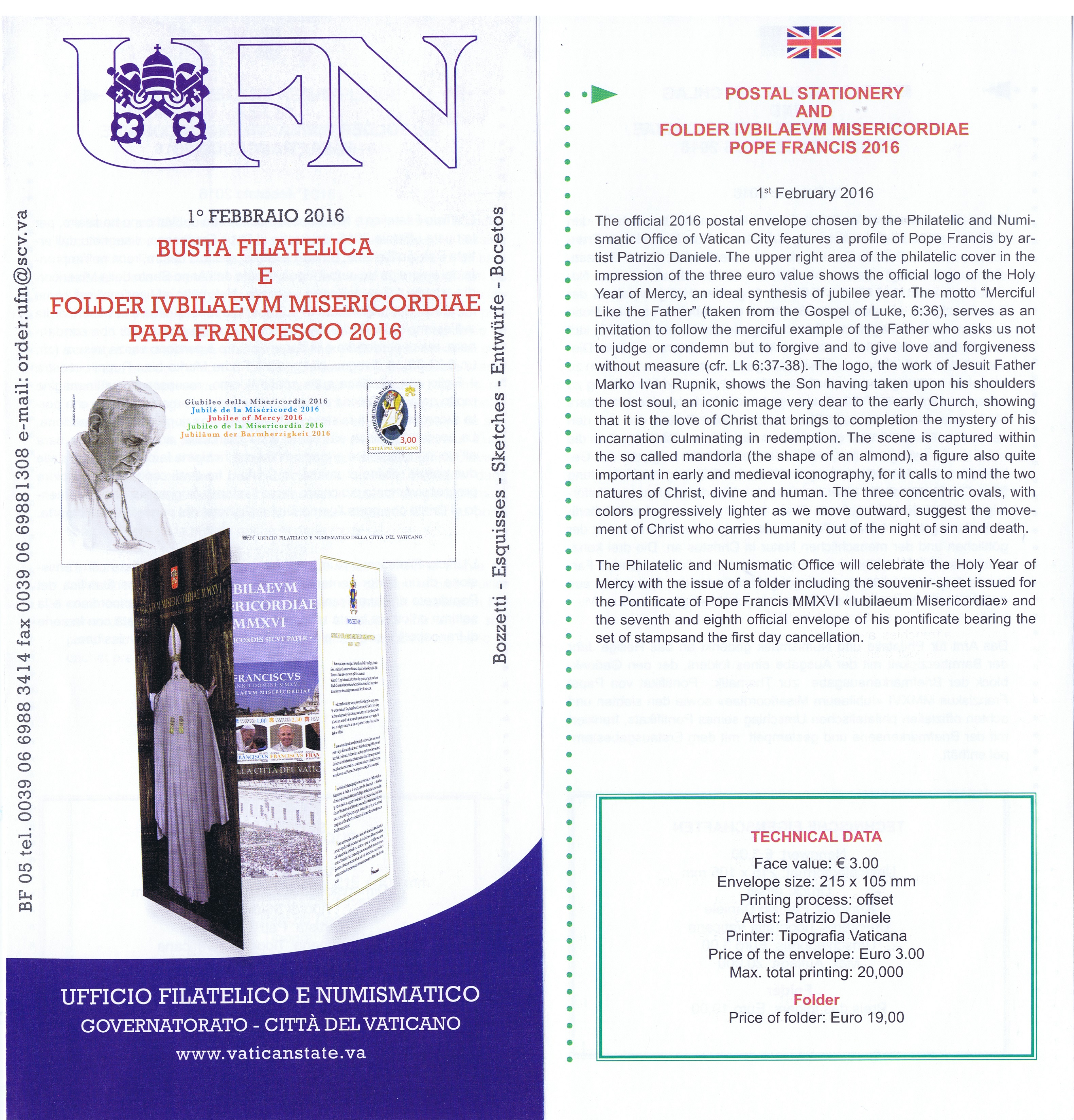 UFN New Issue Brouchures The Vatican discontiued publishing printed new issue information in 2021.