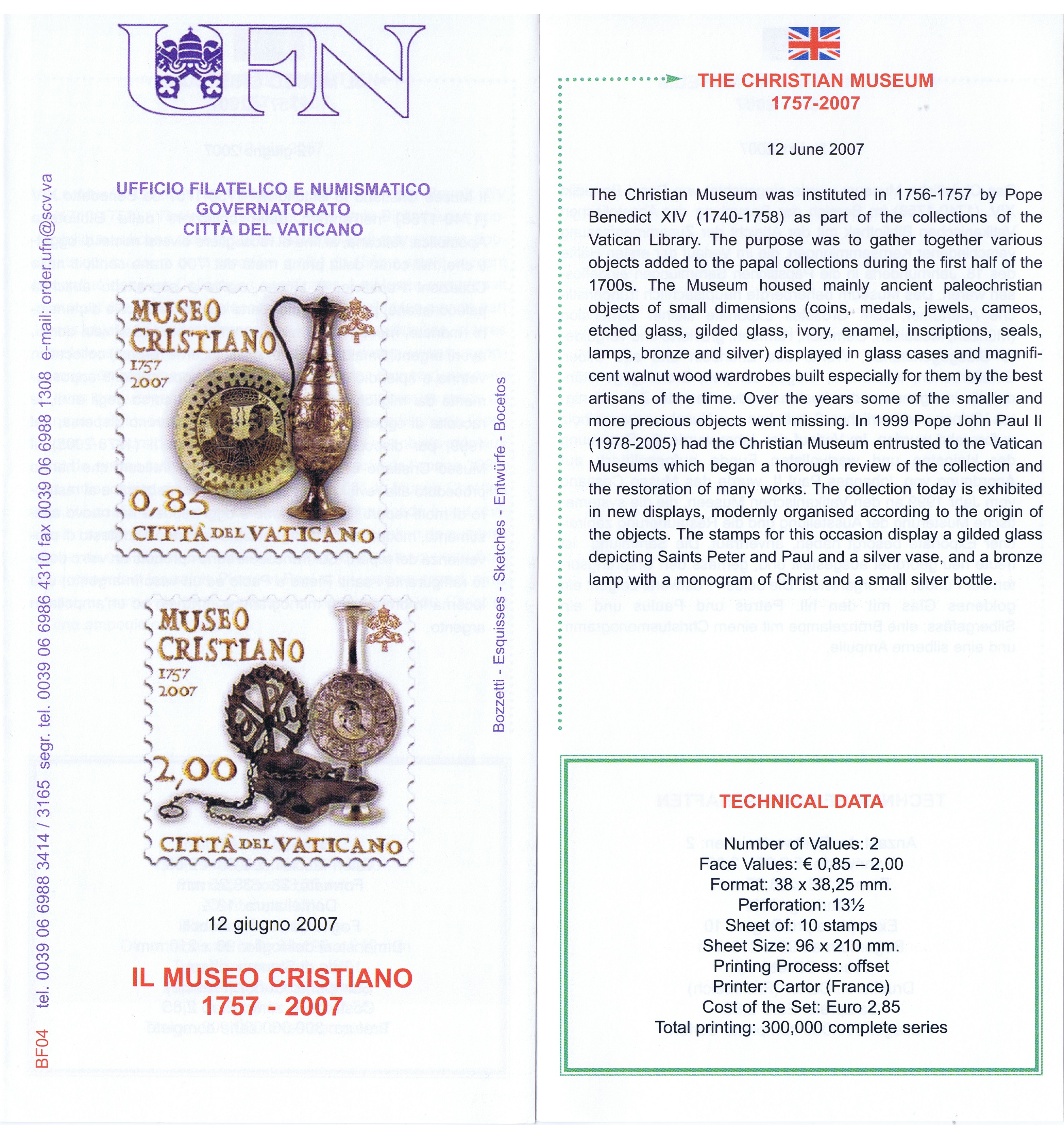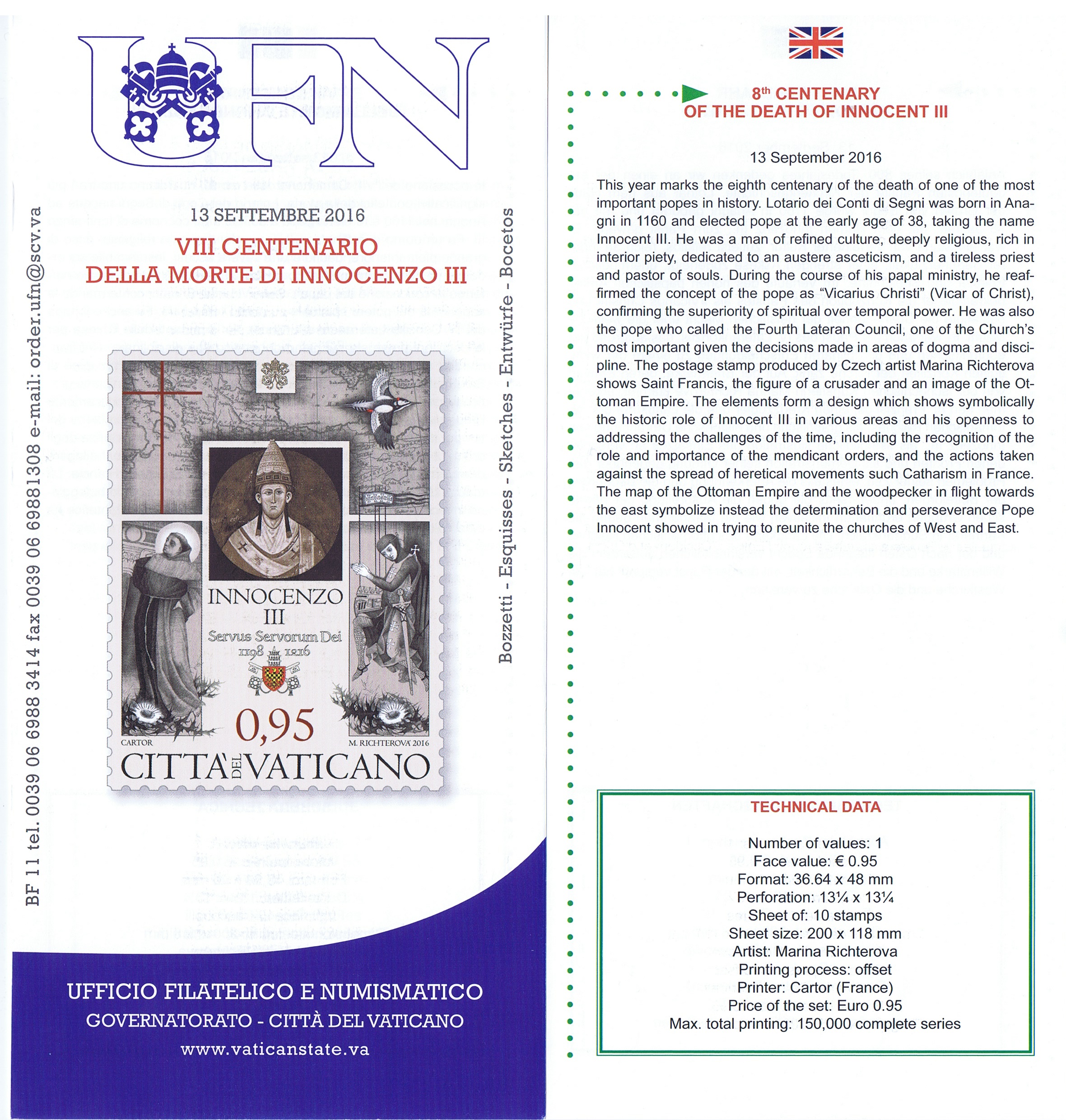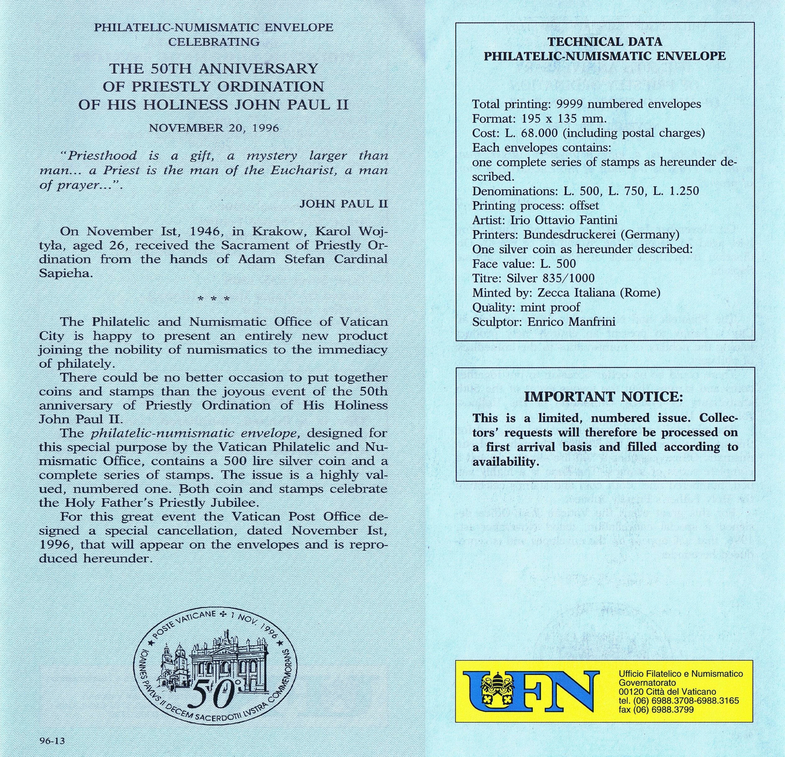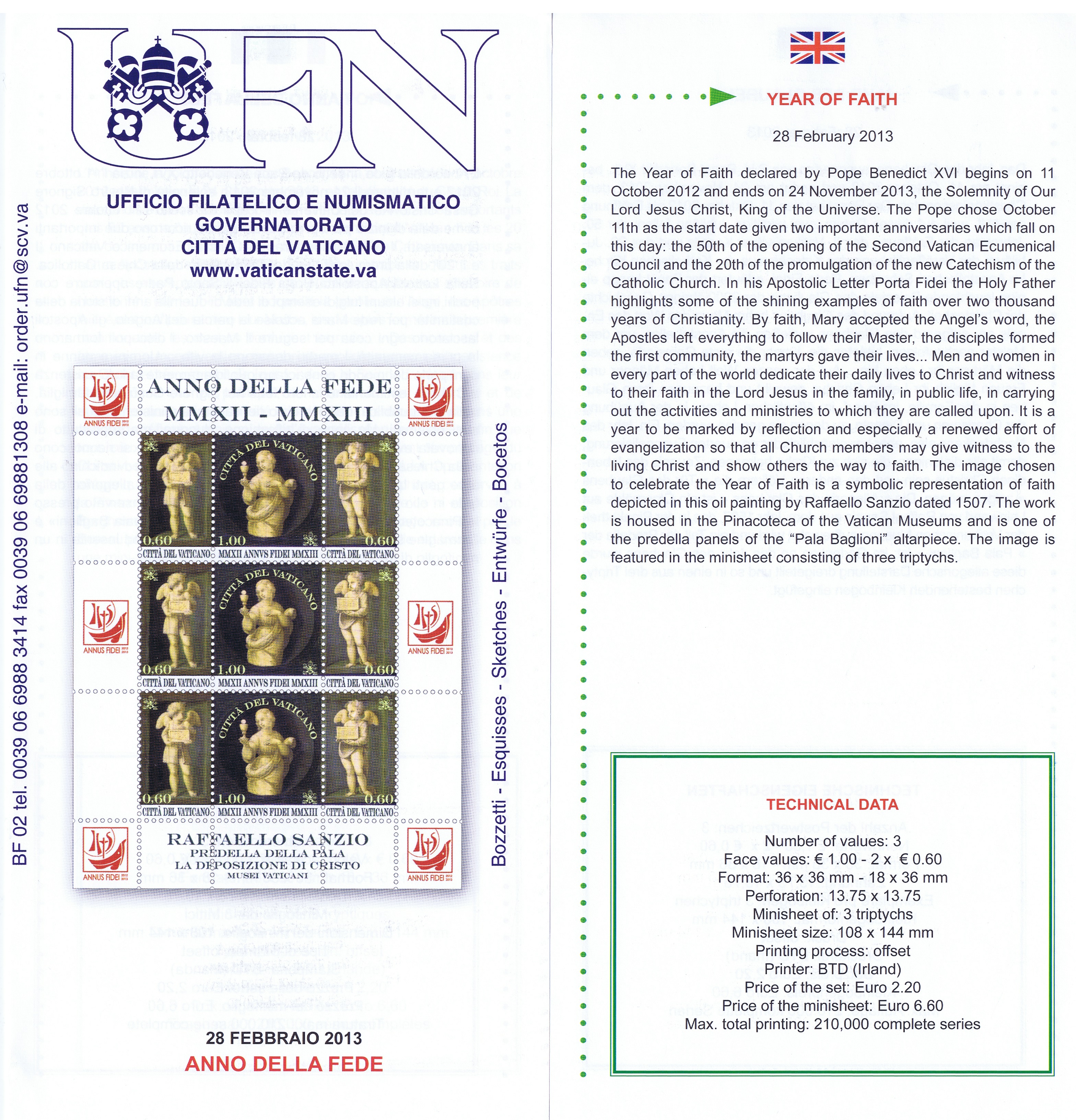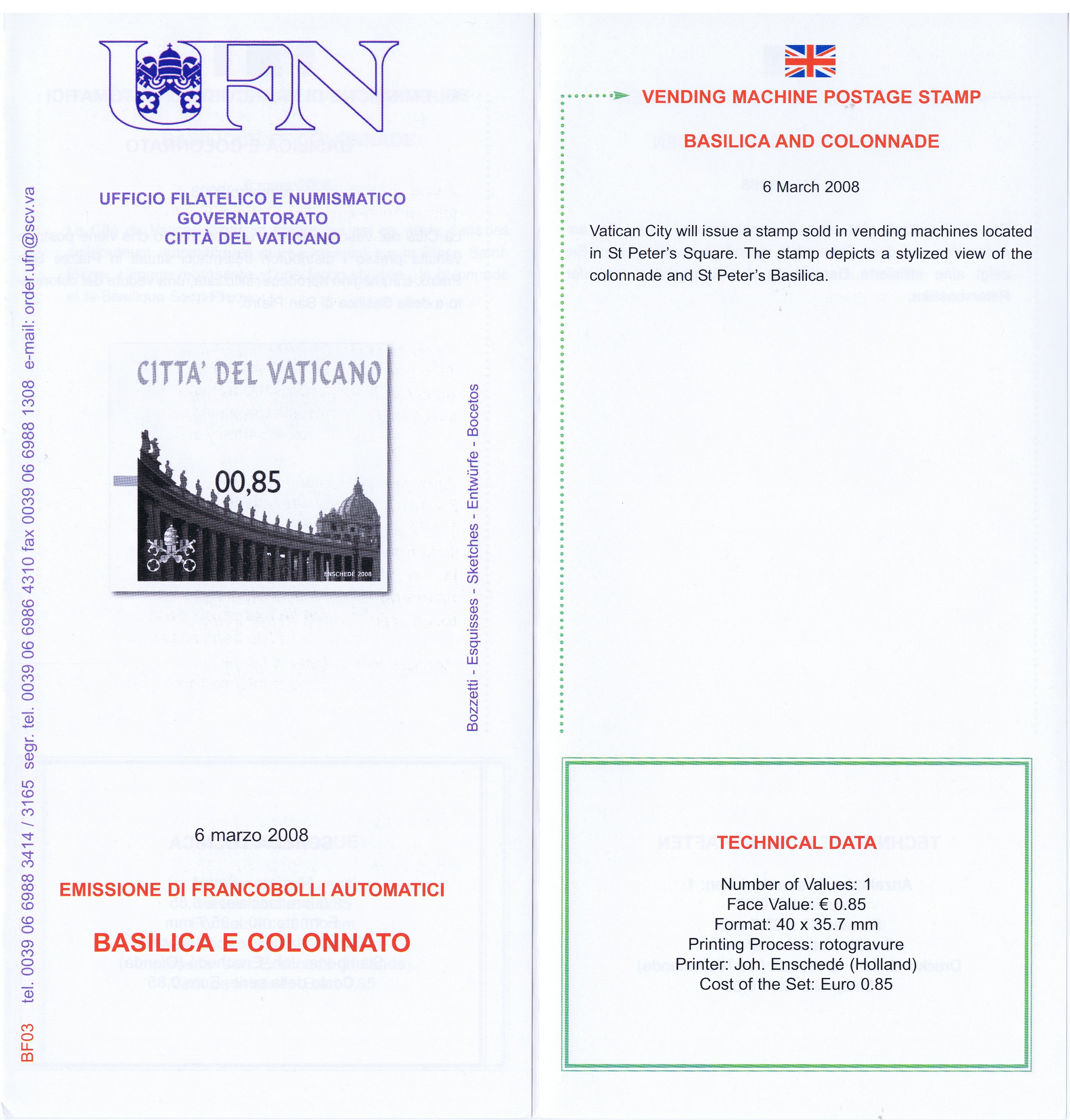 UFN New Issue Brouchures The Vatican discontiued publishing printed new issue information in 2021.