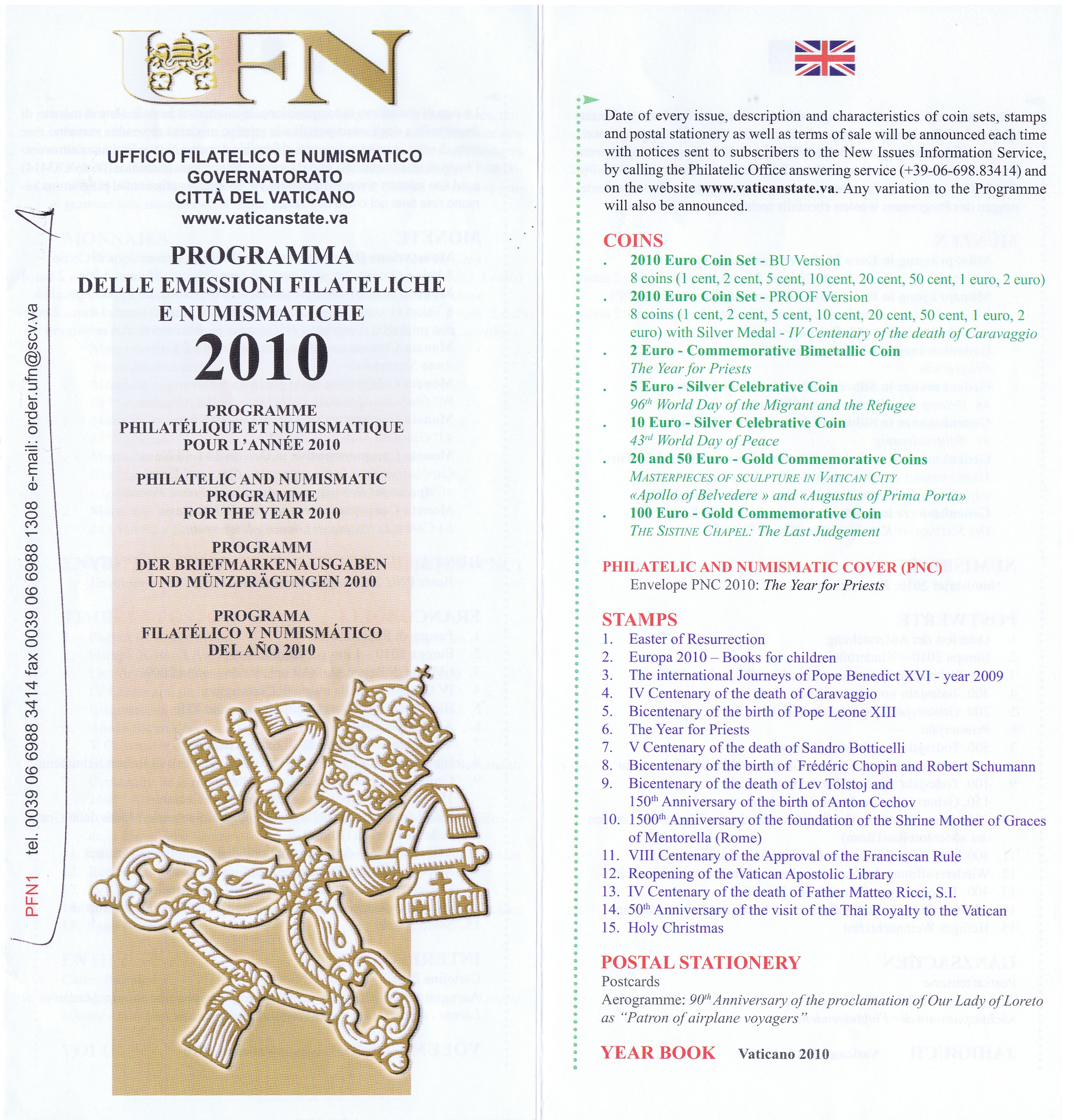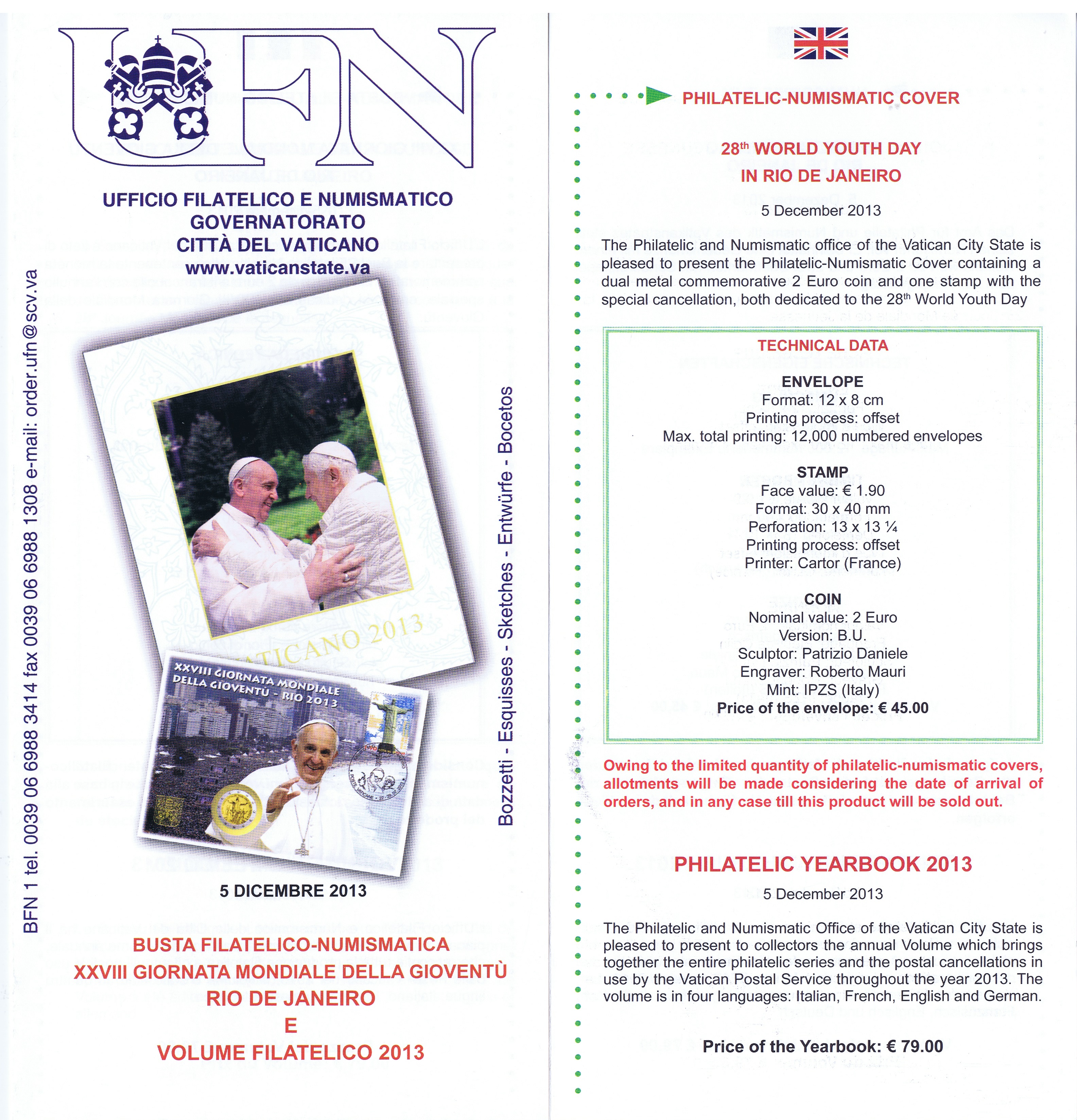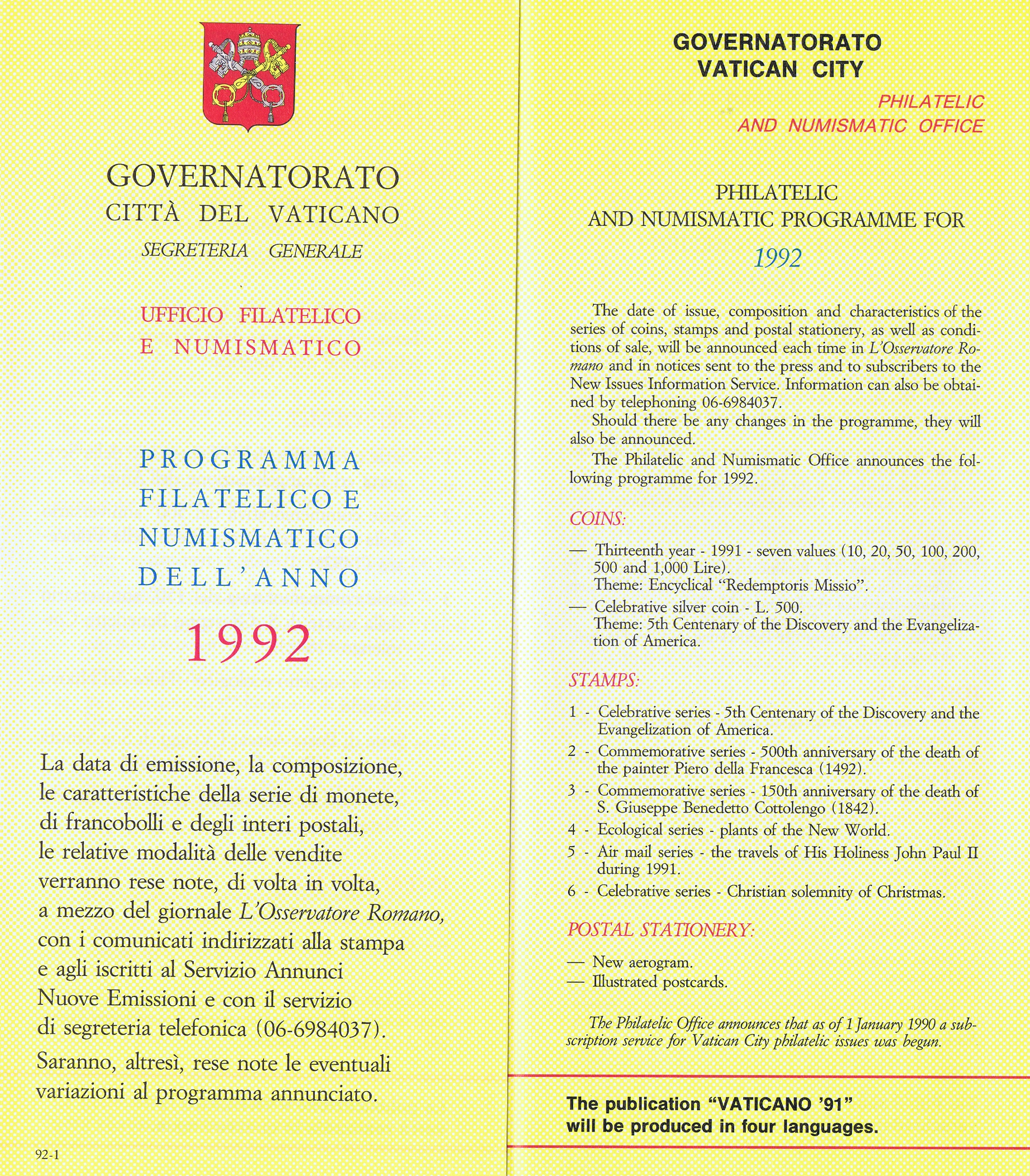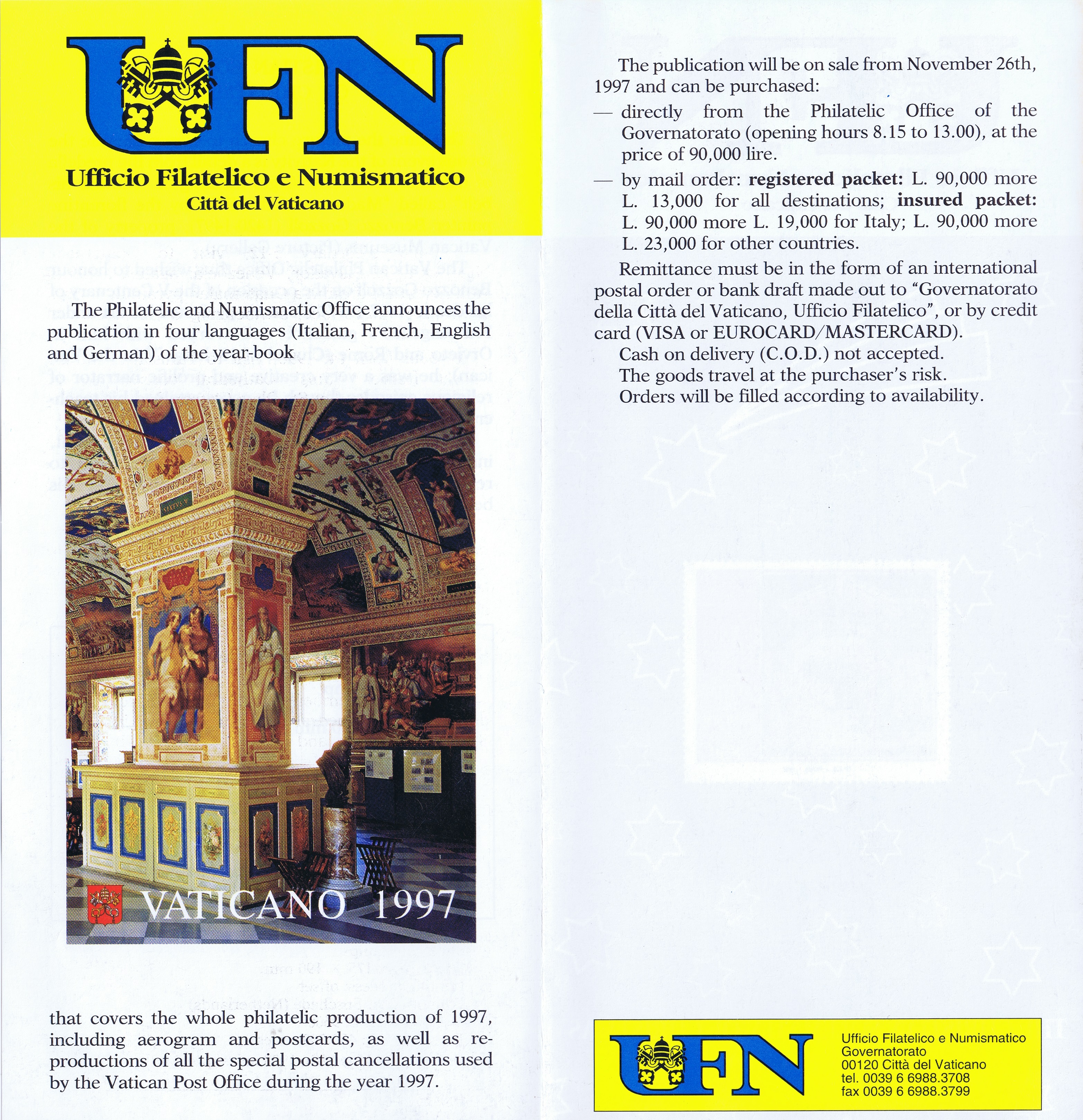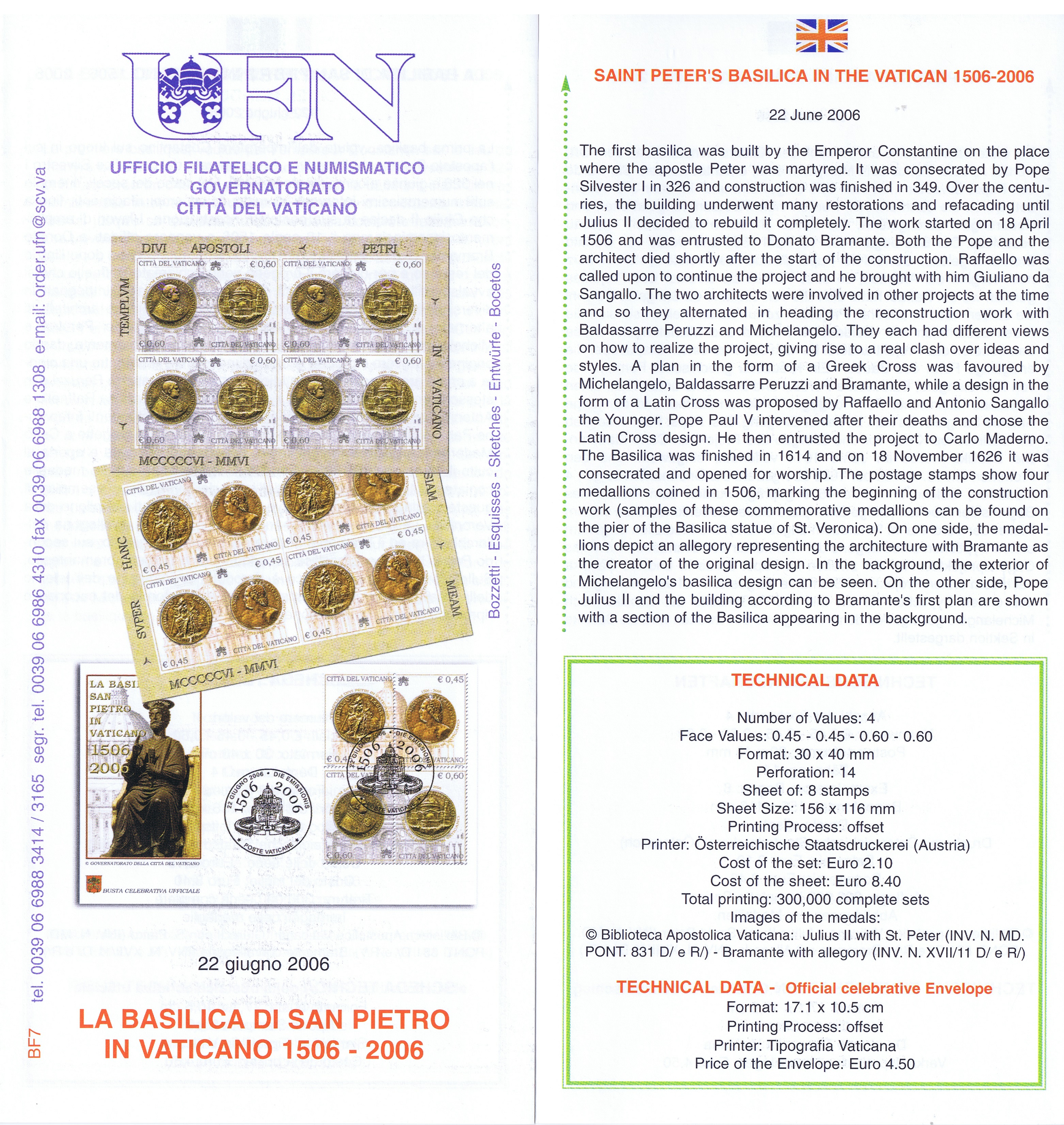 UFN New Issue Brouchures The Vatican discontiued publishing printed new issue information in 2021.