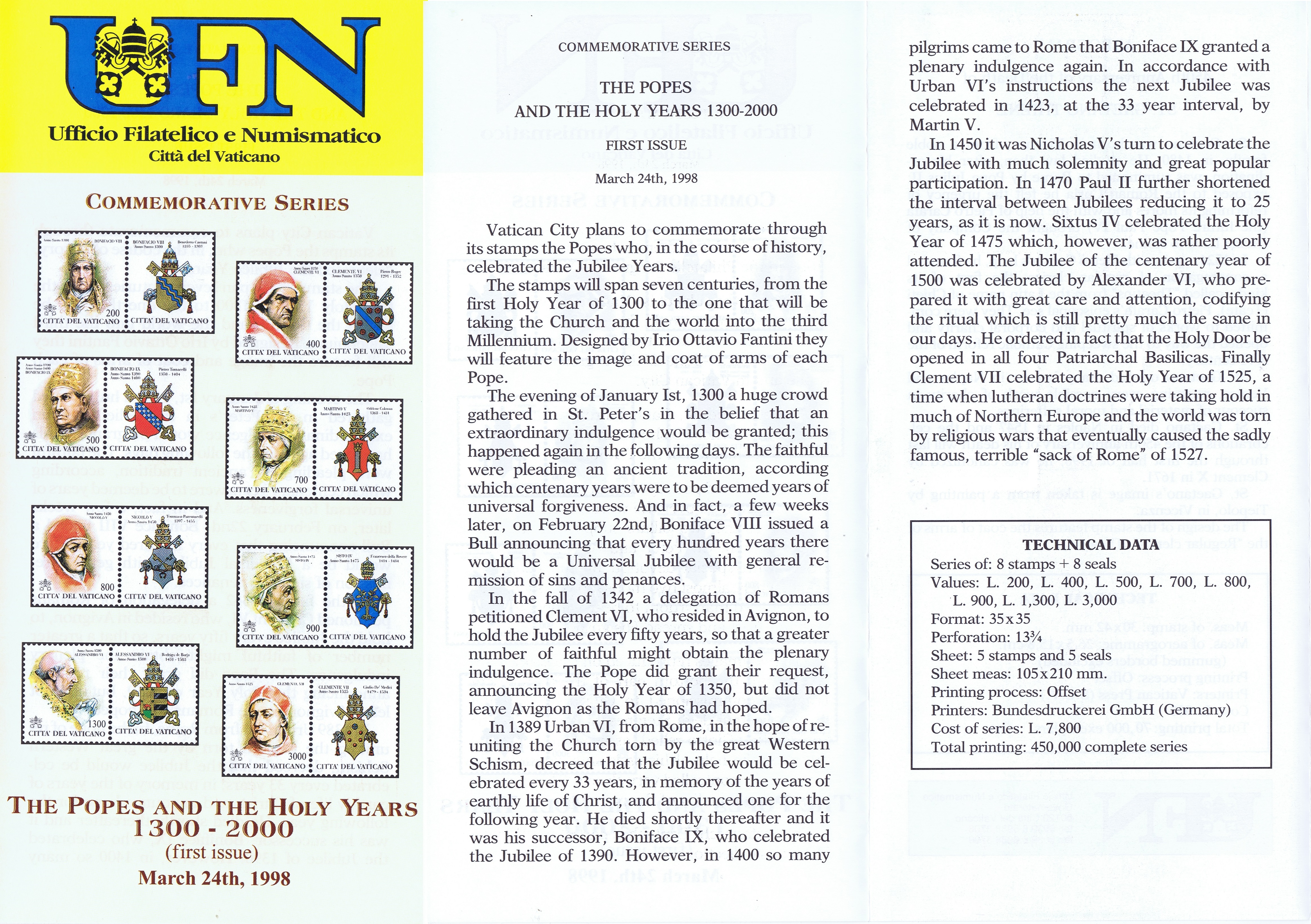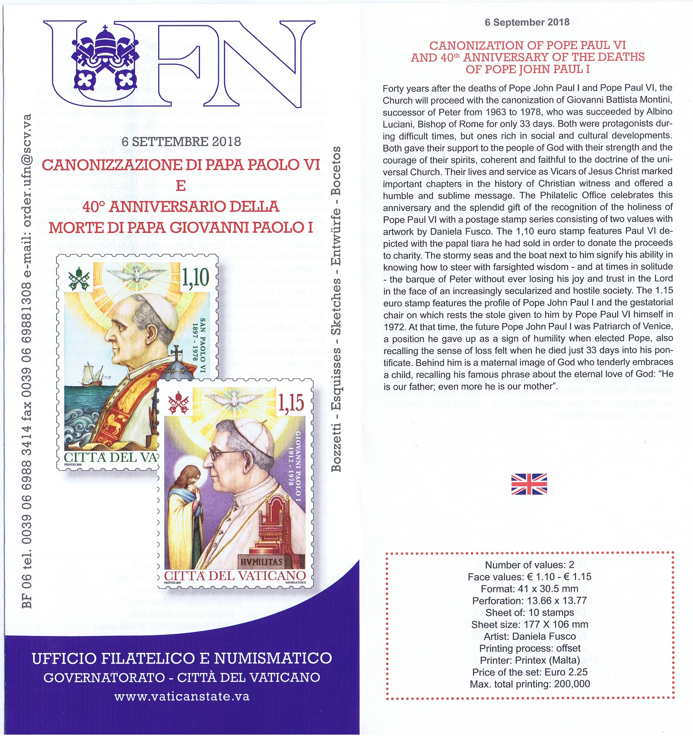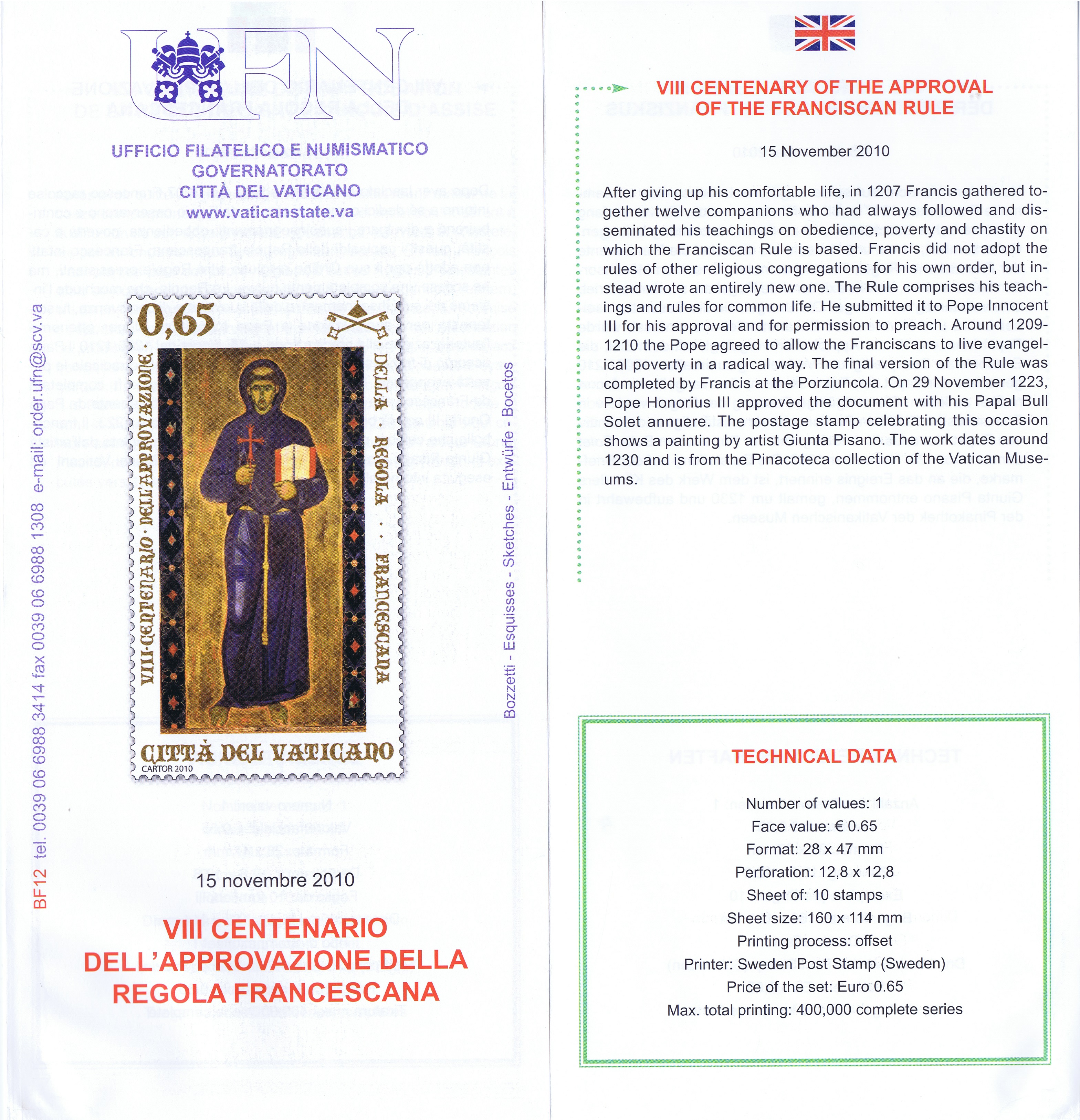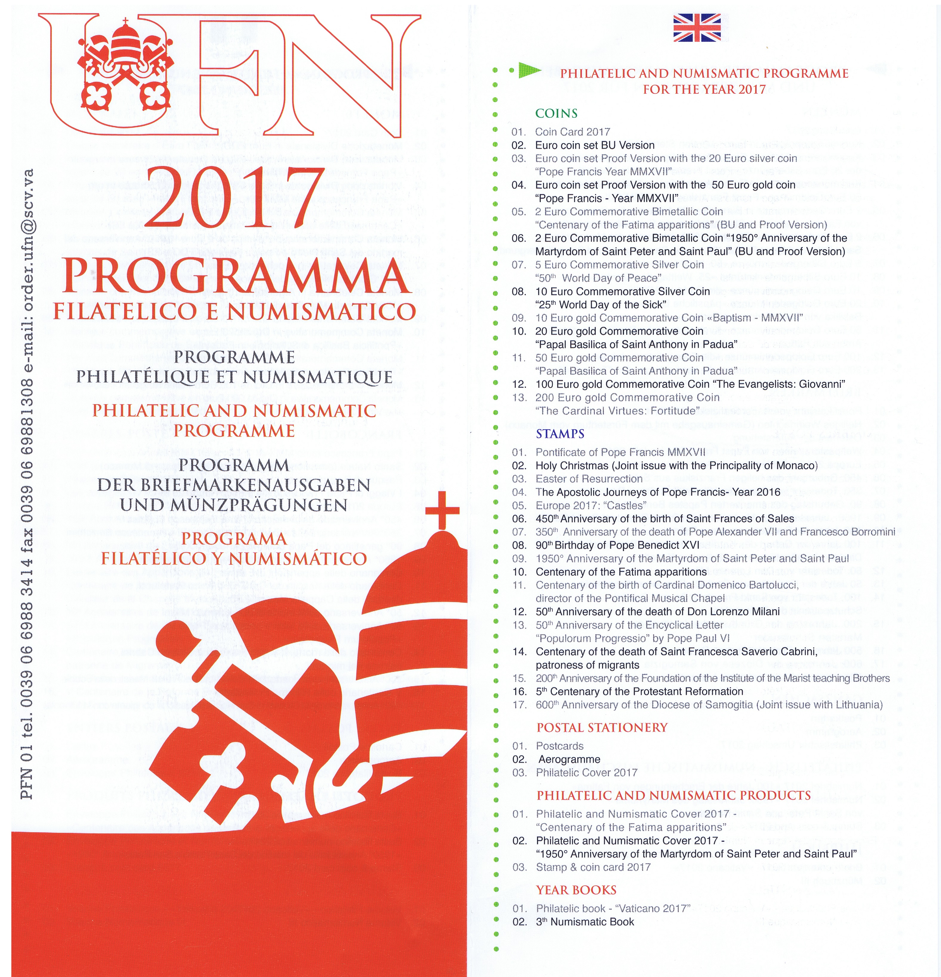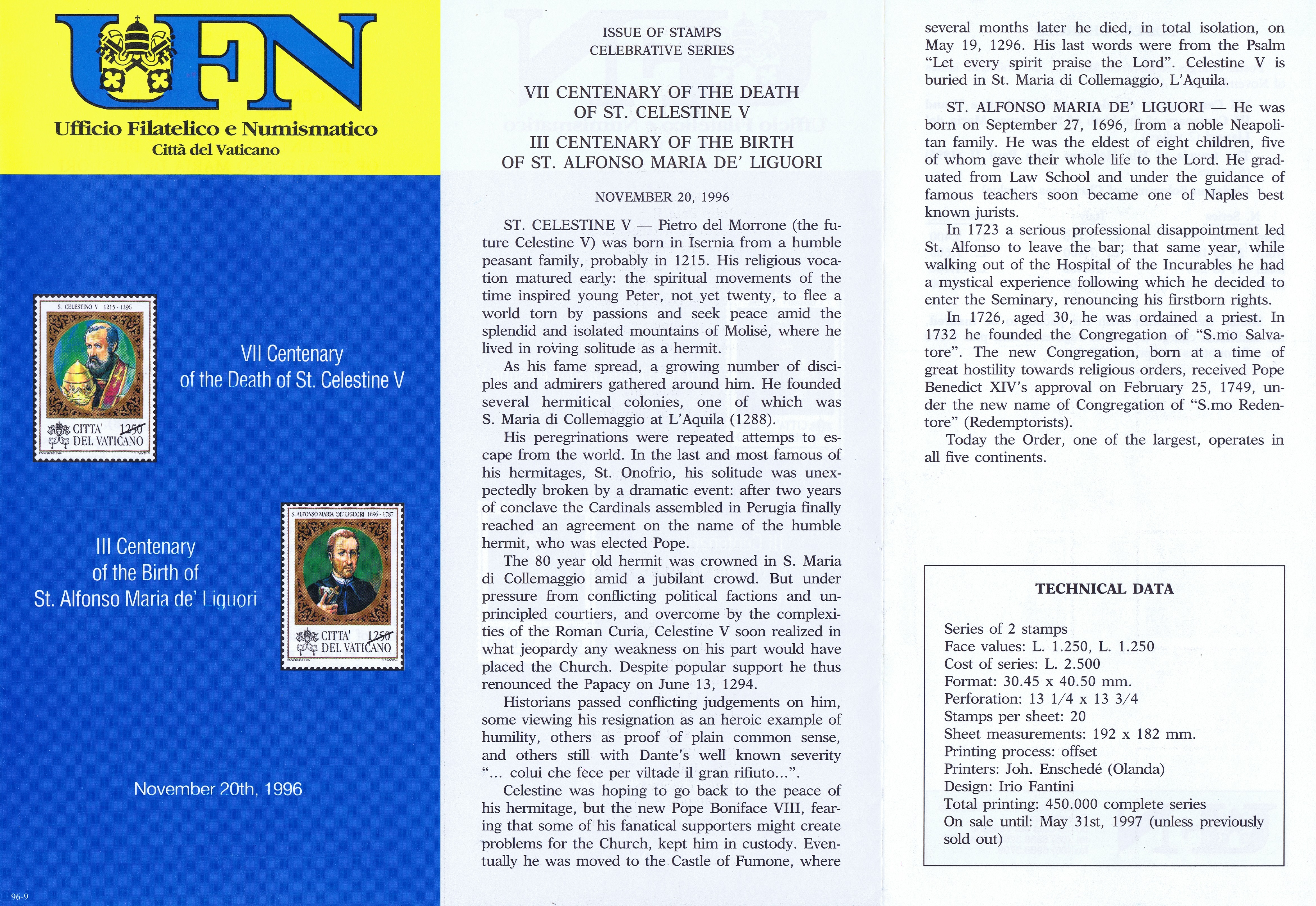 UFN New Issue Brouchures The Vatican discontiued publishing printed new issue information in 2021.