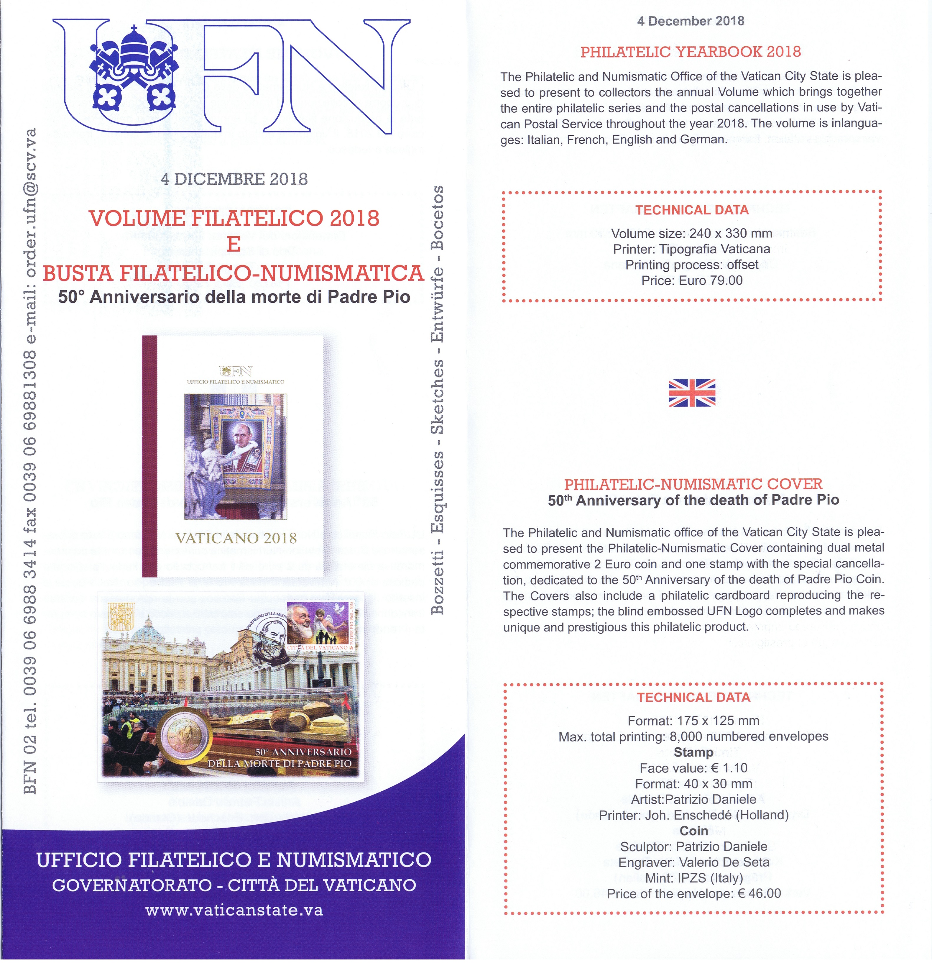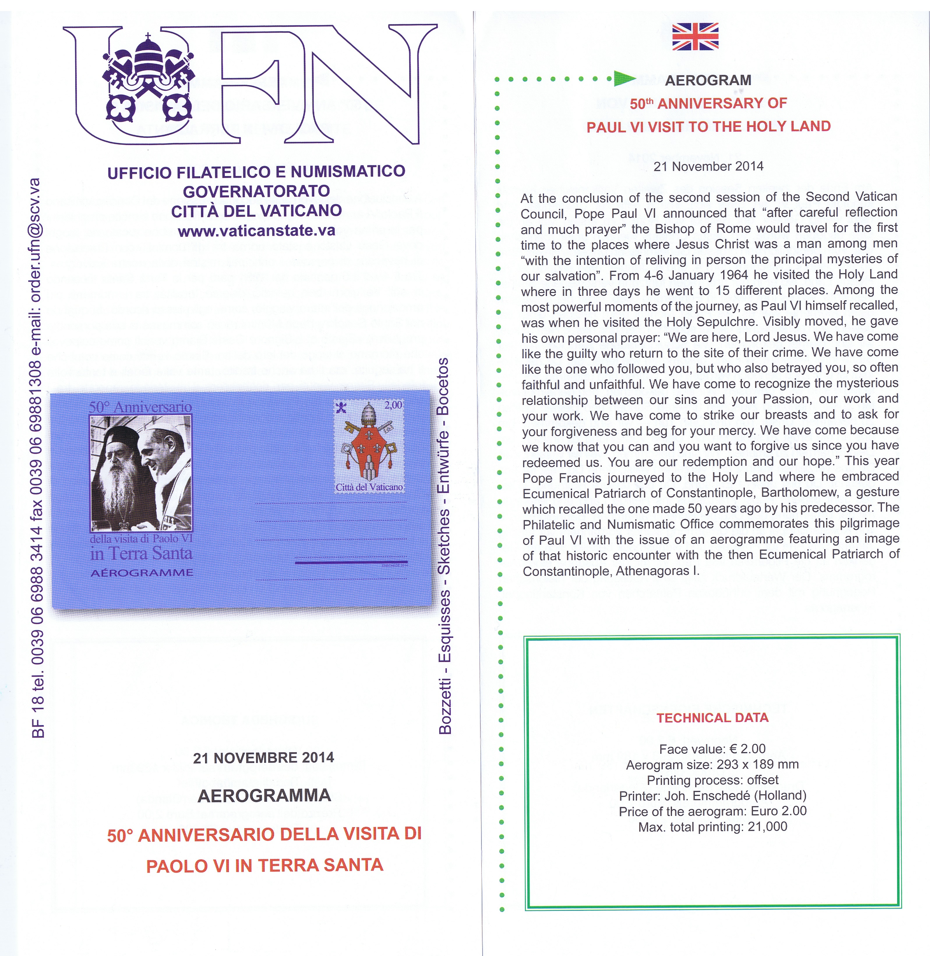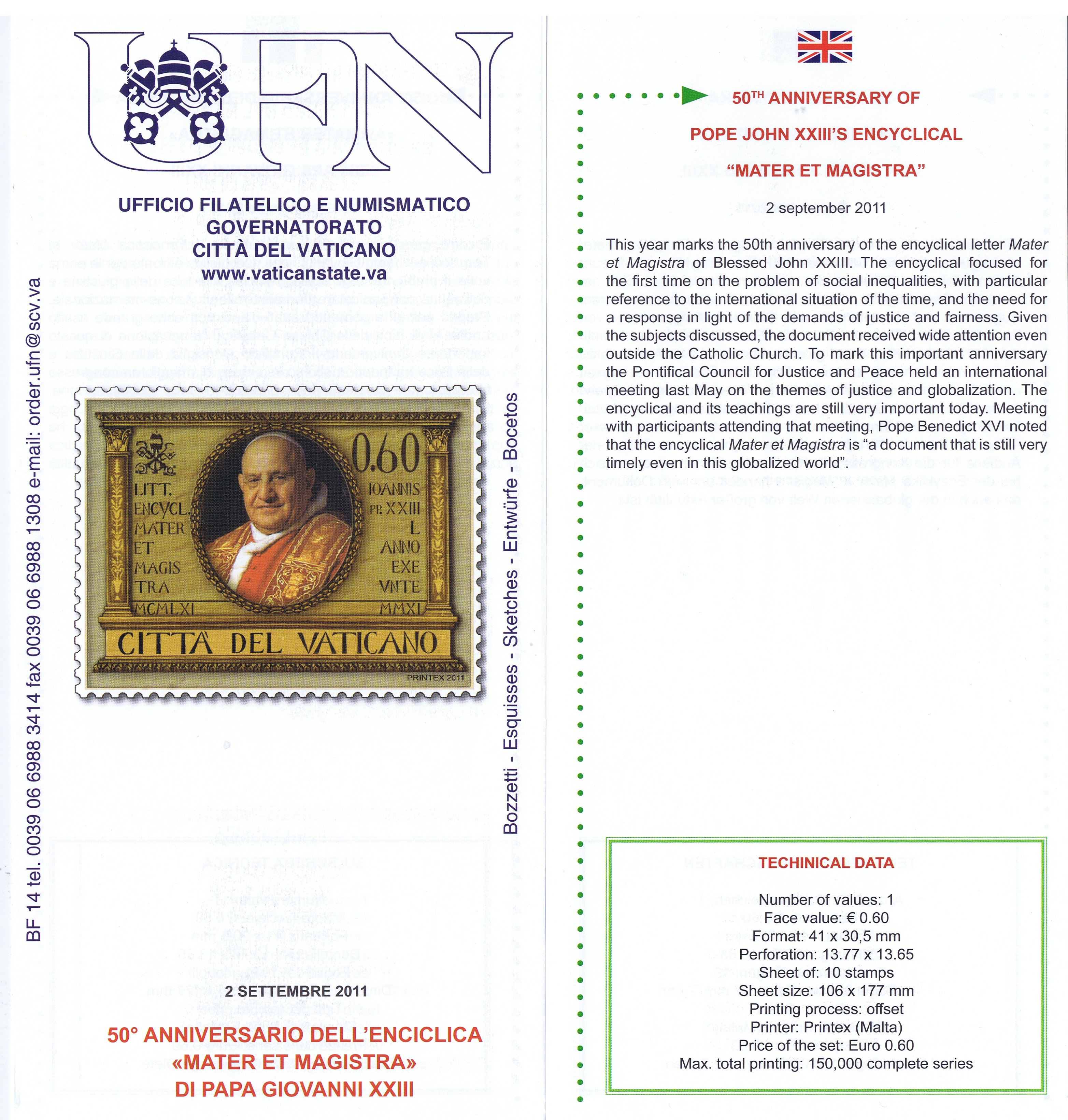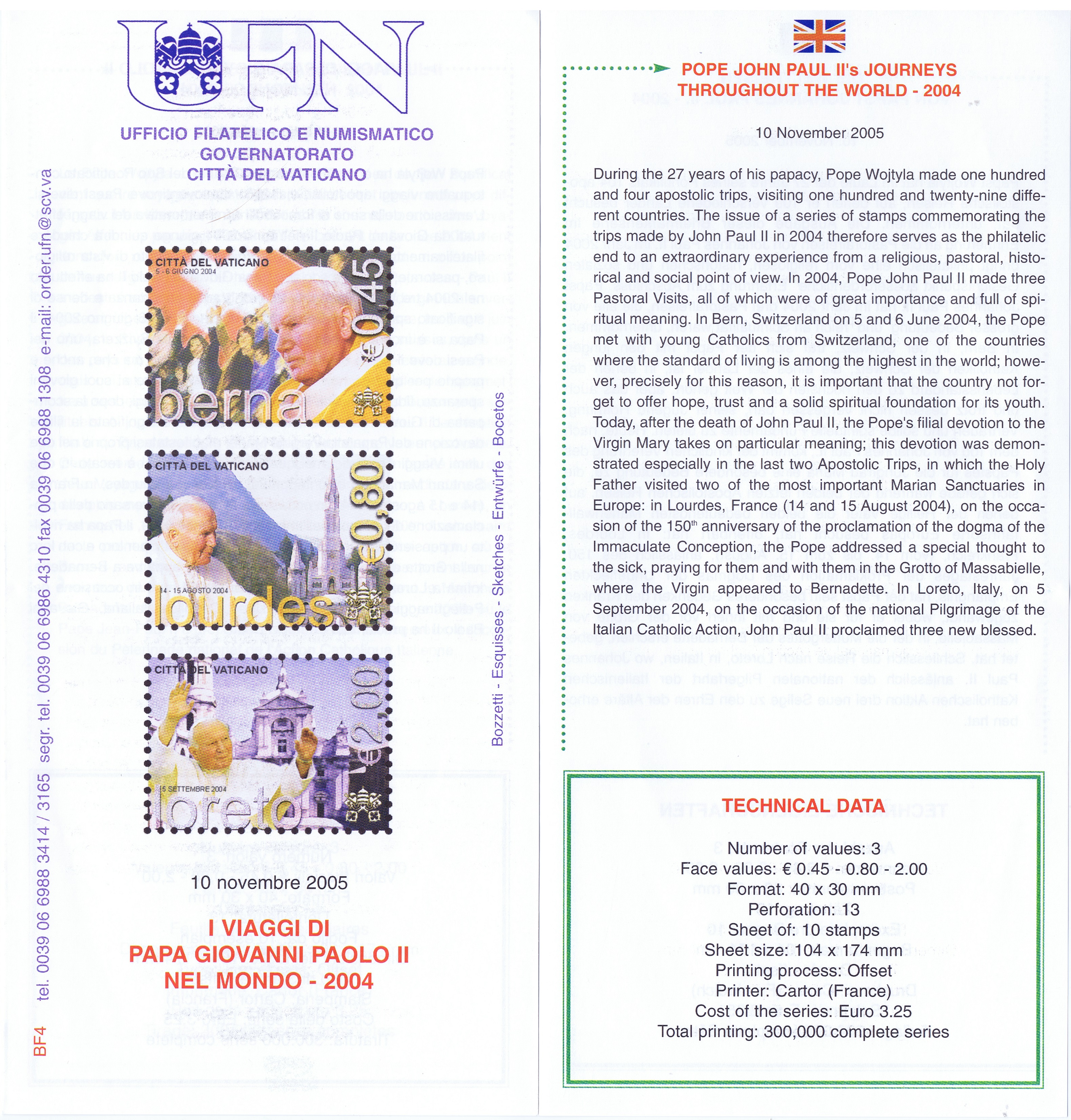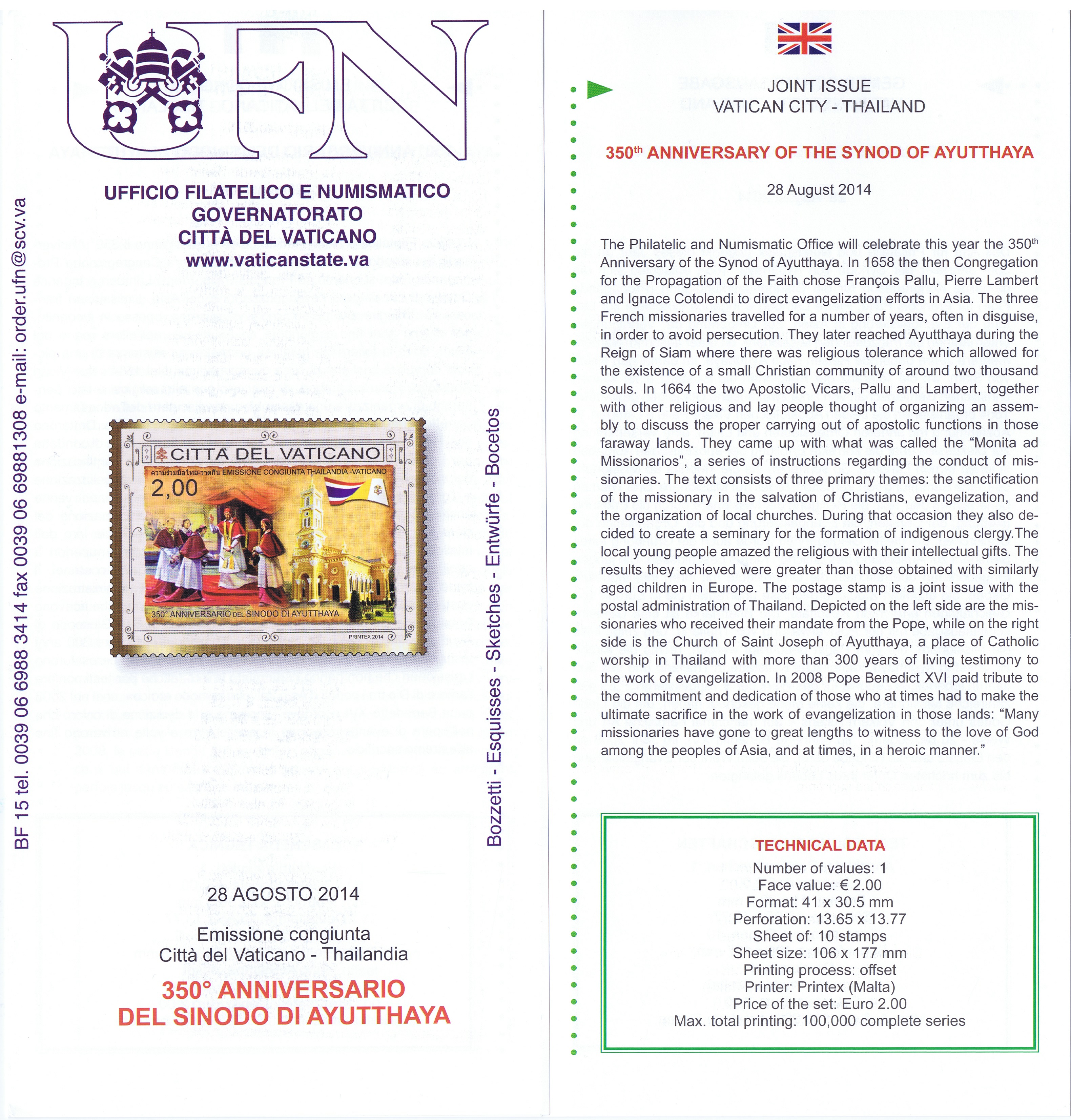 UFN New Issue Brouchures The Vatican discontiued publishing printed new issue information in 2021.
