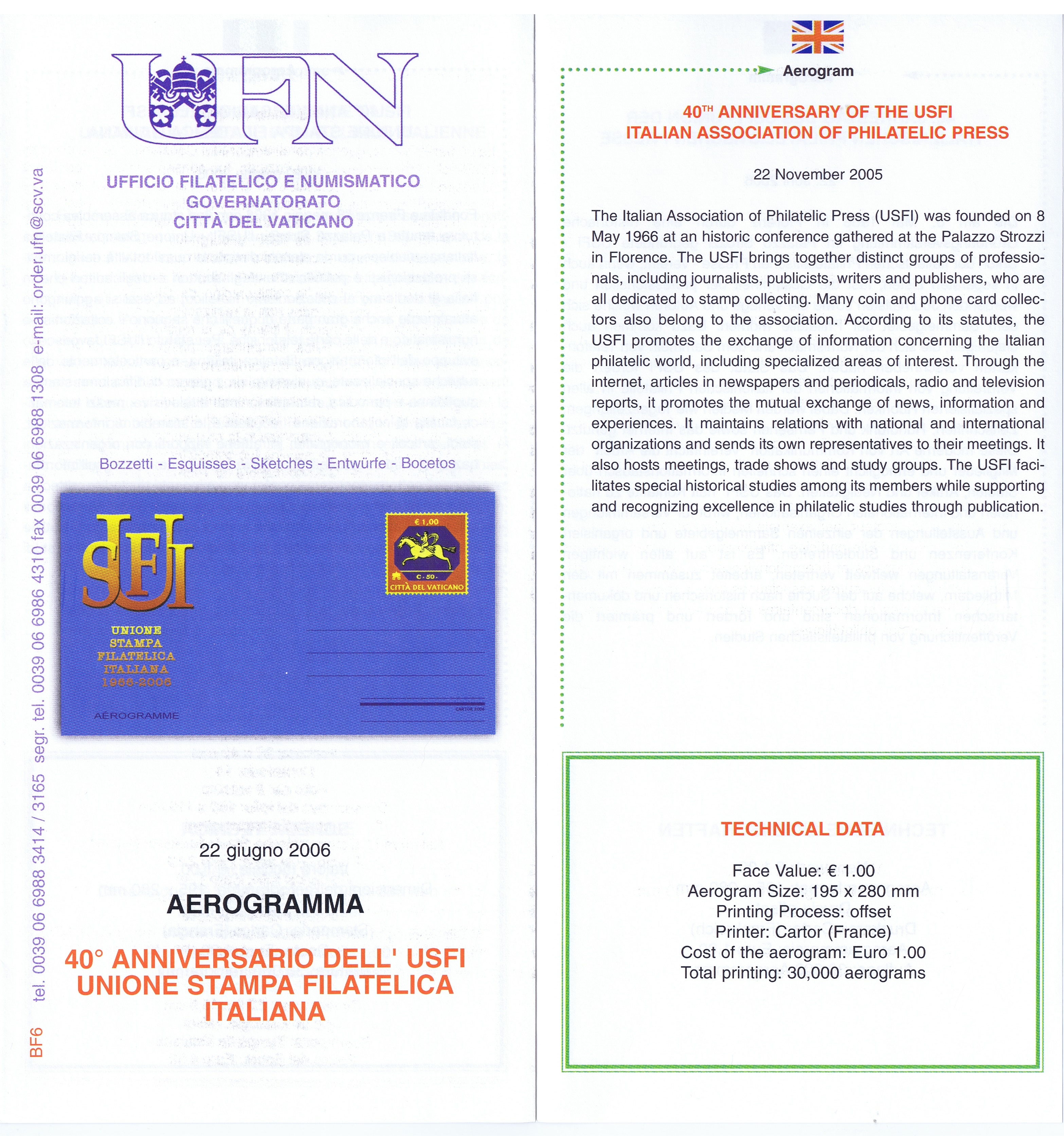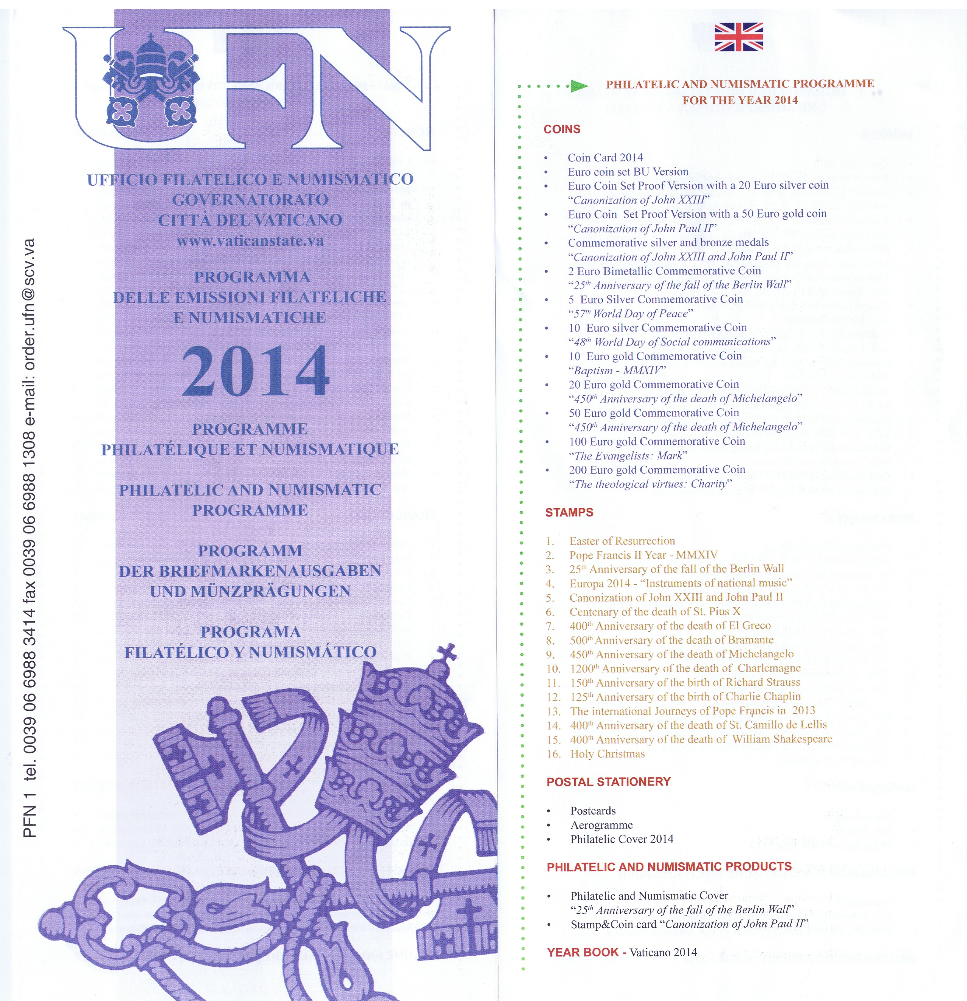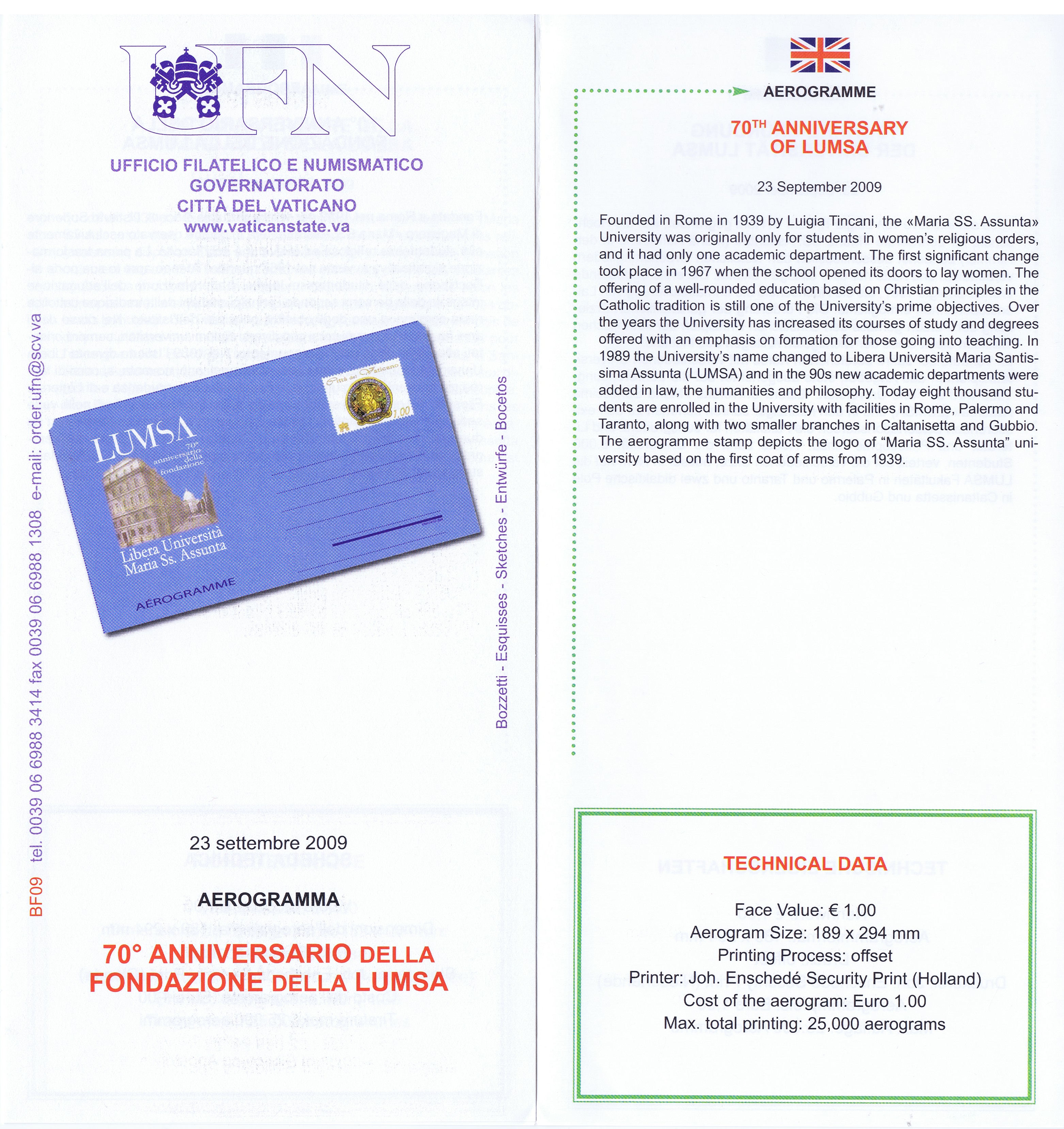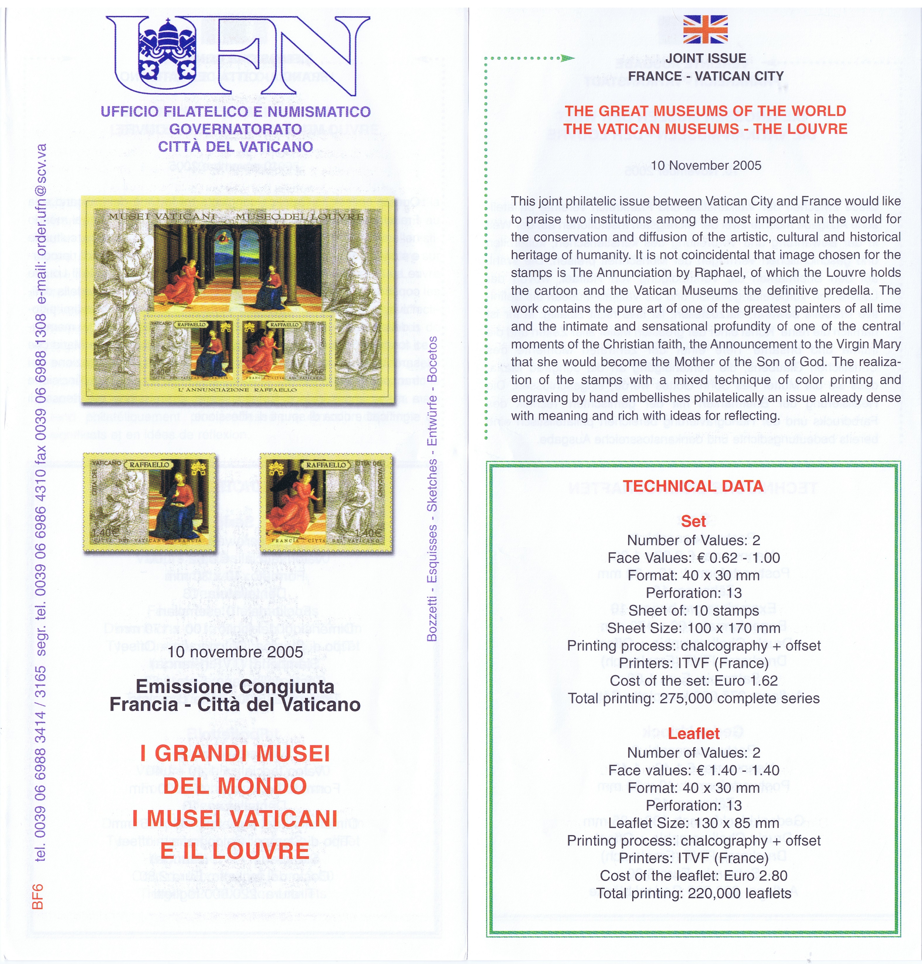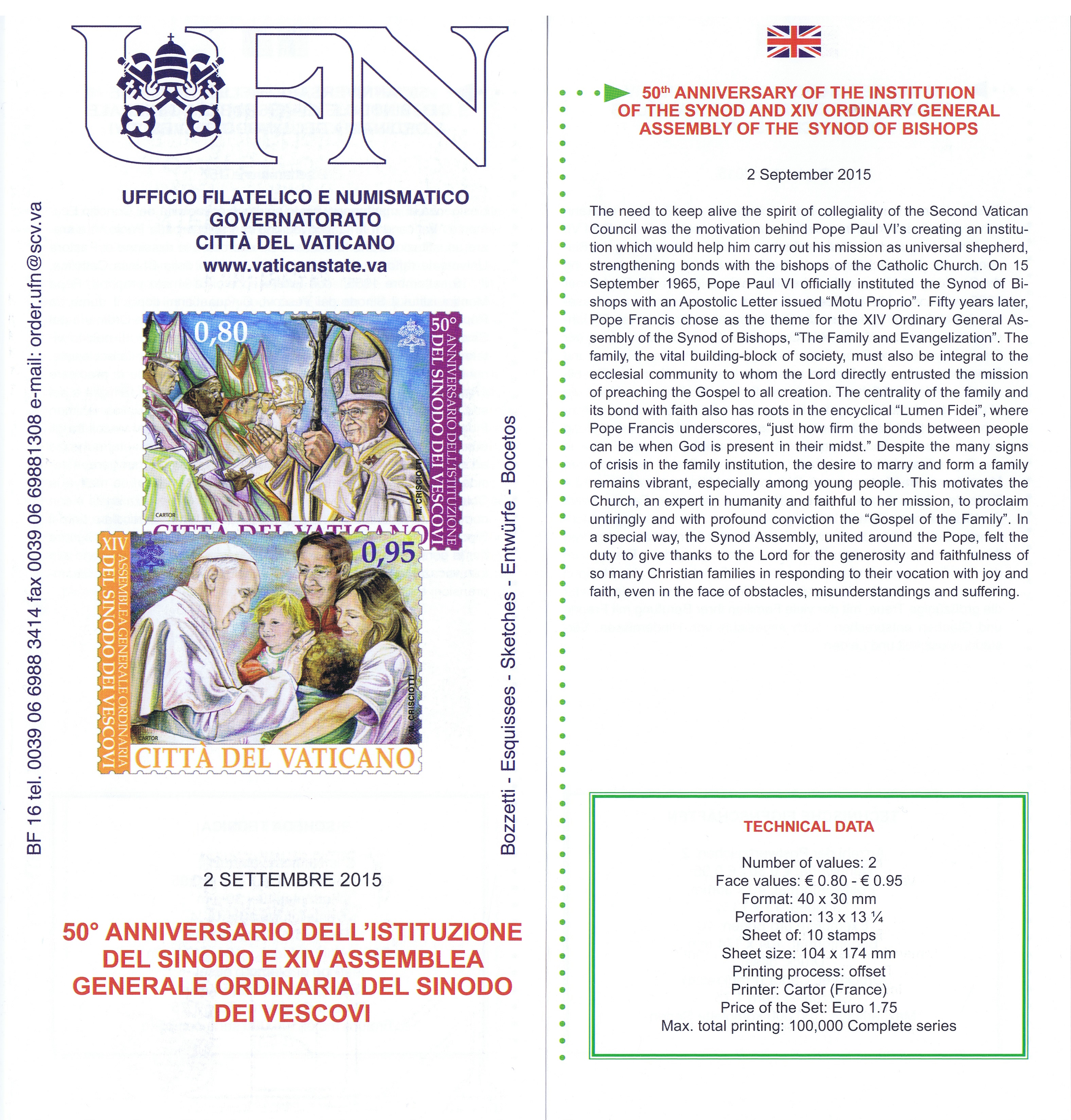 UFN New Issue Brouchures The Vatican discontiued publishing printed new issue information in 2021.