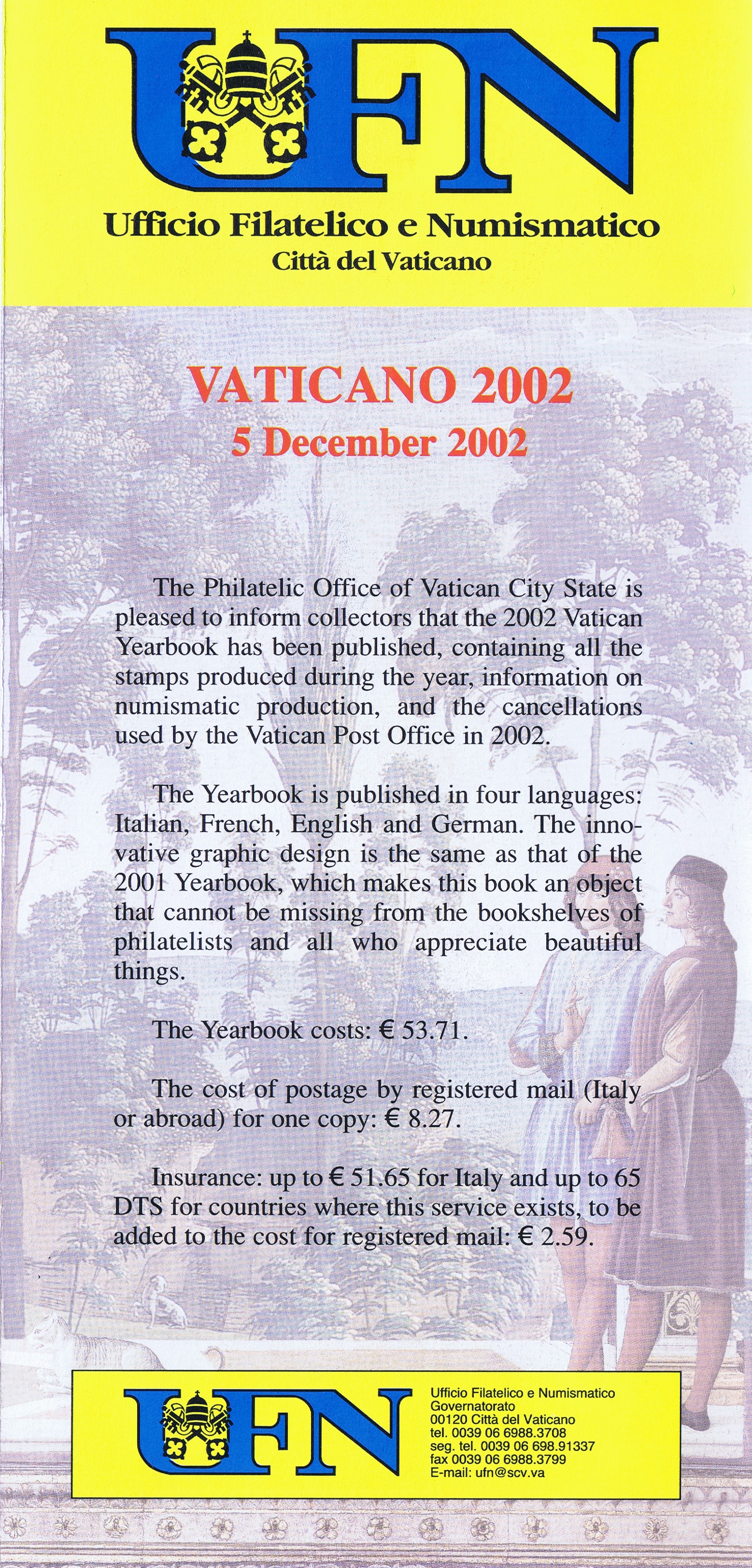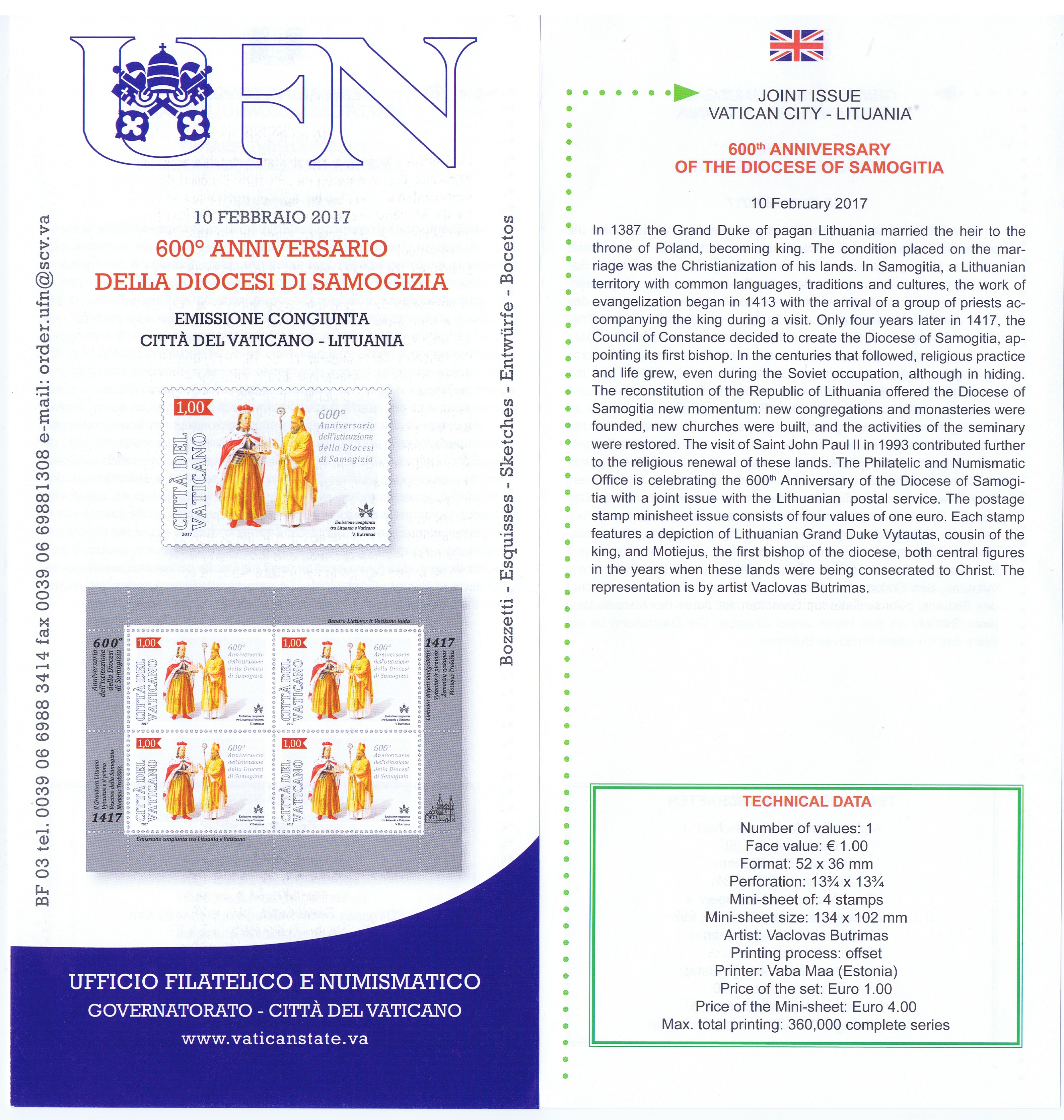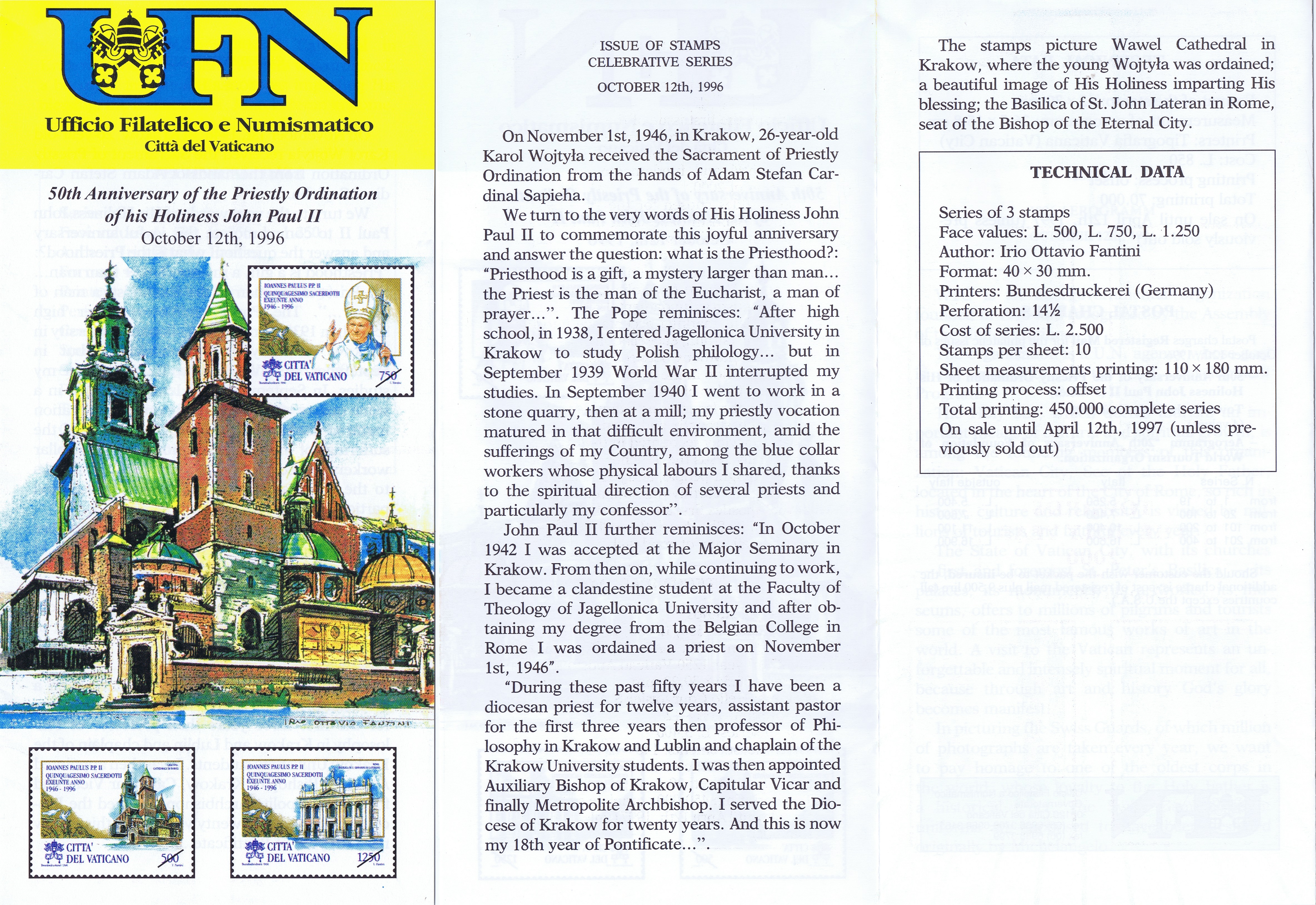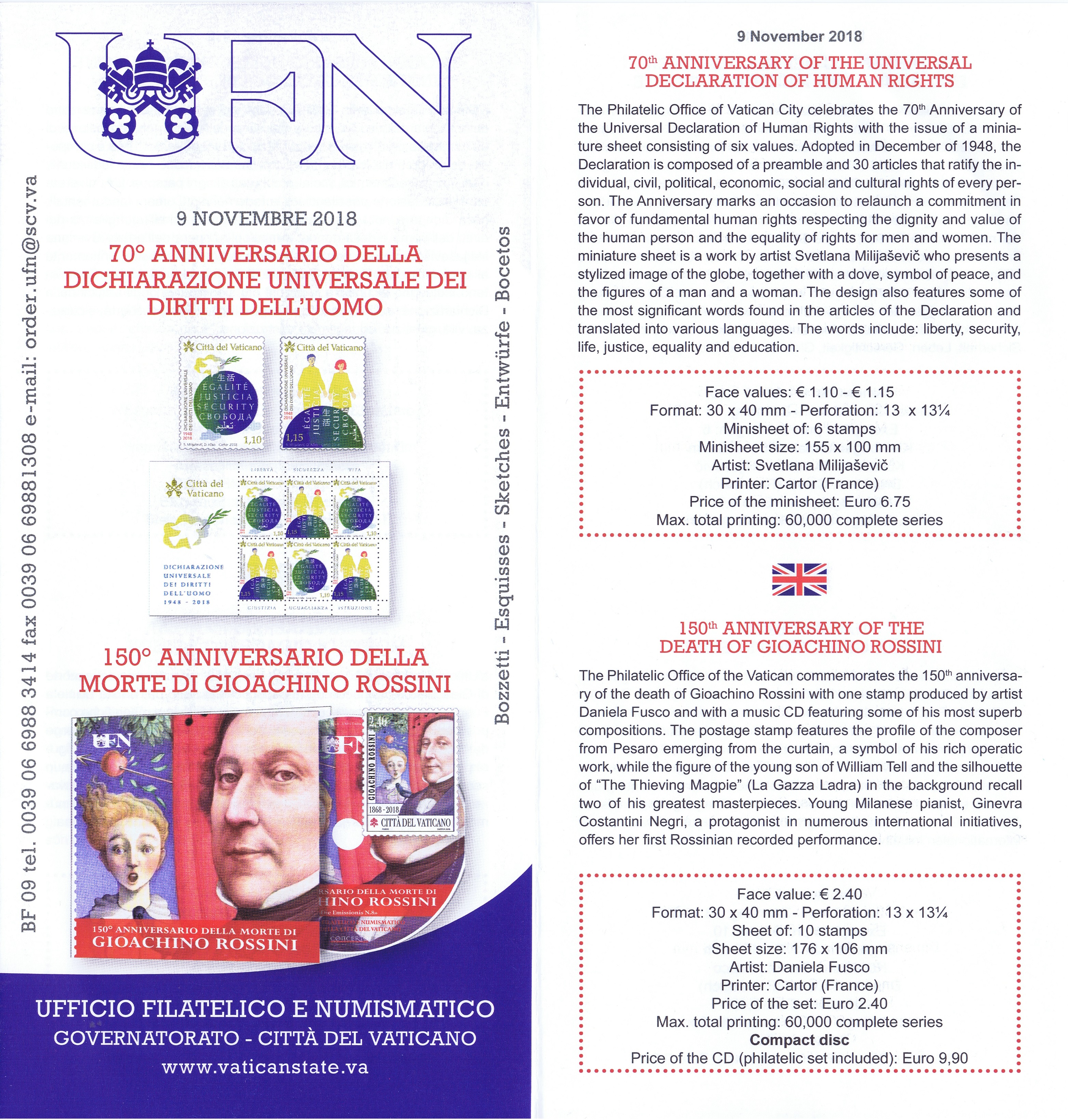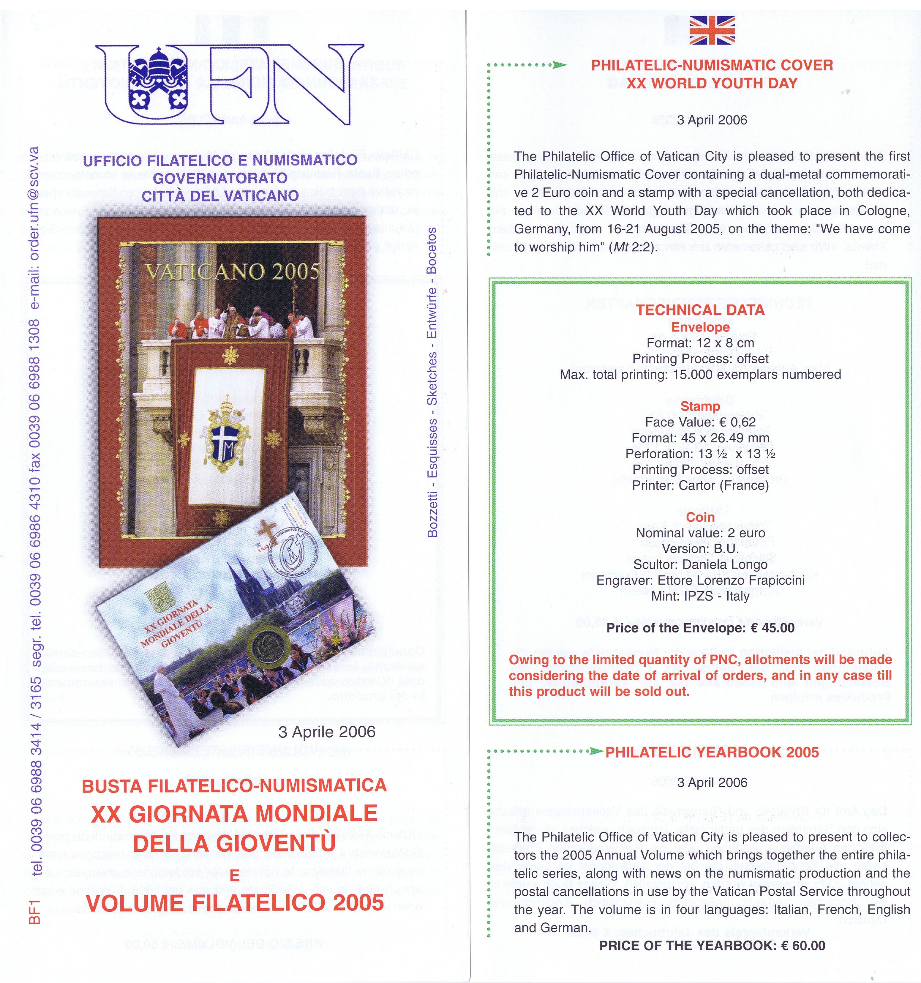 UFN New Issue Brouchures The Vatican discontiued publishing printed new issue information in 2021.