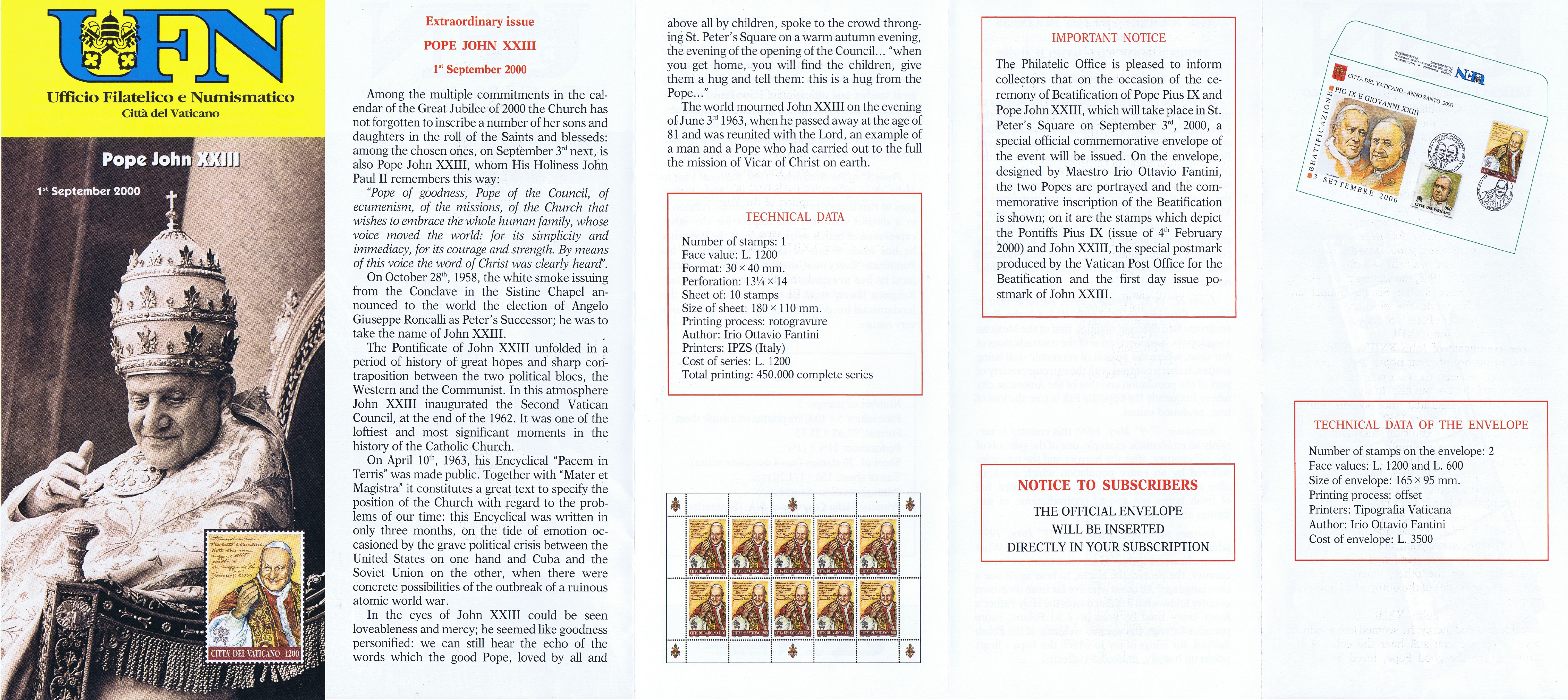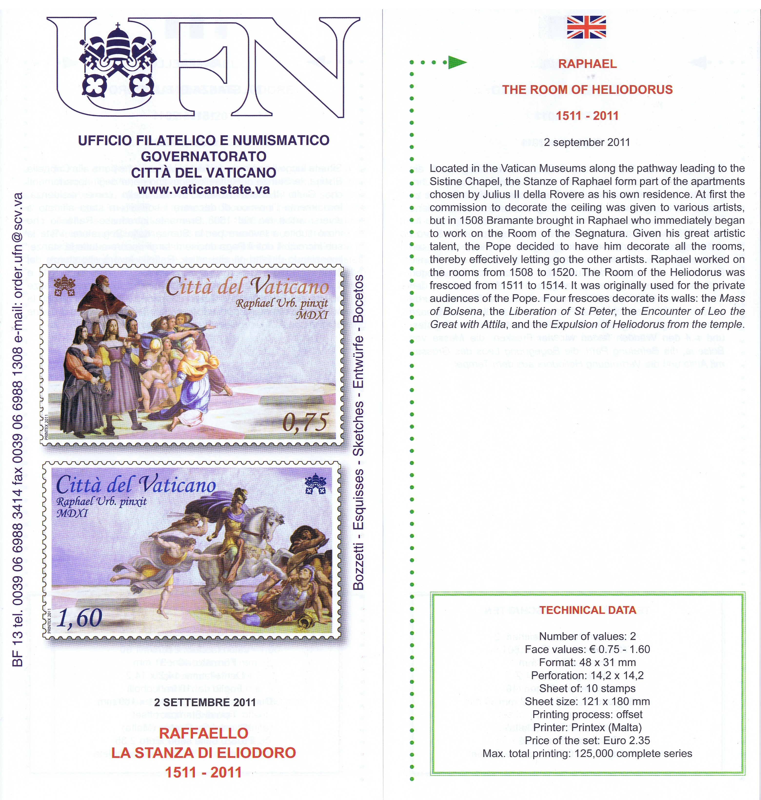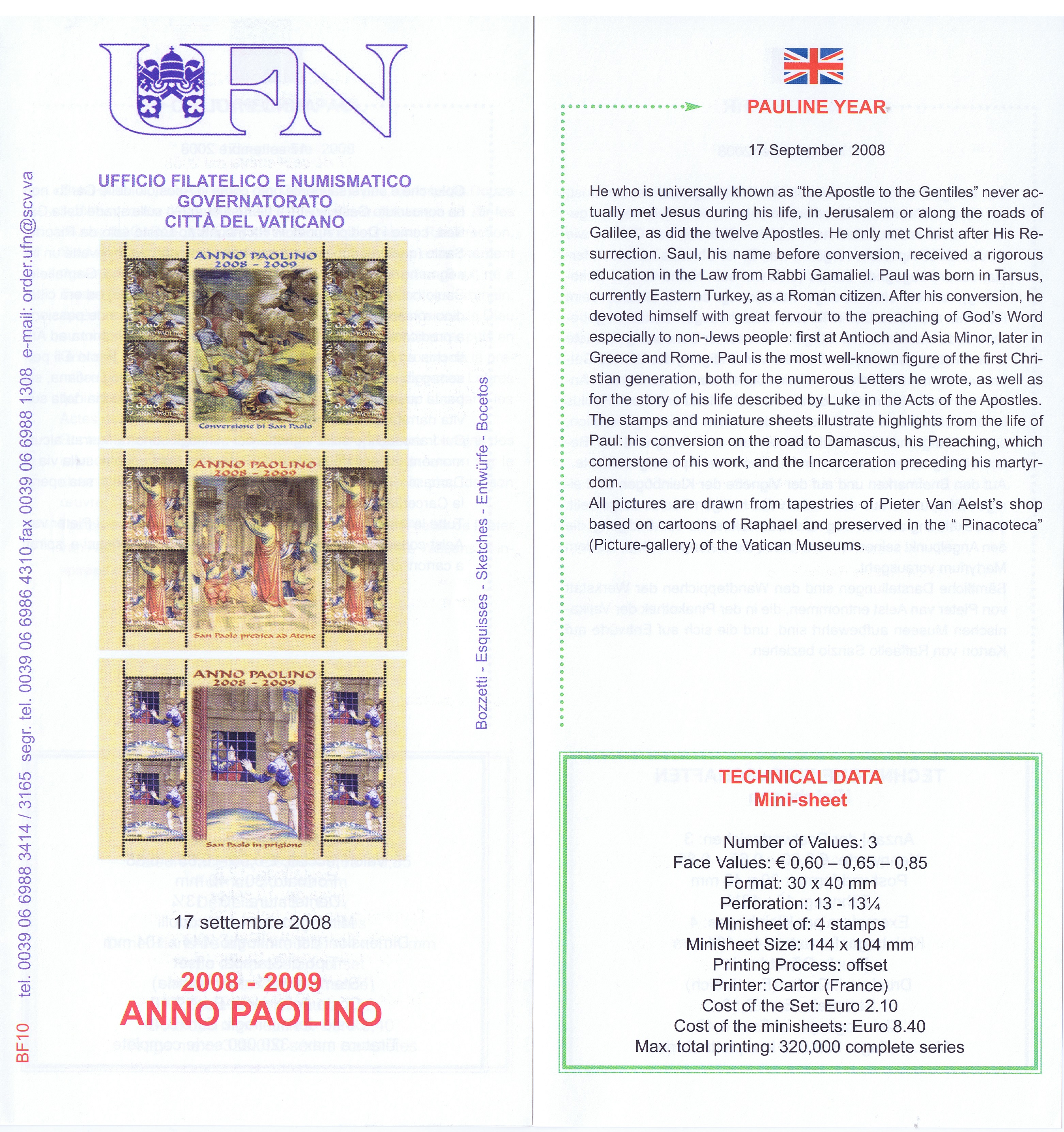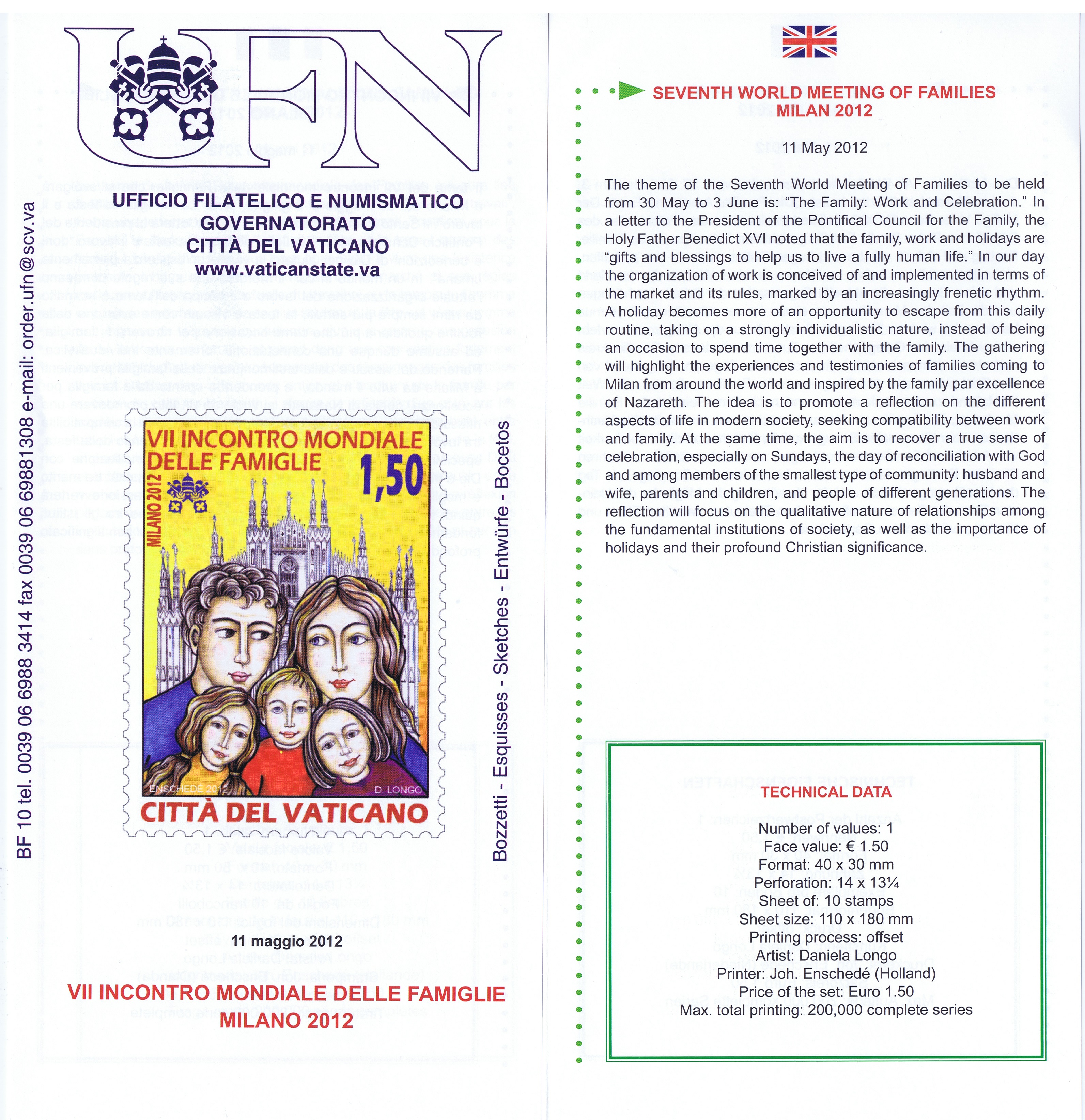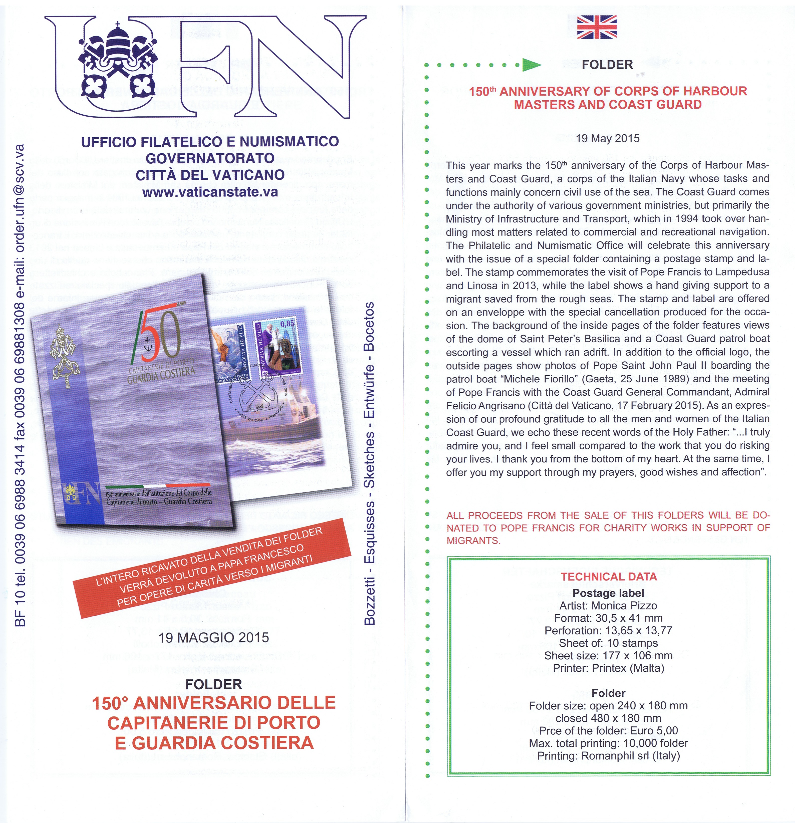 UFN New Issue Brouchures The Vatican discontiued publishing printed new issue information in 2021.