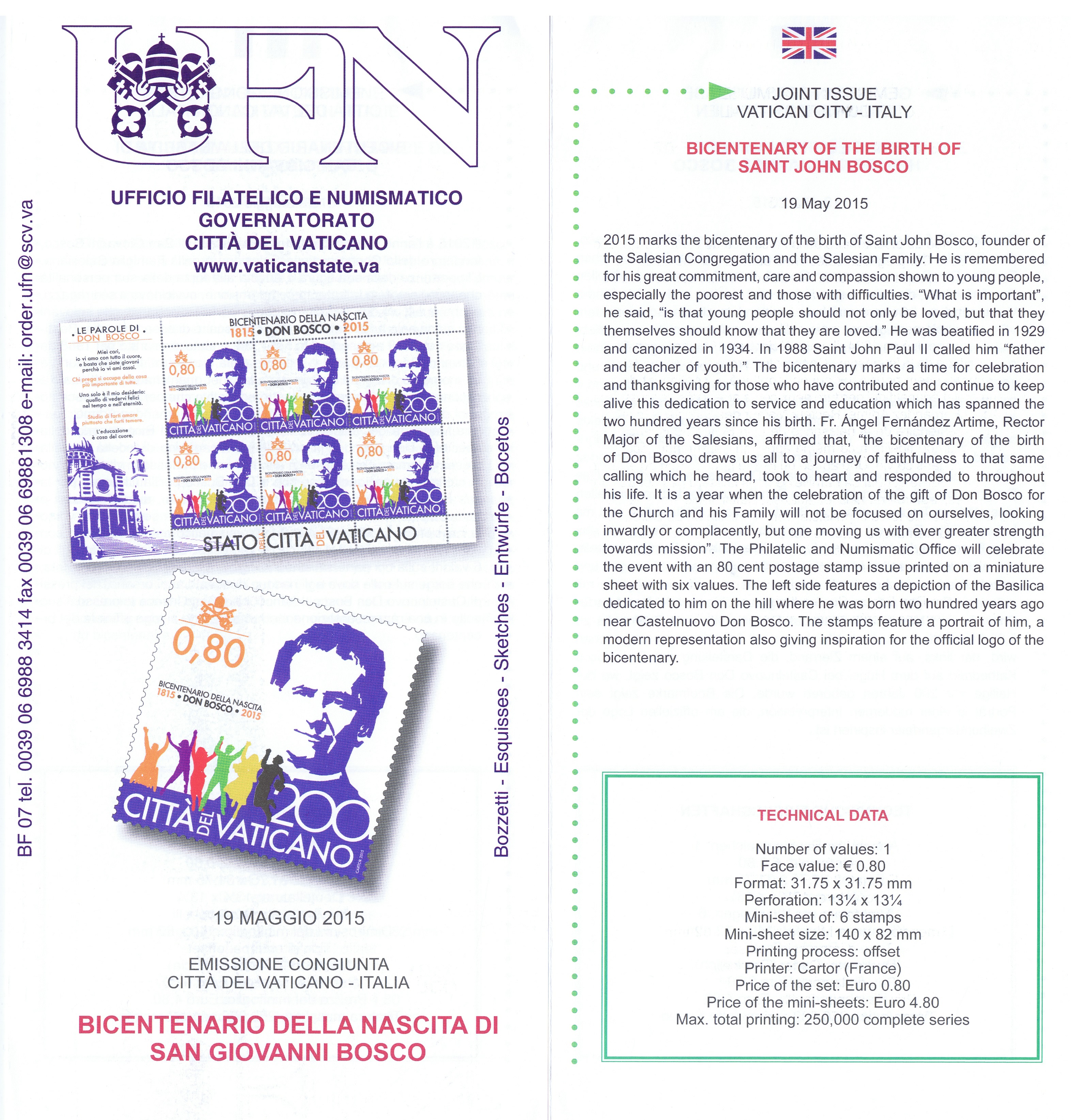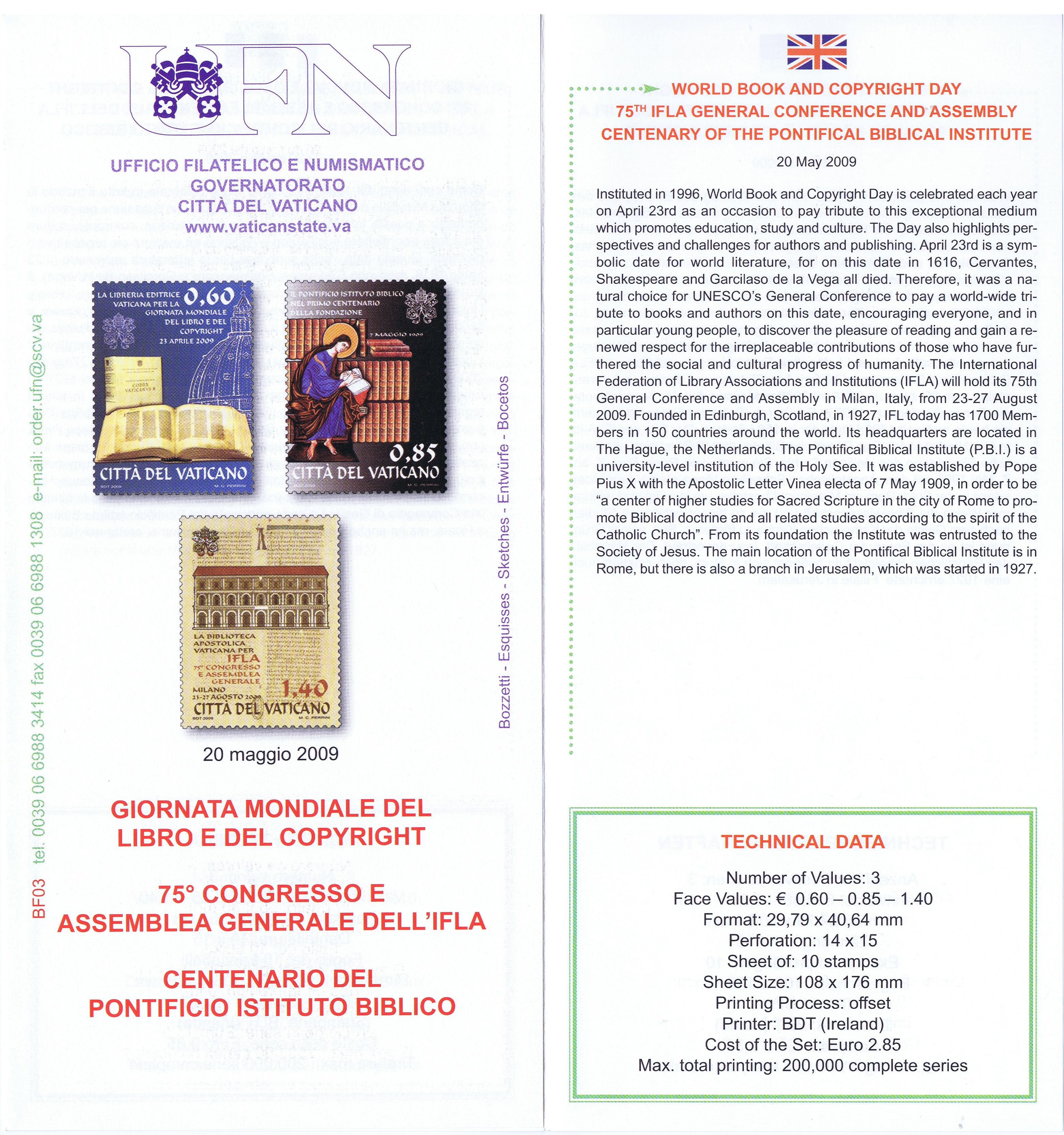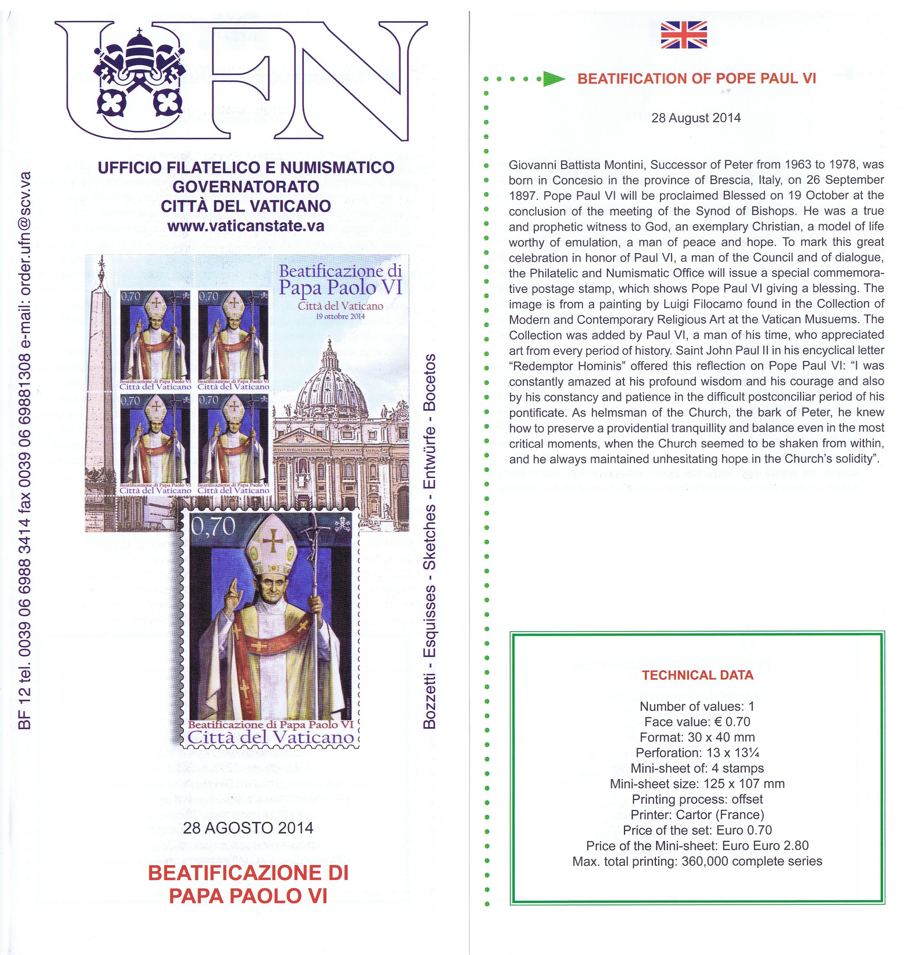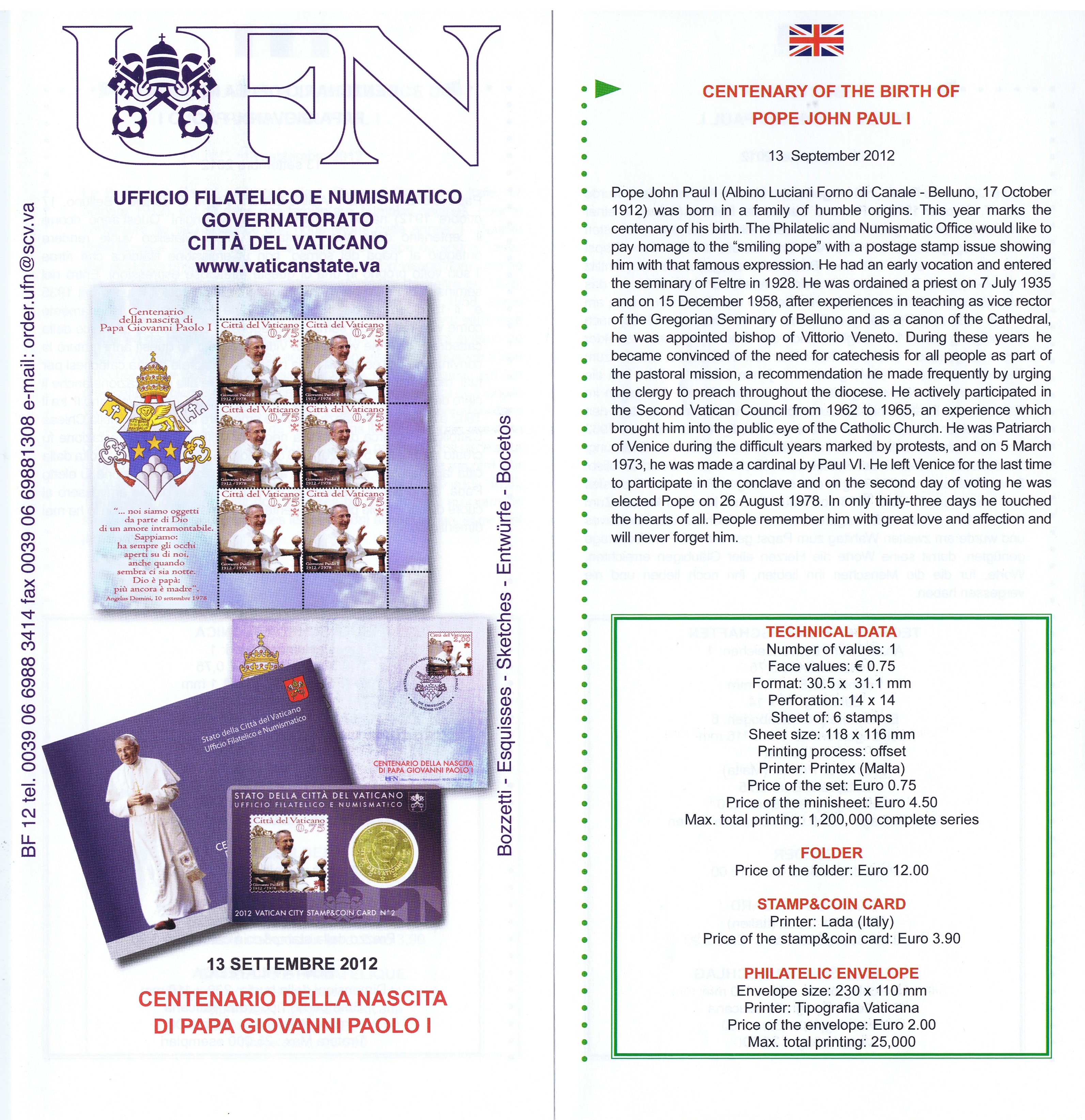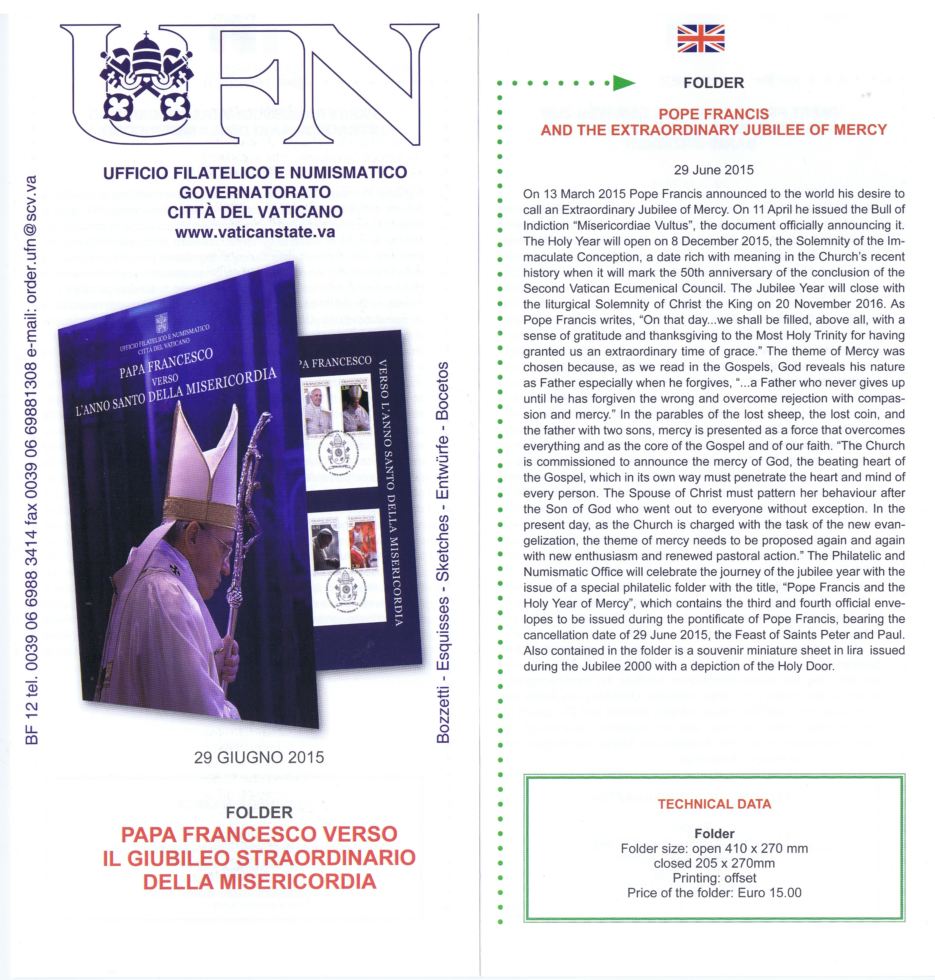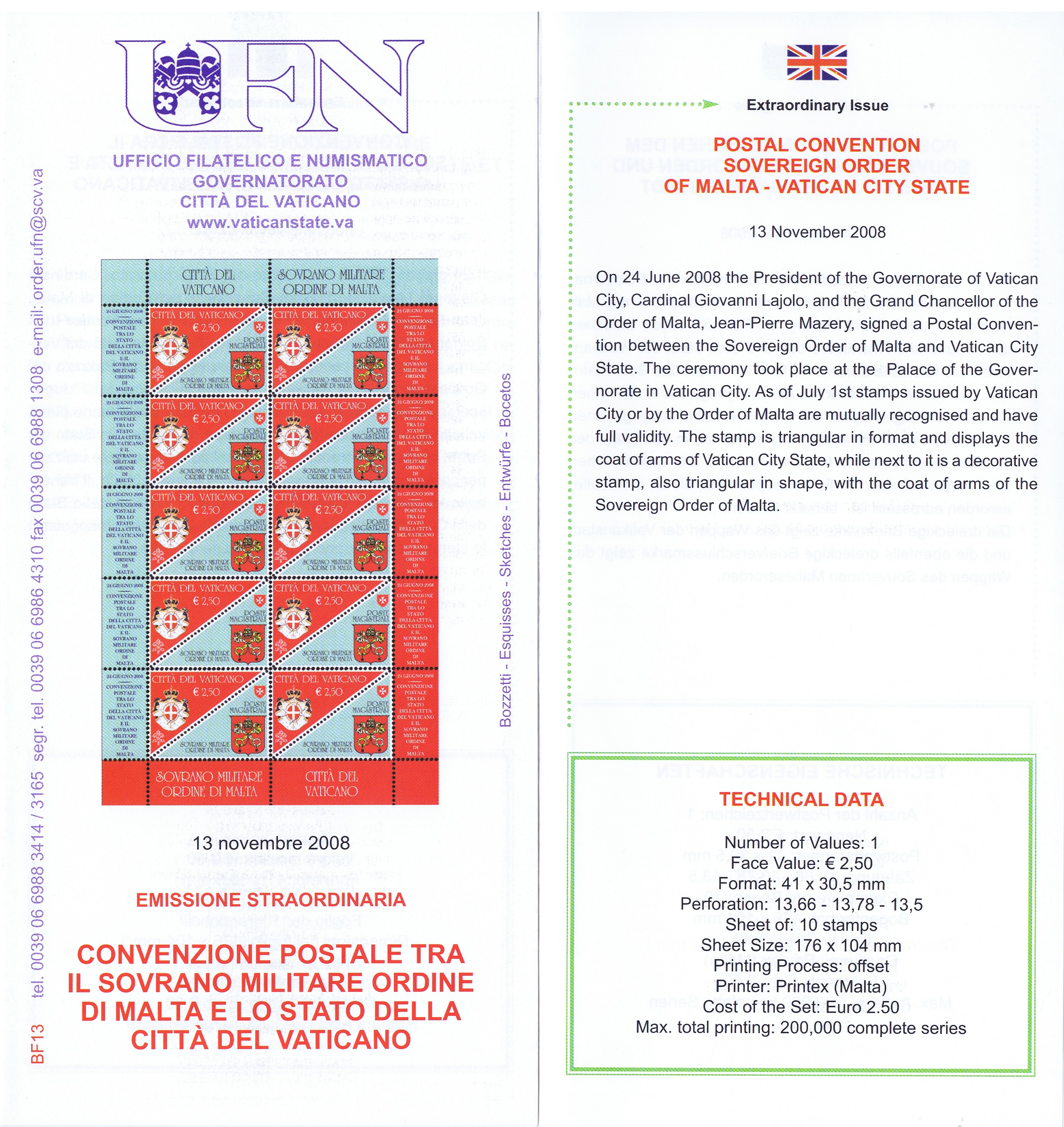 UFN New Issue Brouchures The Vatican discontiued publishing printed new issue information in 2021.