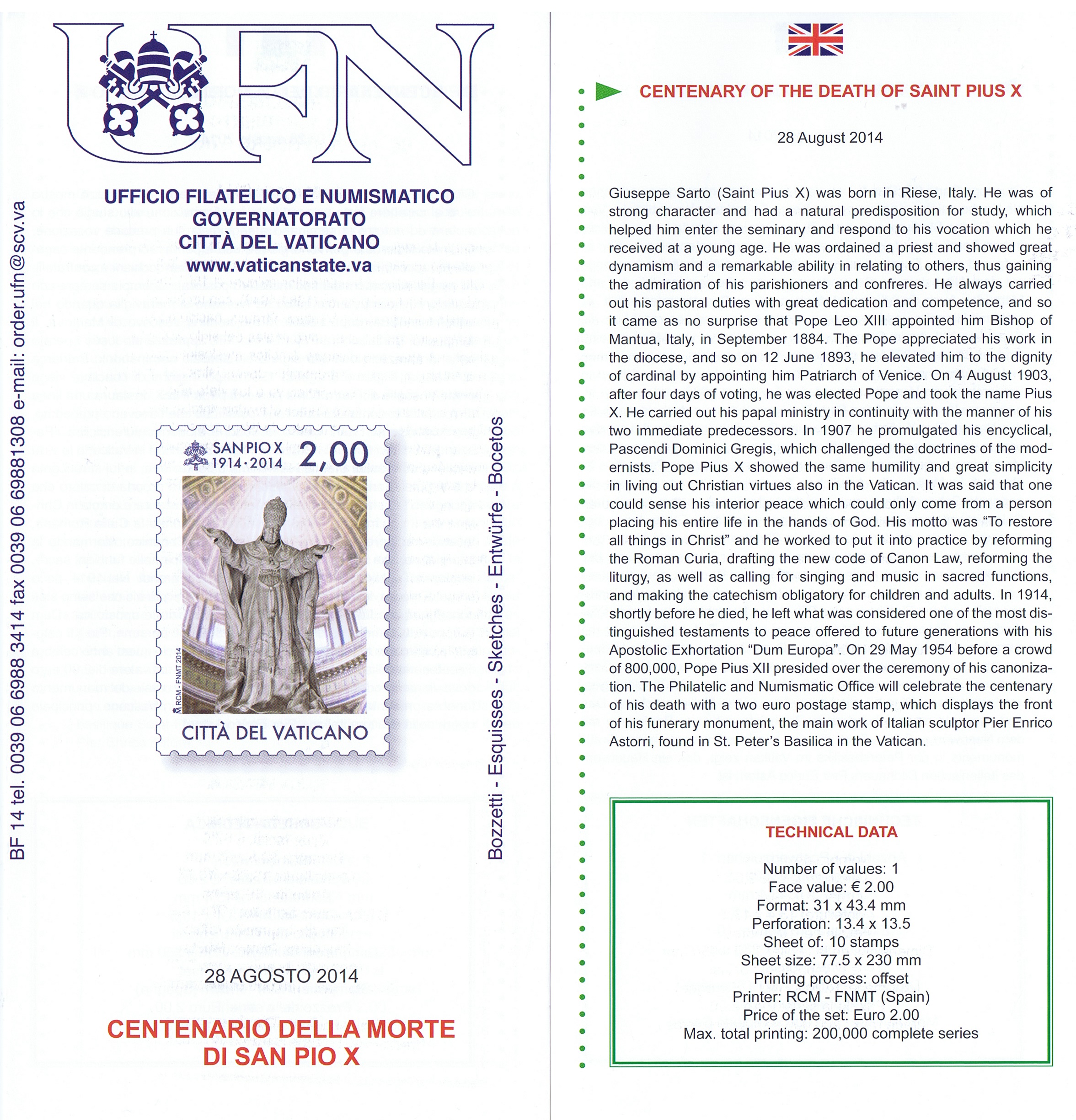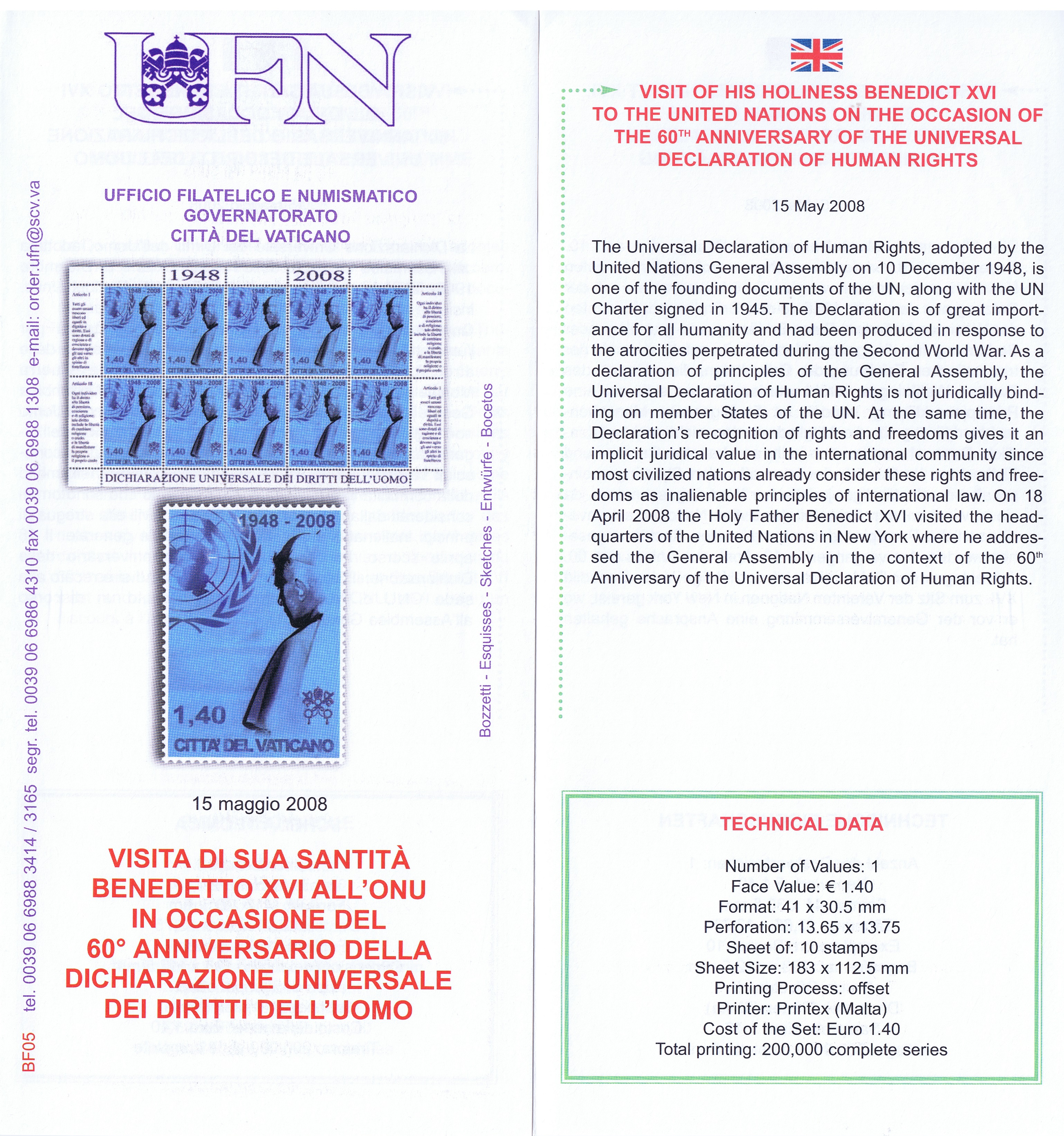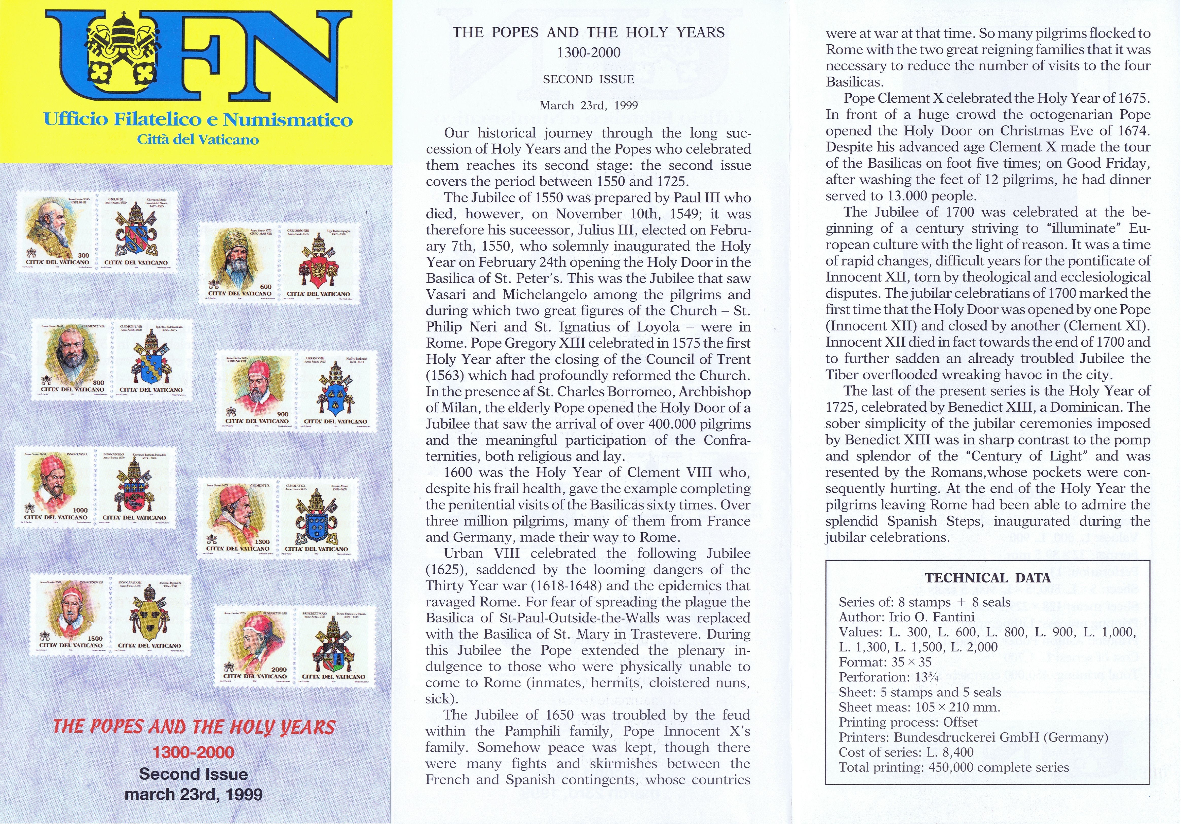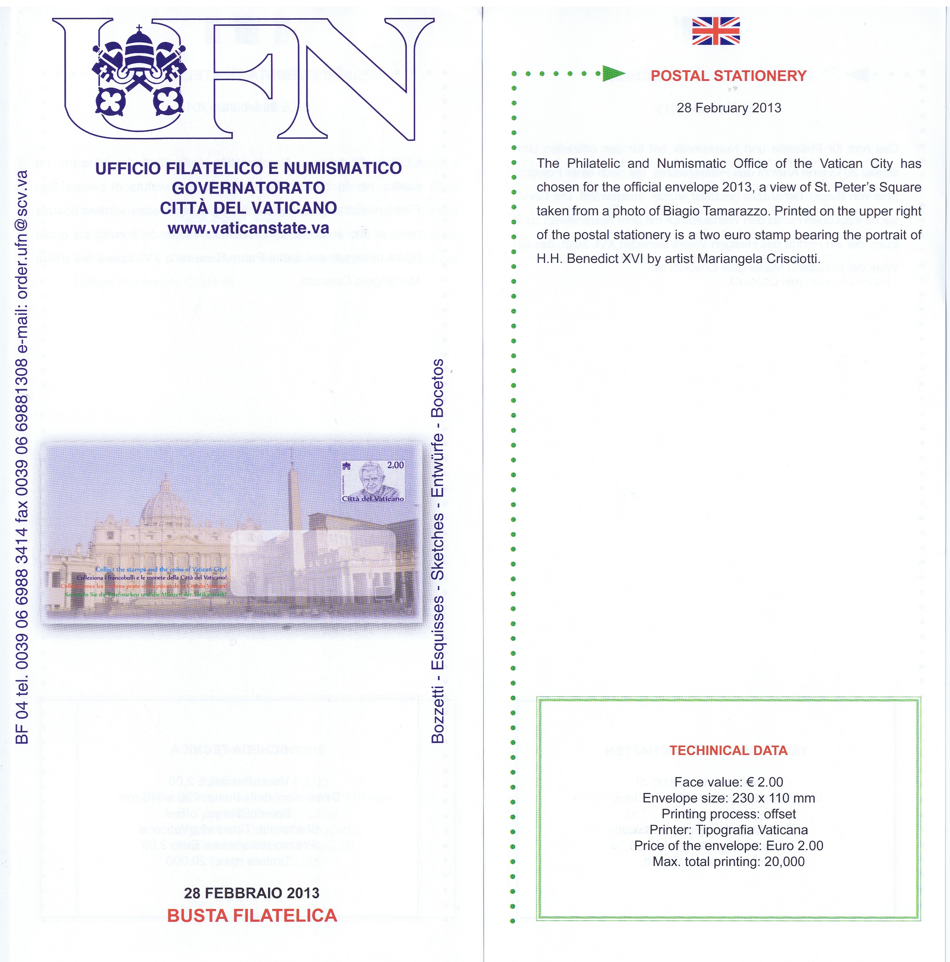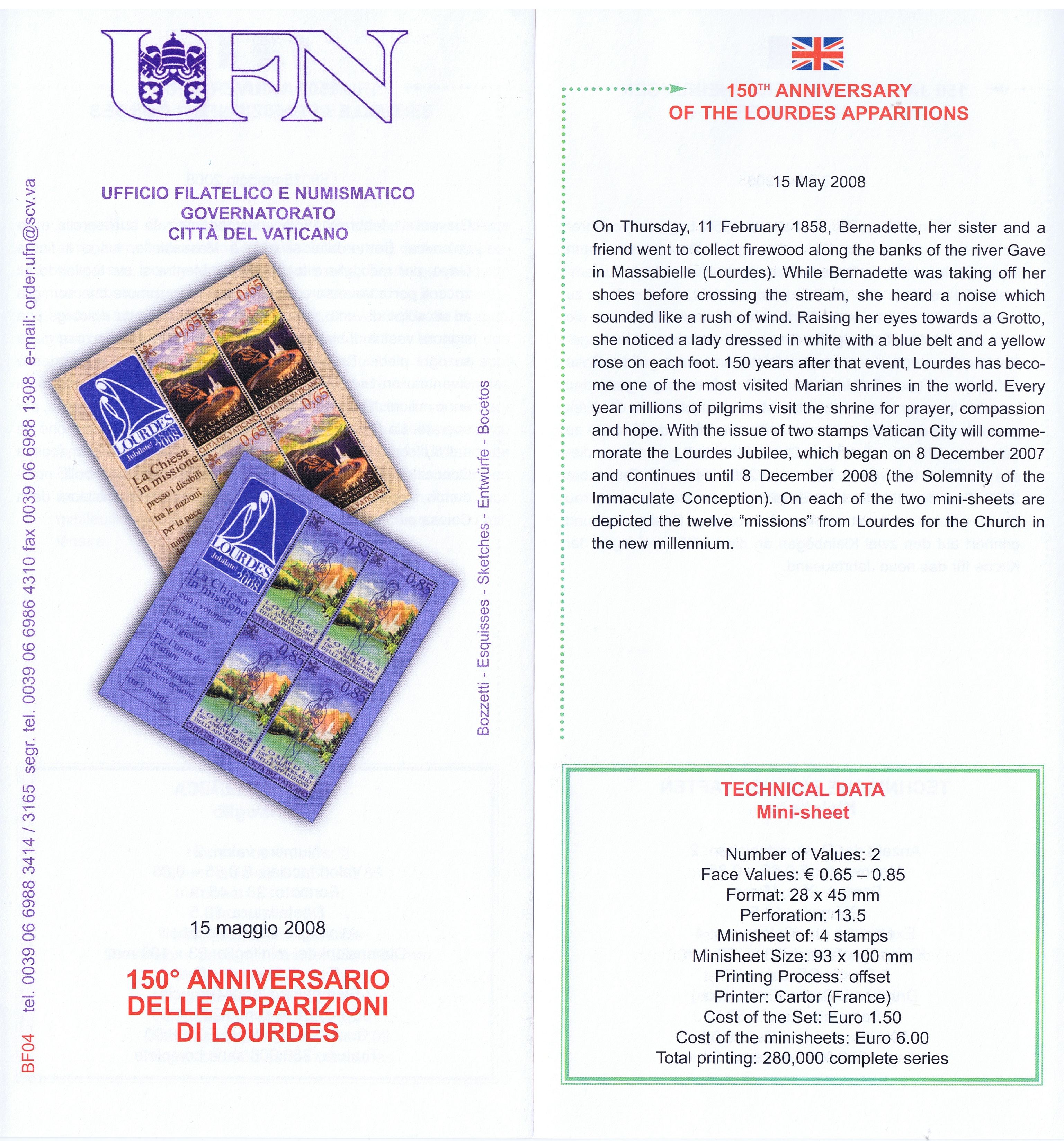 UFN New Issue Brouchures The Vatican discontiued publishing printed new issue information in 2021.