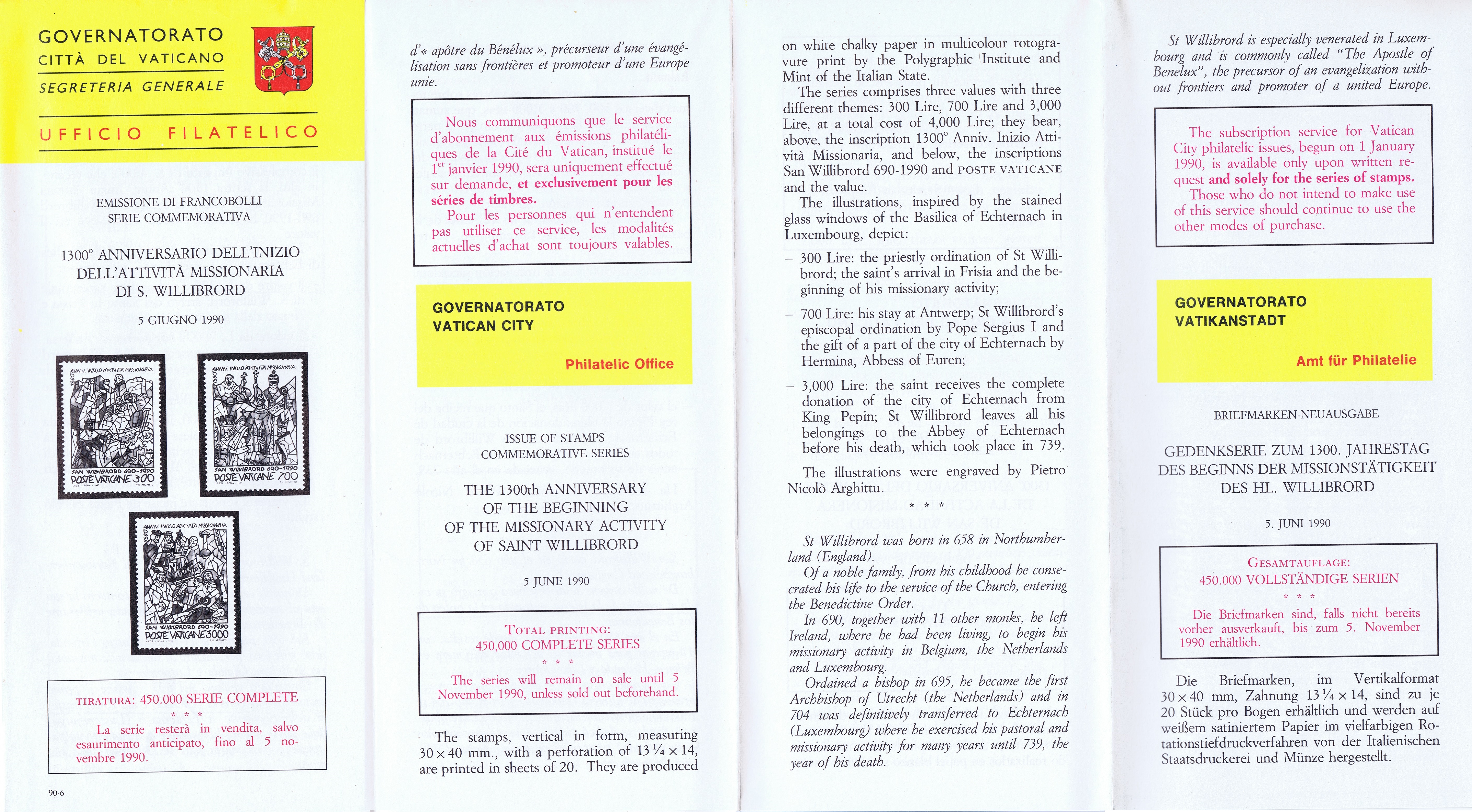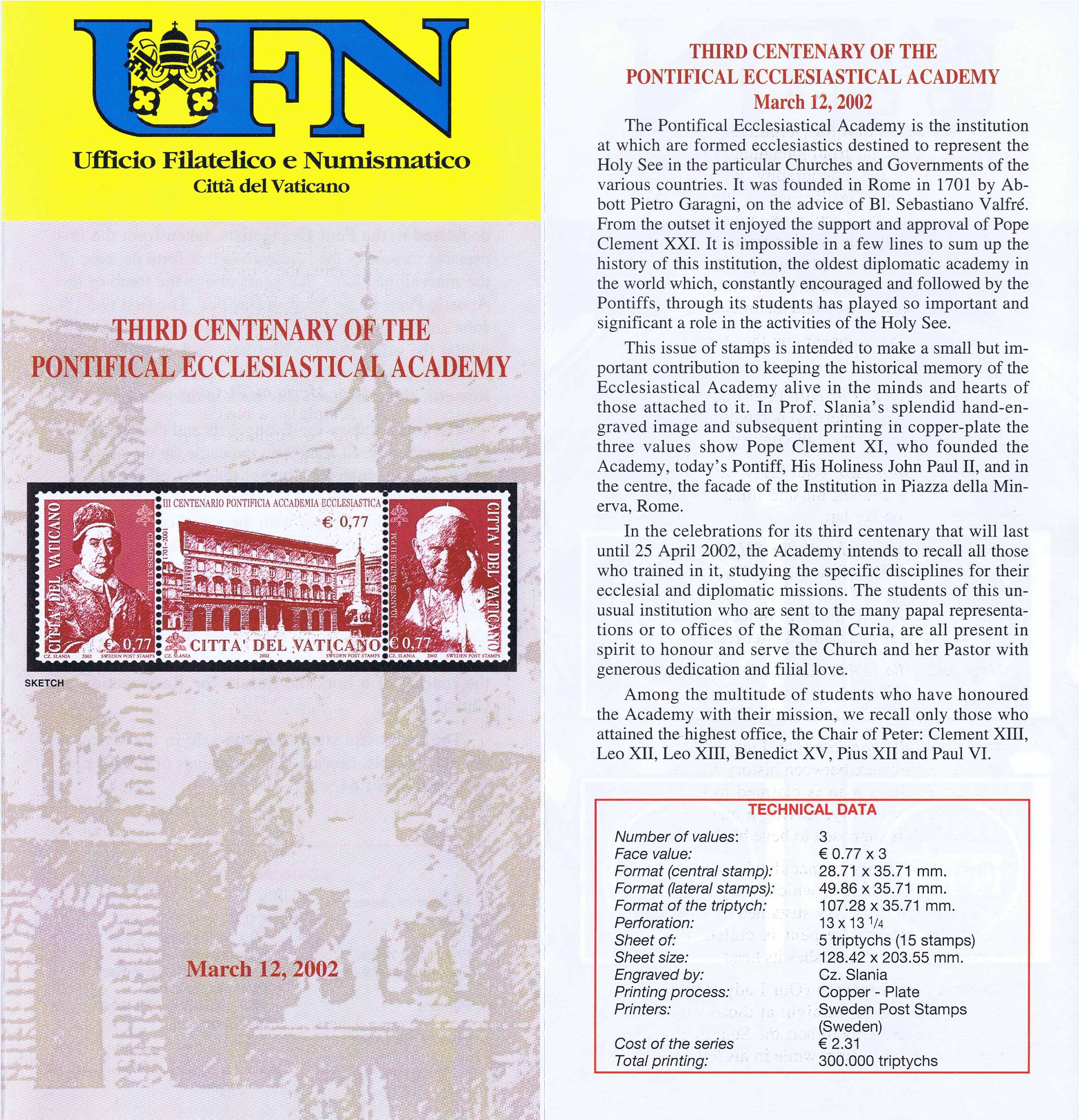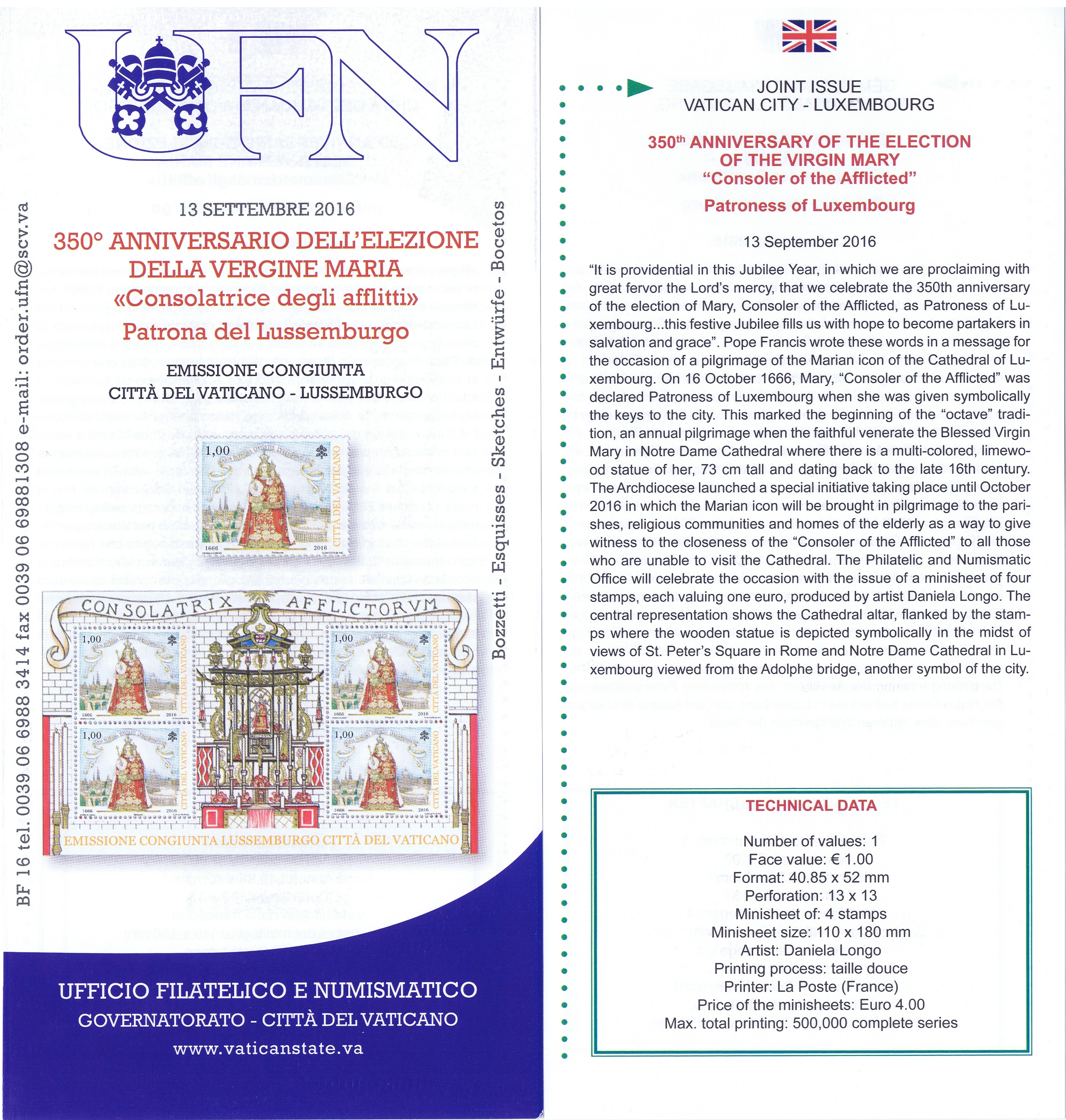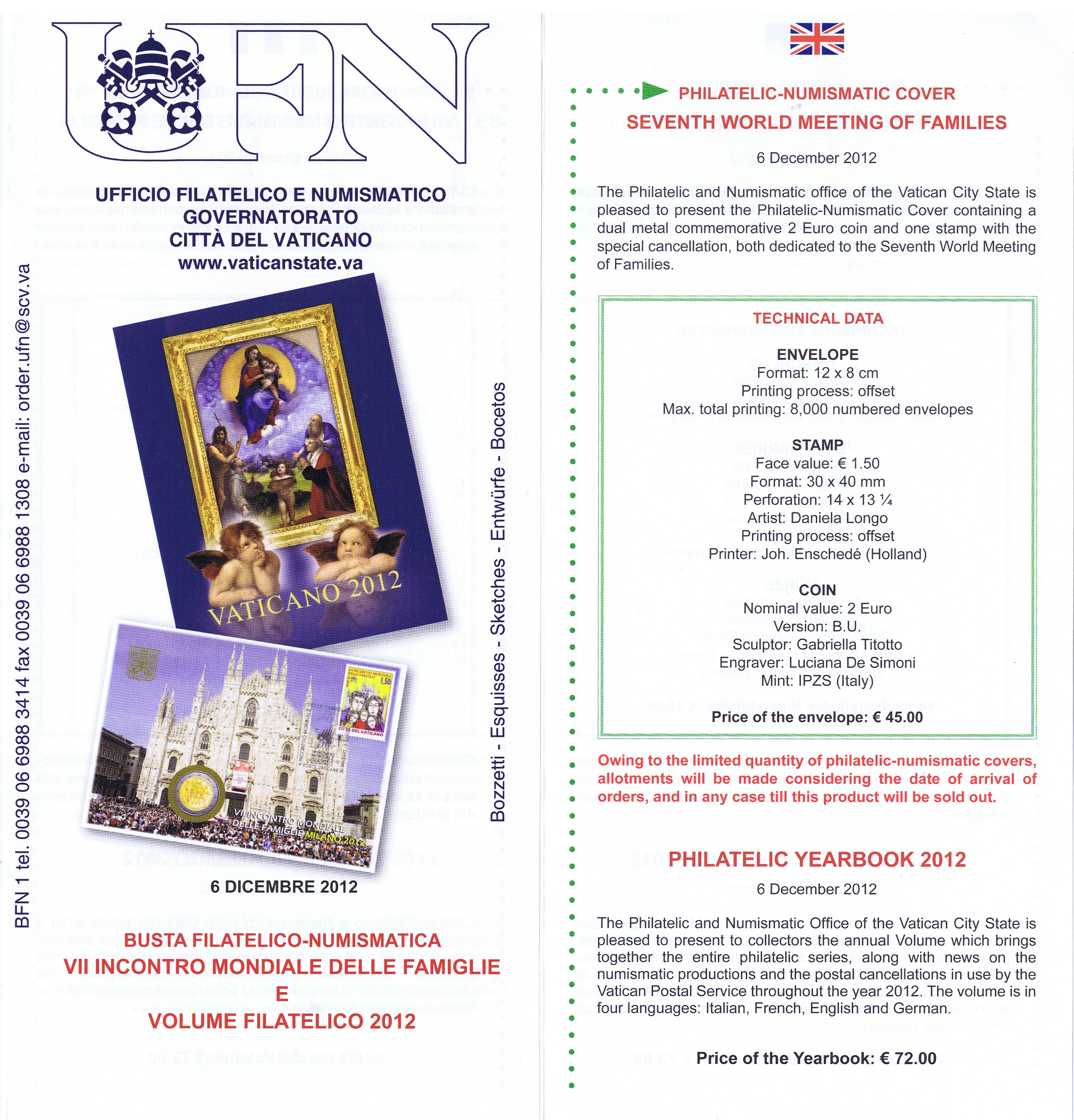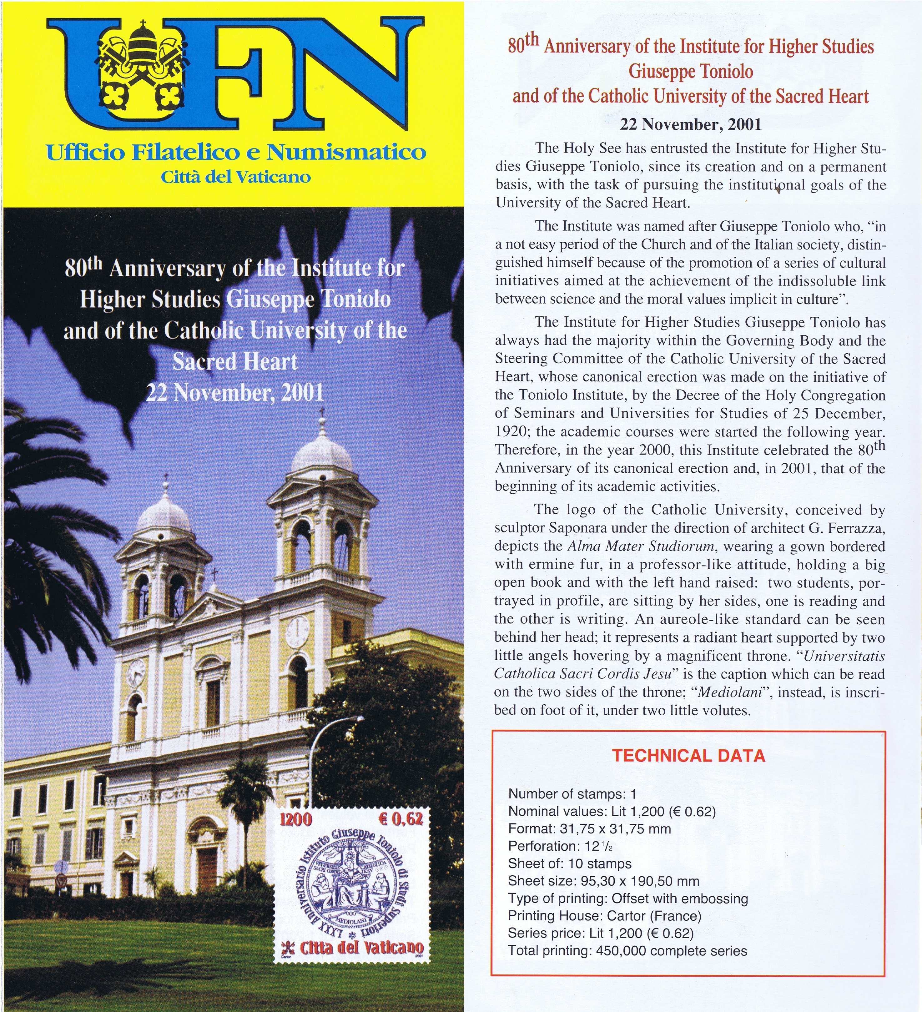 UFN New Issue Brouchures The Vatican discontiued publishing printed new issue information in 2021.