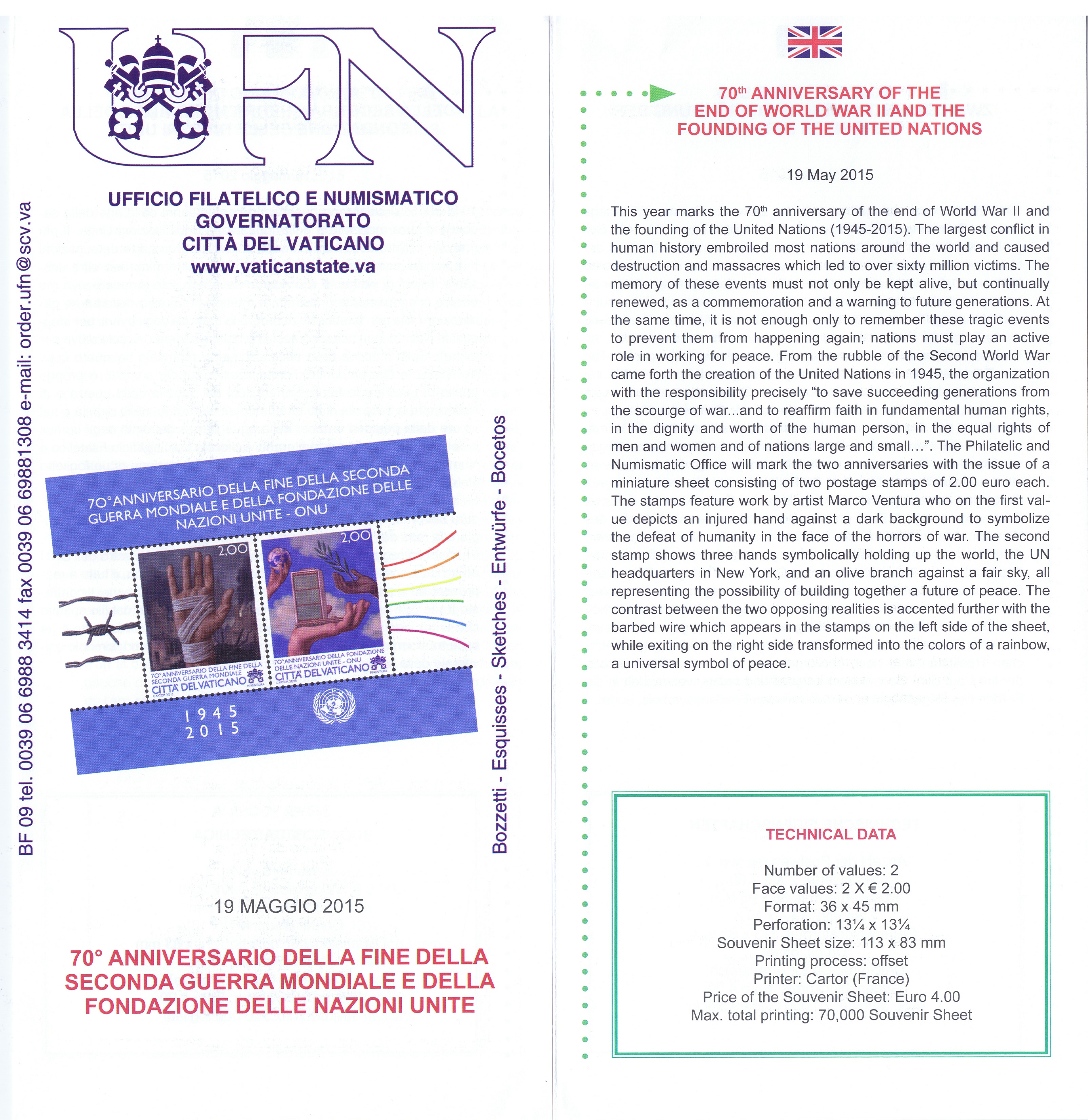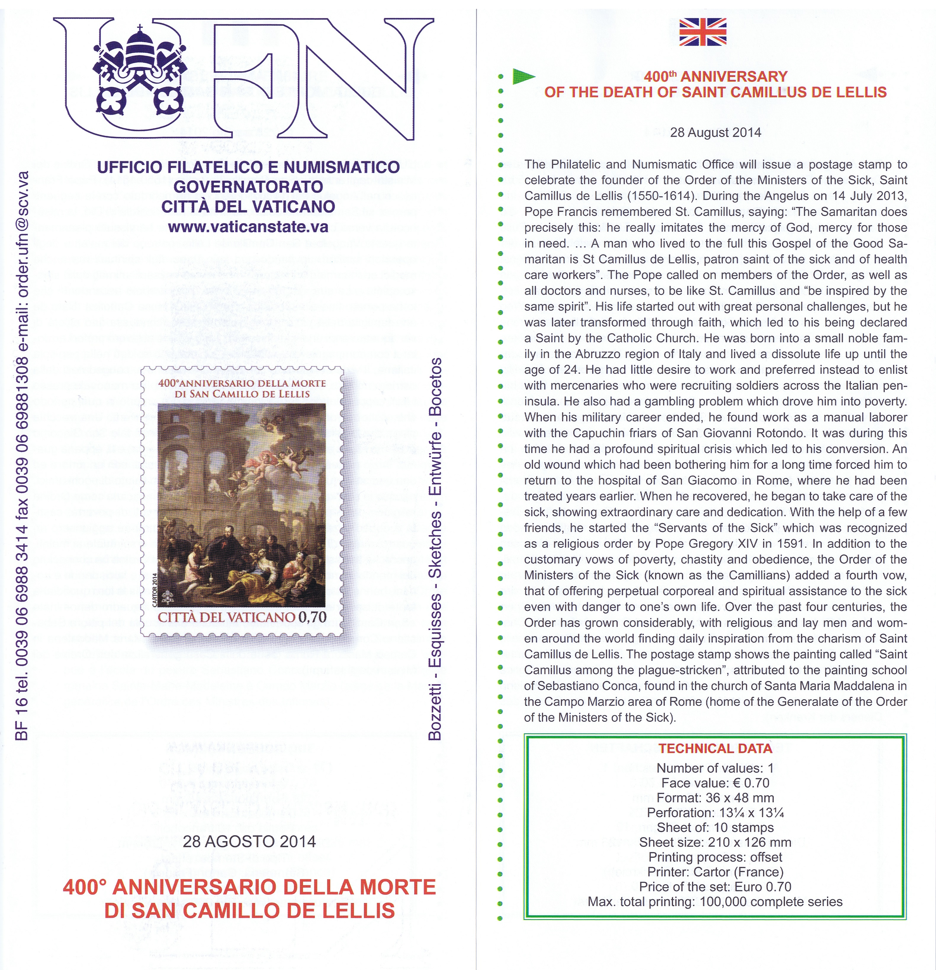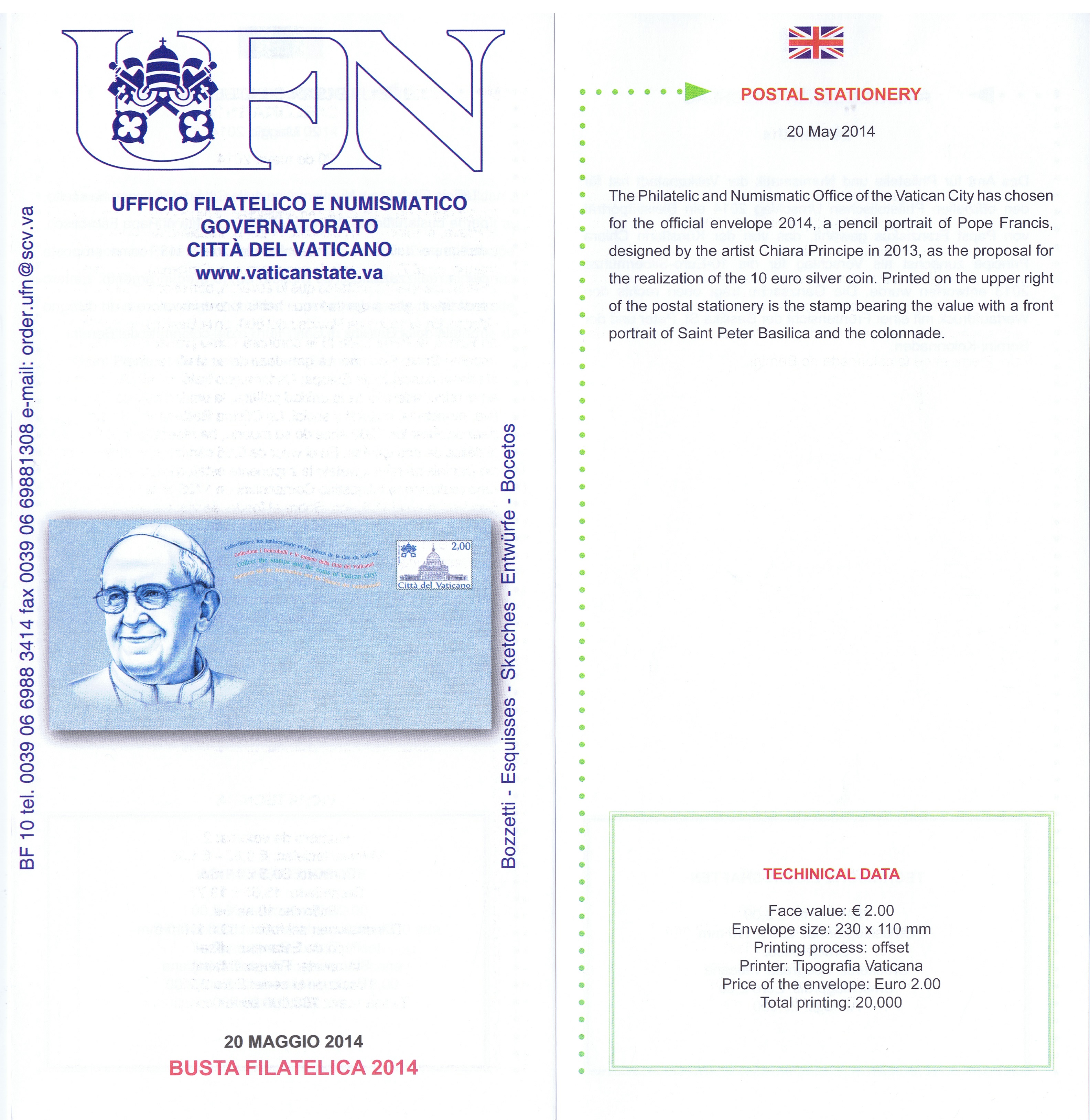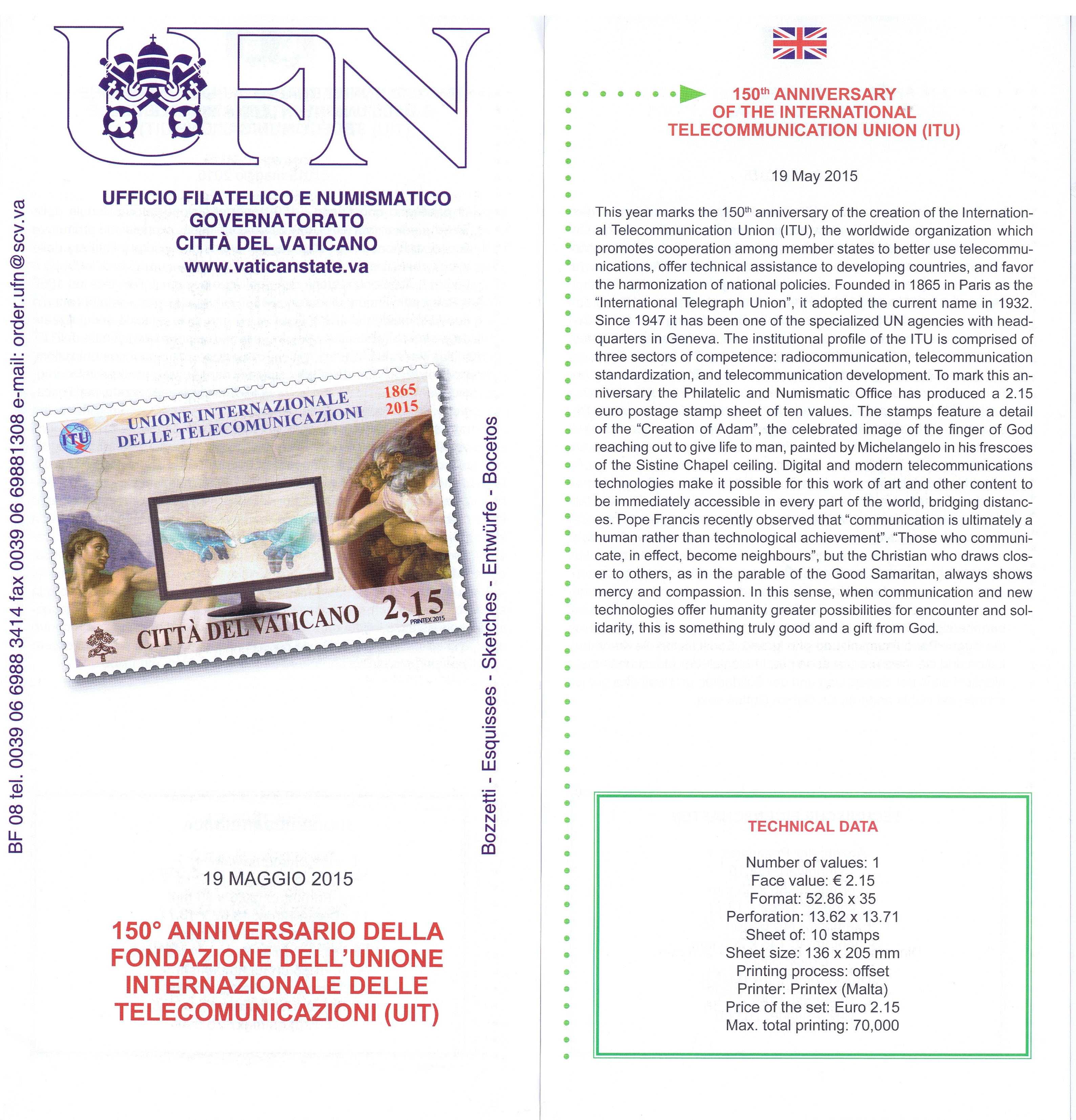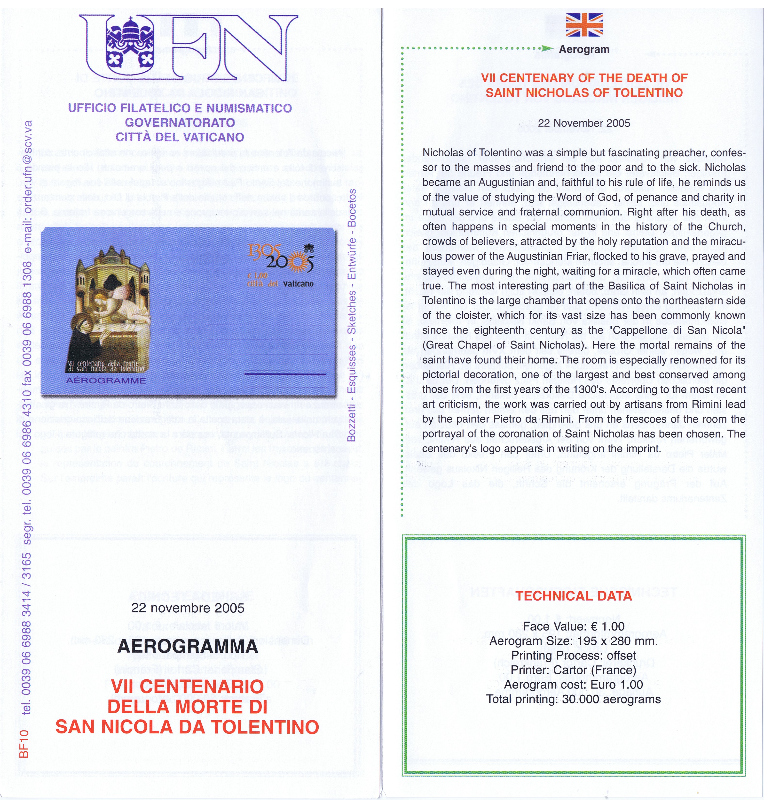 UFN New Issue Brouchures The Vatican discontiued publishing printed new issue information in 2021.