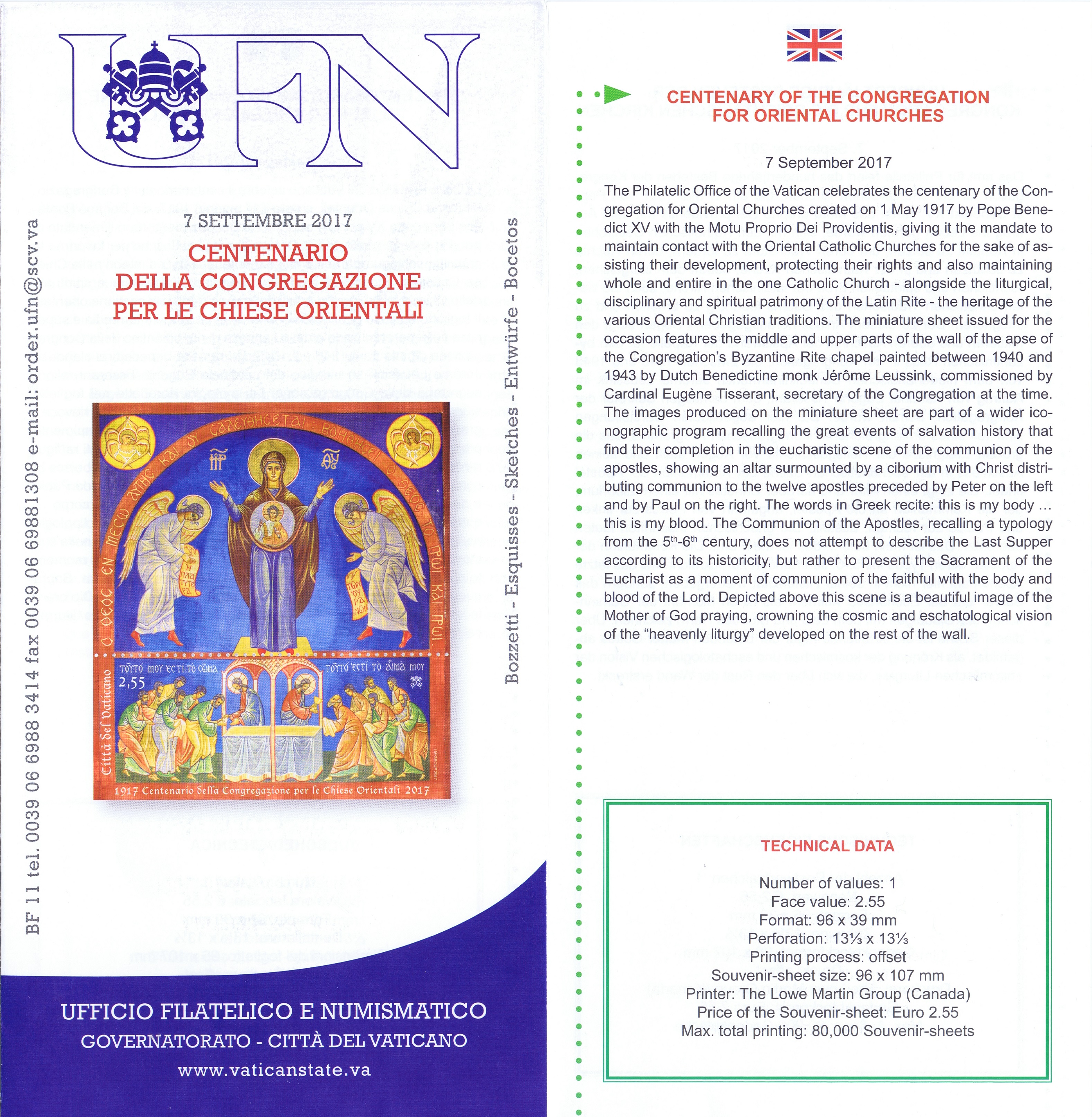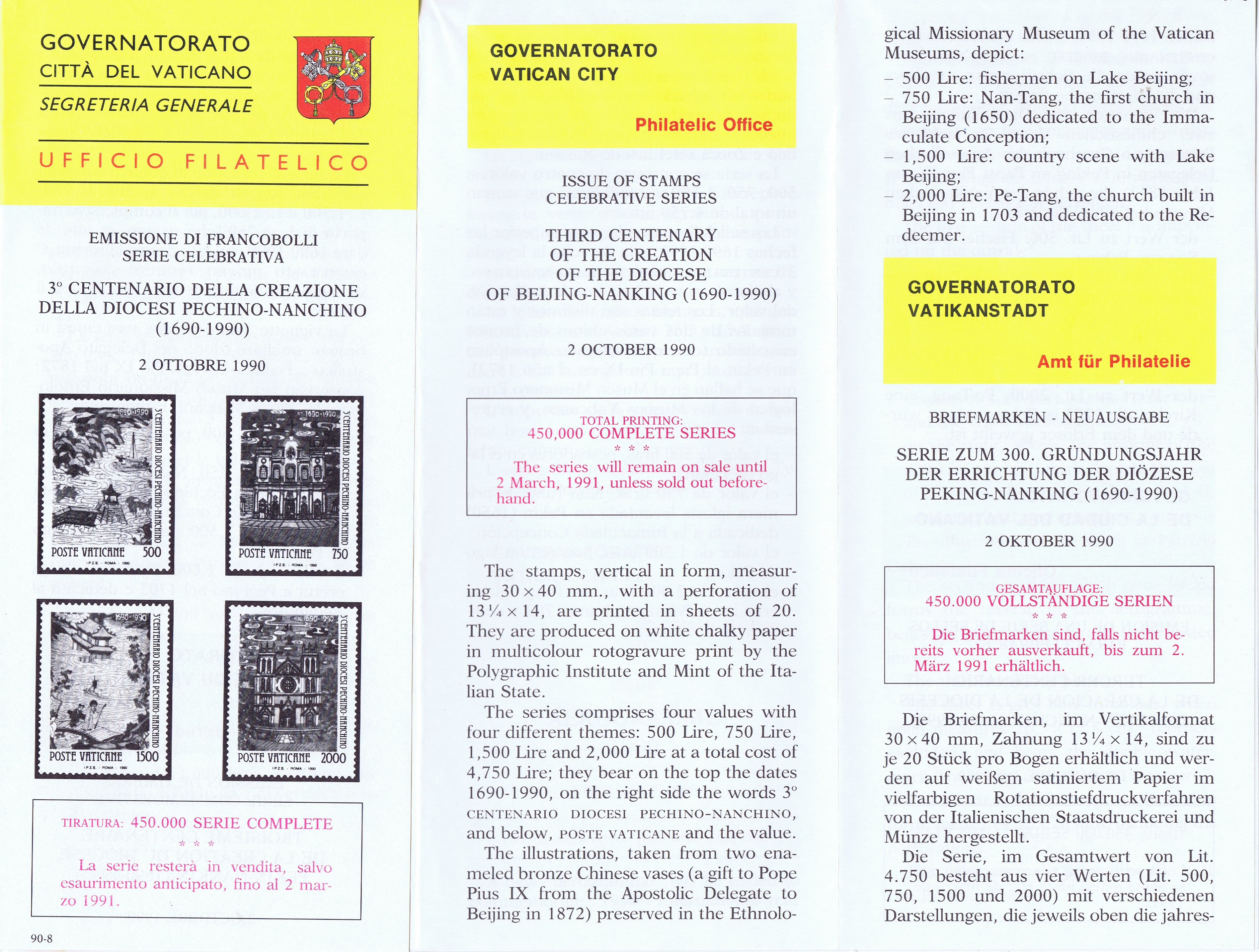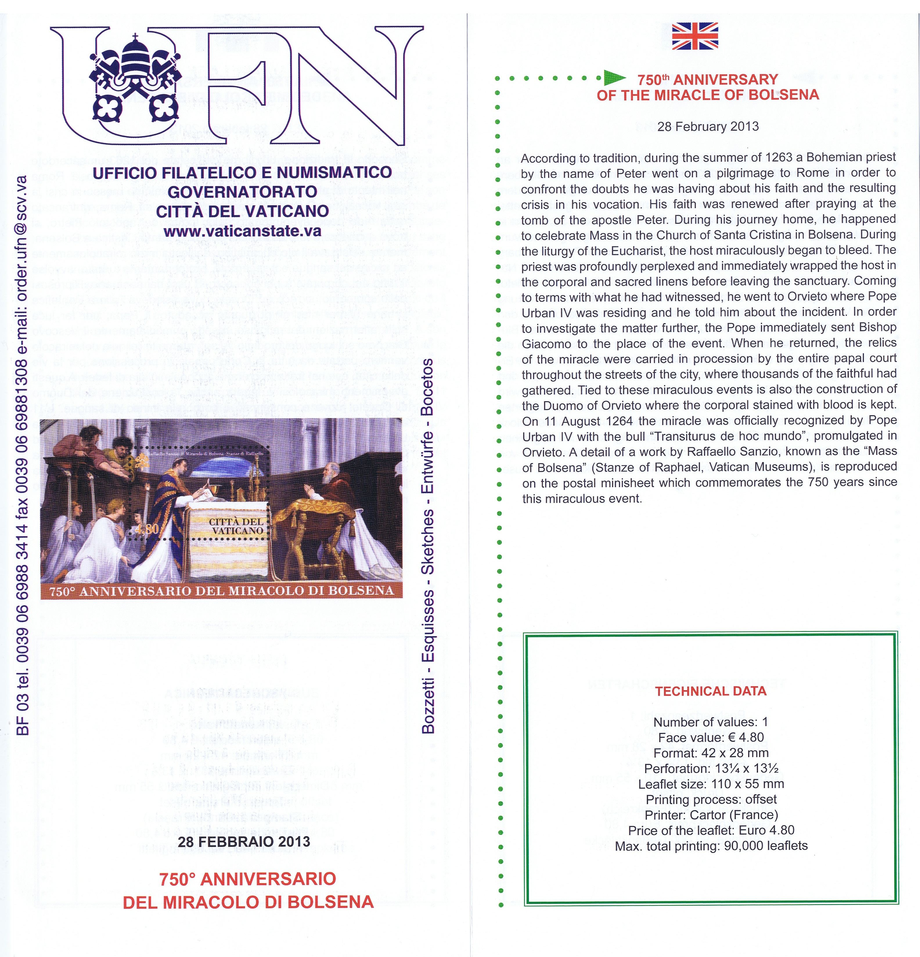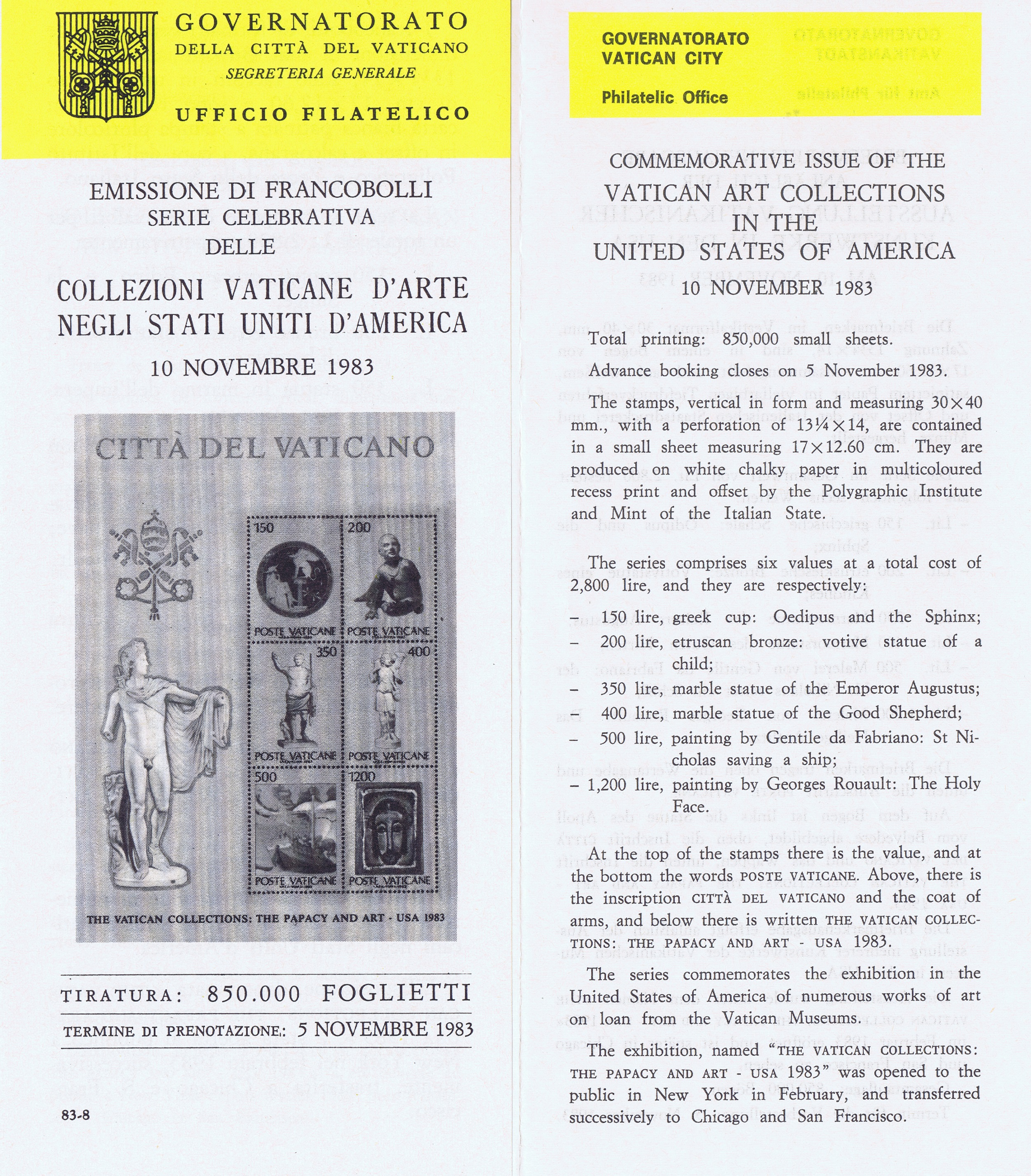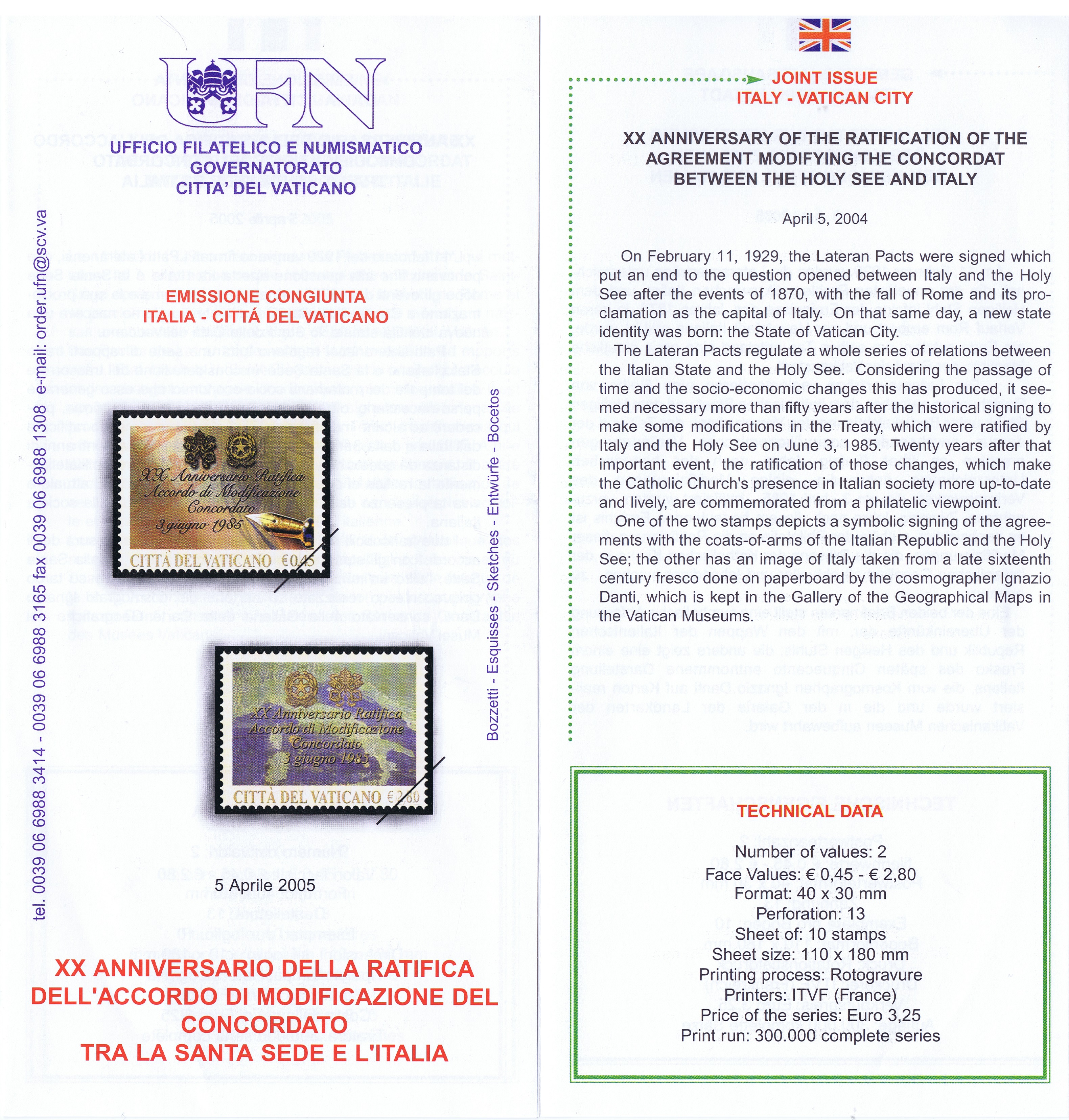 UFN New Issue Brouchures The Vatican discontiued publishing printed new issue information in 2021.