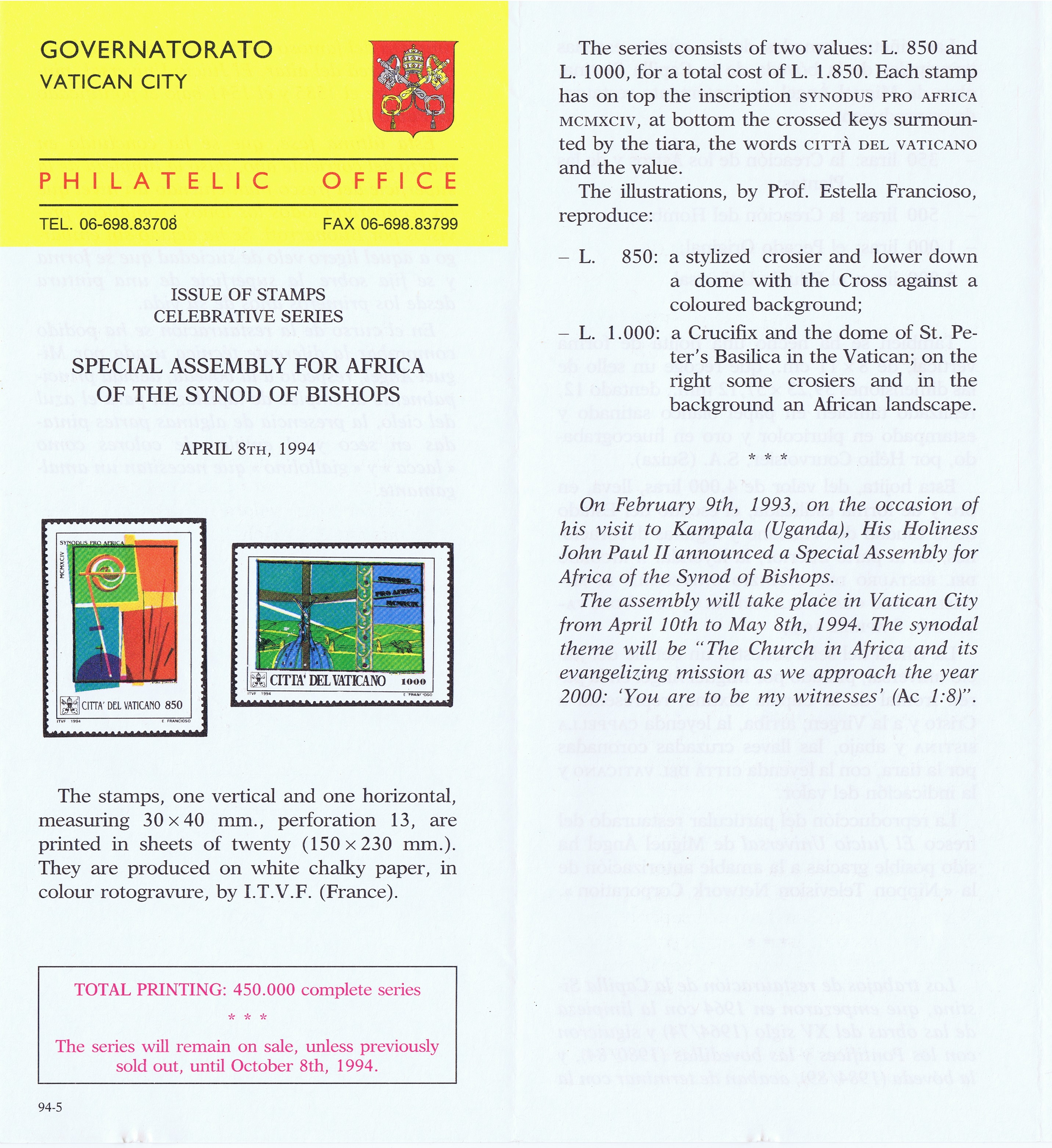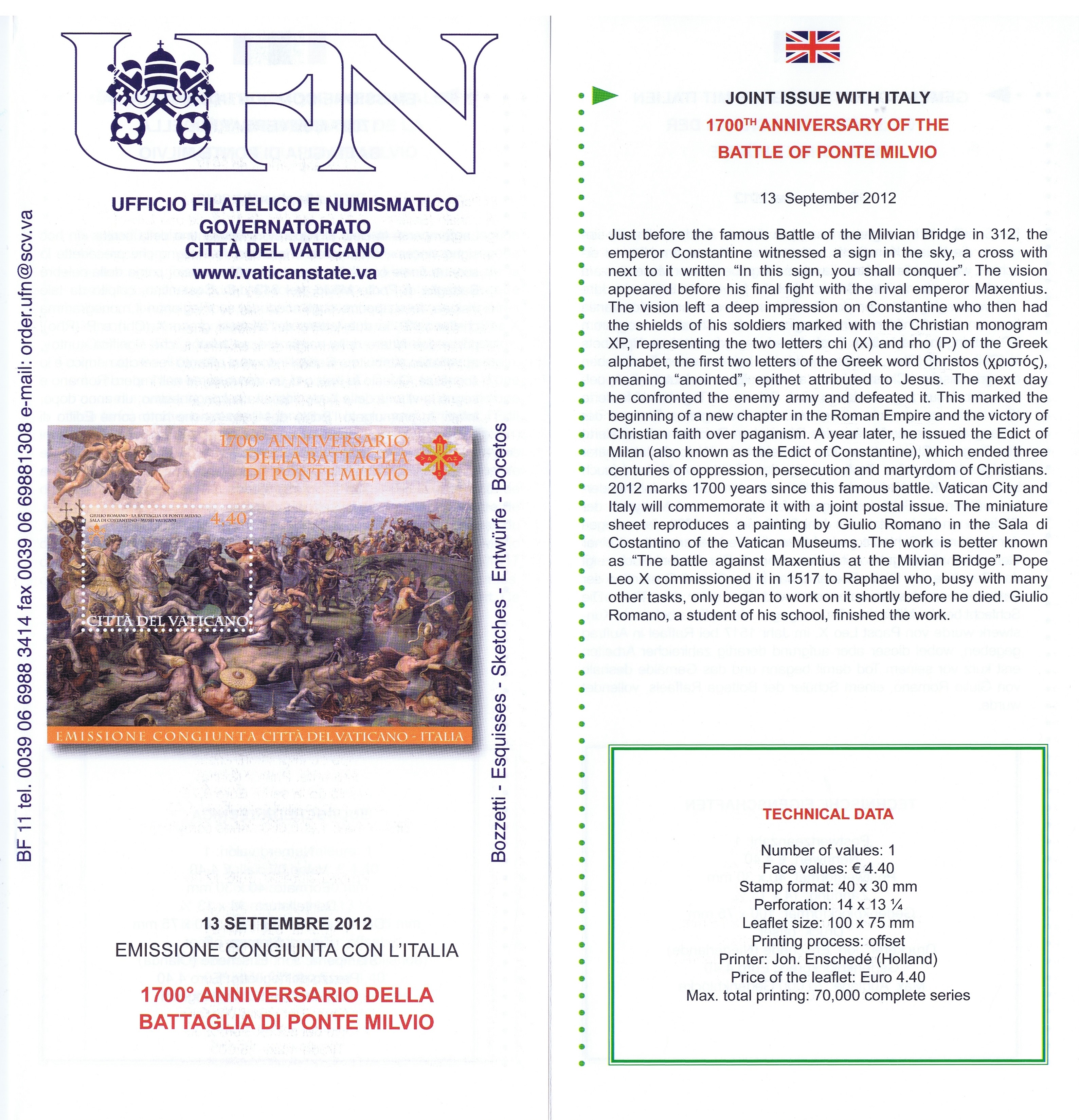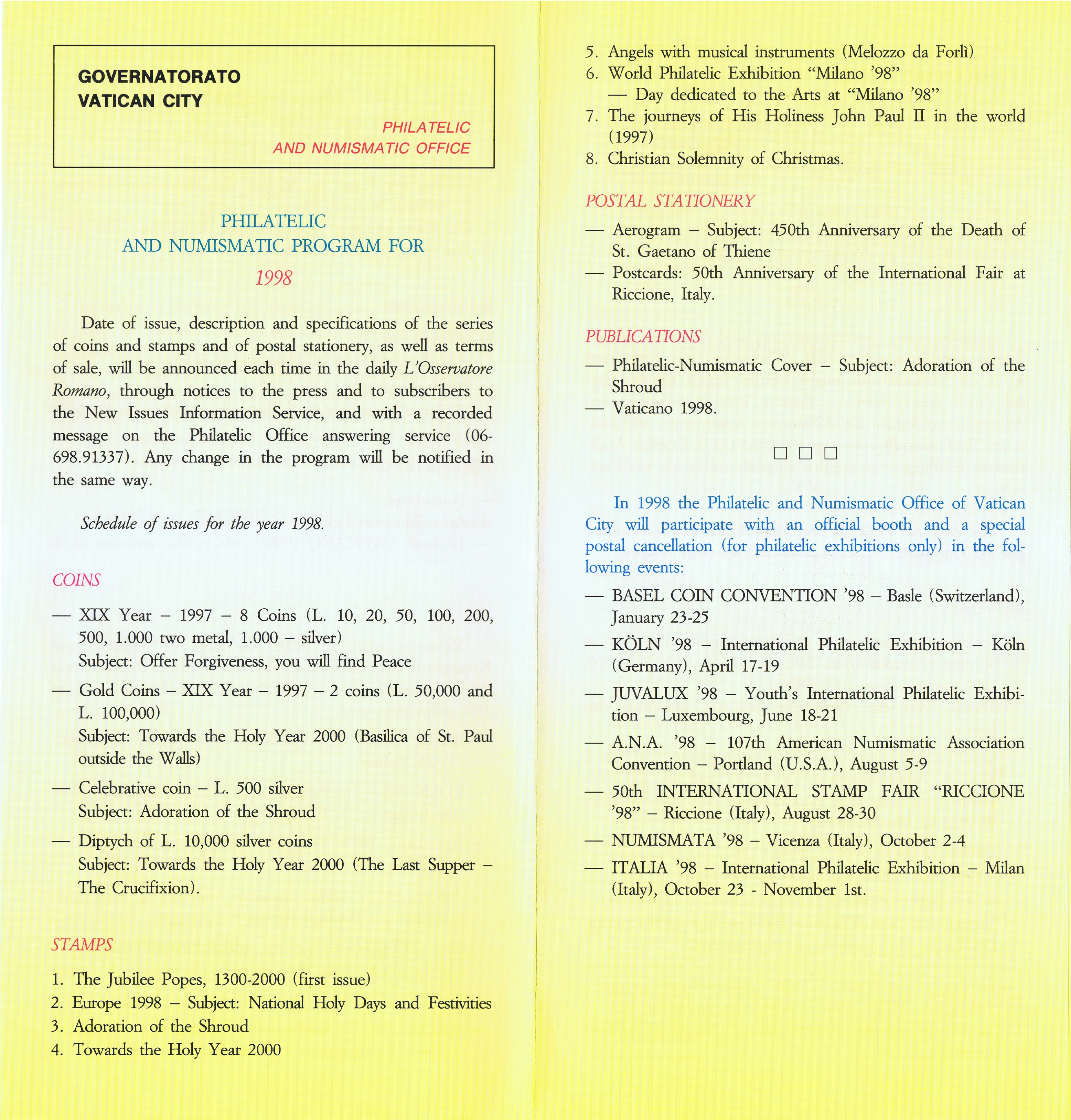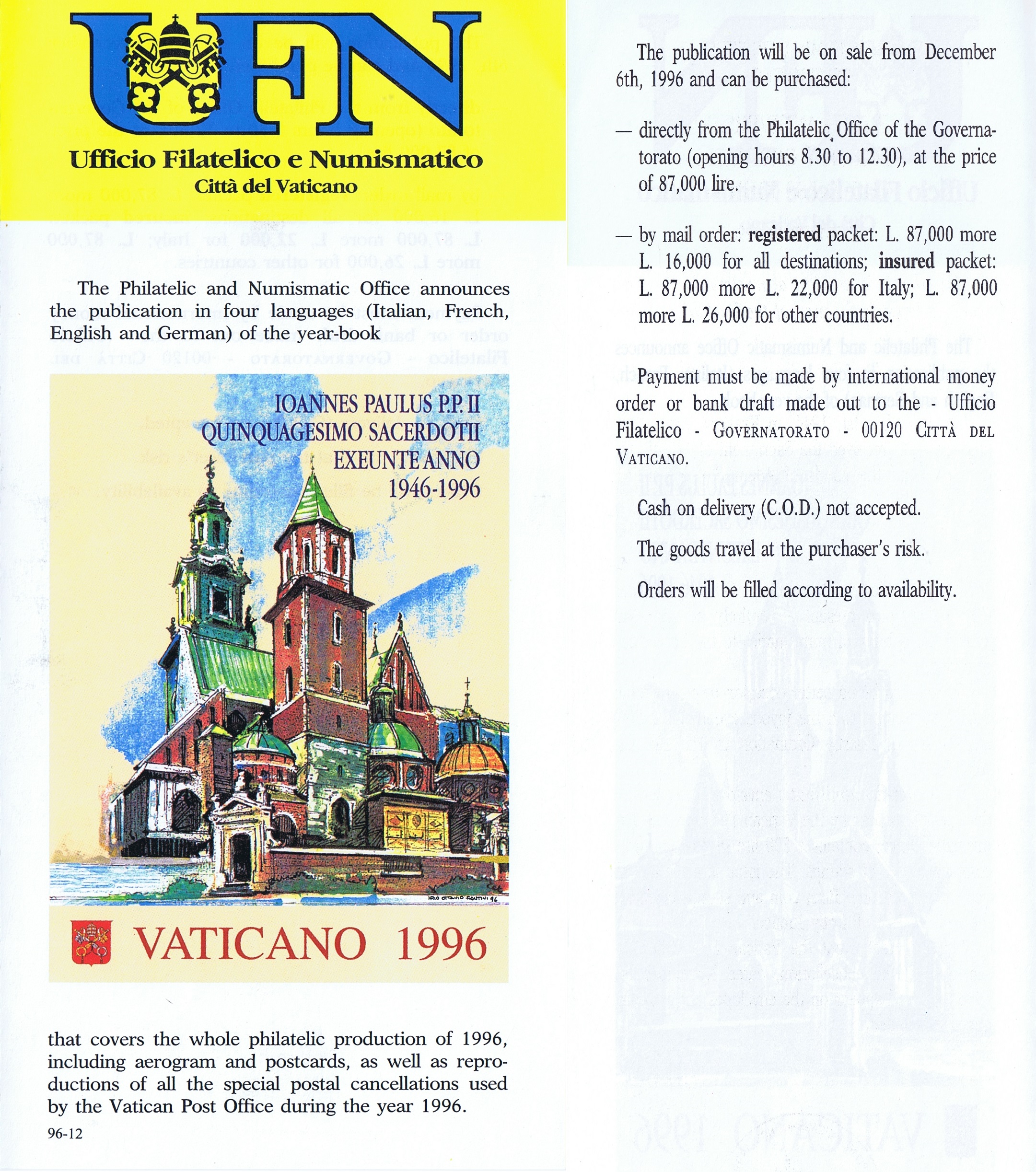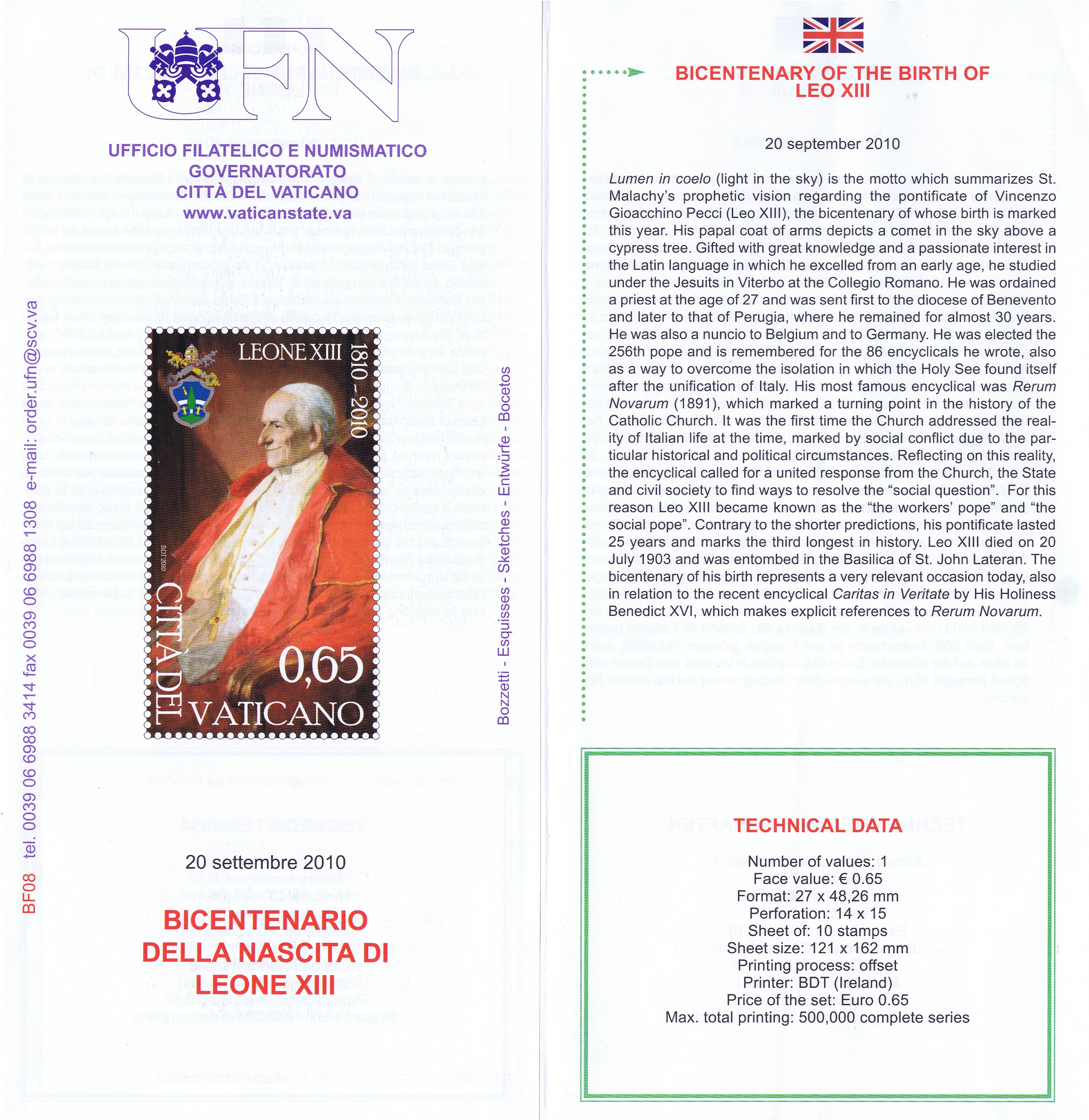 UFN New Issue Brouchures The Vatican discontiued publishing printed new issue information in 2021.