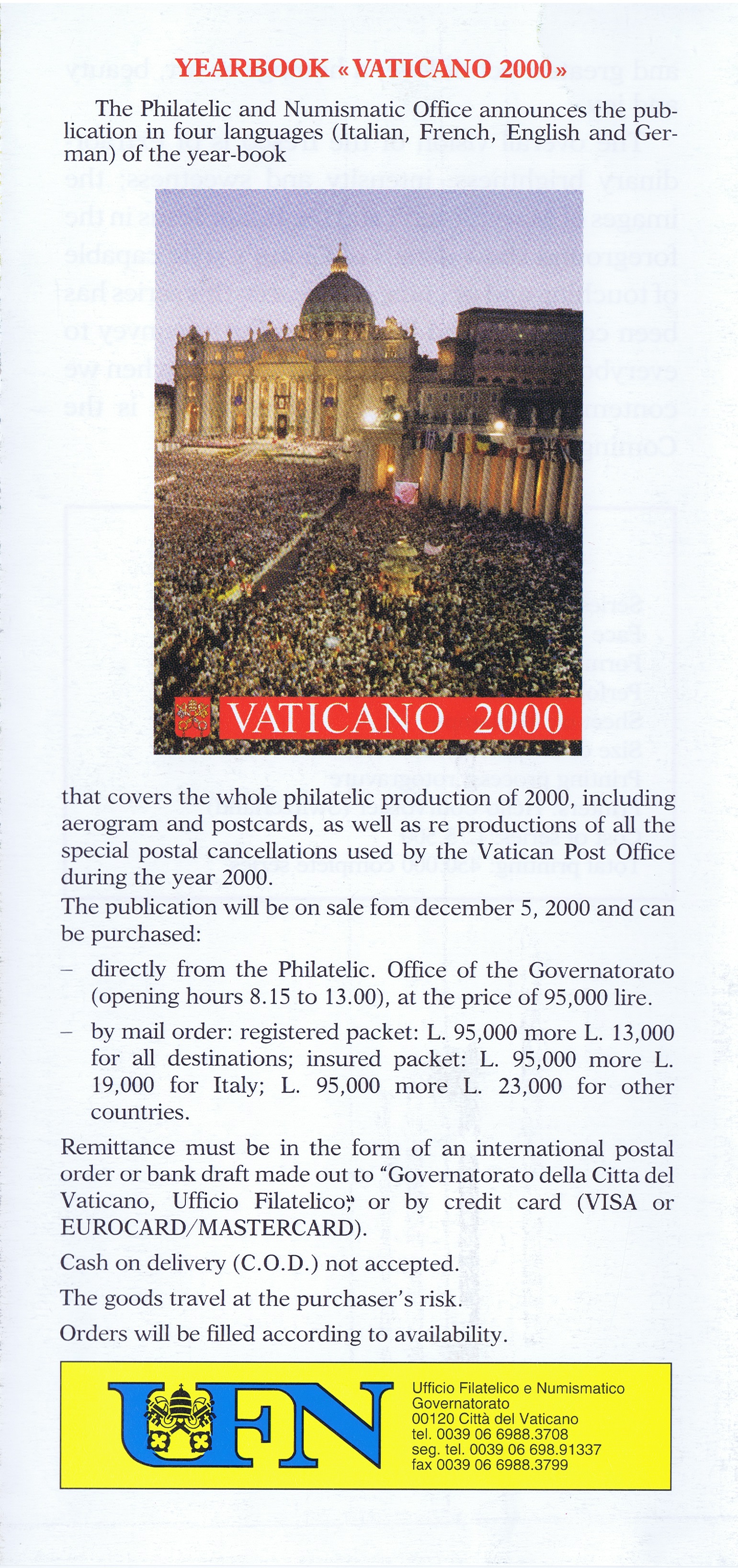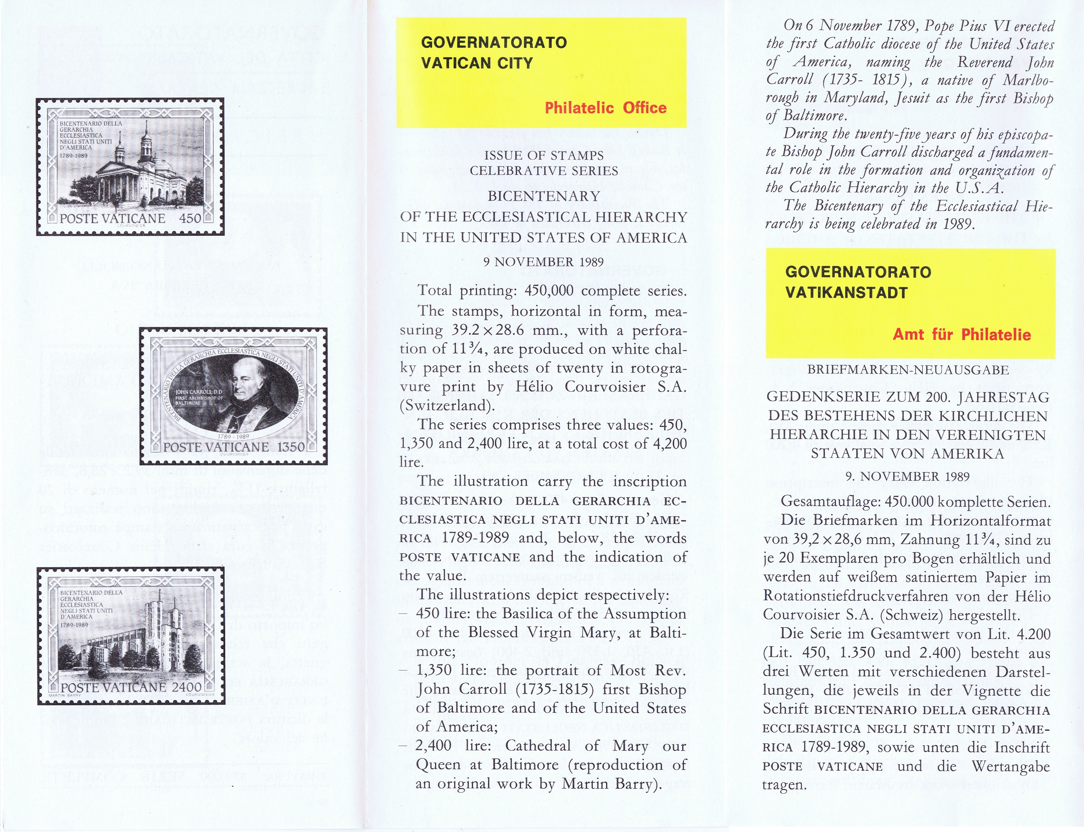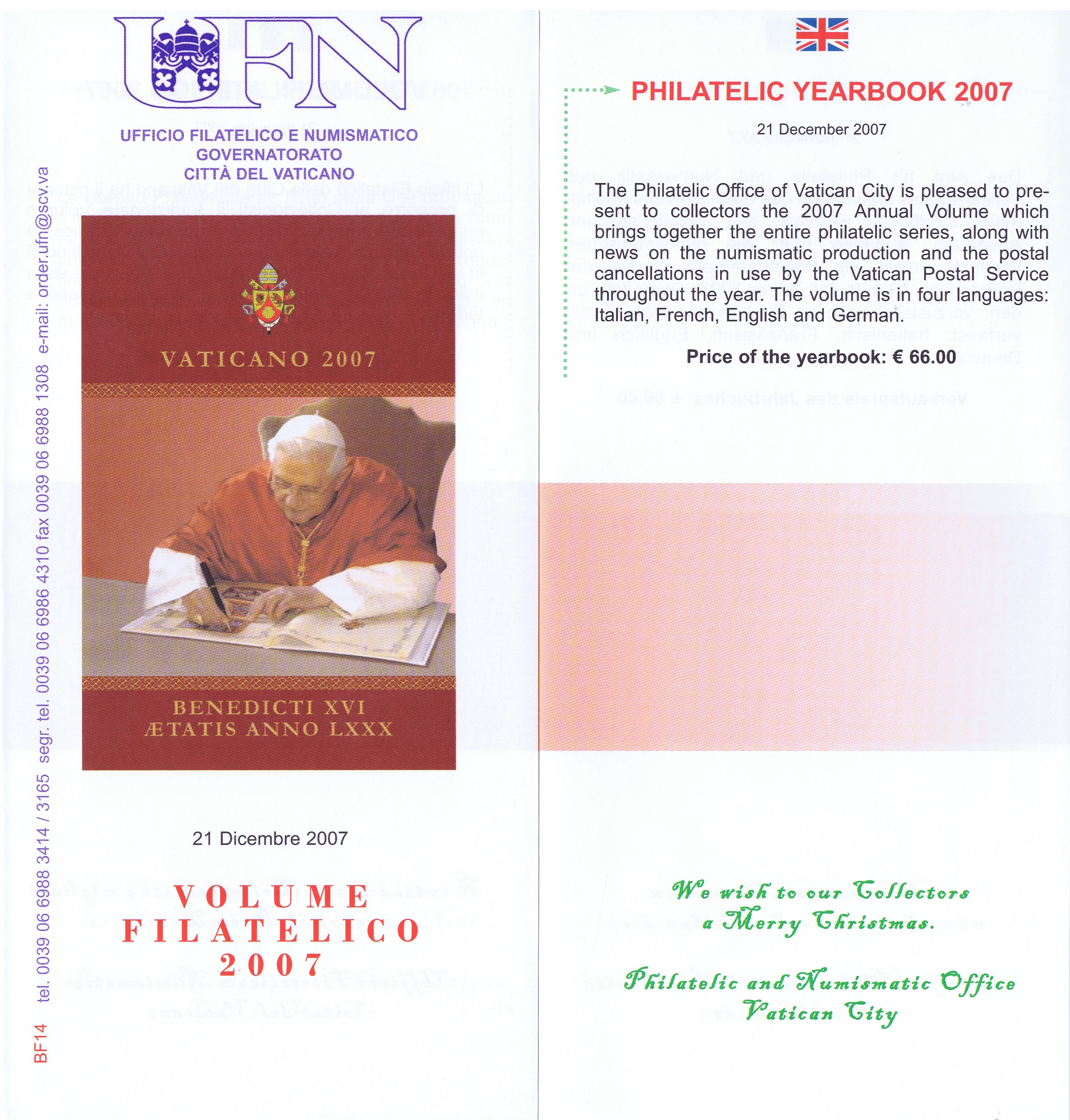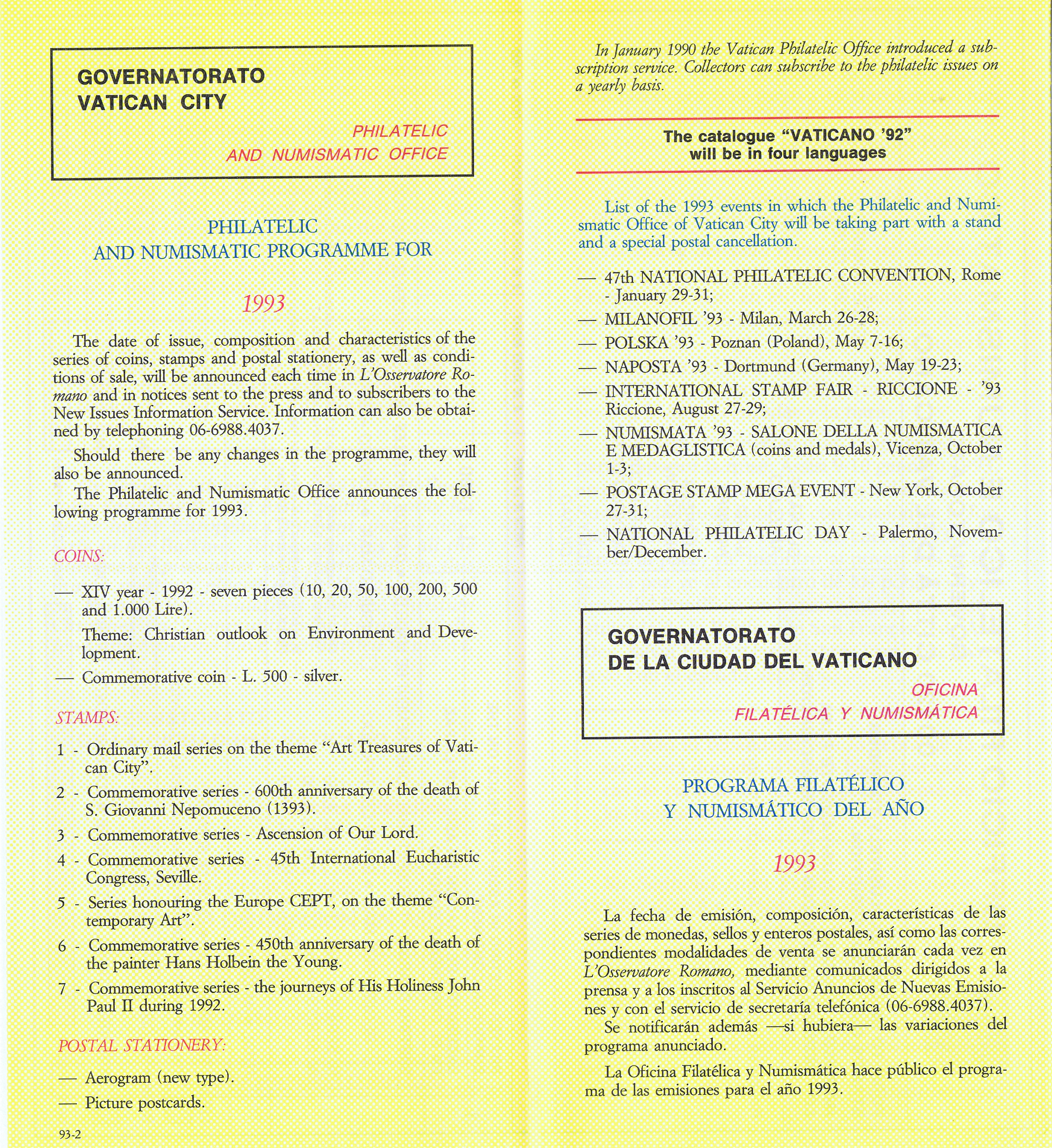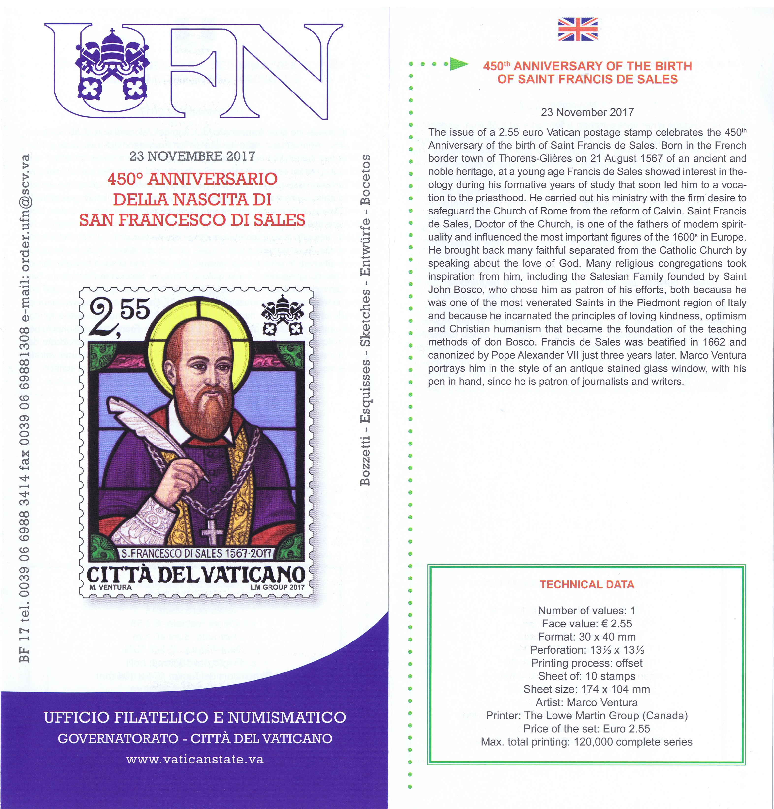 UFN New Issue Brouchures The Vatican discontiued publishing printed new issue information in 2021.