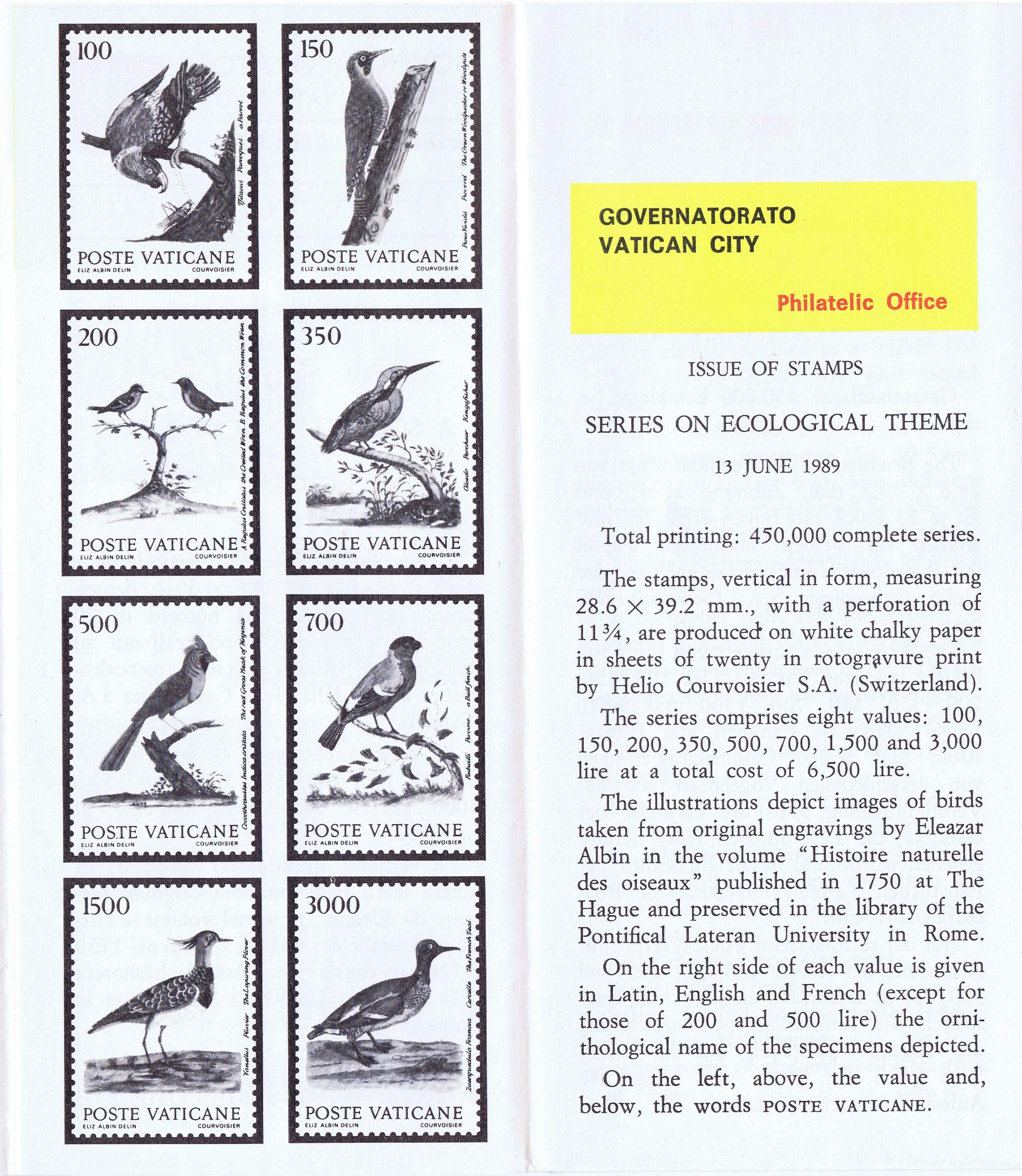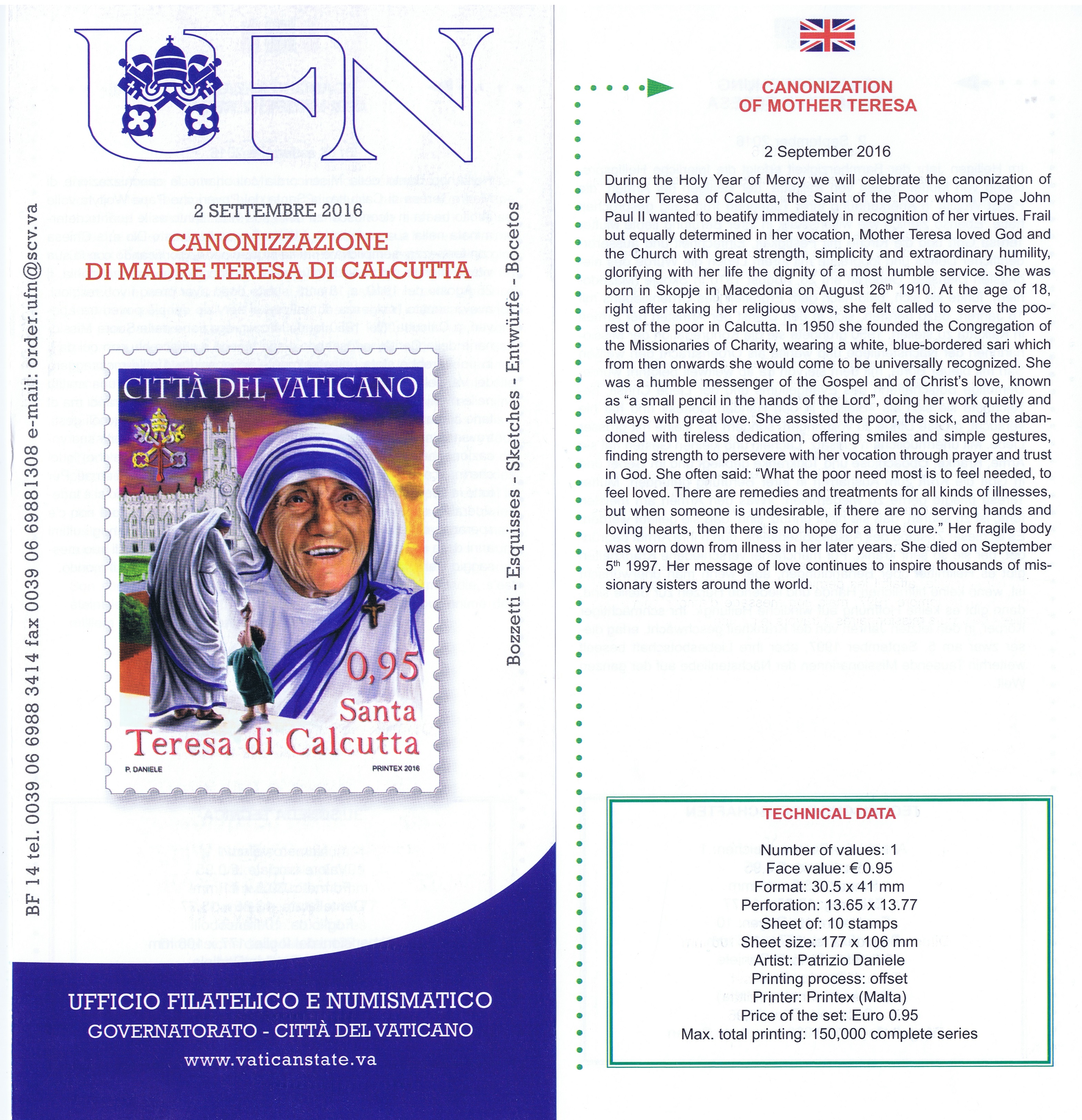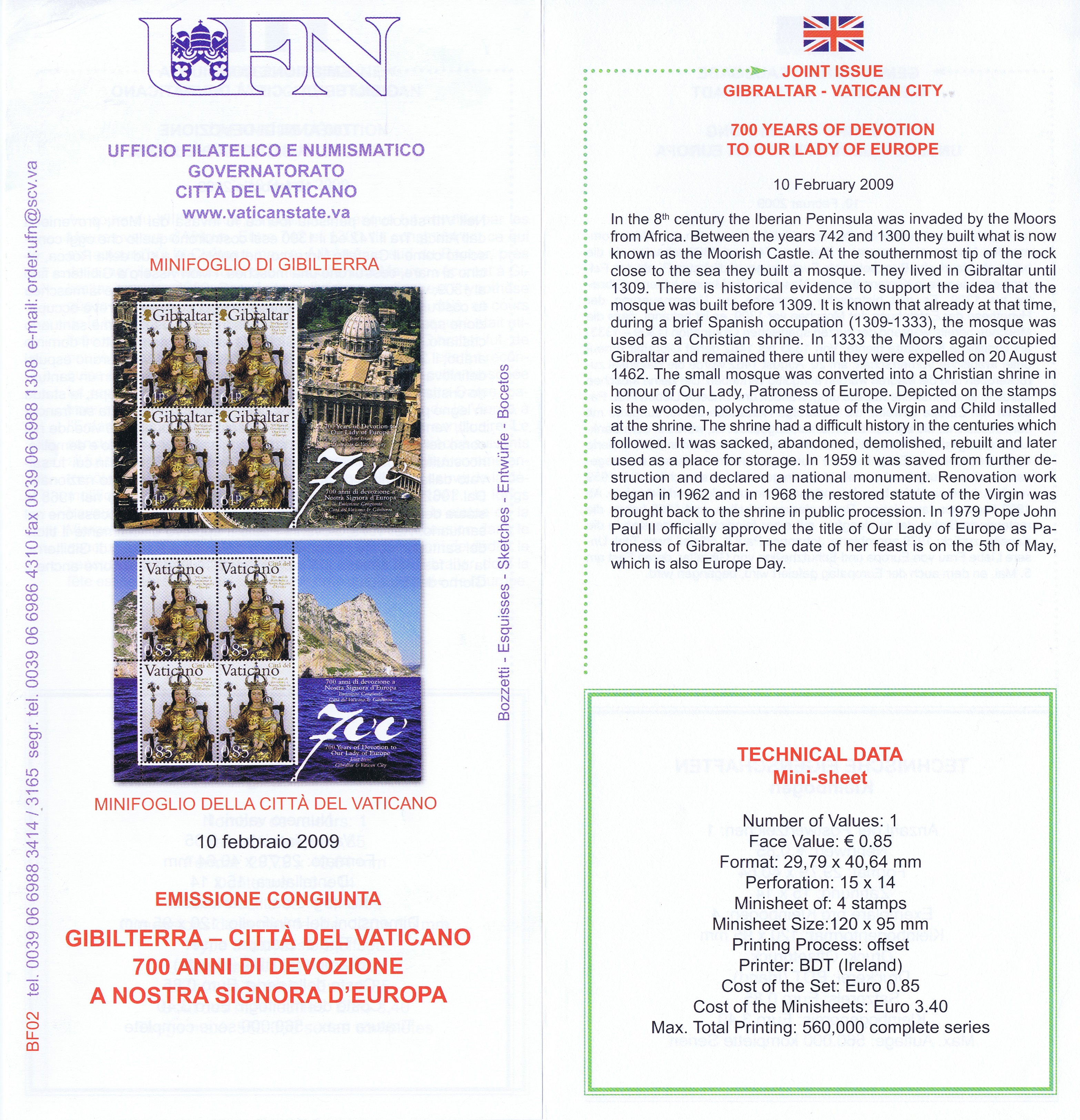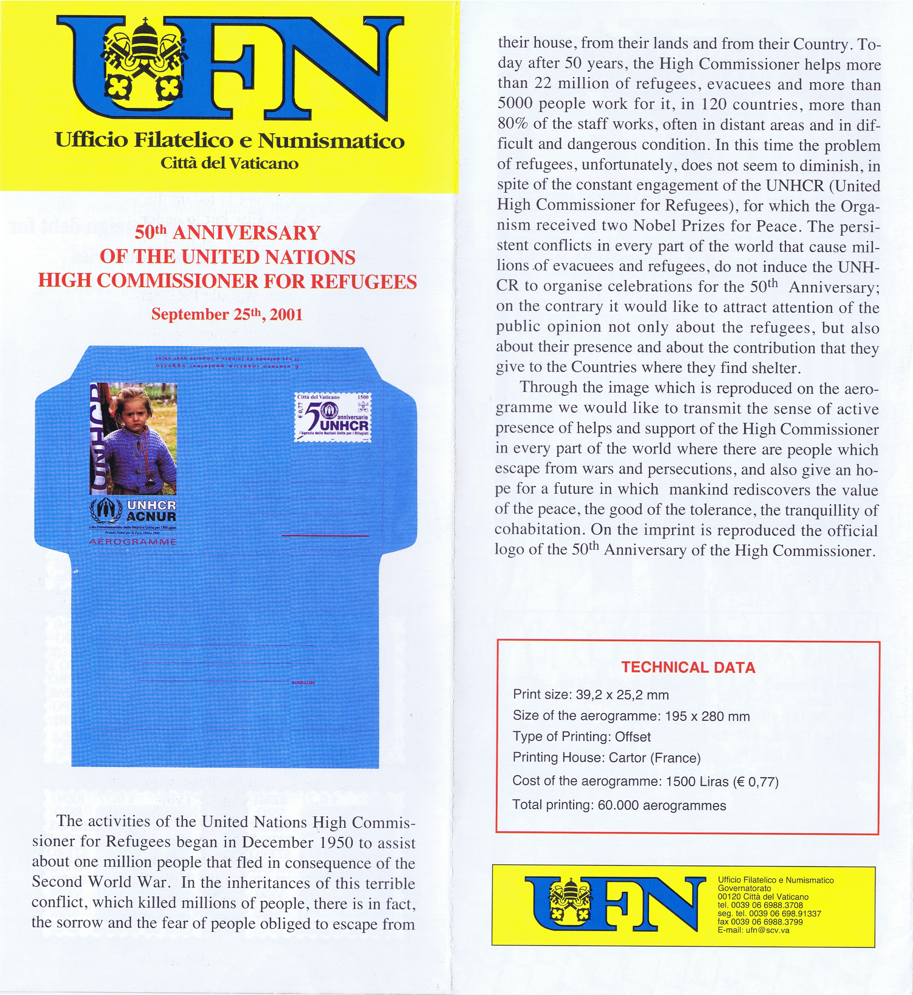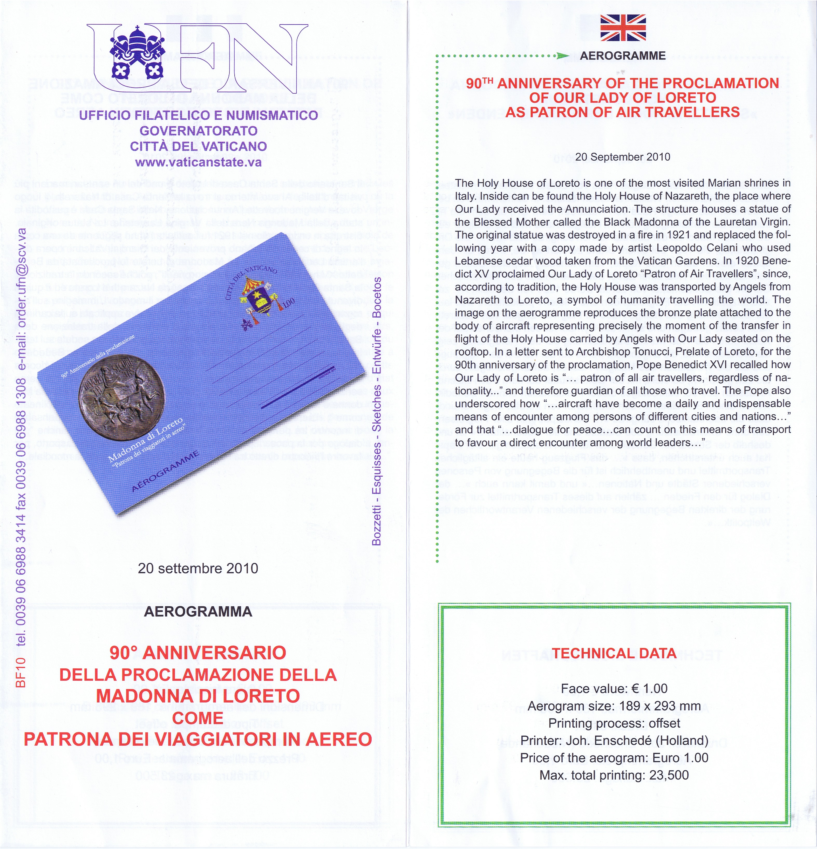 UFN New Issue Brouchures The Vatican discontiued publishing printed new issue information in 2021.