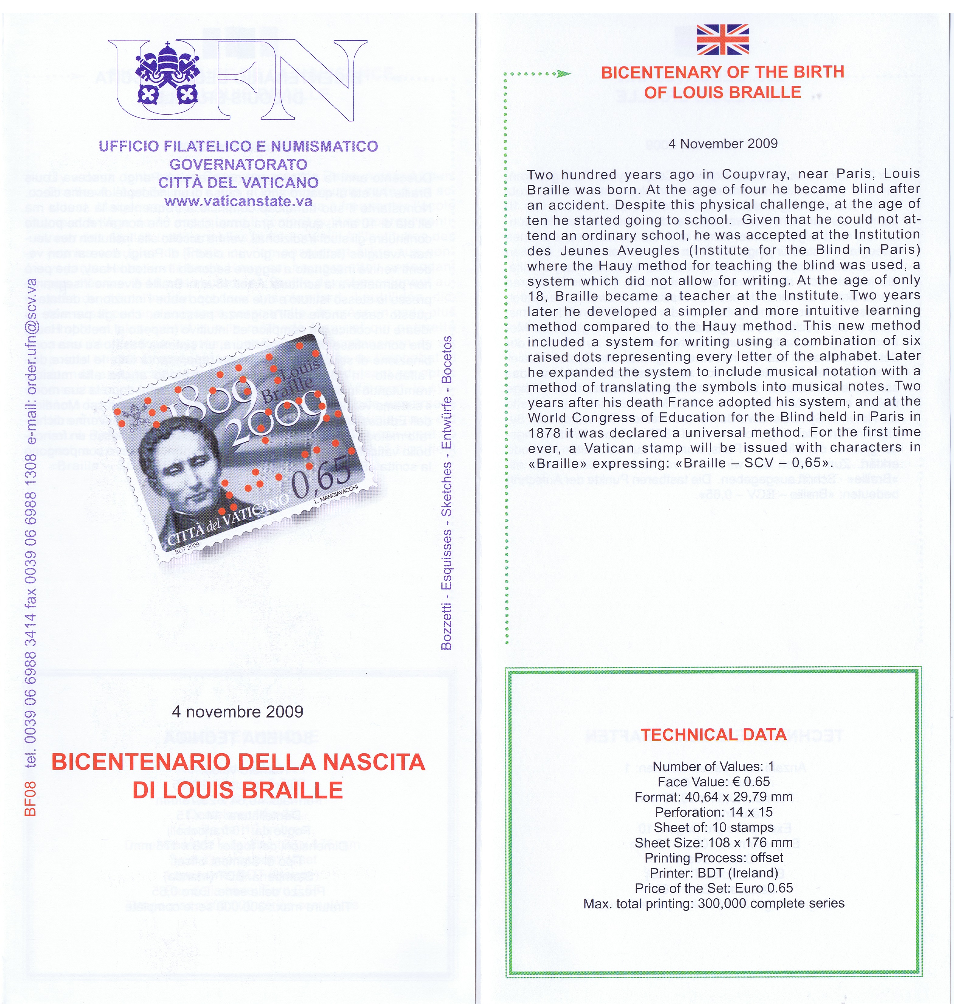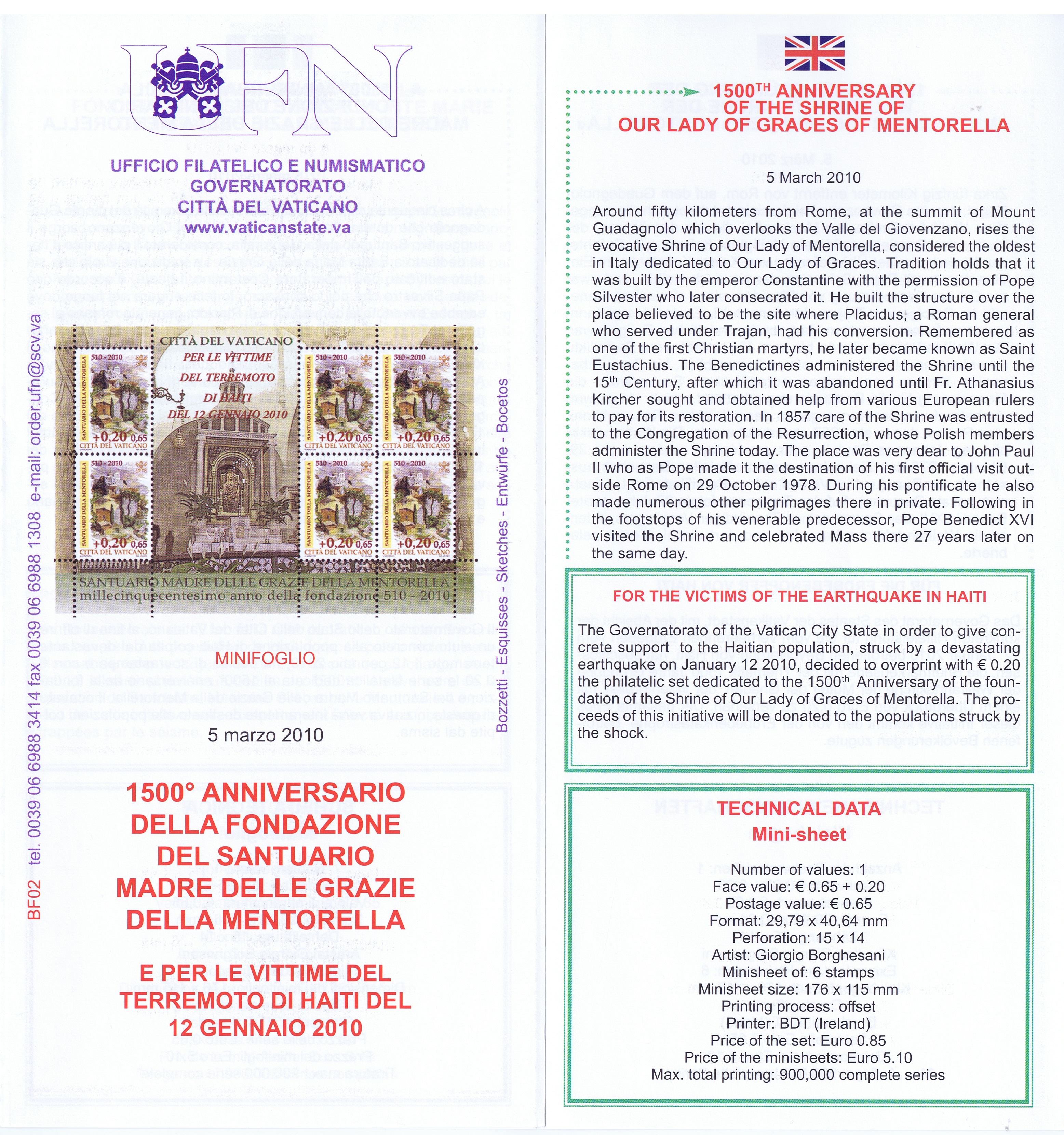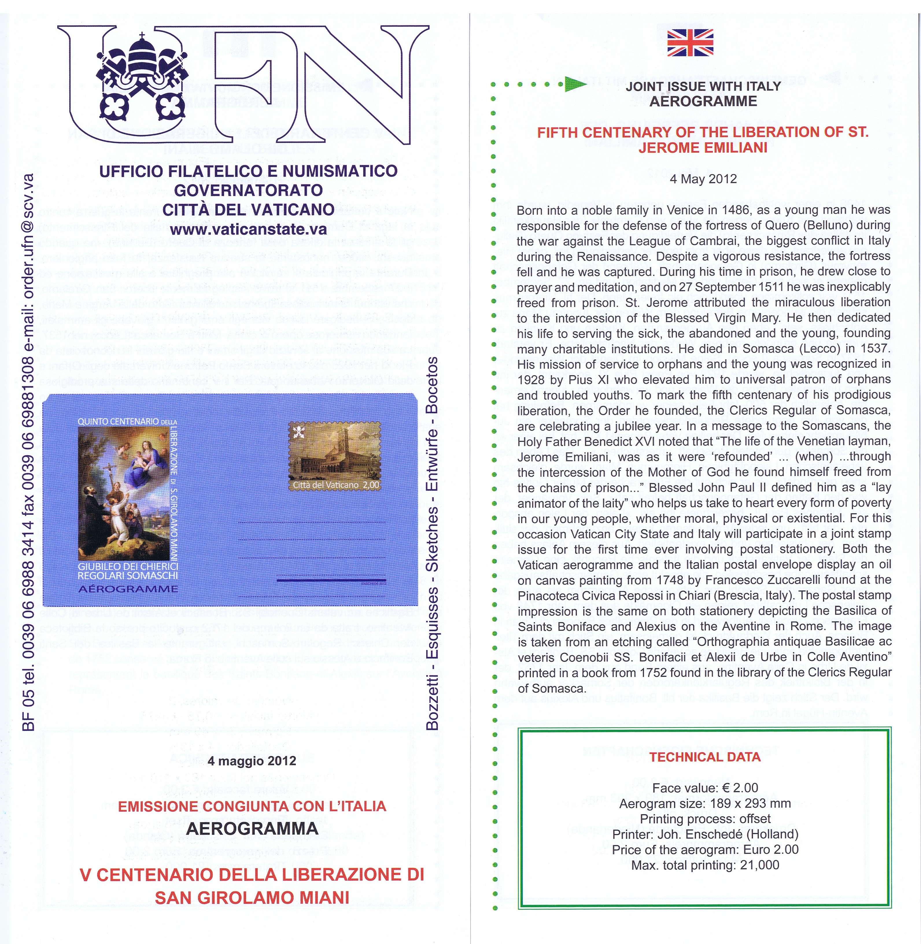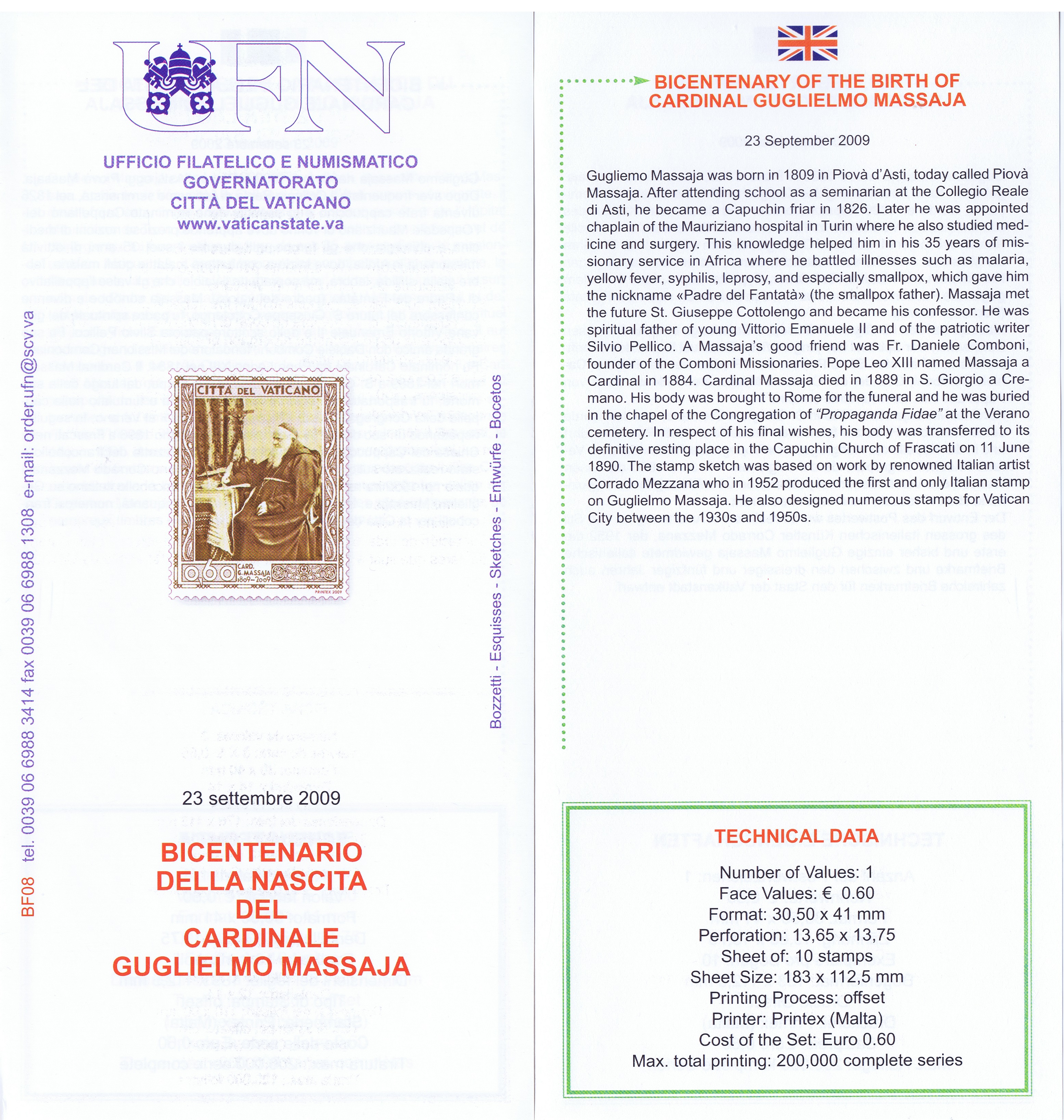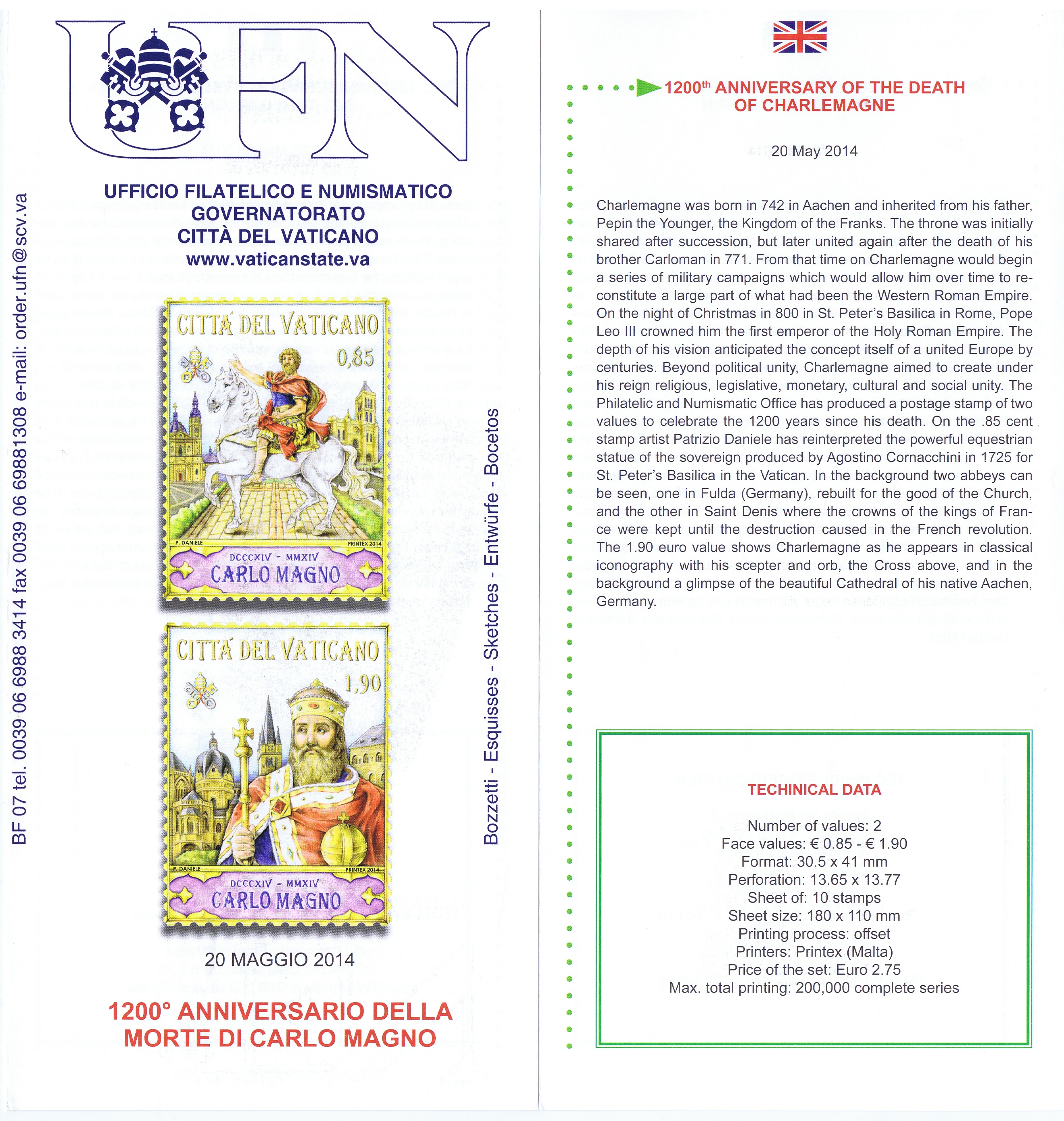 UFN New Issue Brouchures The Vatican discontiued publishing printed new issue information in 2021.