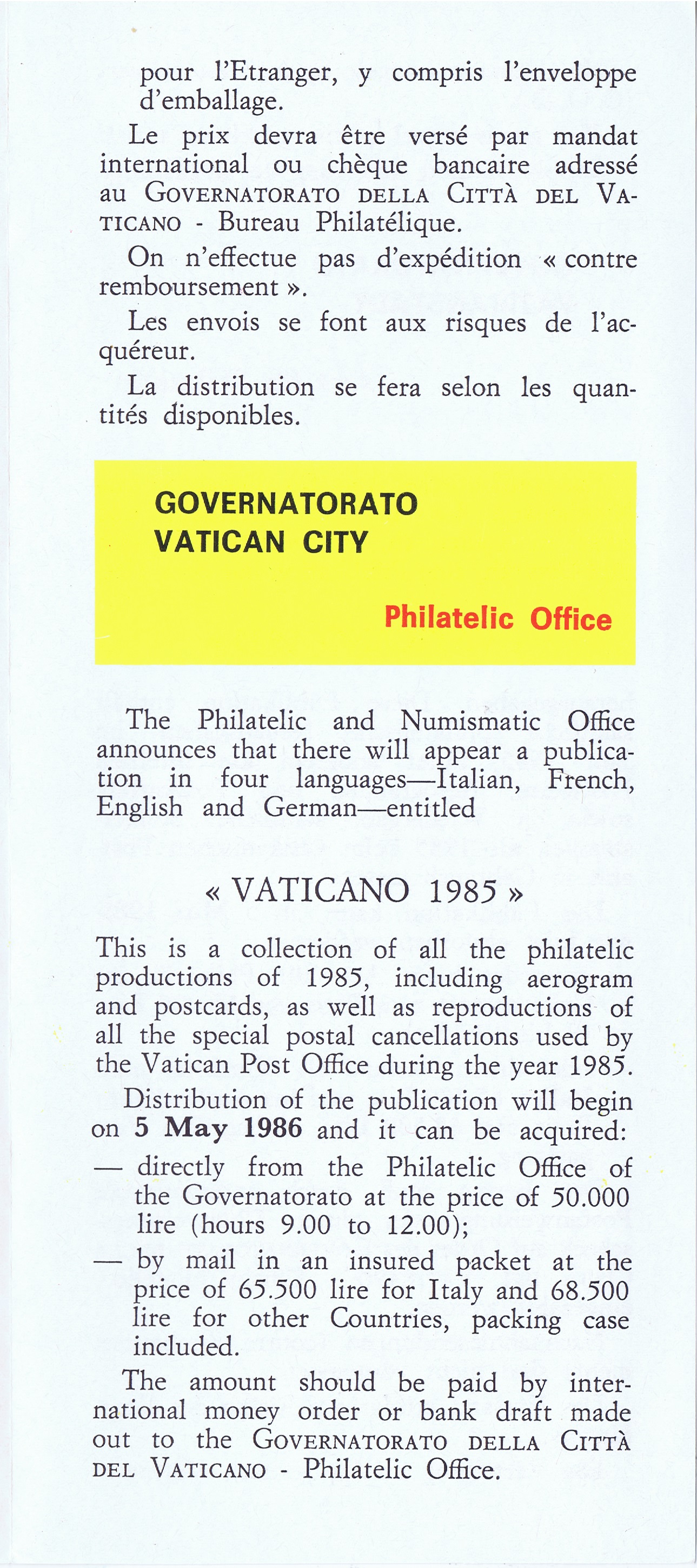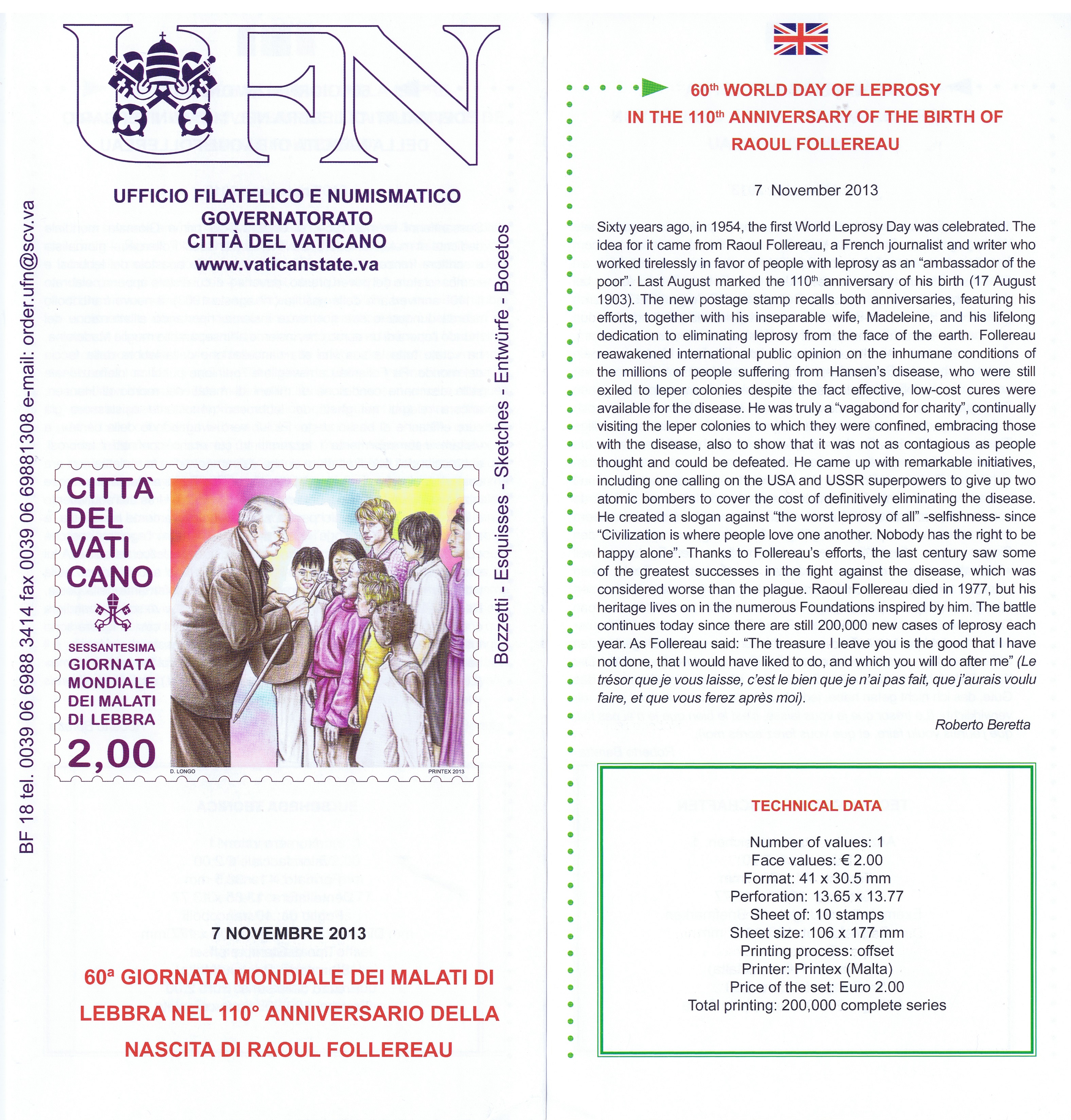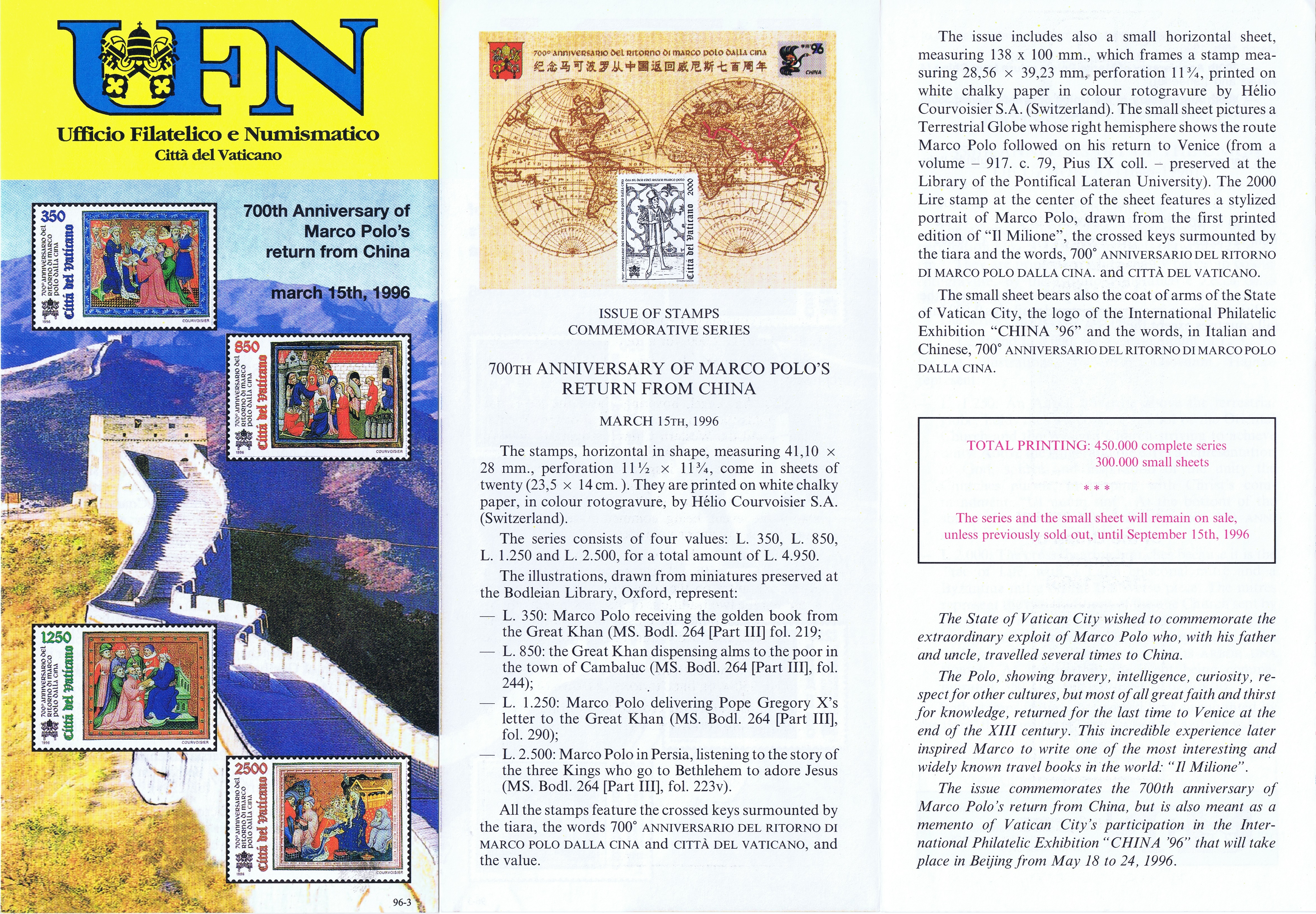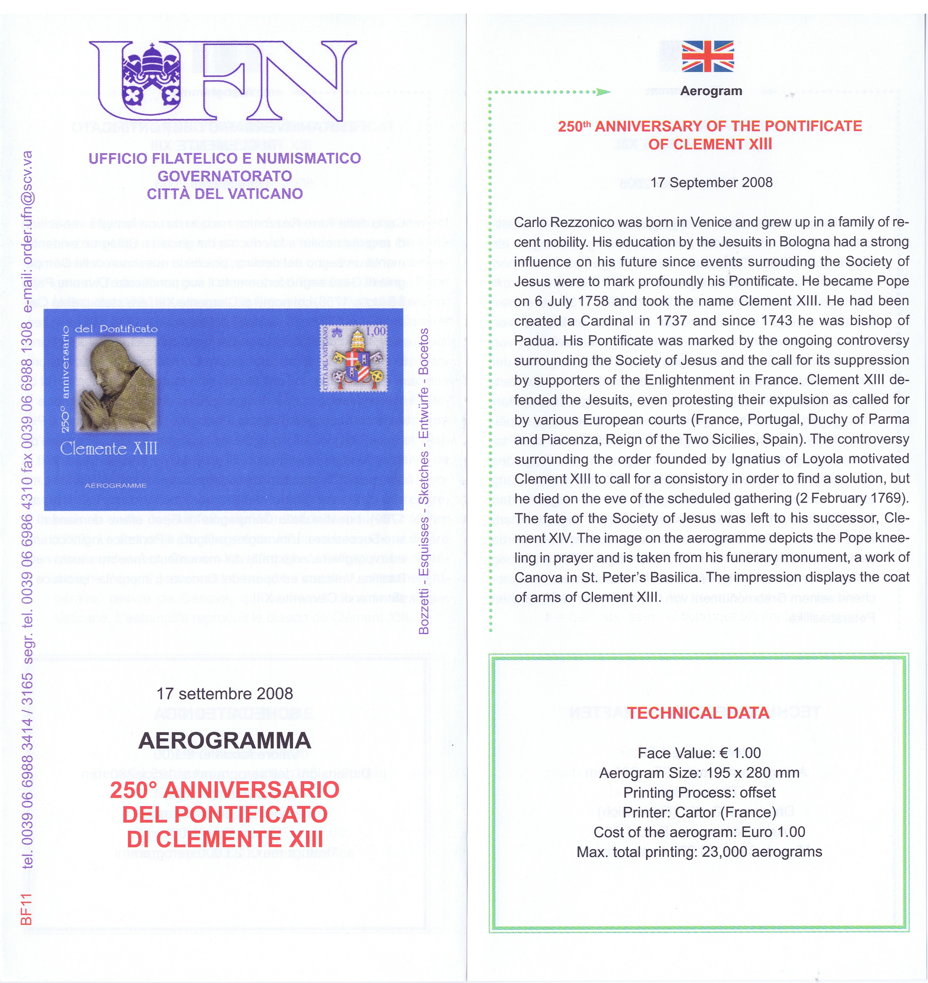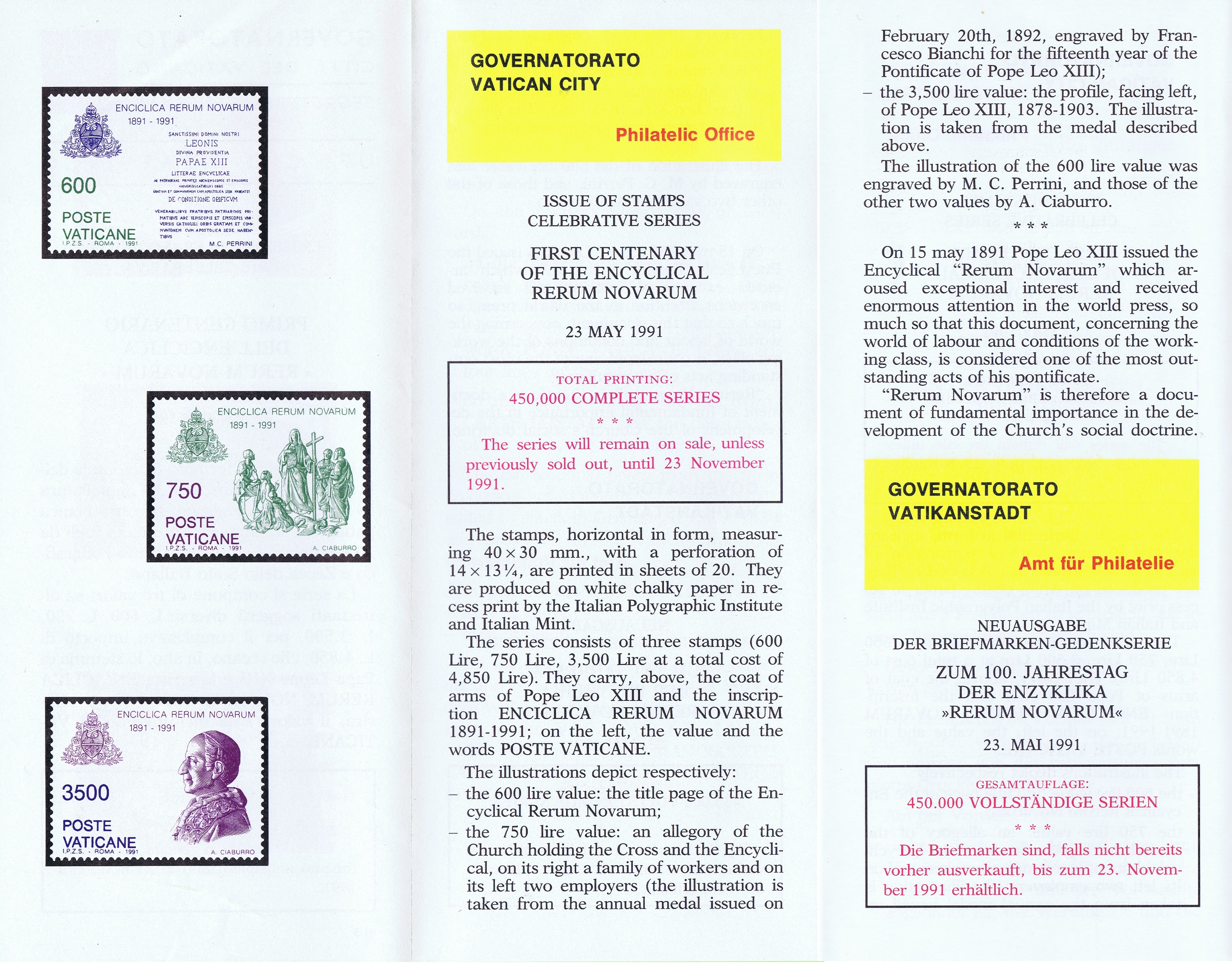 UFN New Issue Brouchures The Vatican discontiued publishing printed new issue information in 2021.