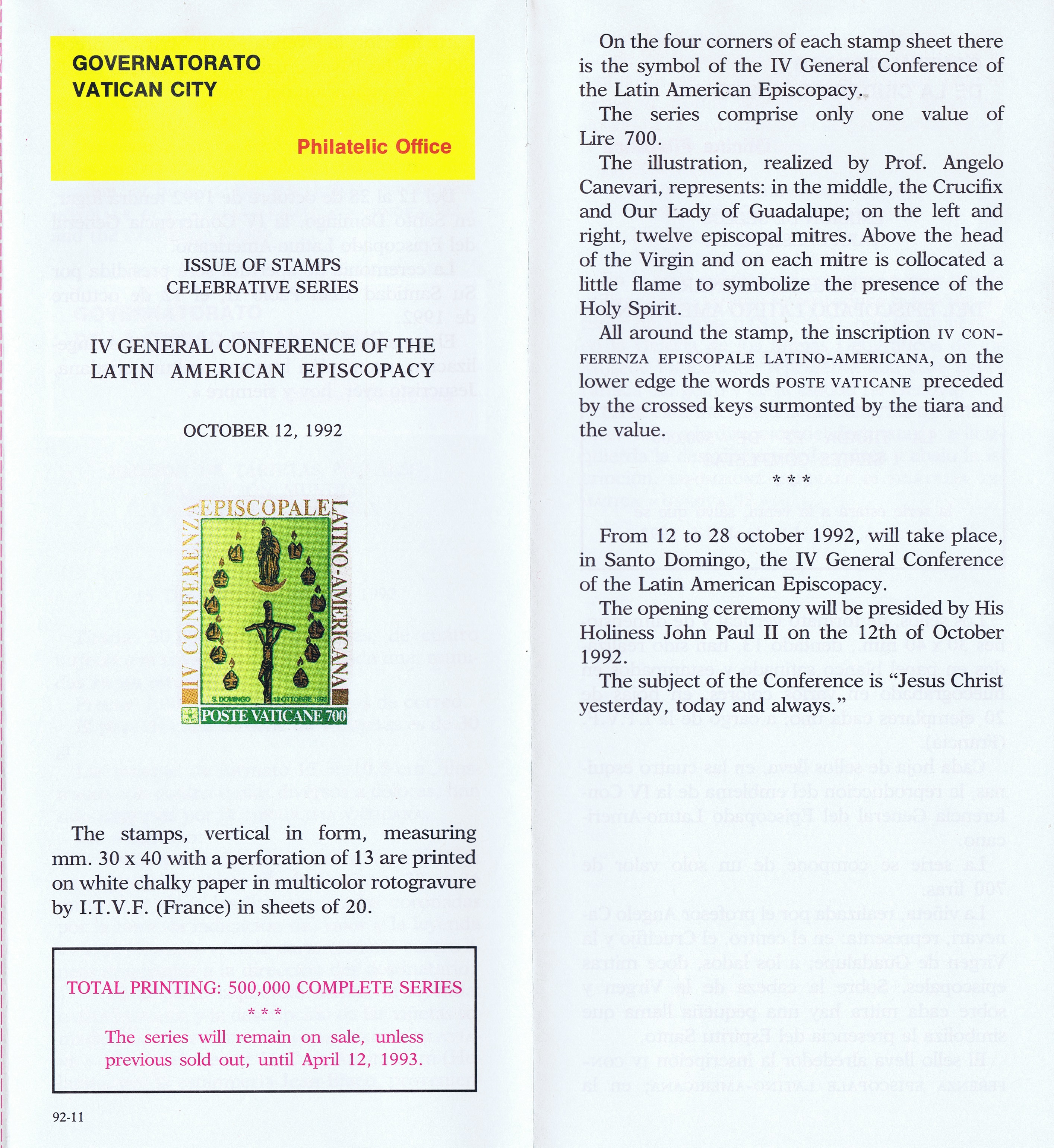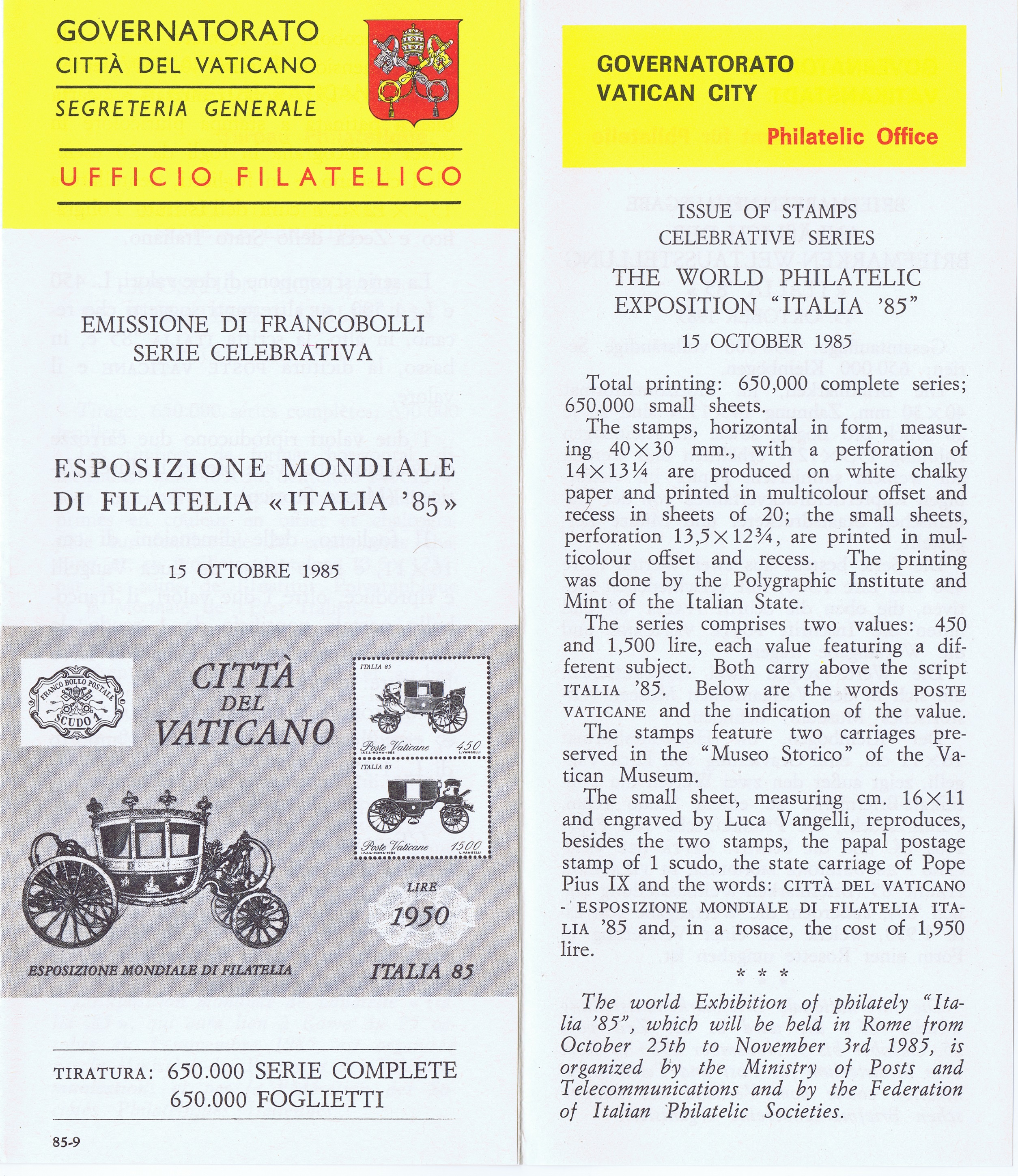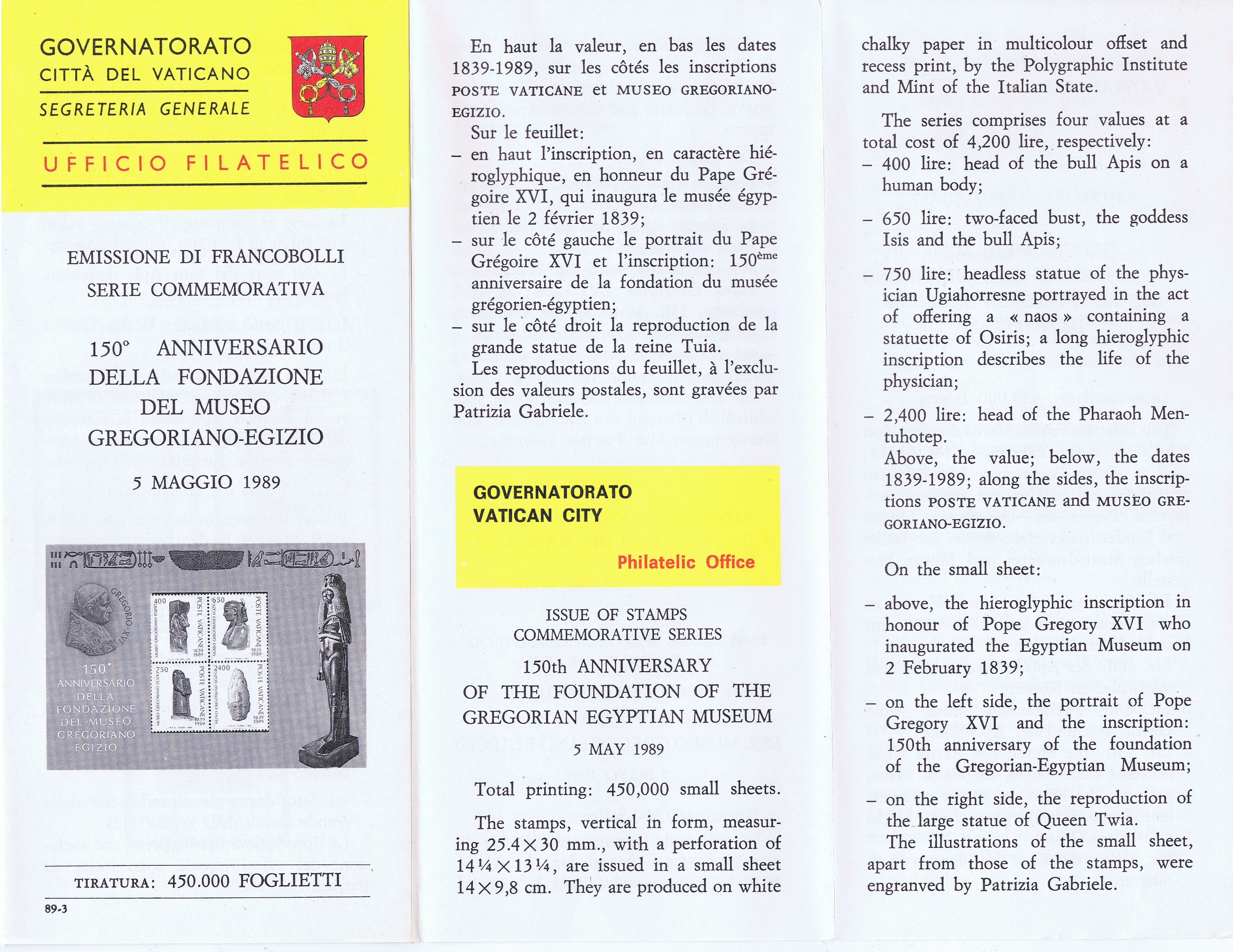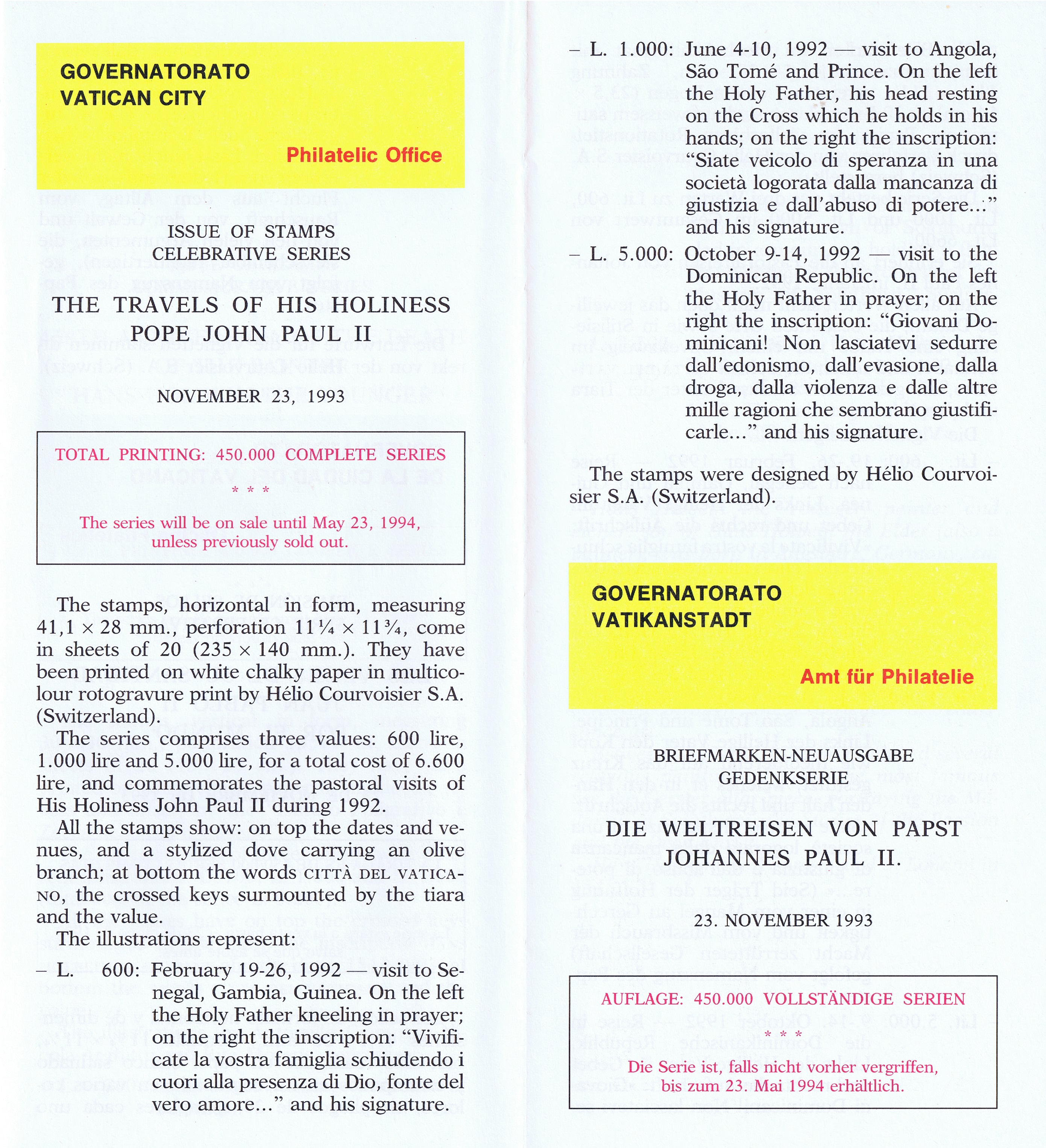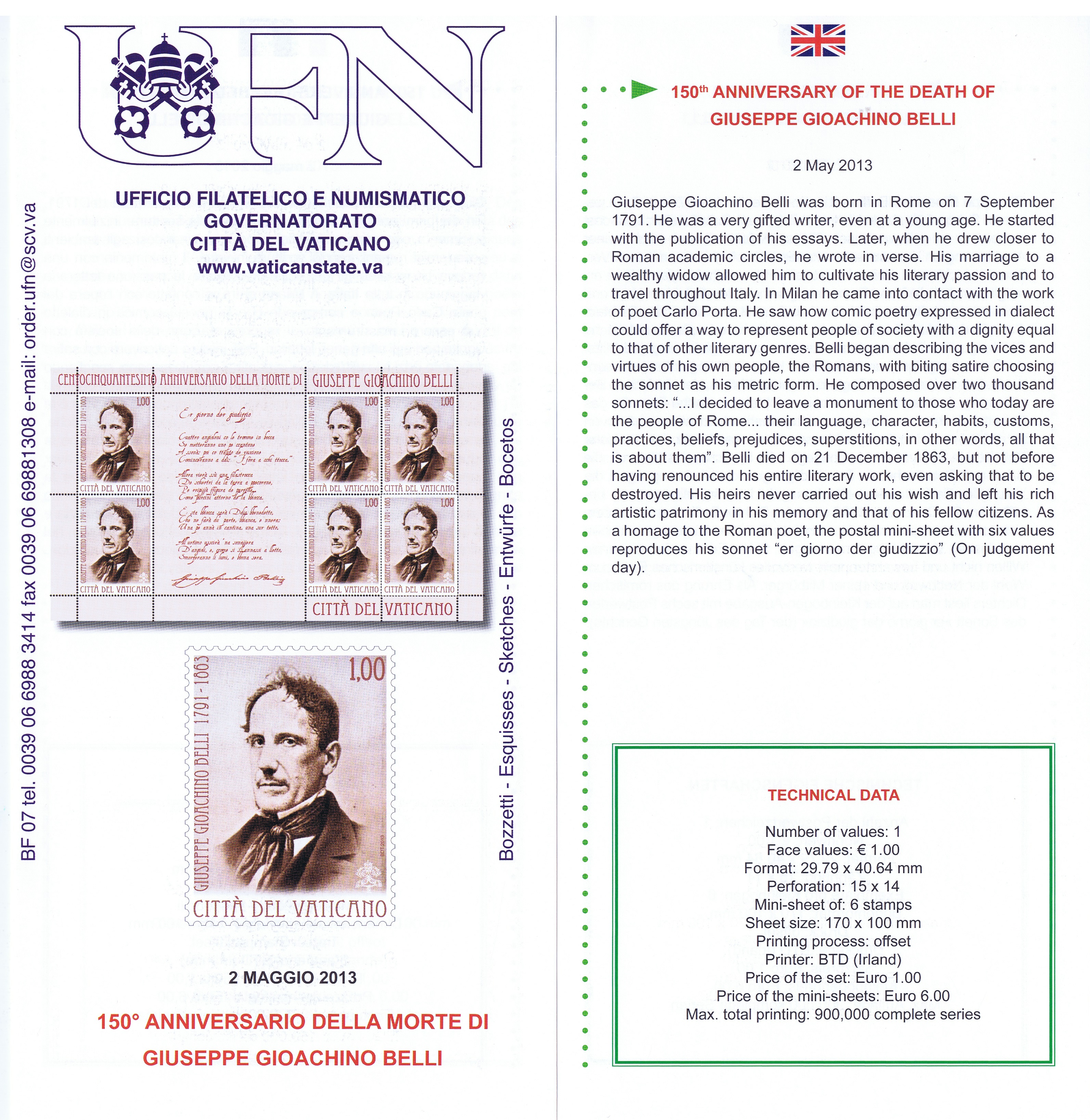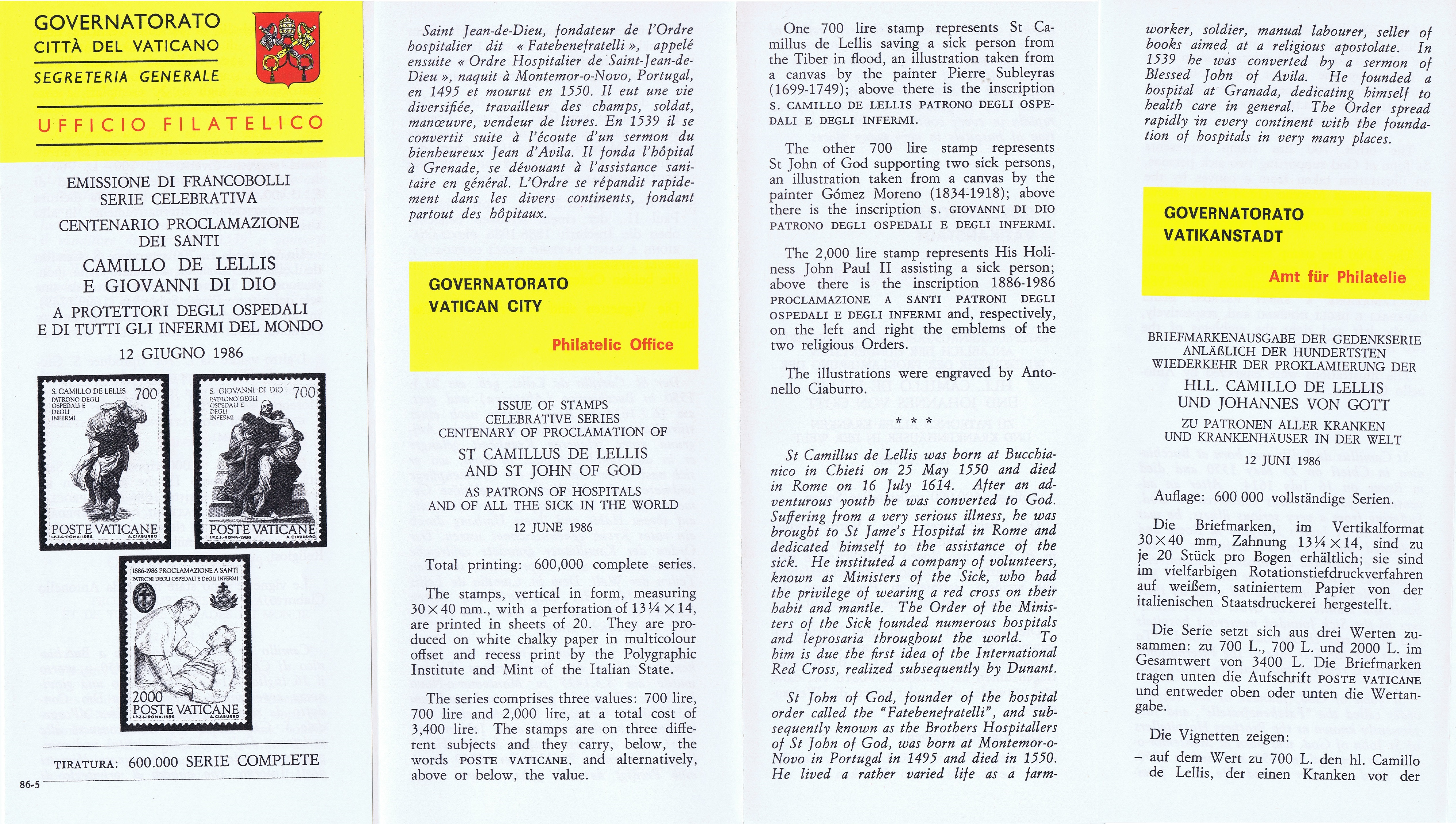 UFN New Issue Brouchures The Vatican discontiued publishing printed new issue information in 2021.