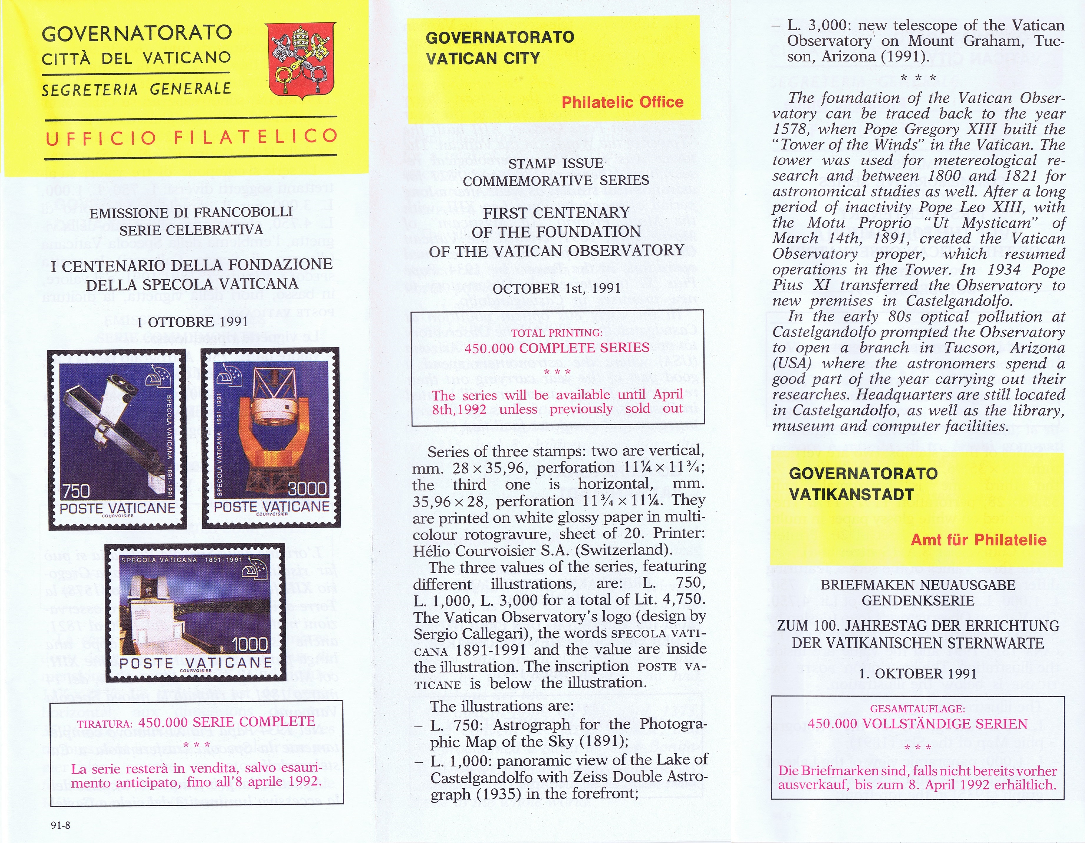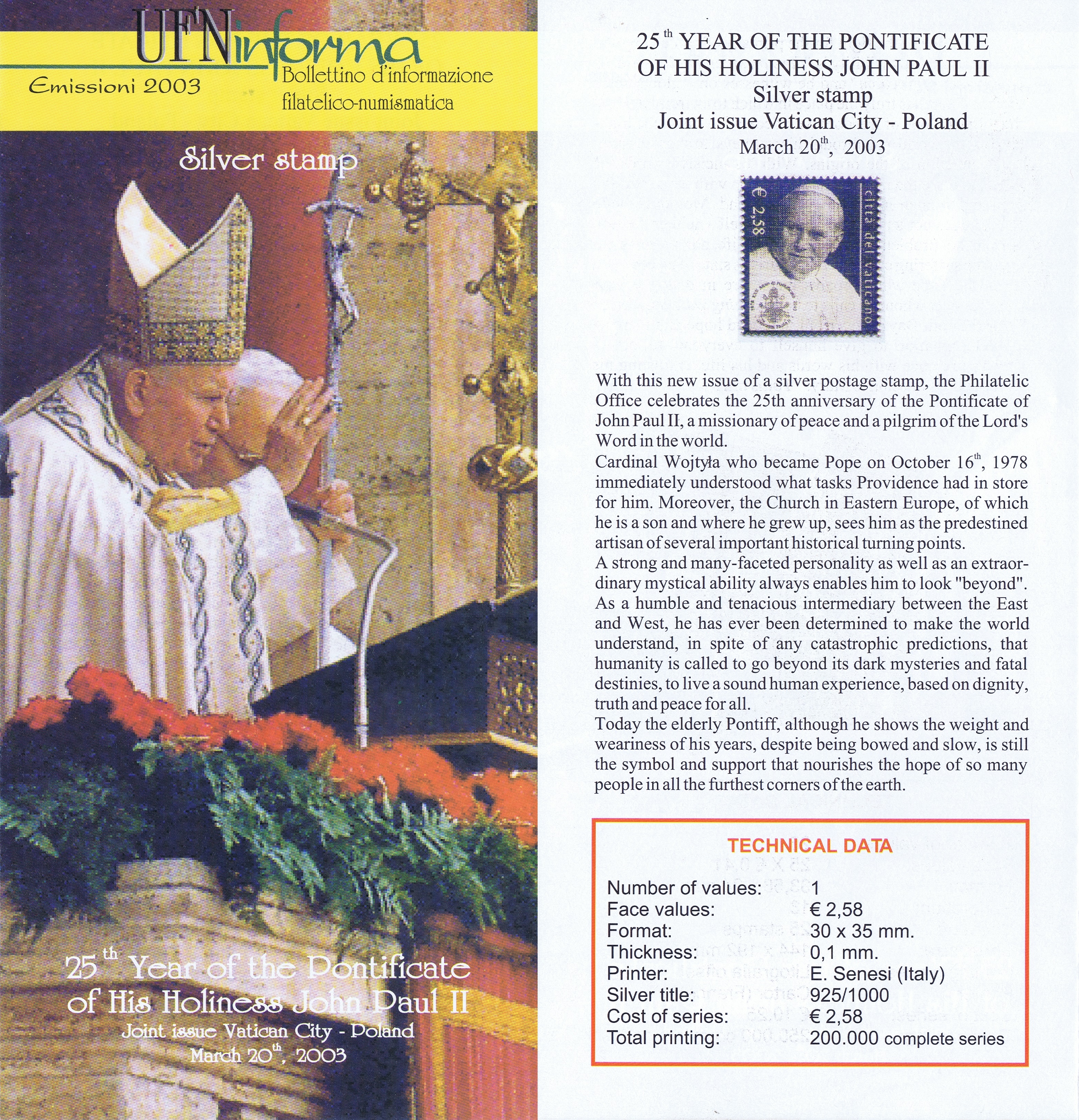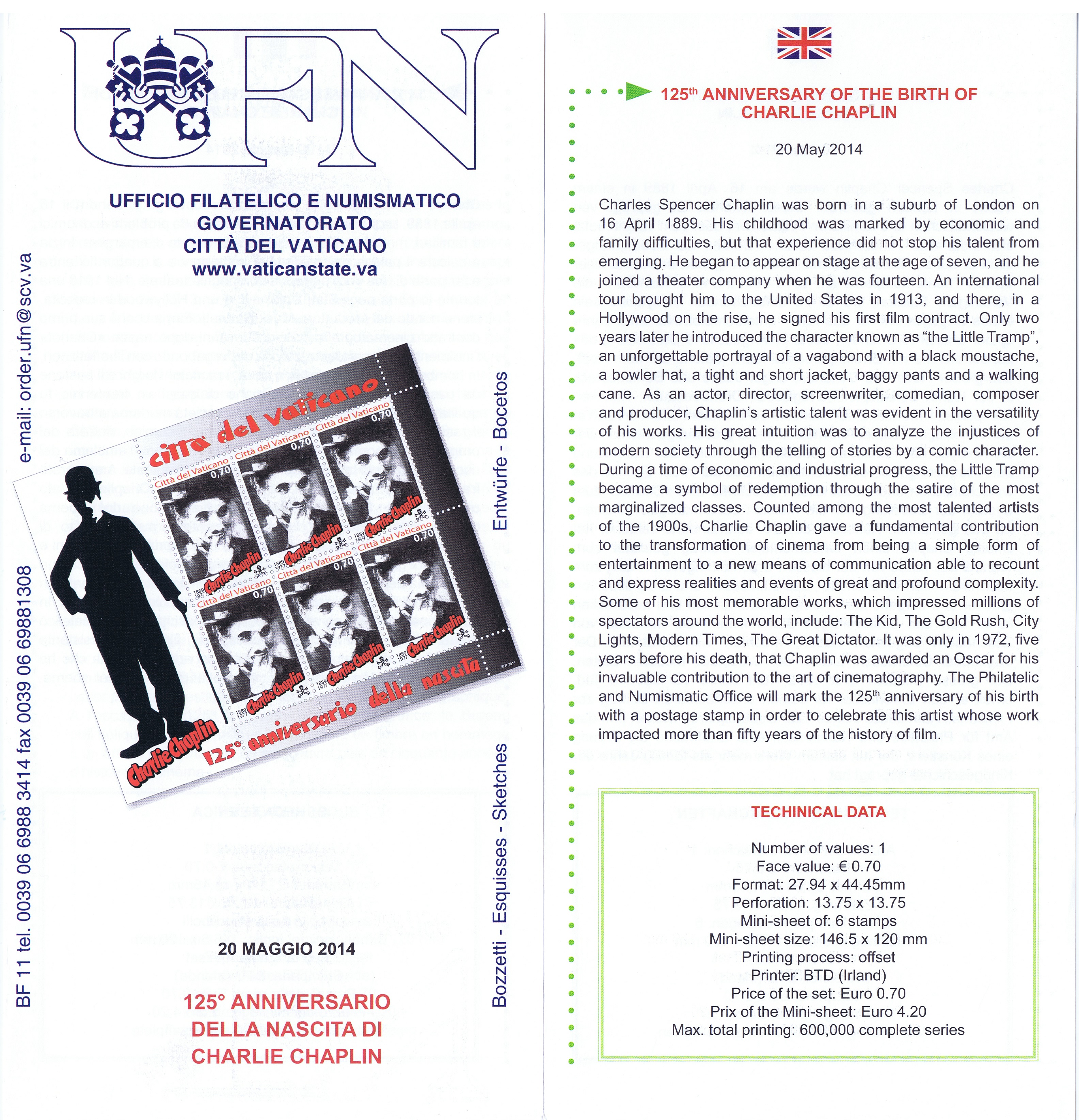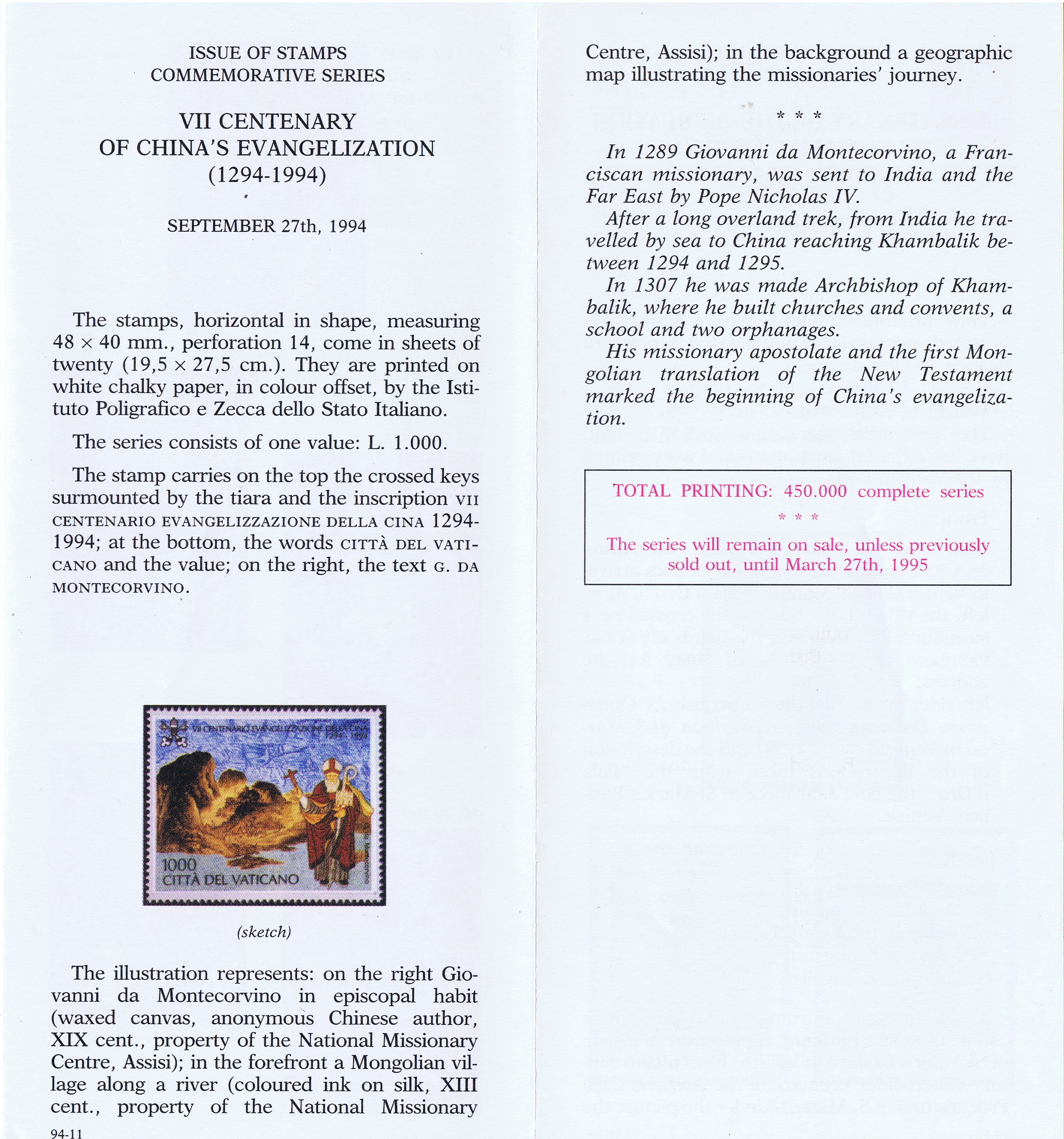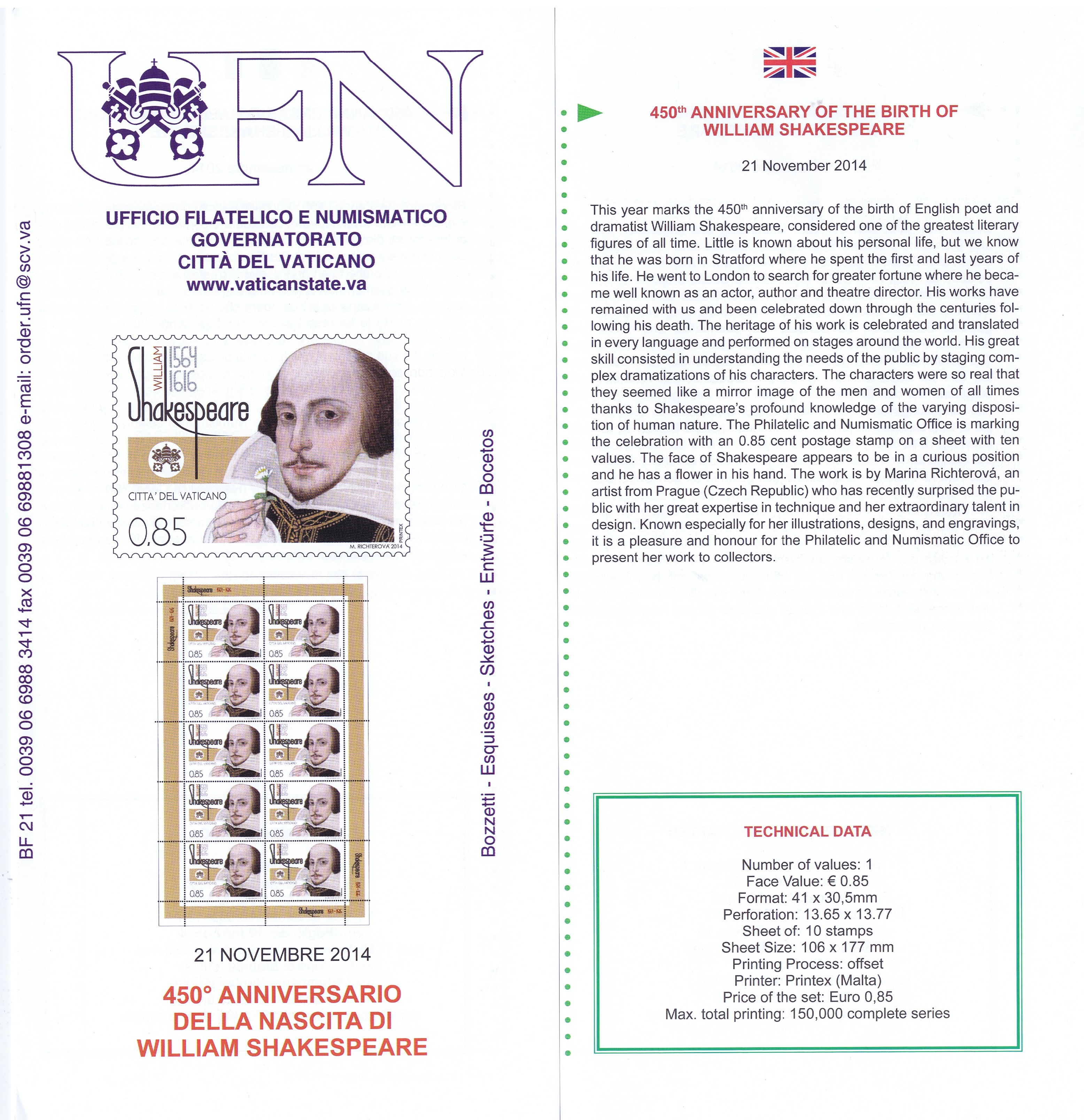 UFN New Issue Brouchures The Vatican discontiued publishing printed new issue information in 2021.