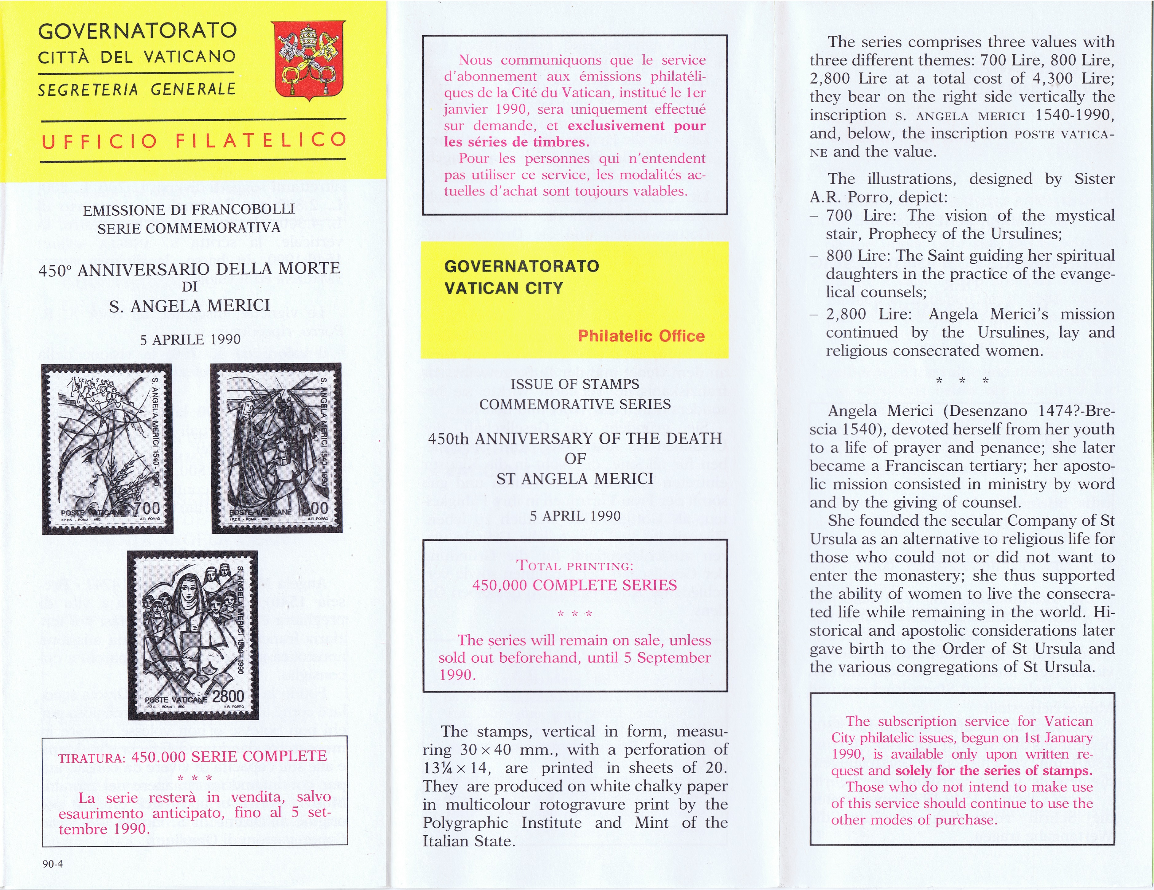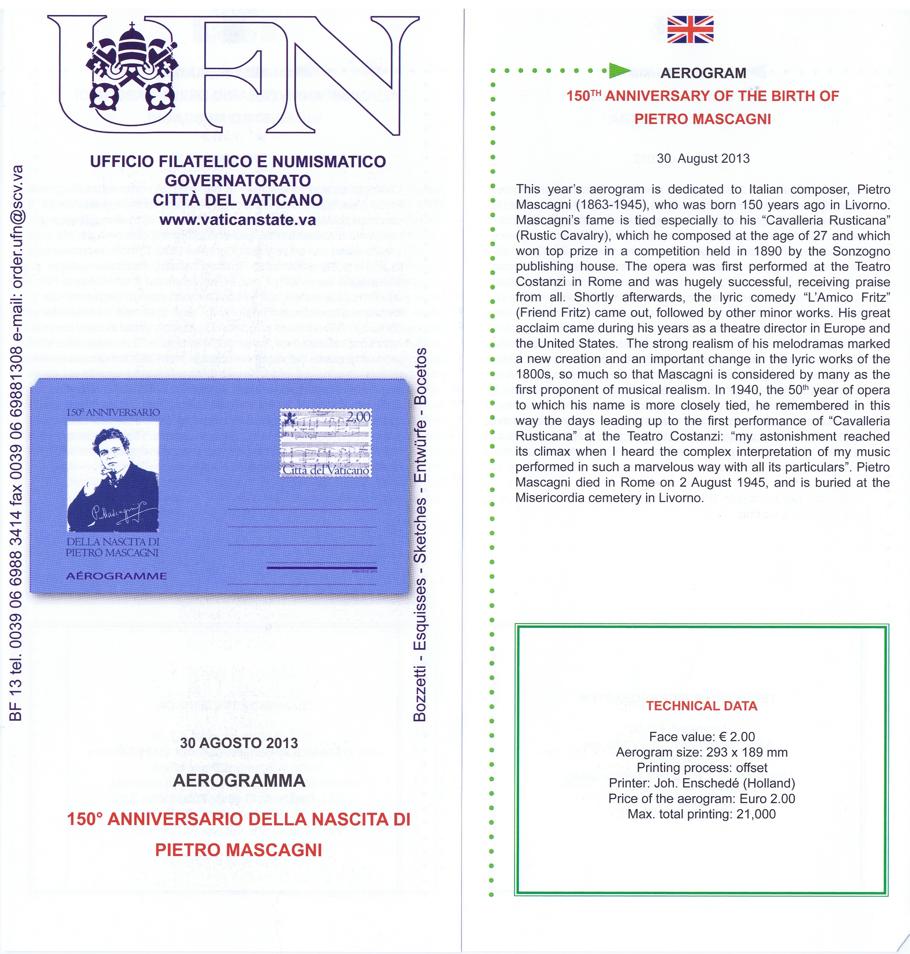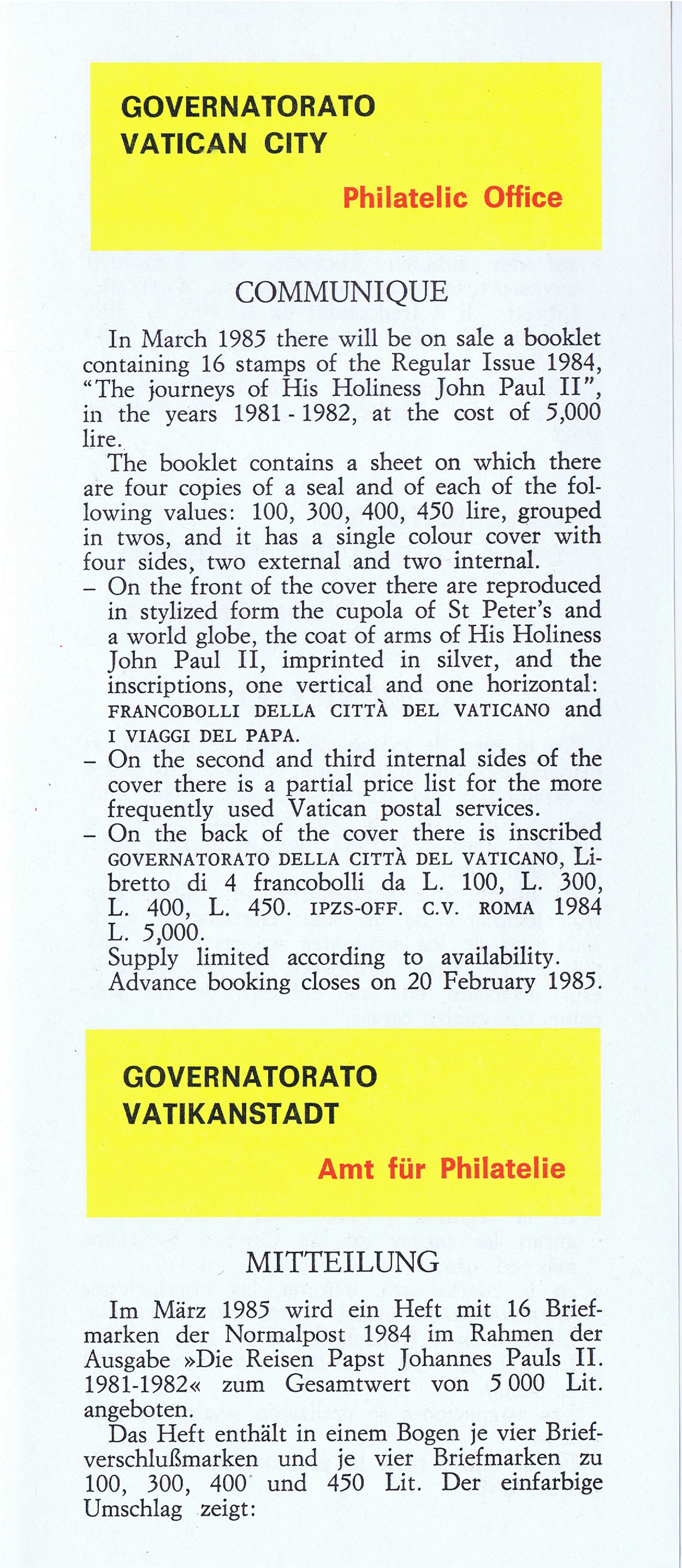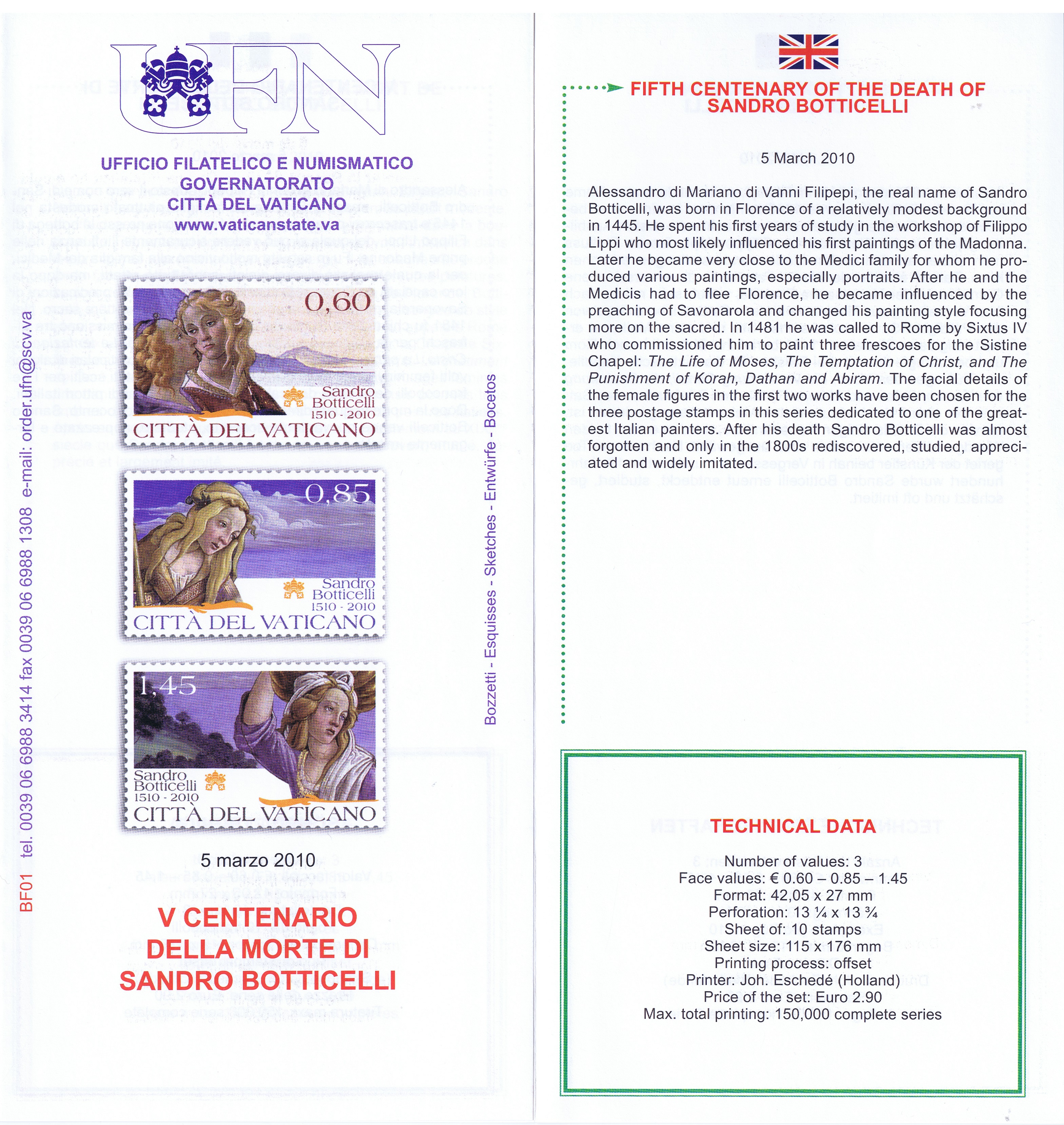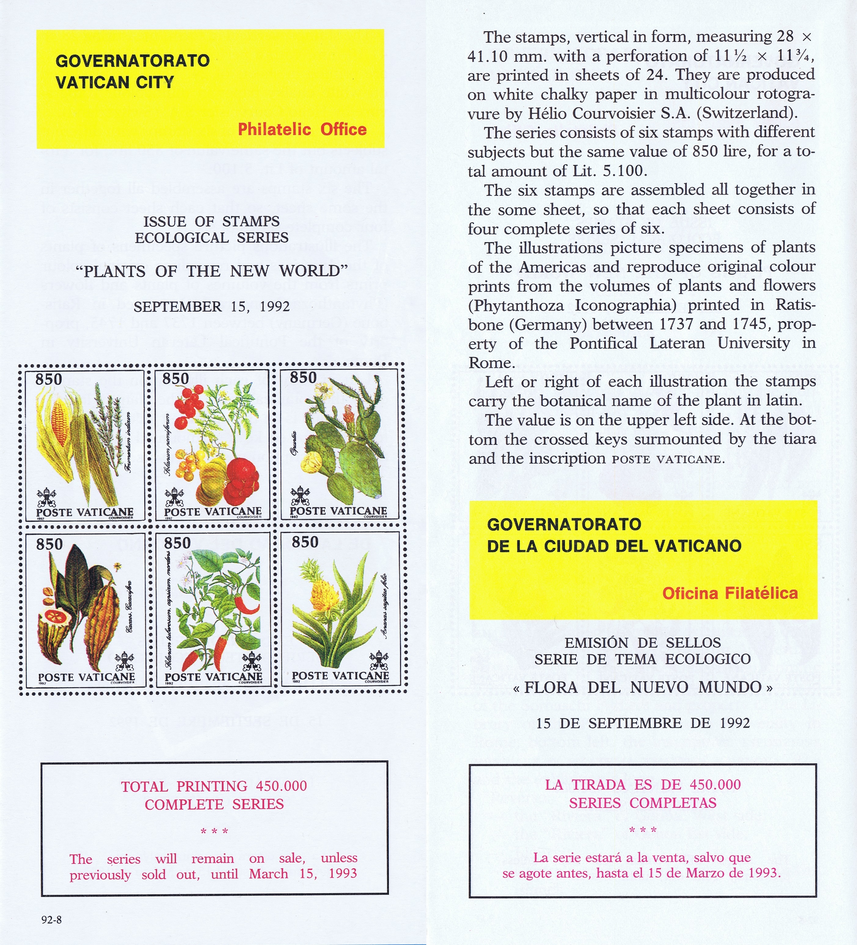 UFN New Issue Brouchures The Vatican discontiued publishing printed new issue information in 2021.