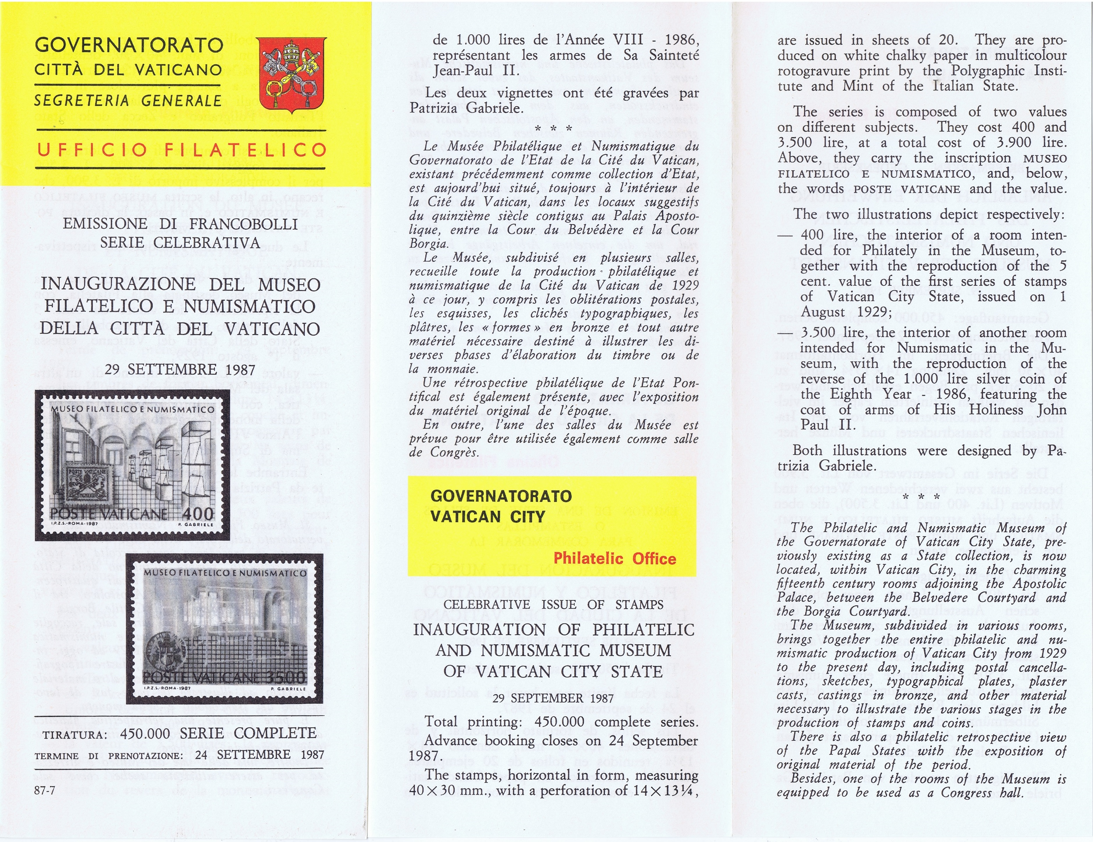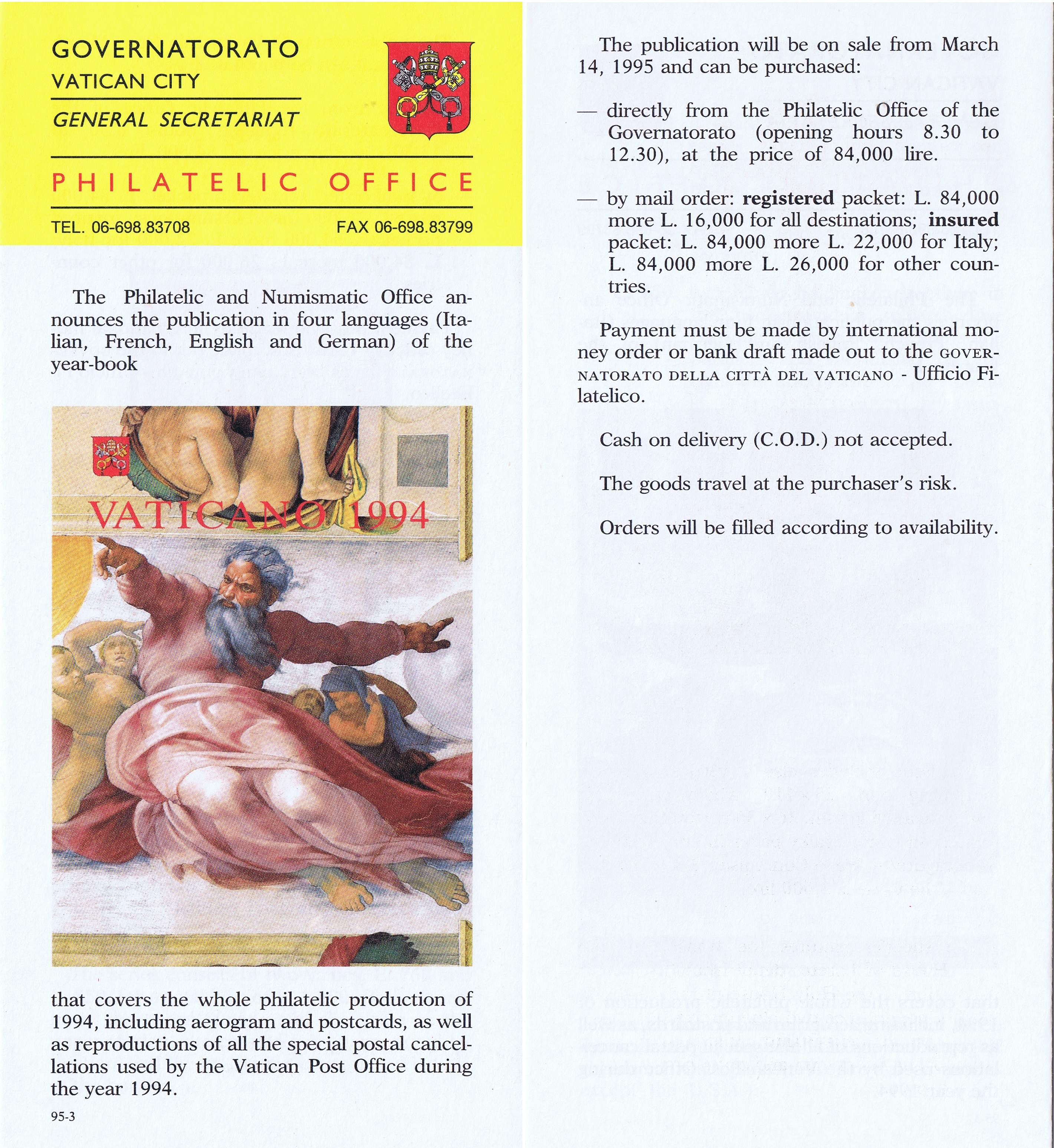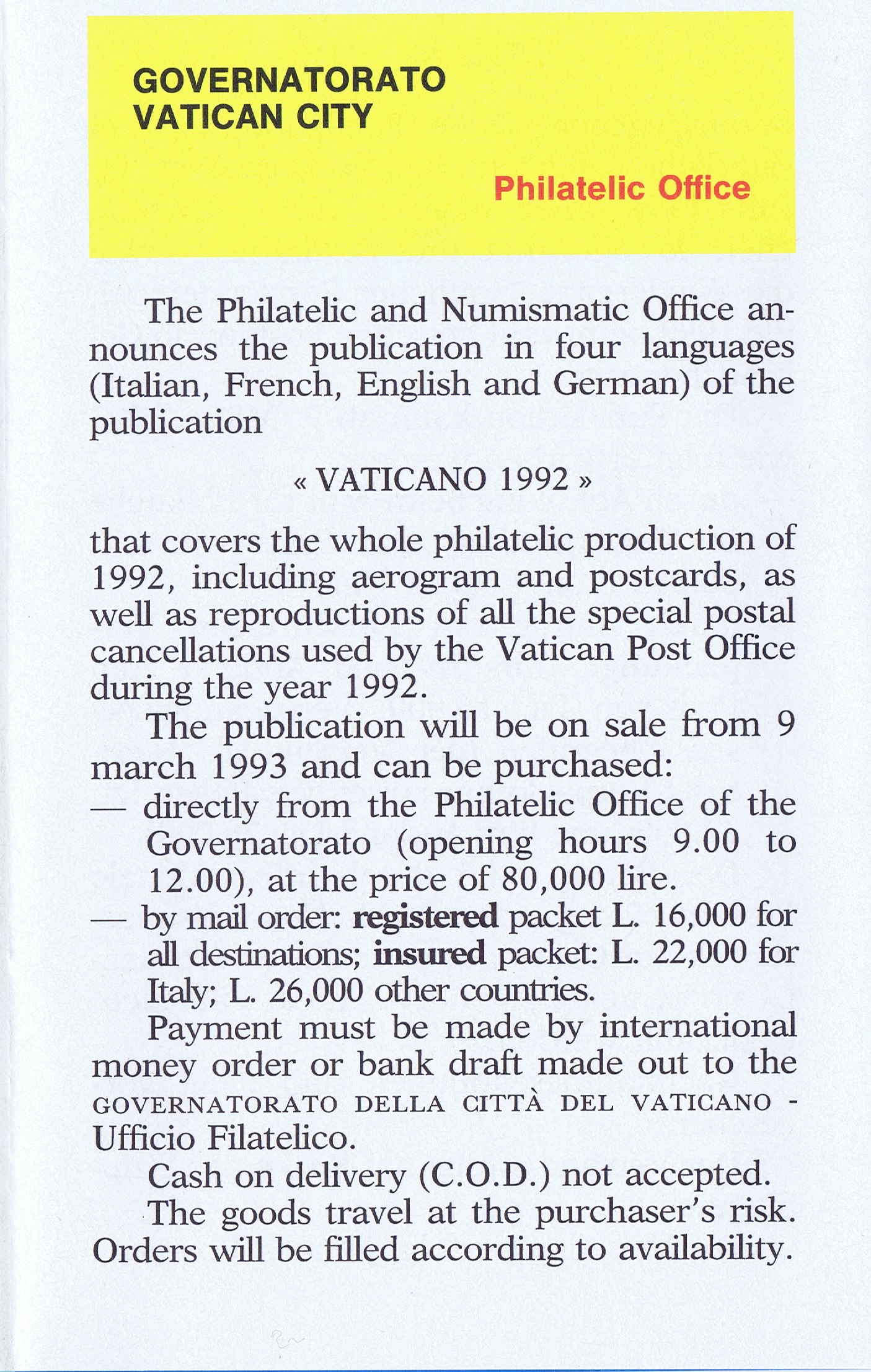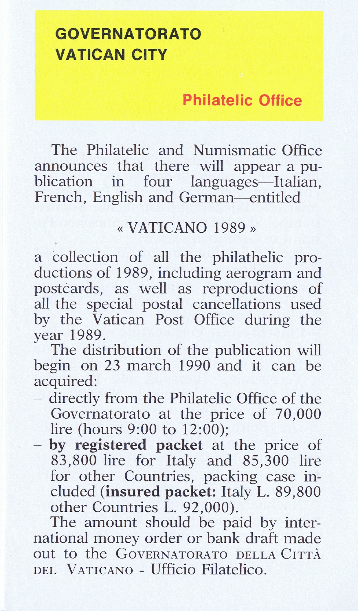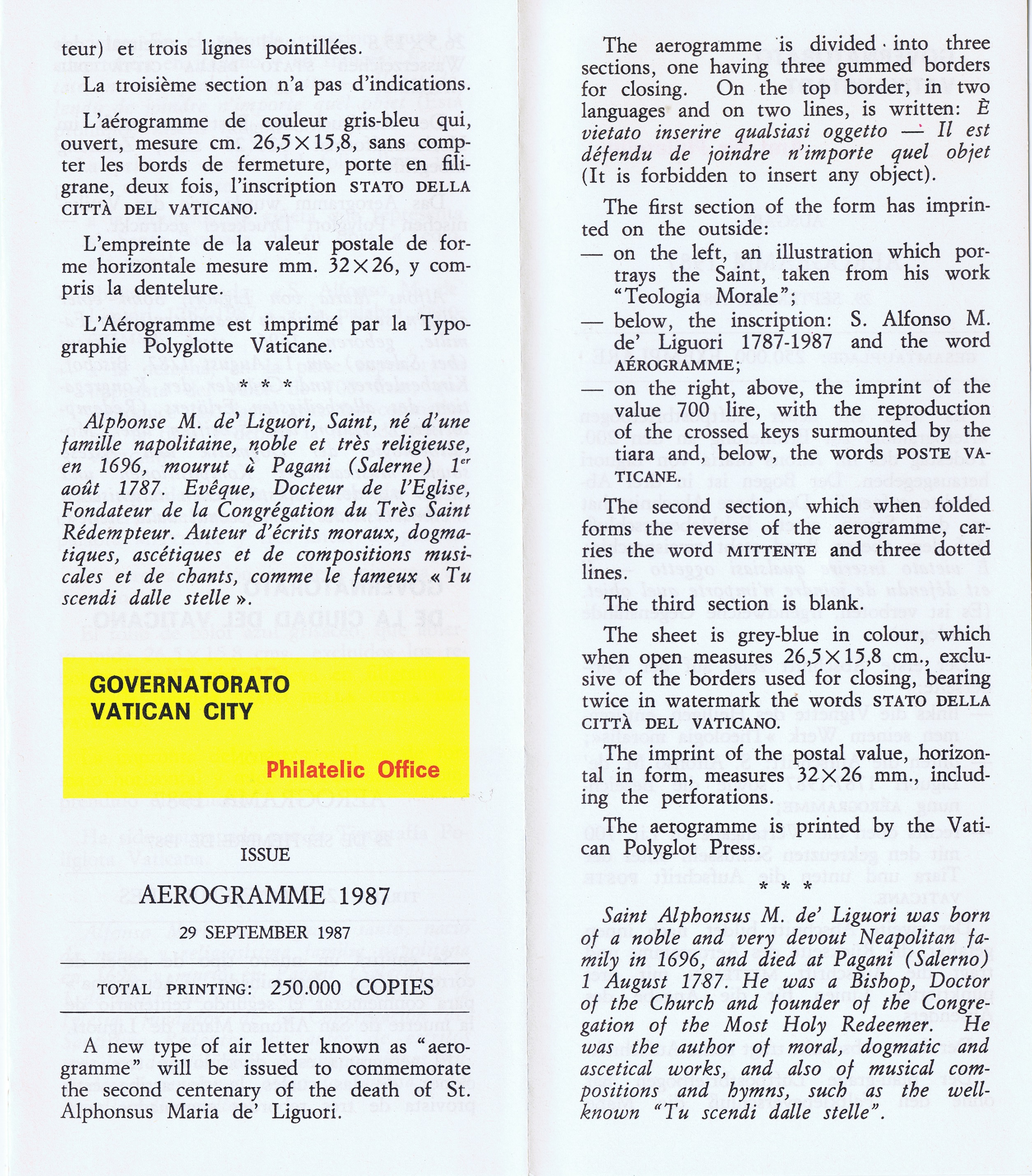 UFN New Issue Brouchures The Vatican discontiued publishing printed new issue information in 2021.