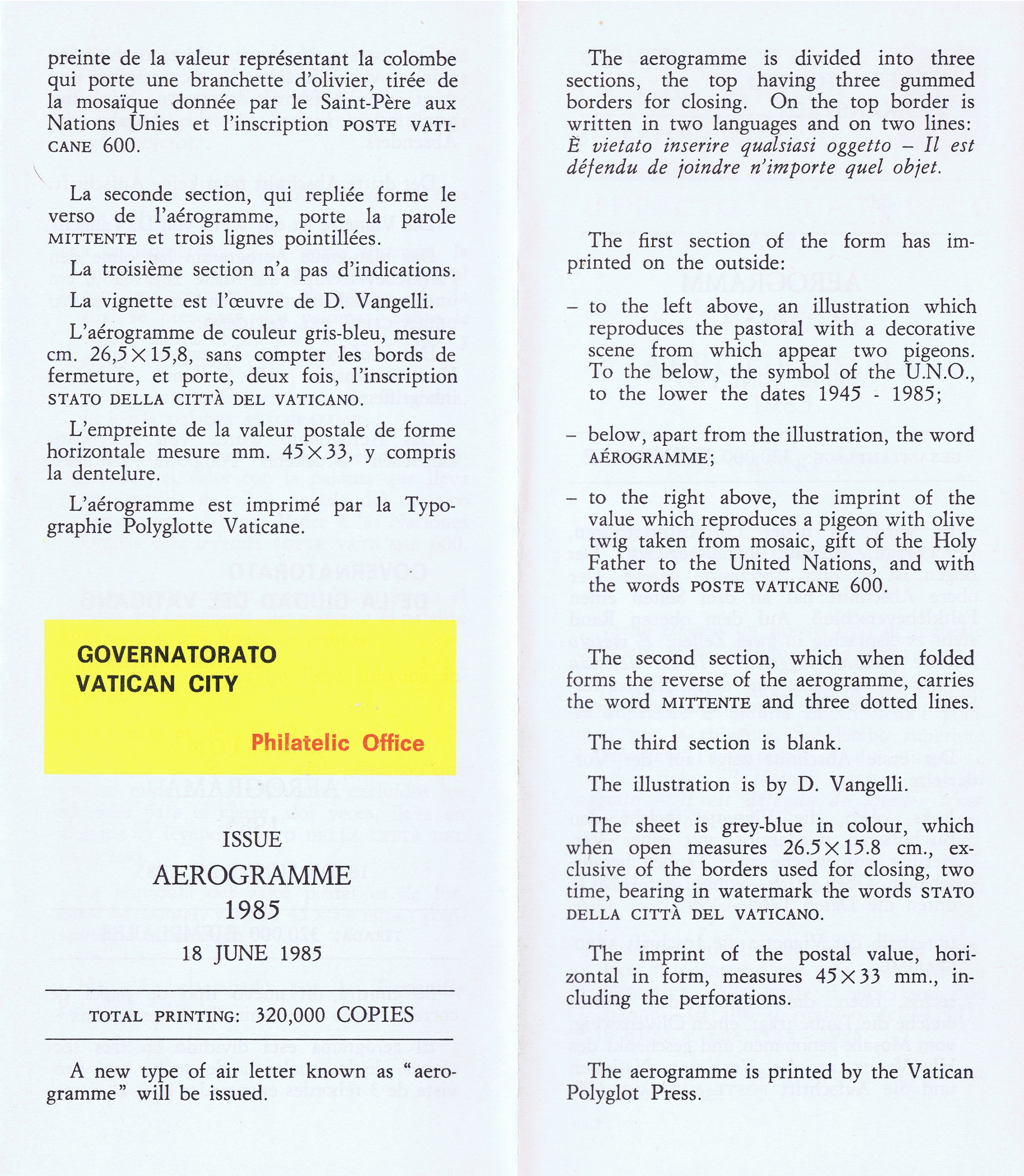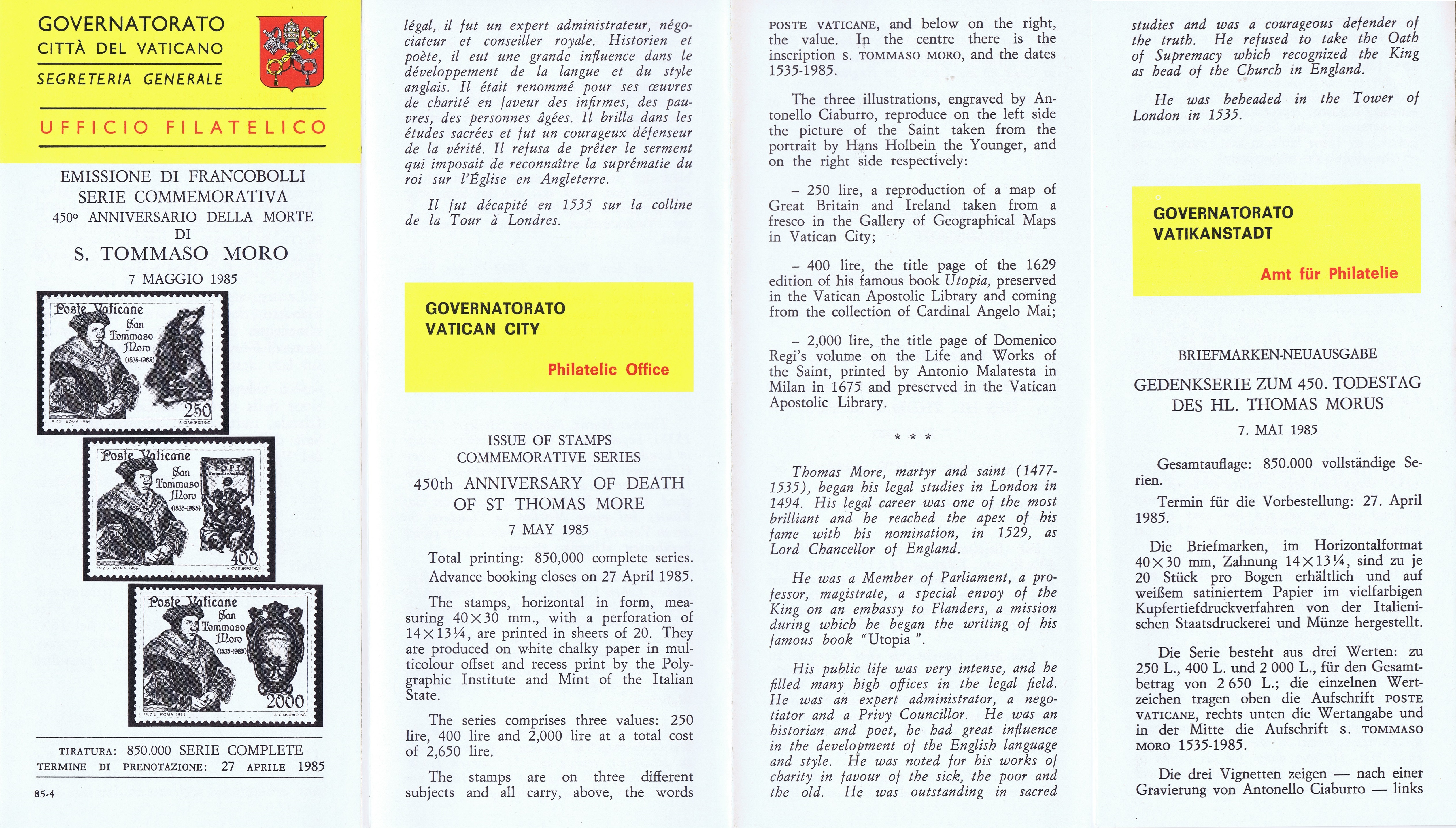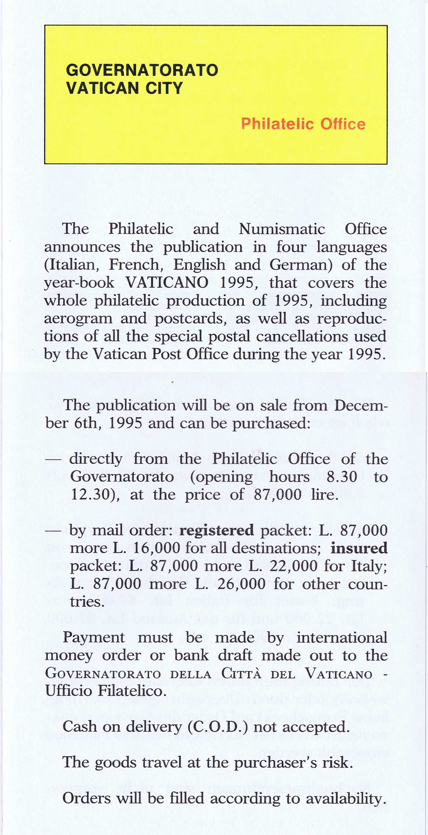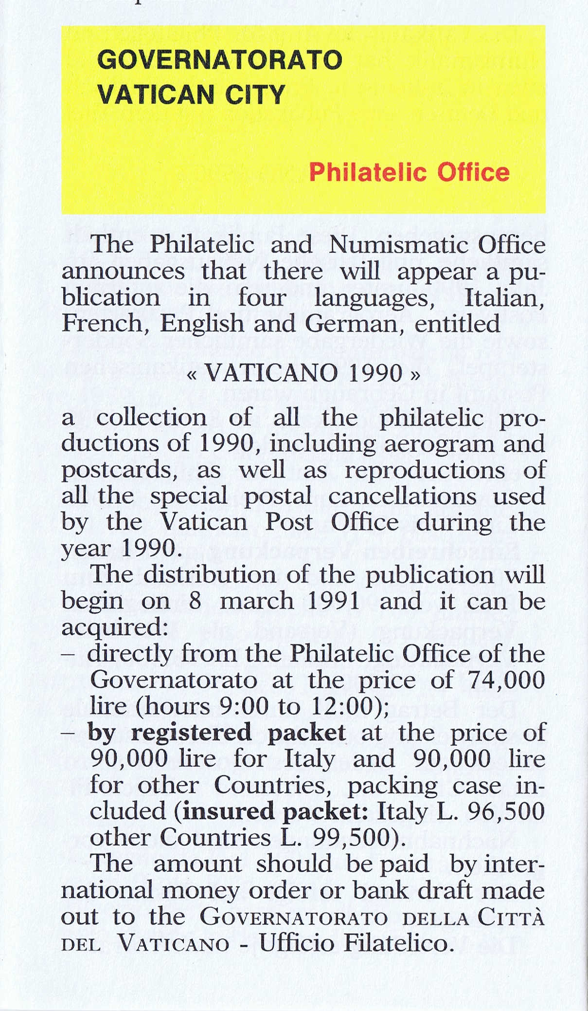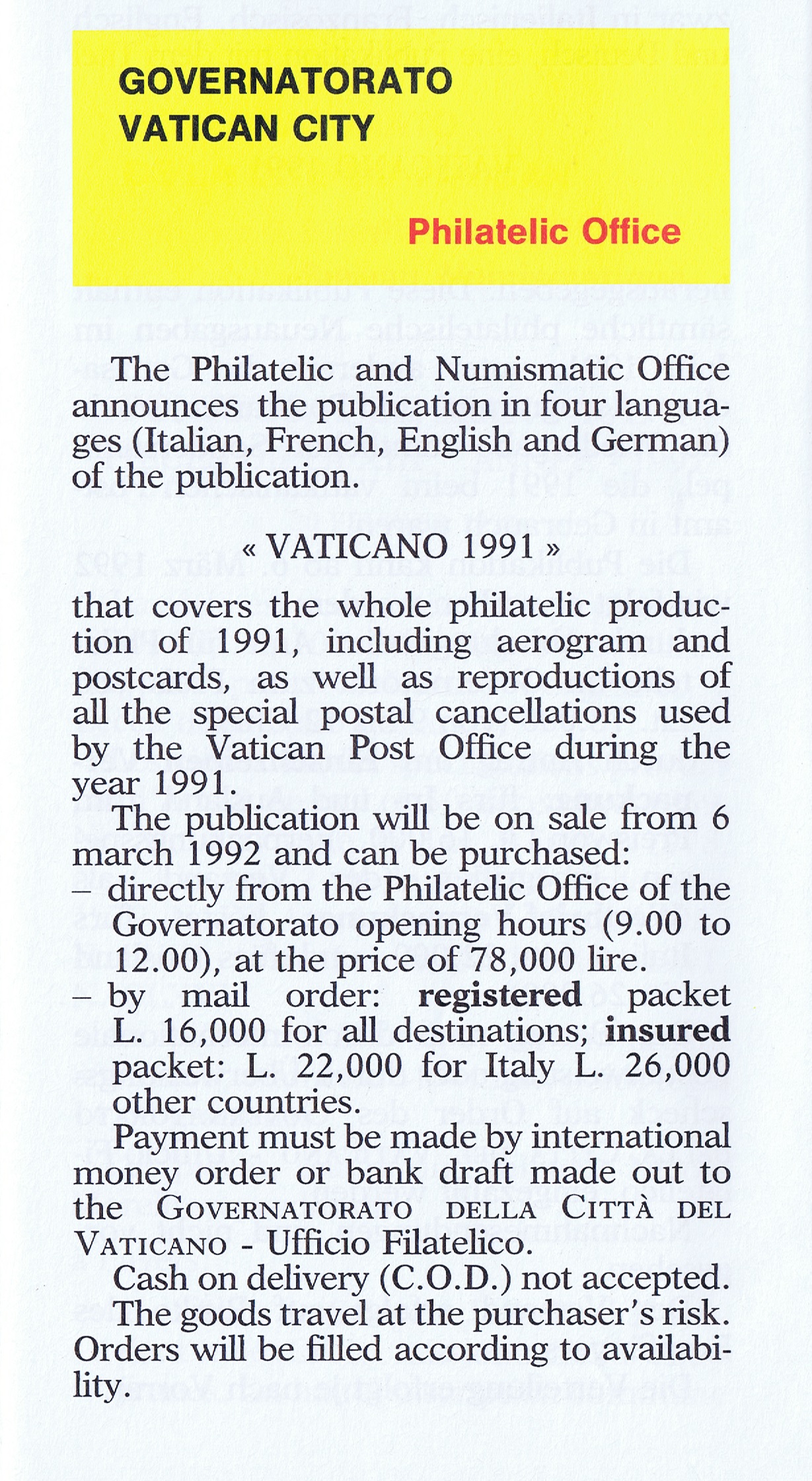 UFN New Issue Brouchures The Vatican discontiued publishing printed new issue information in 2021.