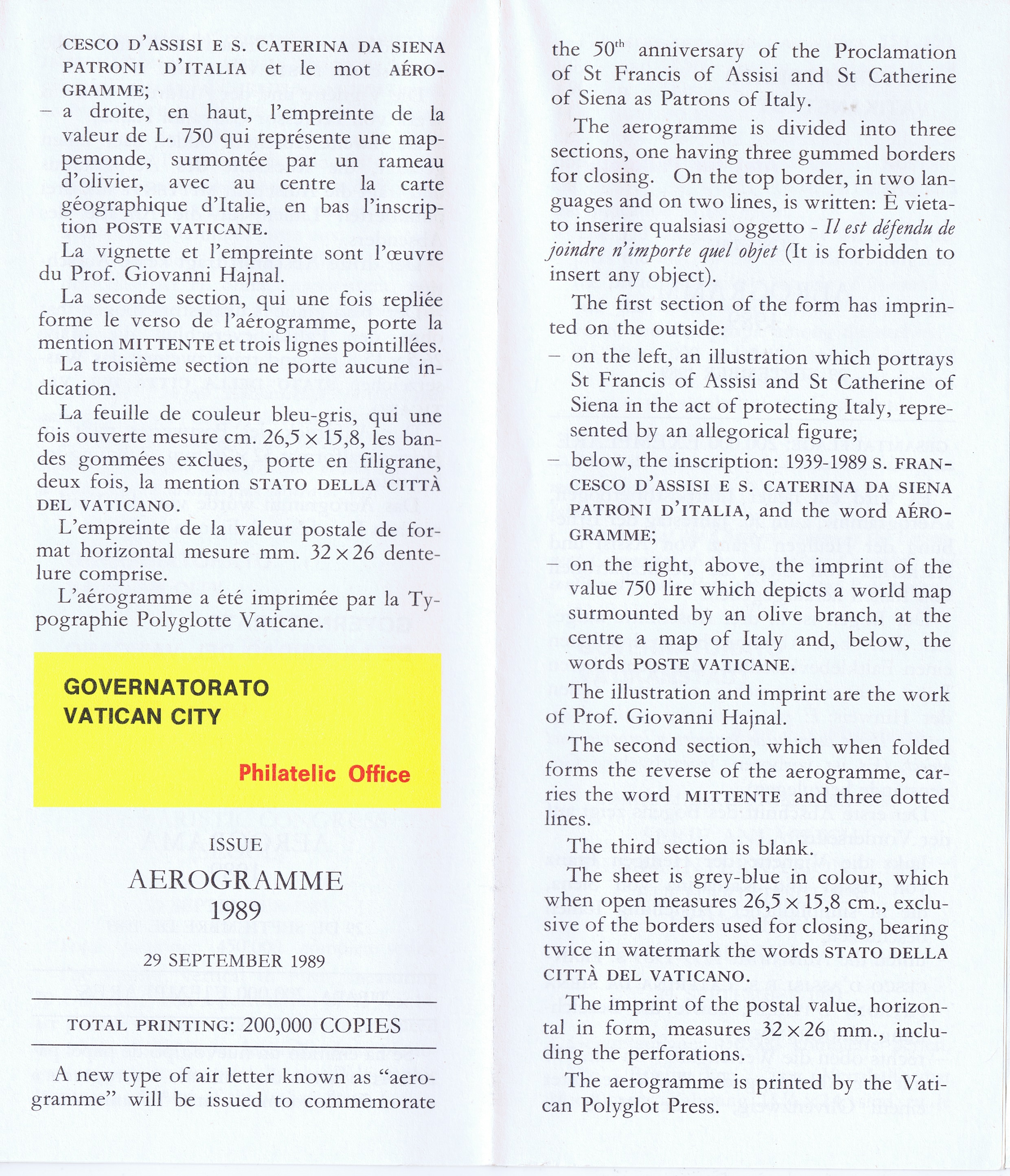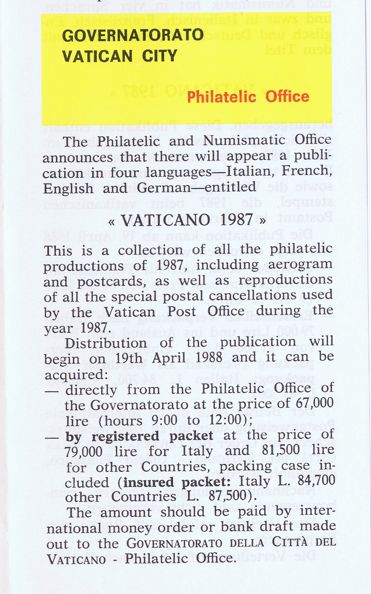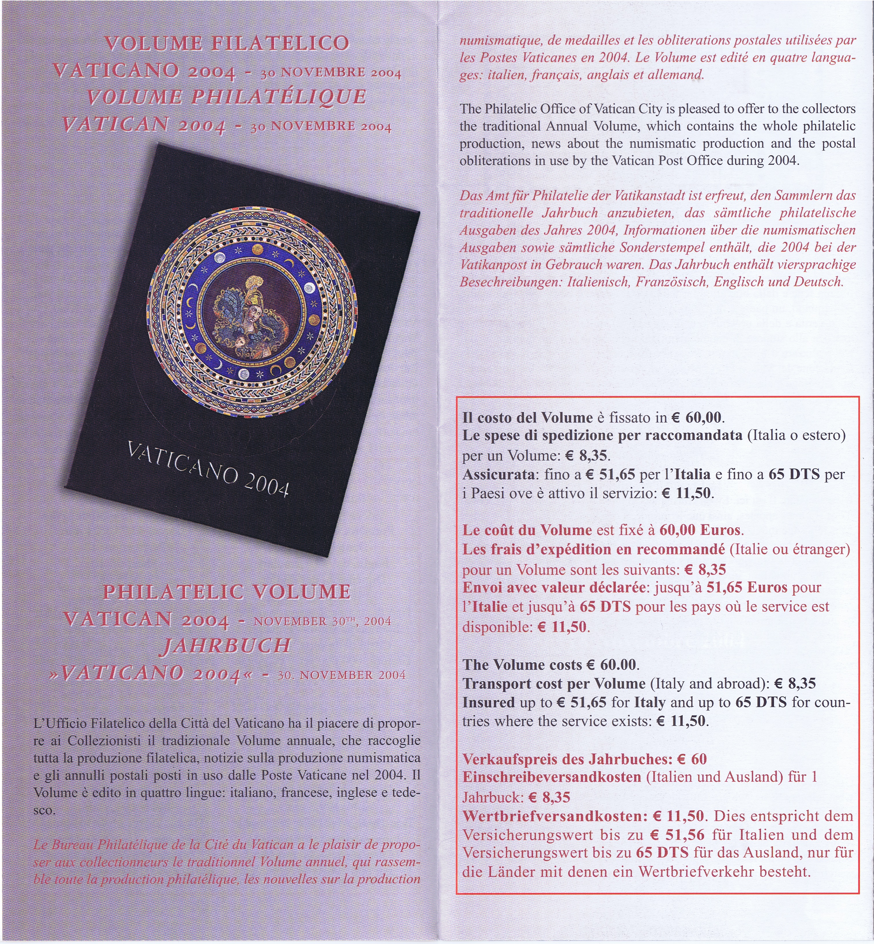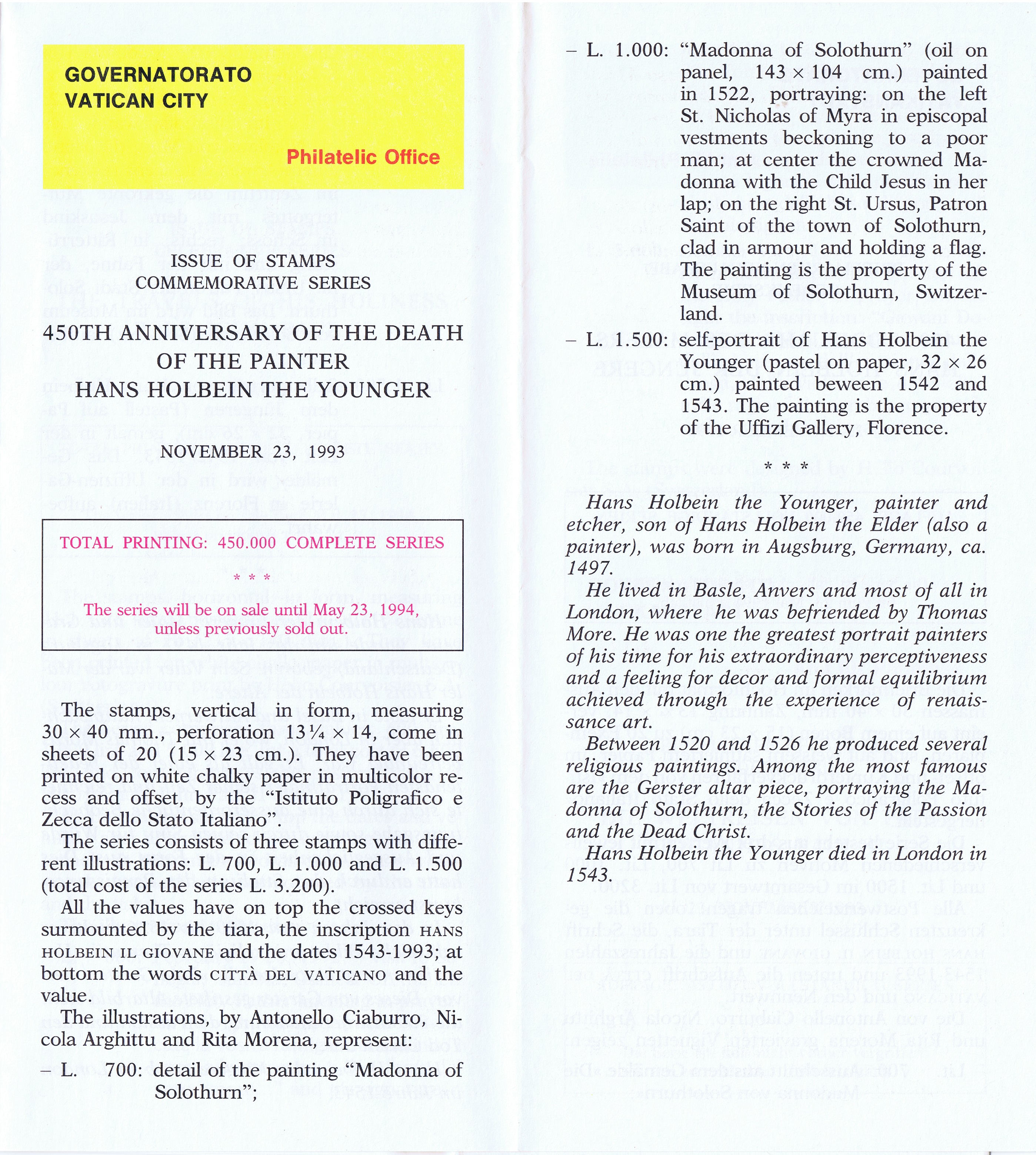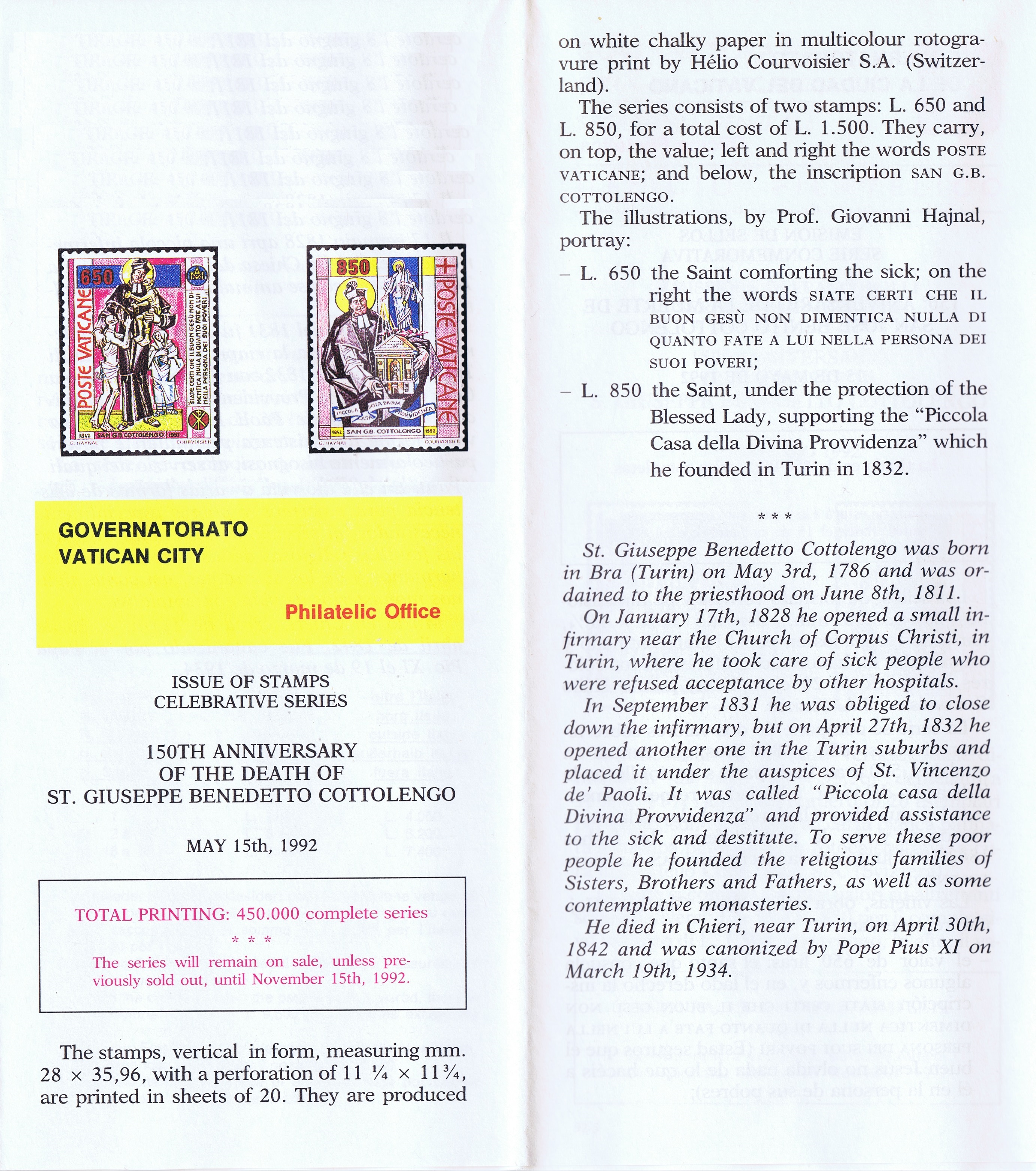UFN New Issue Brouchures The Vatican discontiued publishing printed new issue information in 2021.