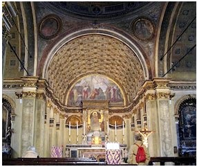 Donato Bramante was a major celebrity as an architect of the 15th century. Bramante was one of the only artists of his day who was said to be as talented as the ancient architects. Only Raphael was said to rival the talent of Bramante. Not much is known about Bramante's early life. He was born around the mid 1400’s near the city of Urbino. He trained there as a painter. Bramante later made his way to Milan where he turned his attention to architecture. In Milan, he met and learned from other masters of the High Renaissance, including Leonardo da Vinci. ![]() Church Of Santa Maria Near San Satiro | Optical Illusion Of The Narrow Vault Over The East Altar | ||||||||||||