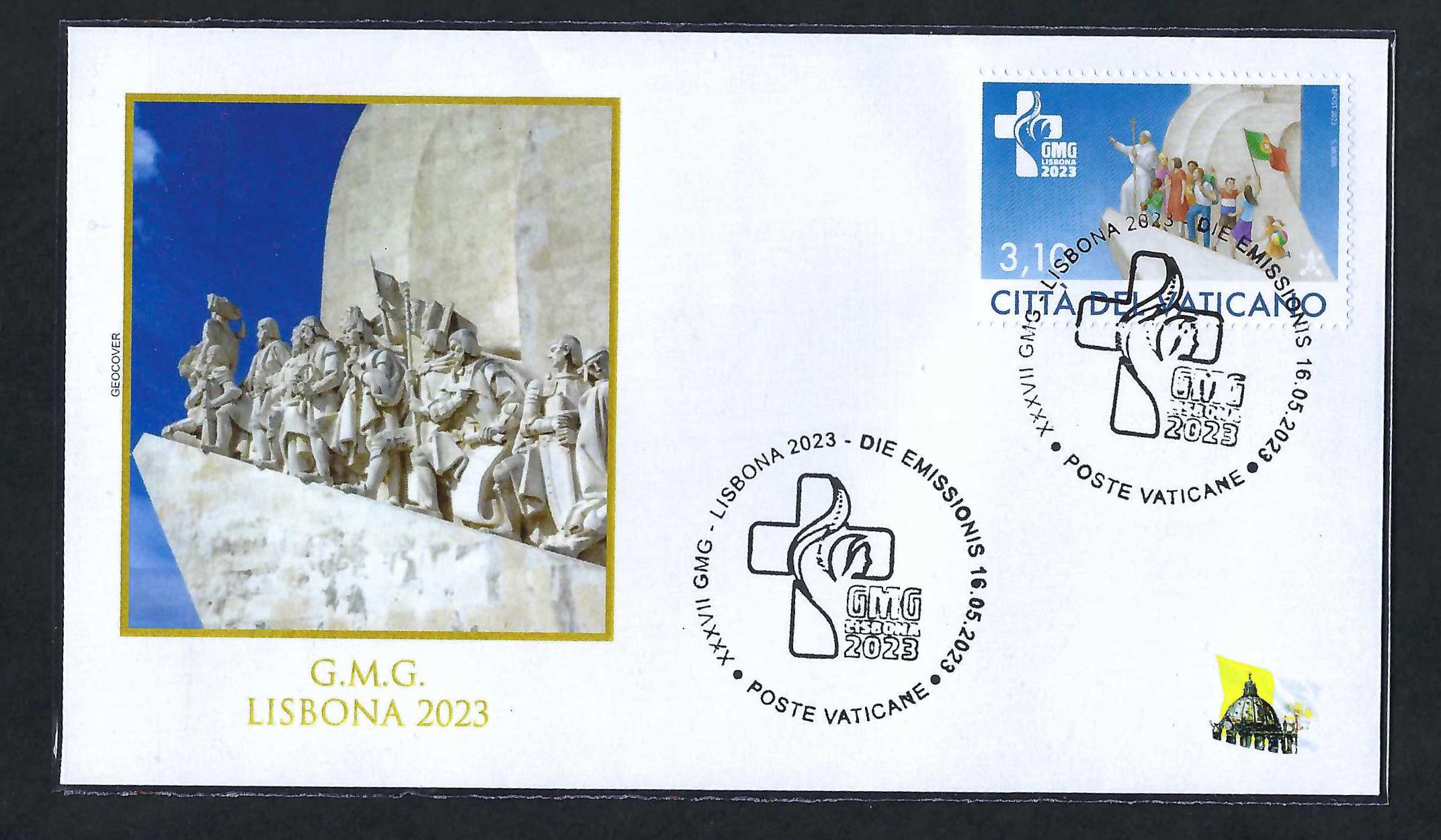 ![]() First Day Cover Featuring the Recalled World Youth Day 2023 Stamp (Scott 1828) There have been a number of entries in the VPS Chat Room asking about the existence of first day covers for the recalled World Youth Day stamp, issued on May 16, 2023, and recalled on May 18, 2023. Given the limited sales period, and the low number of stamps reportedly sold (estimated at 2000), one can imagine that the number of first day covers, created either philatelically or through postal use, would be very rare. Once again, we have Dan Bayer from Penny Black Stamp Company to thank for providing the image above, showing a first day cover for the recalled stamp. Produced by cover maker Geocover, the cachet shows an image of the controversial Monument of the Discoveries in Lisbon, Portugal. Beneath the cachet appears “G.M.G. Lisbona 2023” (for “World Youth Day Lisbon 2023”). The cover producer’s name is printed along the left-hand edge of the image. The recalled stamp is cancelled with the special first-day cancellation for the stamp, and a second cancellation also appears on the envelope. In the bottom right-hand corner appears the logo for the producer, Geocover. We do not know how many of these covers were produced by Geocover, and we would have no idea how many of the recalled stamps were actually used in the regular daily mail on May 16, 2023. The number must be extremely low, making these first day covers rare and valuable. |