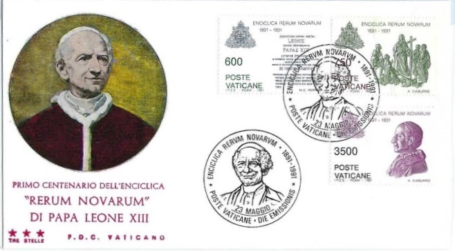![]() First Centenary of the Encyclical Rerum Novarum Scott 882-884 (1991) In 1991 three stamps were issued by the Vatican in recognition of the first centenary of the encyclical Rerum Novarum. The coat of arms of Pope Leo XIII, who wrote the encyclical, is placed in the upper left corner of each of the stamps. L600 shows the title of the first page of the encyclical, L750 shows the church holding the cross and the encyclical at the center of the stamp with workers on the left side and owners on the right. This stamp is an allegory of workers and owners looking to the church for social justice guidance; encouragement for the betterment of the temporal affairs of all; and the giving of charity to the less fortunate. L3500 show a portrait of Pope Leo XIII. He was born in 1810 and was Pope from 1878 to 1903. Rerum Novarum is one of the first significant encyclicals on social justice issued by a pope. Prior to this, ecclesiastical authorities spent most of their time on territorial affairs and relationships with the ruling classes. Social justice was a back burner issue. The Saints, religious and lay were providing education and charitable works of mercy to the people. Enlightenment philosophy (18th Century) and the Industrial Revolution (18th and 19th Centuries) were taking place. Prior to the industrial revolution landownership, small farming and medieval guides were the major drivers of economic activities. Adam Smith’s “Wealth of Nations” was published in 1776. Karl Marx, along with Fredrich Engels, published the “Communist Manifesto” in 1848. Marx published a three-volume book “Das Kapital” in 1867, 1885 and 1894. In 1891 Pope Leo XIII, in Rerum Novarum, tried to provide theological guidance on the treatment of labor and the use of capital caused by the Industrial revolution. Also, It was meant to counter the writings of Marx, and to some extent counter the Enlightenment idea that man’s reasoning is the primary source of lawfulness. Pope Leo XIII was the first modern Pope. With the unification of Italy in 1870, he held the position of Pontiff with no territory to fight for or be concerned about. He was a Pope with a new vision for the Church. In a benign and pragmatic way, he was not fearful of the need for change within the Church to fight against anti-Roman Catholic philosophies that had been taking hold in Europe. He also tried to make efforts in ecumenism with Orthodox and Anglican Churches. In his 25 years as Pope, he wrote 90 encyclicals which is approximately a third of all encyclicals written. With the industrial revolution in full force, both the ruling class and organized religions were not set up to deal with such issues as: As of this writing the encyclical is 133 years old (the document was written in 1891). It was also inspired by Westminster’s Cardinal Manning and Archbishop James Gibbons of Baltimore to offset the trending in the society towards Socialism and Marxism. The Socialist Party of America (SPA) was founded in 1901. The party was spawned by the American Railway Union (ARU) strike in 1894. The ARU strike was ended by federal troops. In Europe the ruling and land owning class had their own confrontation with the Socialist economic philosophy and actions. The Russian revolution started in 1917. In reading the encyclical, the reader can see that the issues raised and the guidance provided has relevance today. The encyclical deals with the age-old dilemma of social justice, prudence and charity versus worldly pride, immoderate love of self, injustice and sacrifice to help the poor. Also, It states that the family unit is a necessary factor for society’s well-being. The encyclical criticizes Socialism and an unregulated laissez-faire capitalism. It states that the government has a role to play in social justice issues. Private property is a right and laborers have a right to organize as a means of collective bargaining. Also, charity to the poor is a responsibility for all. The biggest issue, which is expressed on L750, is the role of the church. The encyclical states that the Gospel, and virtues taught and communicated by the teachings of the Church, is a requirement for the natural harmony of capital, labor and the government to co-exist rightfully: “Capital cannot exist without labor, nor labor without capital”. Though it does not state it outright, the assumption contained in the encyclical implies that a secular society would not bring harmony between capital, labor and government intrinsically themselves. References: Papal Encyclicals Online, Pope Leo XIII, 1891, Rerum Novarum Gutierrez, O., A Summary of Rerum Novarum or On Capital and Labor, 2020 Himes, K., 'Rerum Novarum' is 130 years old. What would Leo XIII say about today's gig economy? Costa, V., Rerum Novarum: 15 Key Lessons, Summary and Review Wikipedia, Rerum Novarum Wikipedia, Industrial Revolution ![]() First Day Cover: Centenary of the Encyclical Rerum Novarum Scott 882-884 (1991) |
