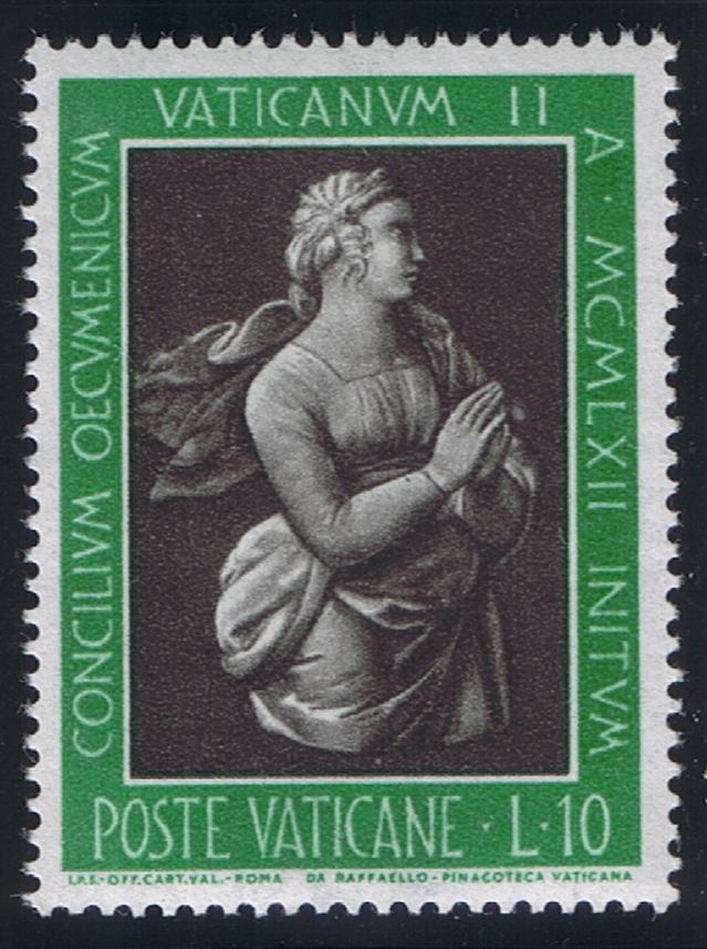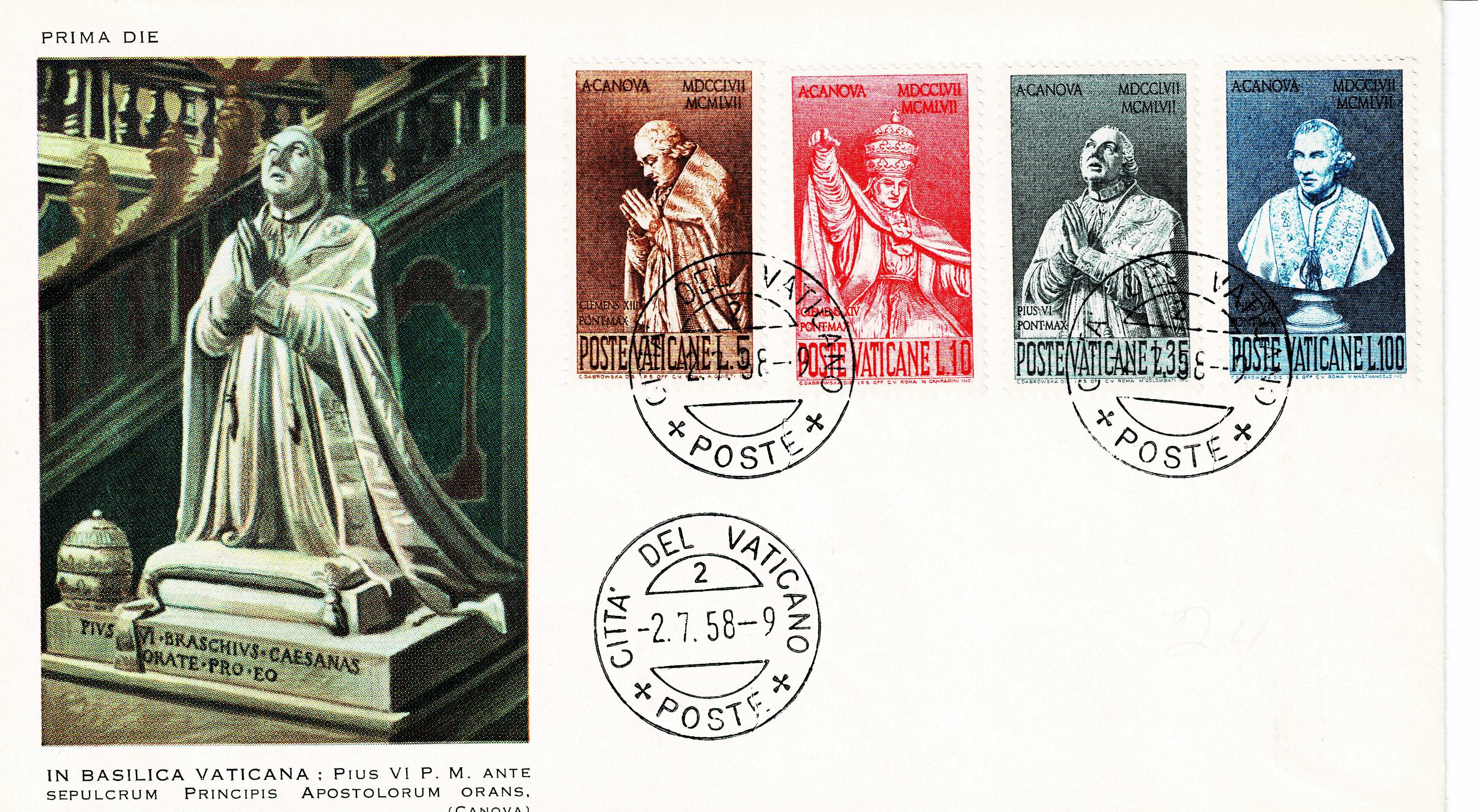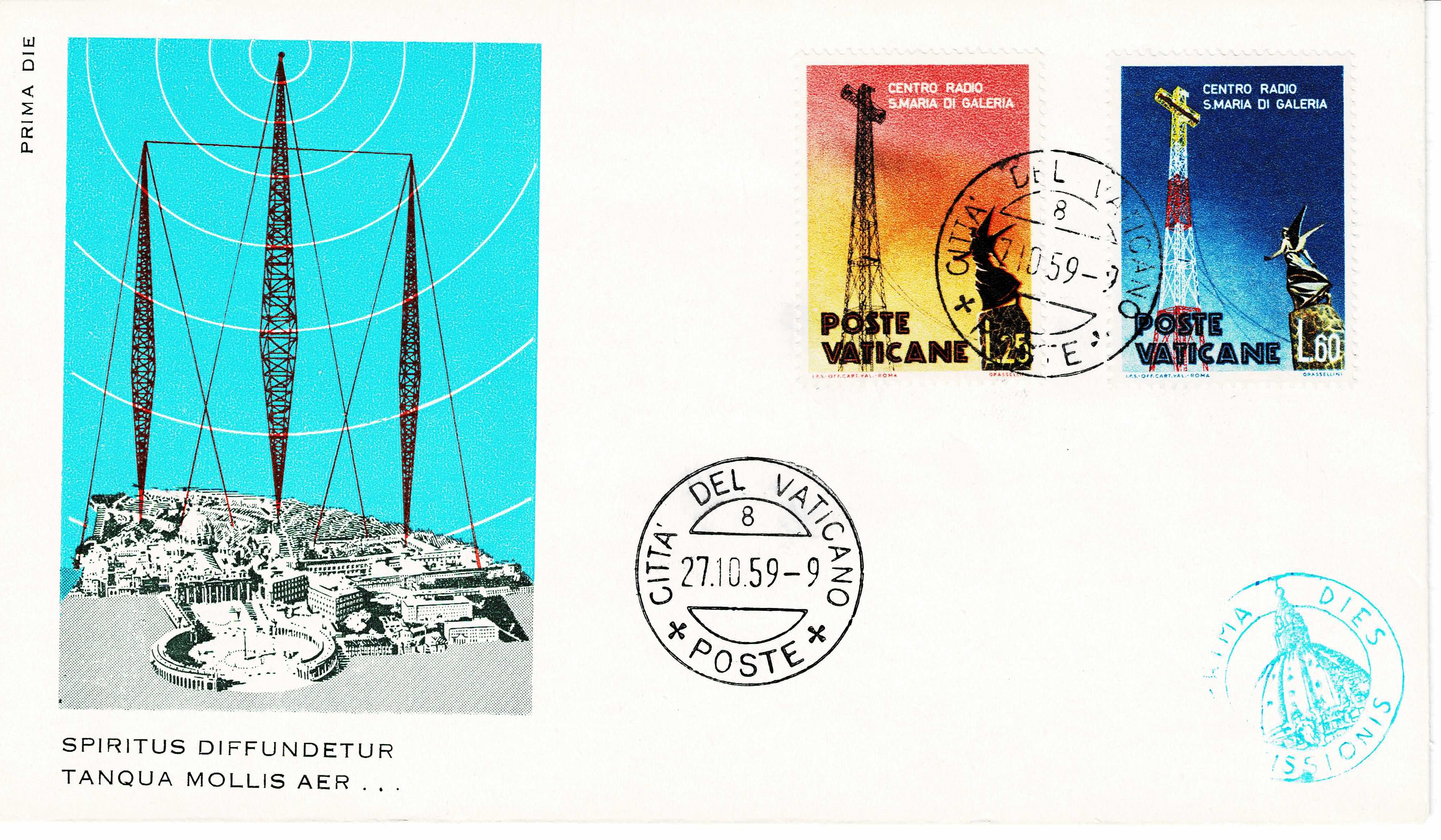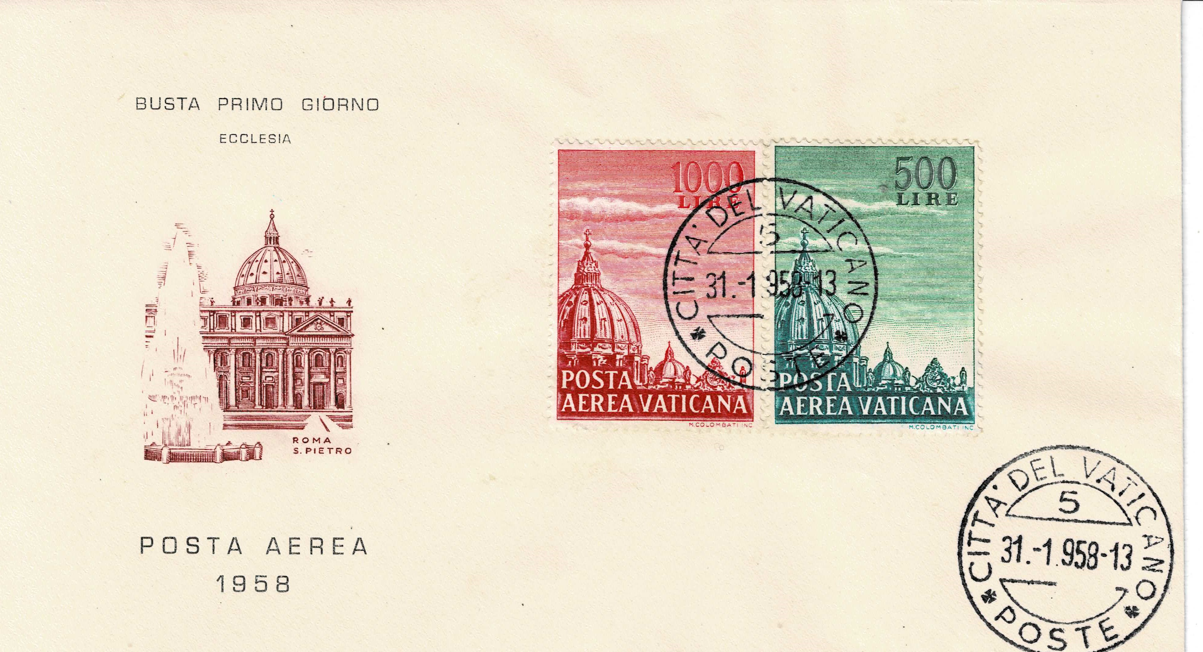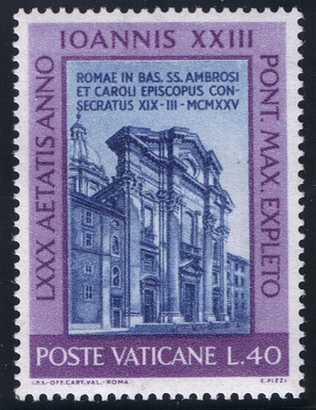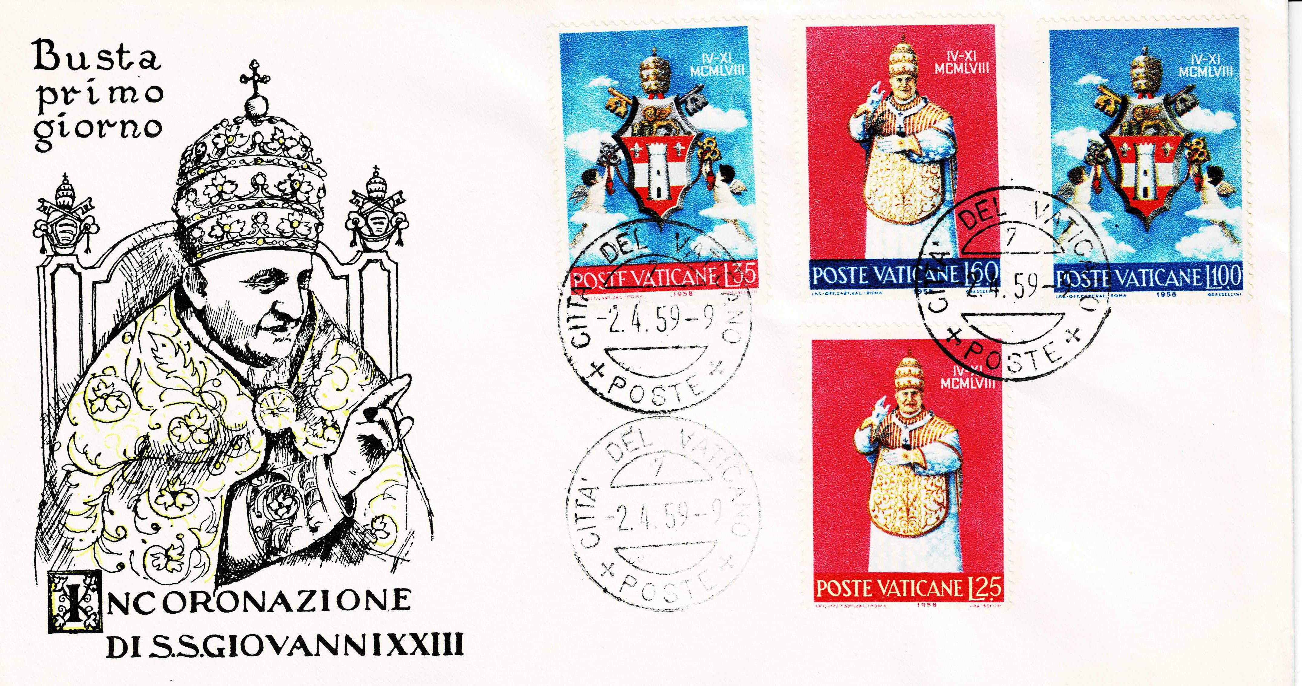 Like his predecessor, Pope Pius XII (4, 12, and 35 lire stamps) is also. dedicated to the Mother of God. At baptism he received the name of Mary as his first middle name. When he was ordained a priest he said his first Mass in one of the chapels of St. Mary Major, the most prominent basilica in Rome dedicated to the Blessed Virgin.