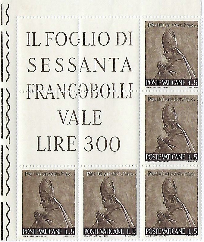 Three stamps were issued on August 22, 1968, the day of Pope Paul VI's departure to the 39th International Eucharistic Congress At Bogota. It is suggested that their postal usage was intended as follows:-L.25 to frank the rate for picture postcards with no more than five words sent within the limits of Italy; L.55 is the rate for a postcard with correspondence sent outside the limits of Italy; L.220 is the rate for a registered letter of no more than 20 grams sent outside Italy.