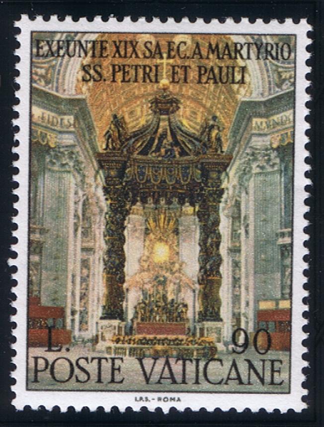 The Lire 55 shows the concelebrated Mass on the Papal Altar over the tomb of St. Peter, under Bernini's canopy, which was offered at the end of the Council.