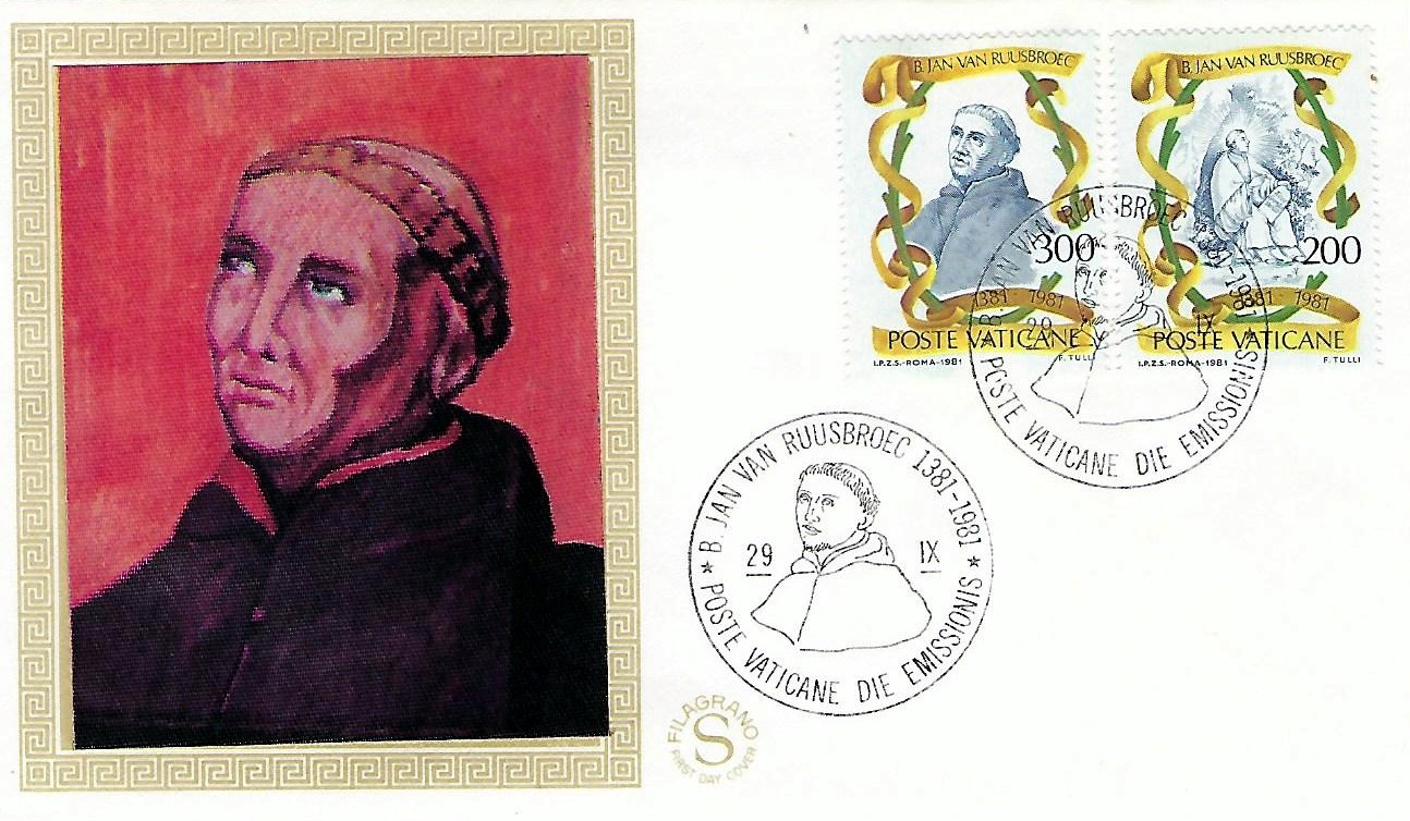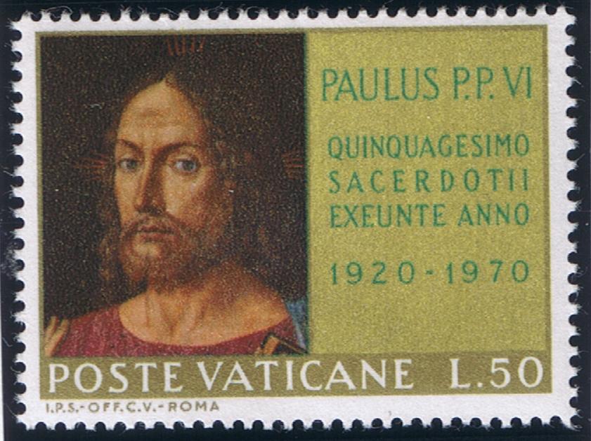 On the Vatican stamp at L.50 stands Hedwig/Jadwiga, the youngest and most beloved queen of the Polish people. She was the granddaughter of King Ladislaus Lokietek, who with the help of Pope Boniface III unified the loosely organized Polish kingdom. Hedwig was also the daughter of Louis d'Anjou, the king of Poland and Hungary. In 1384 when Hedwig was only twelve years of age, the Polish nobility elected her queen of Poland. During the couple of years she ruled alone, Hedwig, reunited Ruthenia/today's Ukraine/ to Poland and prepared it for a reunion with Rome. Ladislaus Jagiello, the Grand Duke of Lithuania, proposed marriage with Hedwig, promising to embrace Christianity with all his people and to join his country with Poland. For the love of Christ, Hedwig consented - at the price of personal sacrifice of the love of her dearest fiance, William. Jagiello, after his baptism and under the influence of his young and virtuous wife, became a fervent and sincere Catholic. A year after his marriage Jagiello kept his promise of leading his good nation to the Faith and so extended his rule over Bialorus/White Russia/ and the northern part of Russia. Very soon the presence of Hedwig, the queen, at Vilno, the capital of Lithuania, and her angelic goodness to the Lithuanians, gave impetus to the early and peaceful conversion of the people. Queen Hedwig died young and in the odor of sanctity. The picture on the stamp is a copy of the portrait of Jadwiga painted by Jan Matejko.