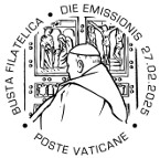 The envelope carries an imprinted value of €3.20 and was printed in a limited run of 9,500 copies by the Vatican Printing Office, using four-color offset on 80 g/m² paper. The design was created by artist Daniela Fusco, and the imprinted stamp features the official logo of the 2025 Jubilee. Complementing the envelope is a special circular postmark, 38 mm in diameter, which was used at the new Vatican post office in St. Peter’s Square on the day of issue. The postmark includes the inscriptions “BUSTA FILATELICA,” “DIE EMISSIONIS 27.02.2025,” and “POSTE VATICANE,” along with a stylized image of the Pope opening the Holy Door. This philatelic issue not only captures a moment of profound liturgical significance but also serves as a collectible emblem of Pope Francis’s vision for a Church that welcomes all with open arms.