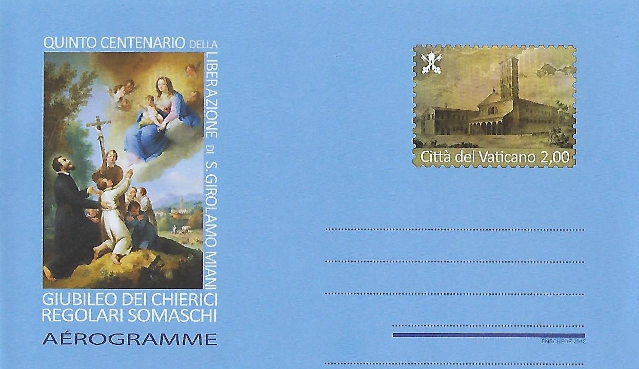 Answer: A careless and irreligious soldier for the city-state of Venice, Jerome Emiliani was captured in a skirmish at an outpost town and chained in a dungeon. In prison, Jerome had a lot of time to think, and he gradually learned how to pray. When he was inexplicably freed from prison, Jerome attributed his miraculous liberation to the intersession of the Blessed Virgin Mary. He then returned to Venice where he took charge of the education of his nephews and began his own studies for the priesthood. Around 1532, Jerome and two other priests established a congregation, the Clerks Regular of Somasca, dedicated to the care of orphans and the education of youth. Jerome died in 1537 from a disease he caught while tending the sick. He was canonized in 1767. In 1928, Pope Pius Xl named him the patron of orphans and abandoned children. 'St. Jerome Emiliani' on Ewtn.com ![]() Aerogramme - St. Jerome Emiliani 5th Century of His Liberation from Prison A50 (2012) |