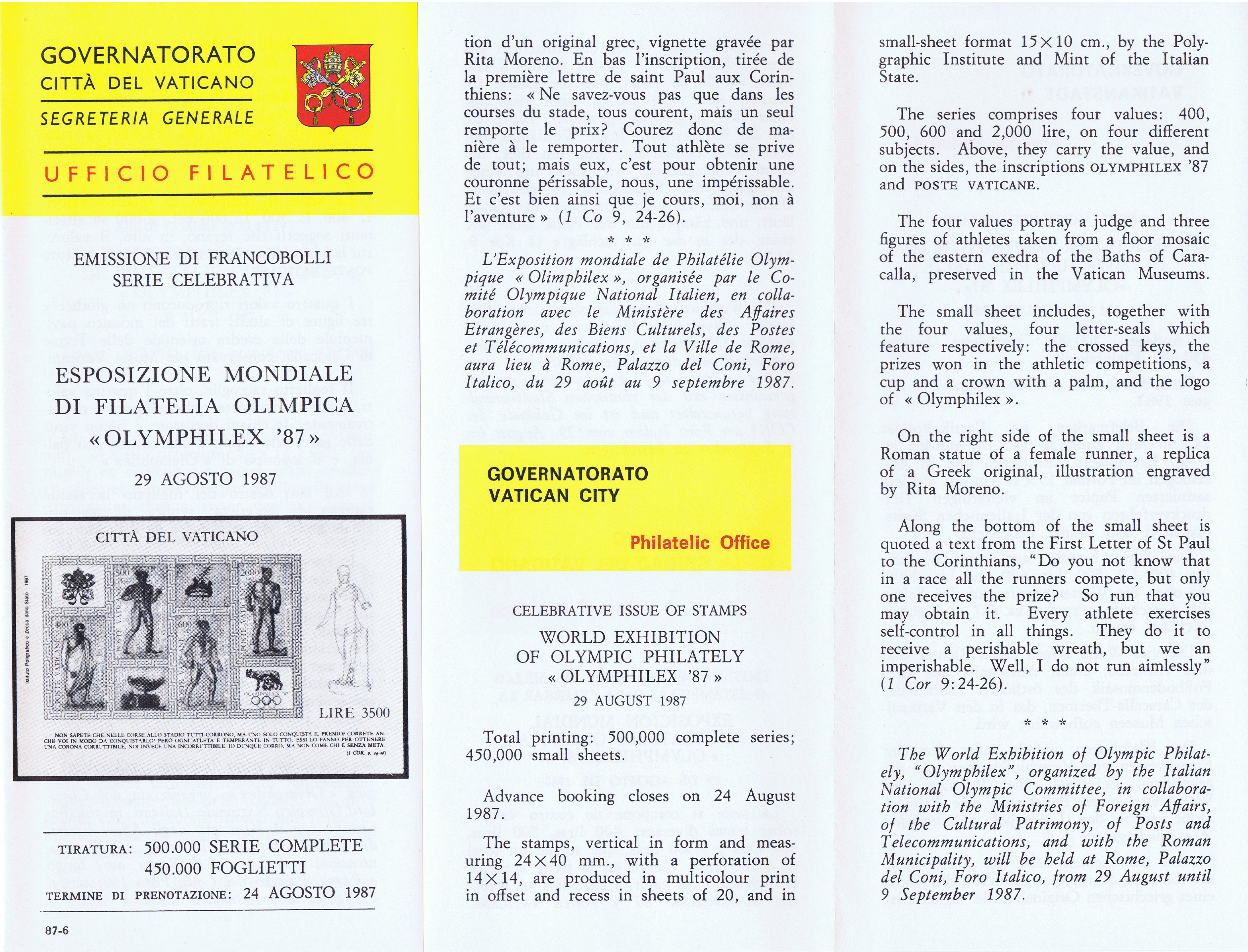 Olymphilex 87 Scott 1137-1138 (2000) Olympilex 87 UFN Bulletin 1987 |