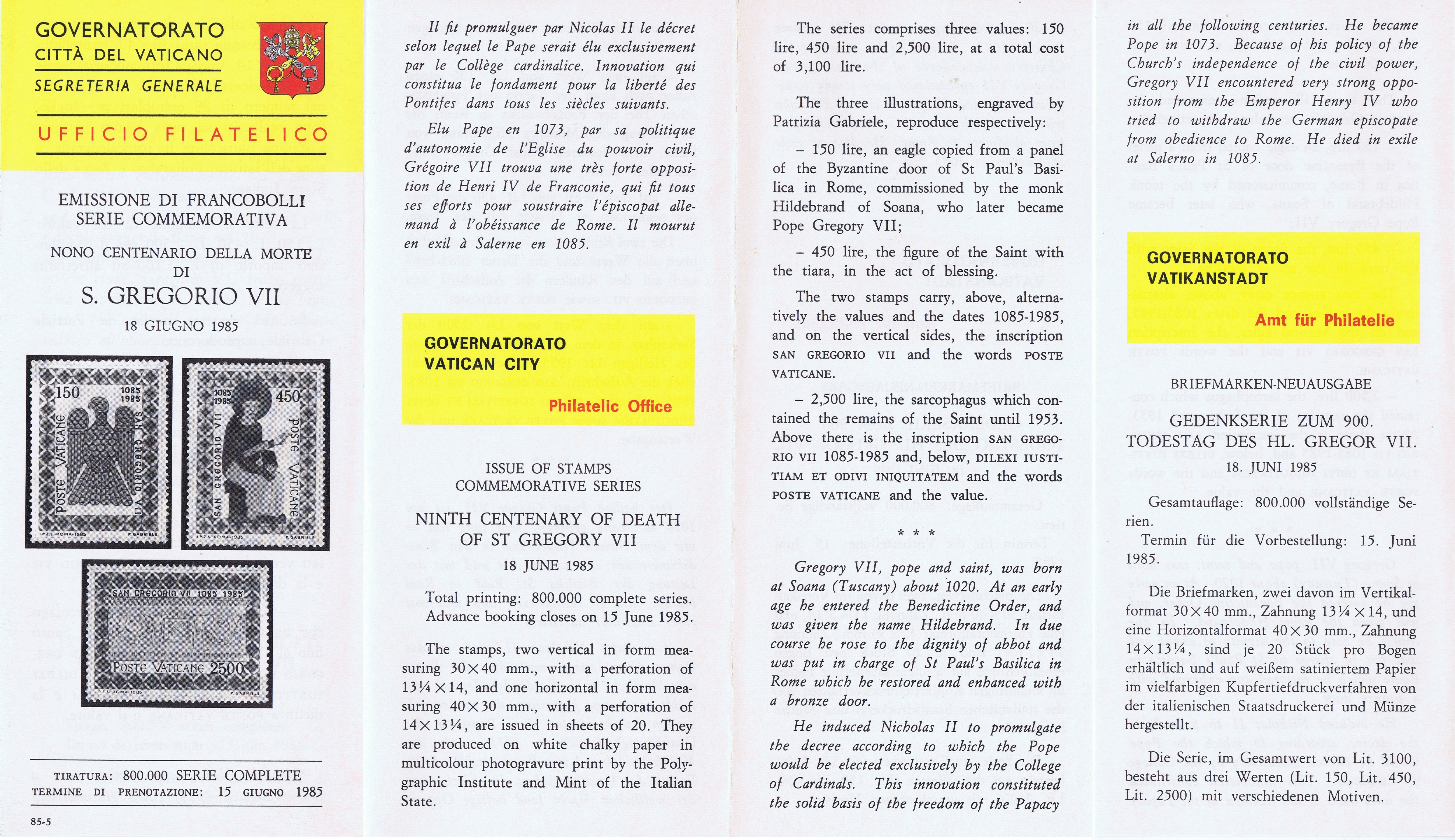 Seal Of Pope Gregory VII • S. Gregio VIIl UFN Bulletin 1985 |
