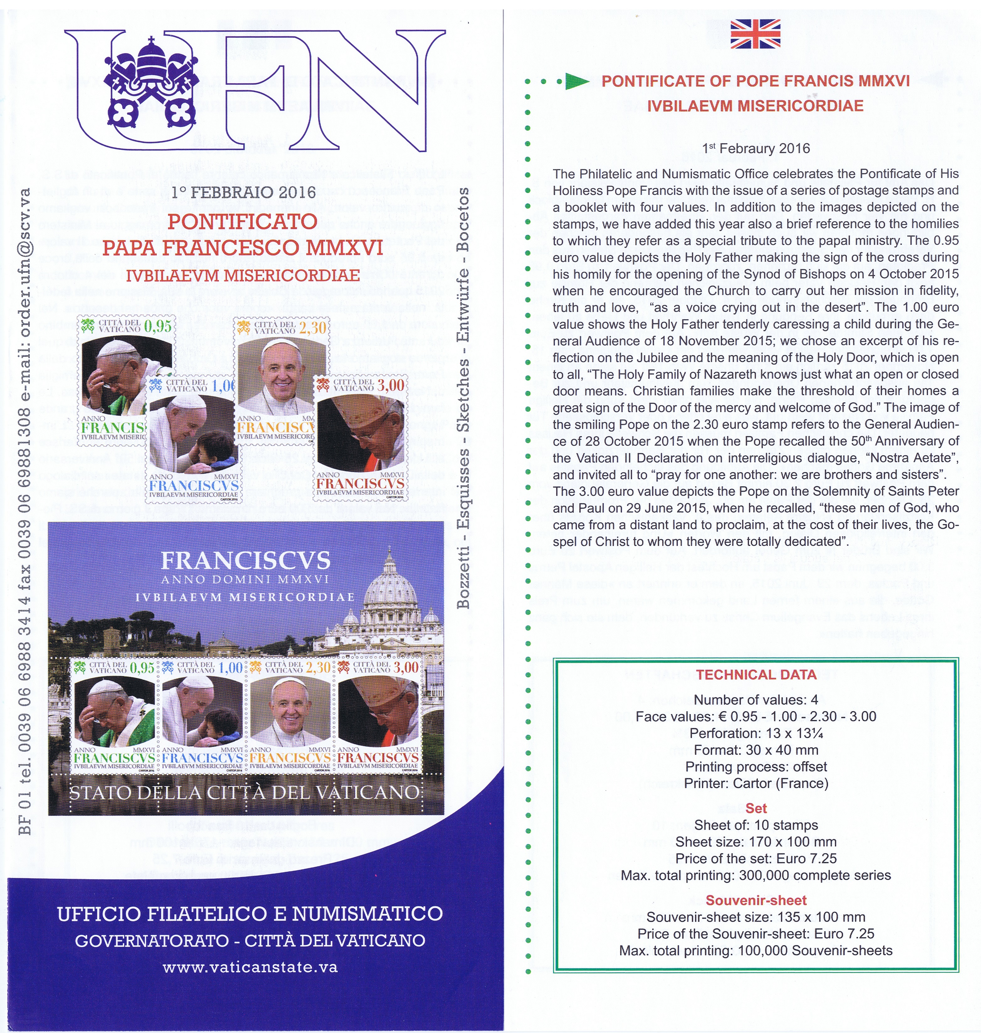 ![]() PONTIFICATE OF POPE FRANCIS - 2016 1617-1620a (2016) |