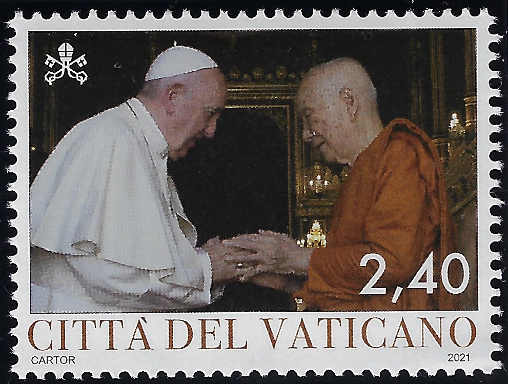 Answer: Each year the Vatican Post Office has issued a set of stamps honoring the Pontificate of Pope Francis. This is the 9th in the series. * The Pope has always been a big fan of the 'tango', a dance which originates from his native country, Argentina. He used to love to go dancing the tango with friends in his youth. On his 78th birthday in 2014, thousands of people danced the 'tango' on St Peter’s Square to celebrate the Pope’s birthday. 2021 with Pope Francis: (Source: www.VaticanNews.va) 1. Pope Francis began the year with these words - “While we hope for new beginnings and new cures, let us not neglect care. Together with a vaccine for our bodies, we need a vaccine for our hearts. That vaccine is care. This will be a good year if we take care of others…” 2. Pilgrimage to Iraq - Pope Francis made himself present as a "pilgrim," also meeting Ayatollah Ali al-Sistani, a pivotal figure in Shiite Islam. And from Mosul, the scene of torture and executions in the past, he raised a cry to the heavens against all forms of violence carried out in the name of God. 3. Reforms - Pope Francis published eight personal priorities from January to November, which introduced changes and innovations in the pastoral, financial, and judicial spheres. 4. 2 trials before the Vatican Tribunal - one for alleged sexual abuse in the Saint Pius X Pre-Seminary and a trial for alleged financial wrongdoing concerning funds from the Secretariat of State. 5.Surgical operation at Gemelli - a pre-planned operation for diverticular stenosis. 6. Vaccines and the poor - the Pope called for equitable distribution and rapid access to the vaccines, especially in the poorest areas of the world. 7. An unprecedented synodal path - Pope Francis introduced one of the most important novelties from an ecclesial point of view: the opening of a three-year-long synodal path, which will commence “from below,” that is, from the faithful – but also from every part of the world. 'PONTIFICATE OF POPE FRANCIS - 2021'