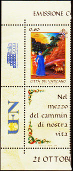 Scott Number: 1426 Date Issued: 2009-10-21 Descriptive Name: Italian Language Day - Virgil & Dante Face value: €0,60 Color: multi Perforation: 13-1/4 x 13 Printer: Instito Poligrafico e Zecca dello Strata Italiano Click to seeUFN Bulletin Announcement