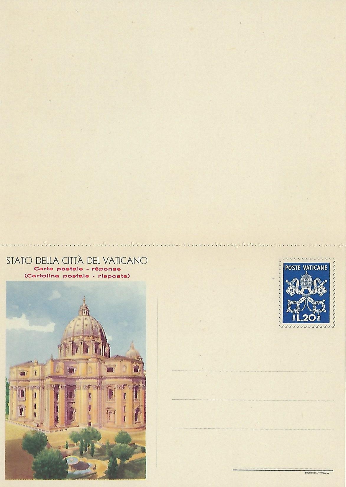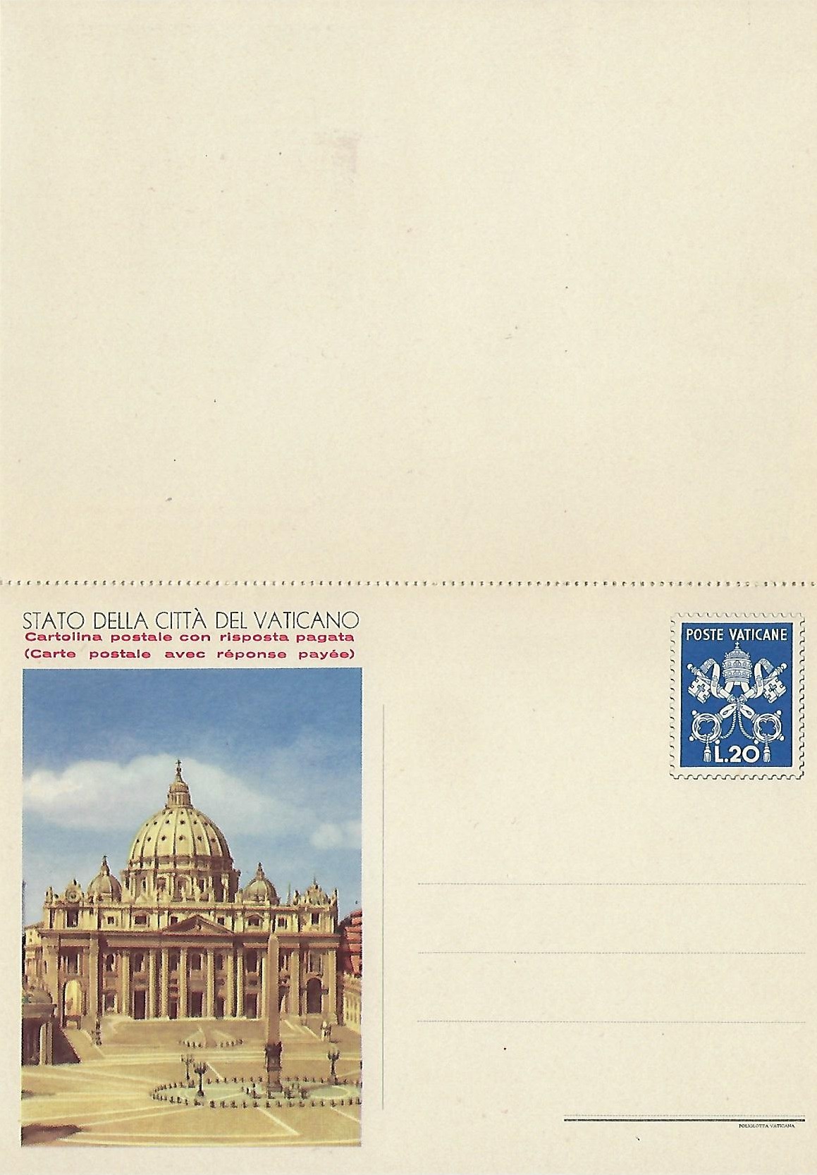 | 1950 | 05/17/1950 | P19![]() P19 | 20L | St. Peter's Basilica and Garden 20L (1st line shorter) | 0 |