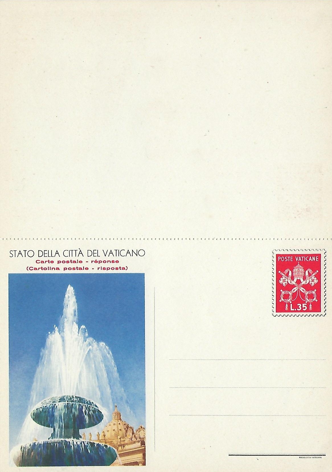 | 1953 | 02/03/1953 | P22![]() P22 | 20L | Fountain of St. Peter's Square 20L (all lines equal) | 0 |