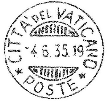 I-7b![]() ![]() | 6 lines and 2 corners | 7 lines and two corners | CITTA DEL VATICANO | stars | POSTE | Similar to I-6a, no time, larger POSTE | 12/3/1930 | VN Ref Examples | |