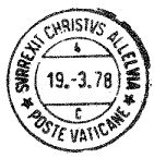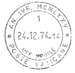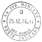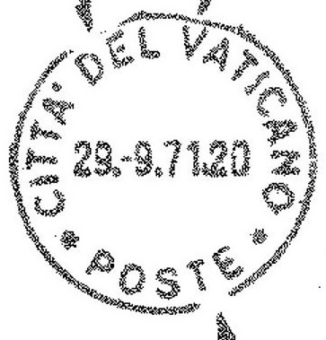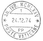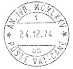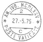 I-57a![]() ![]() | S1 | CITTA DEL VATICANO | Maltese Cross | POSTE | Damage to outer ring above DEL | 10/30/1968 to 7/11/1974 Black ink only | VN Ref Examples | ||