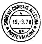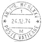 I-59a![]() ![]() | CITTA DEL VATICANO | small stars - 6 points | POSTE | outer ring damages as shown | 1/22/1971 to 9/29/1971 | VN Ref Examples | |||